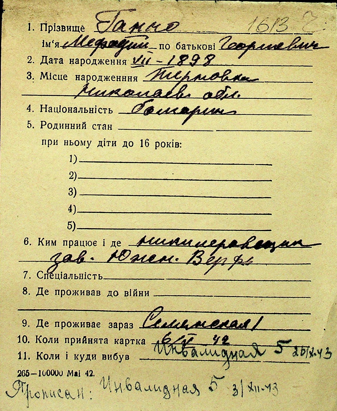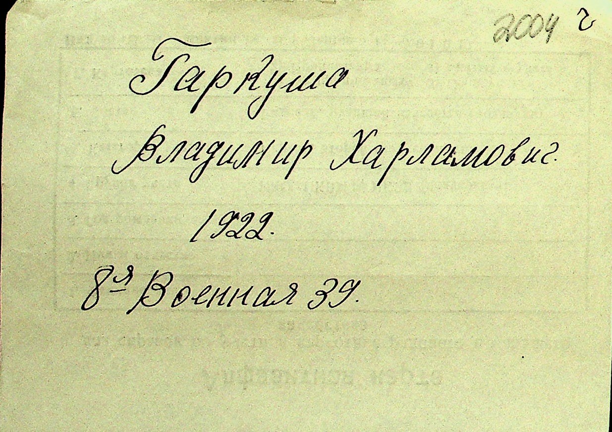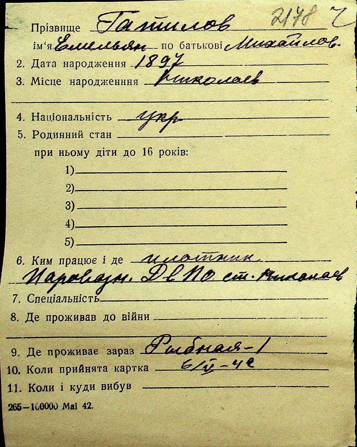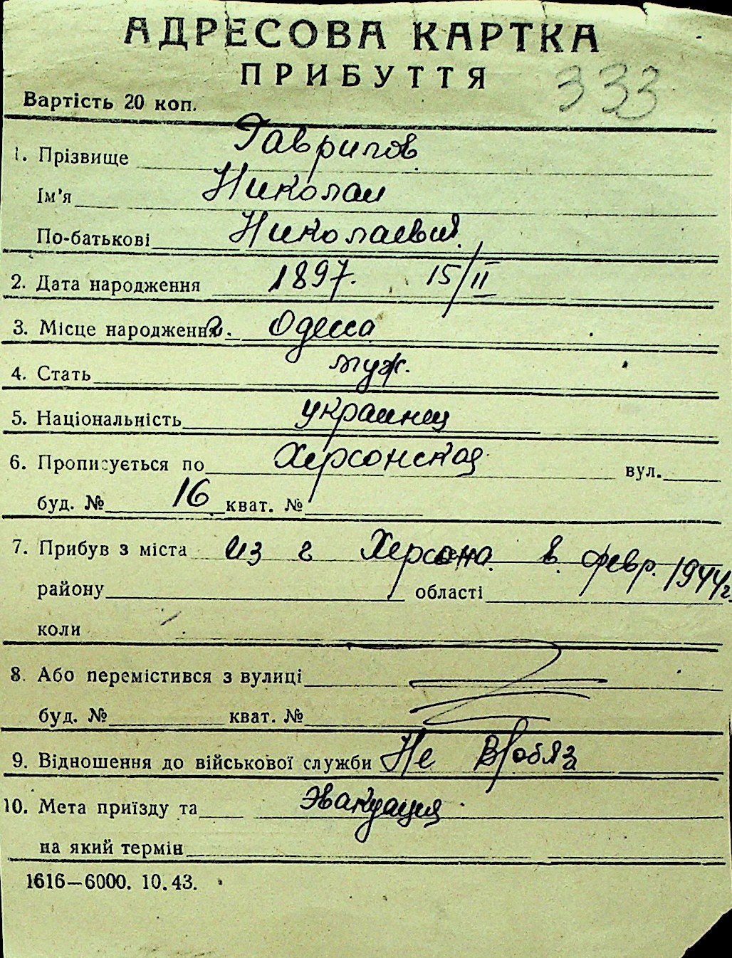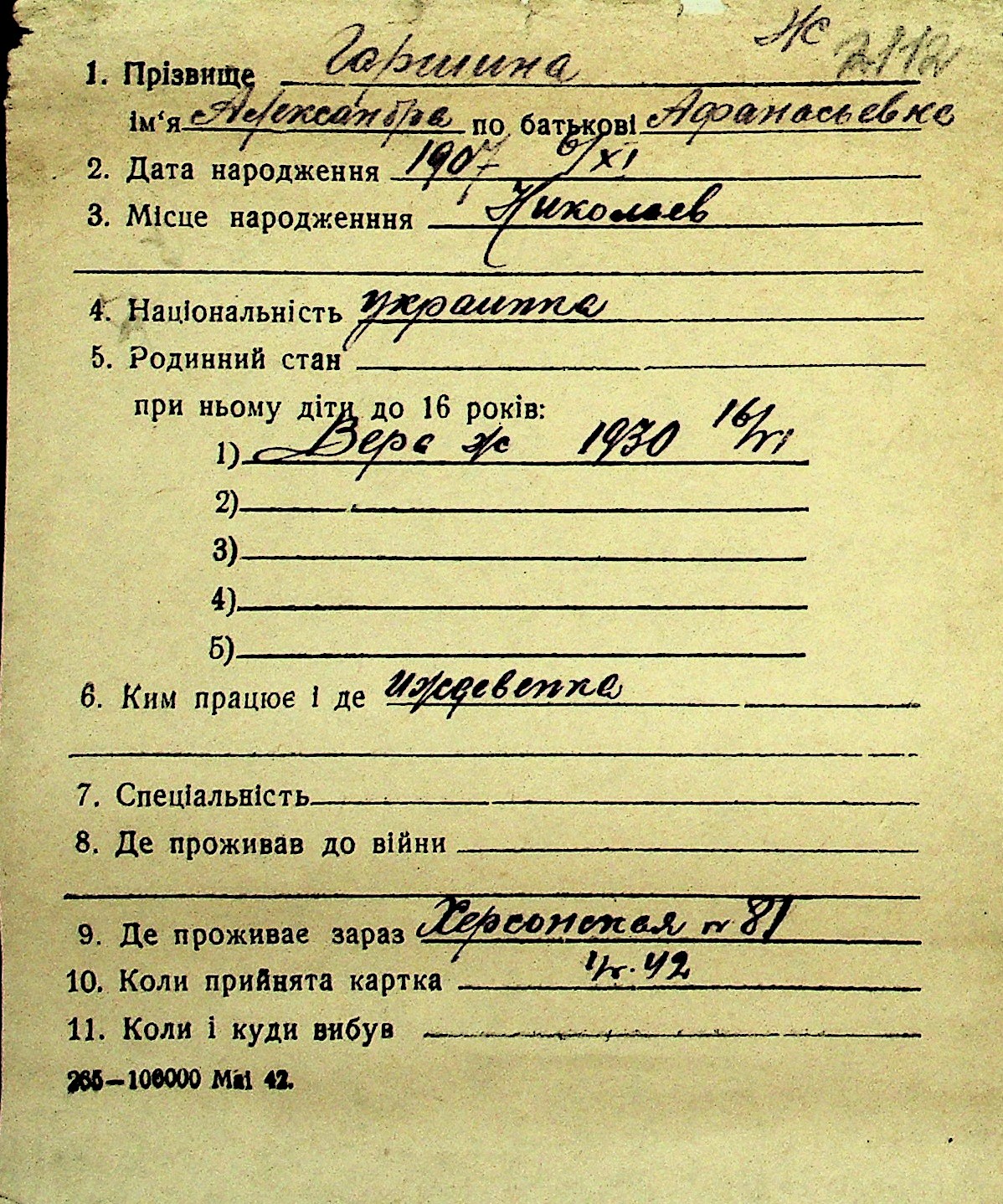 • • Перелік карток до фонду № Н-1016