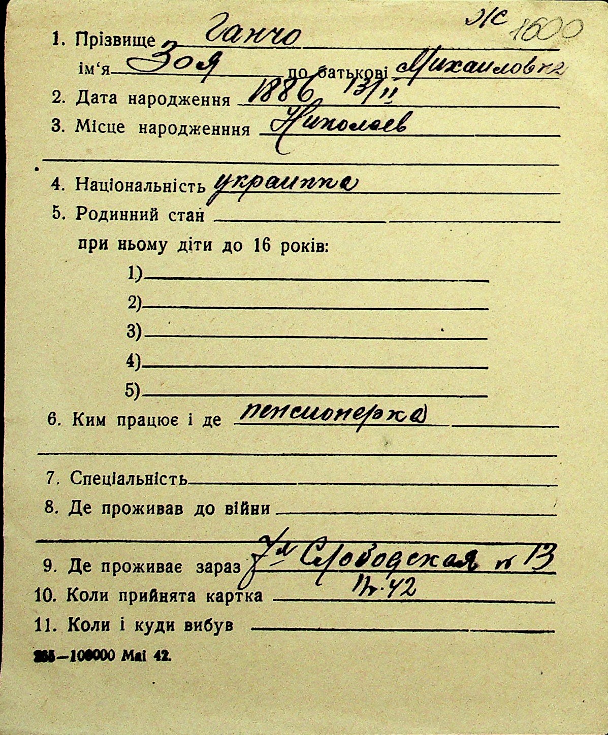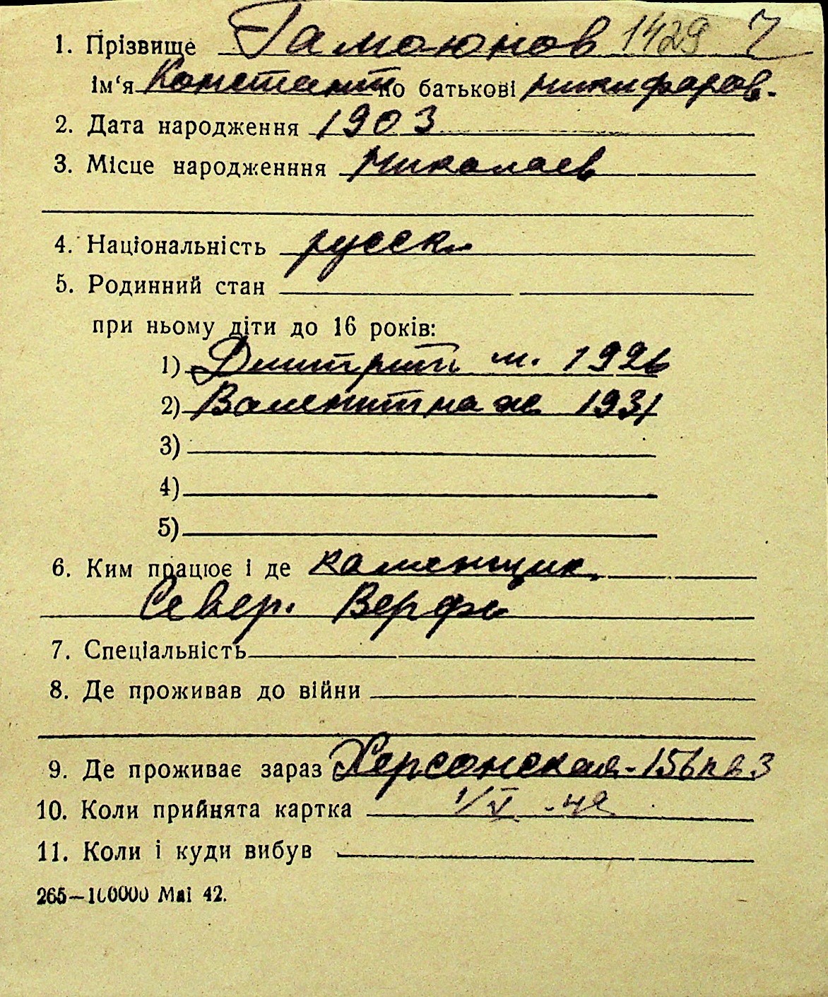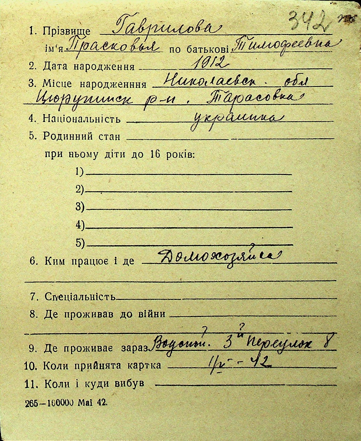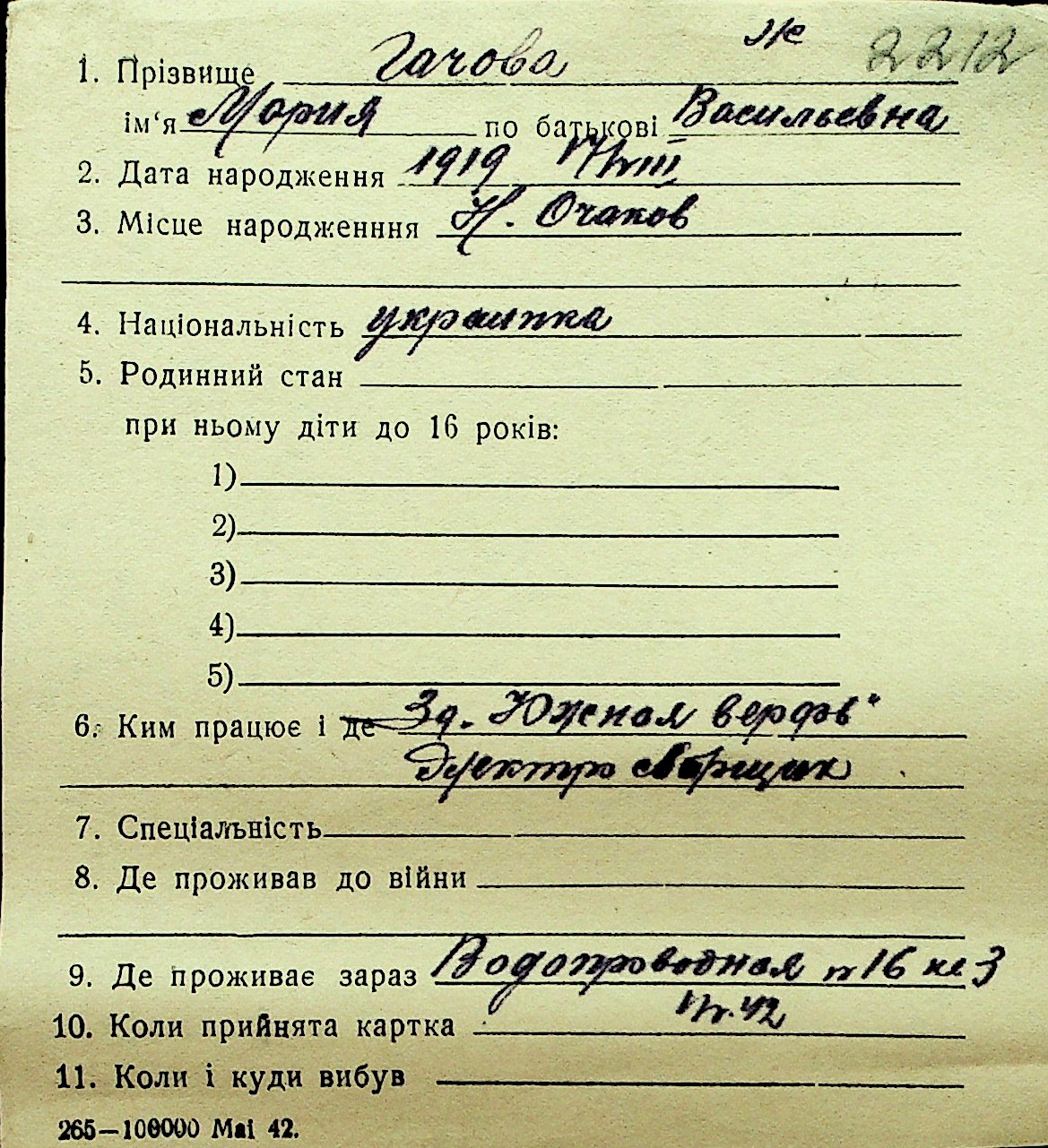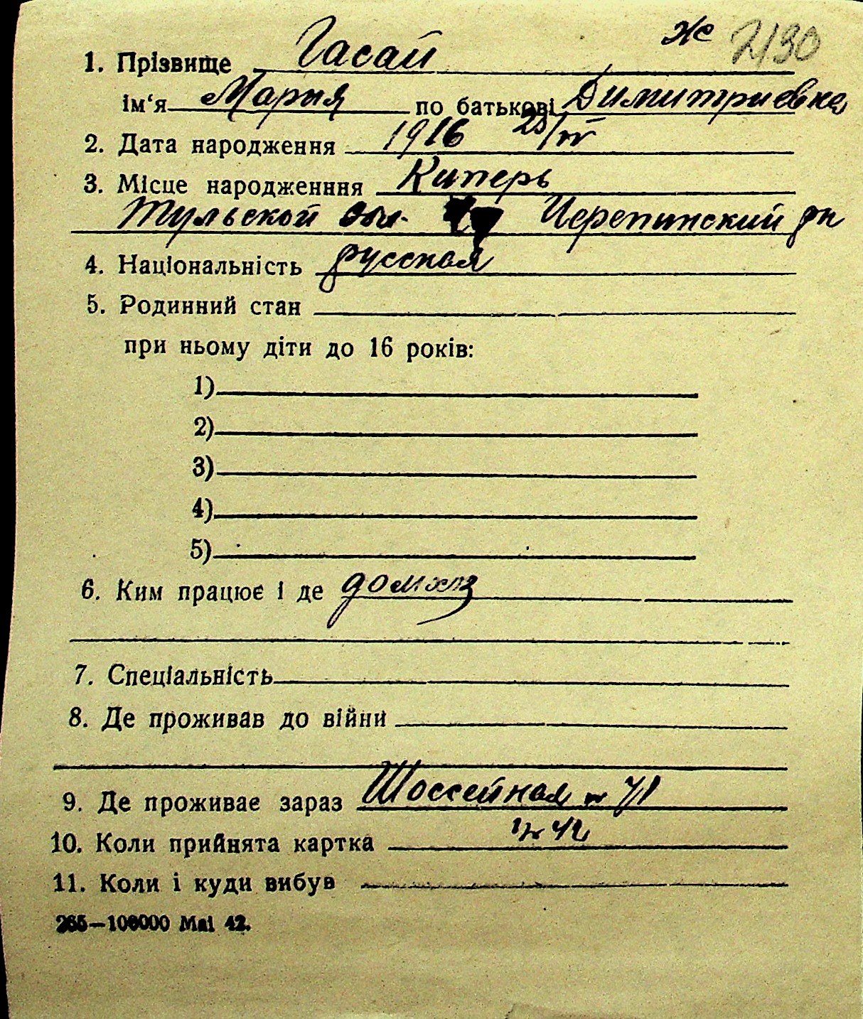 • • Перелік карток до фонду № Н-1016