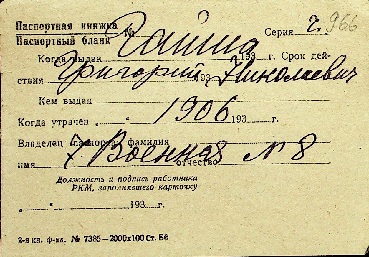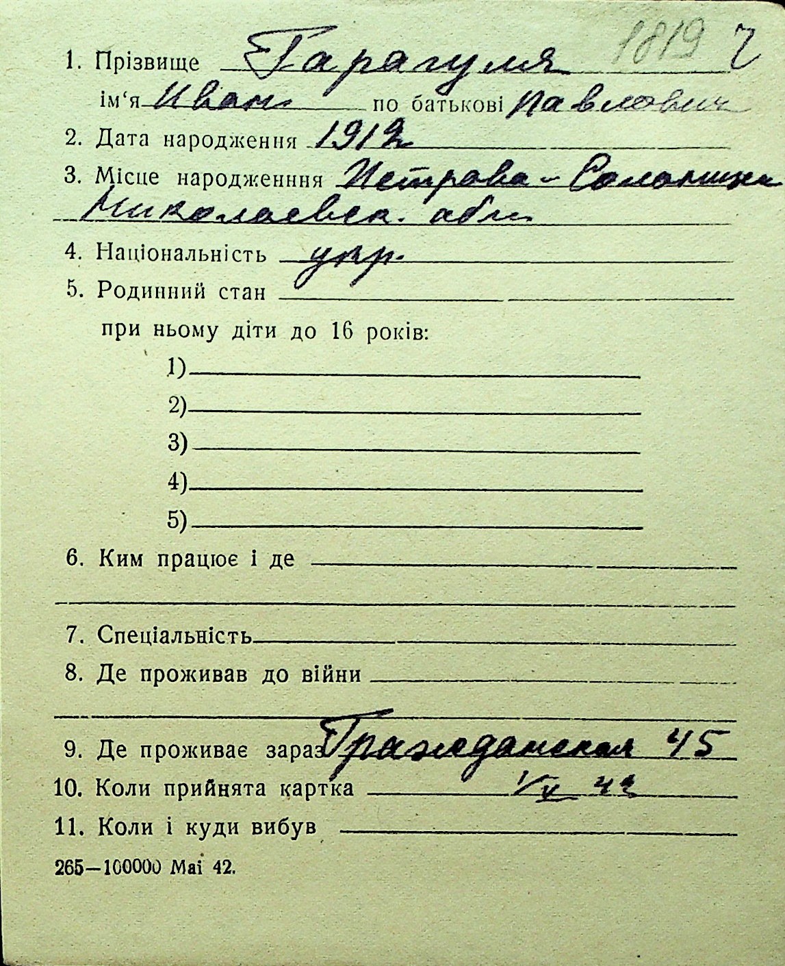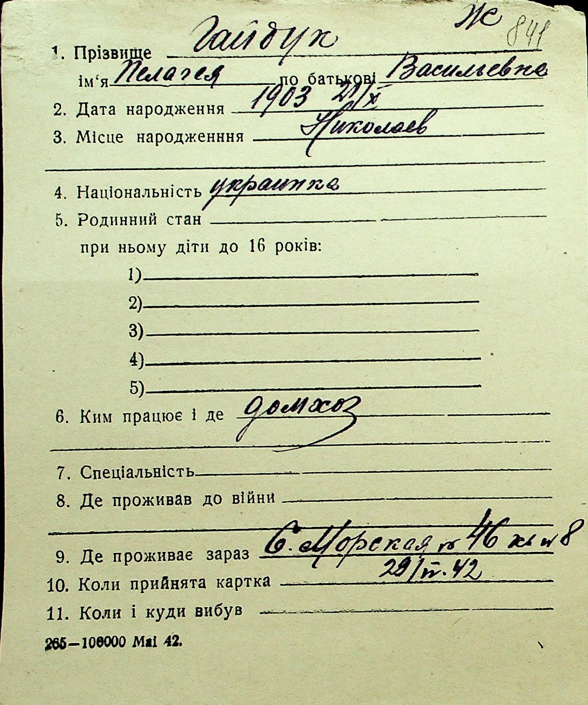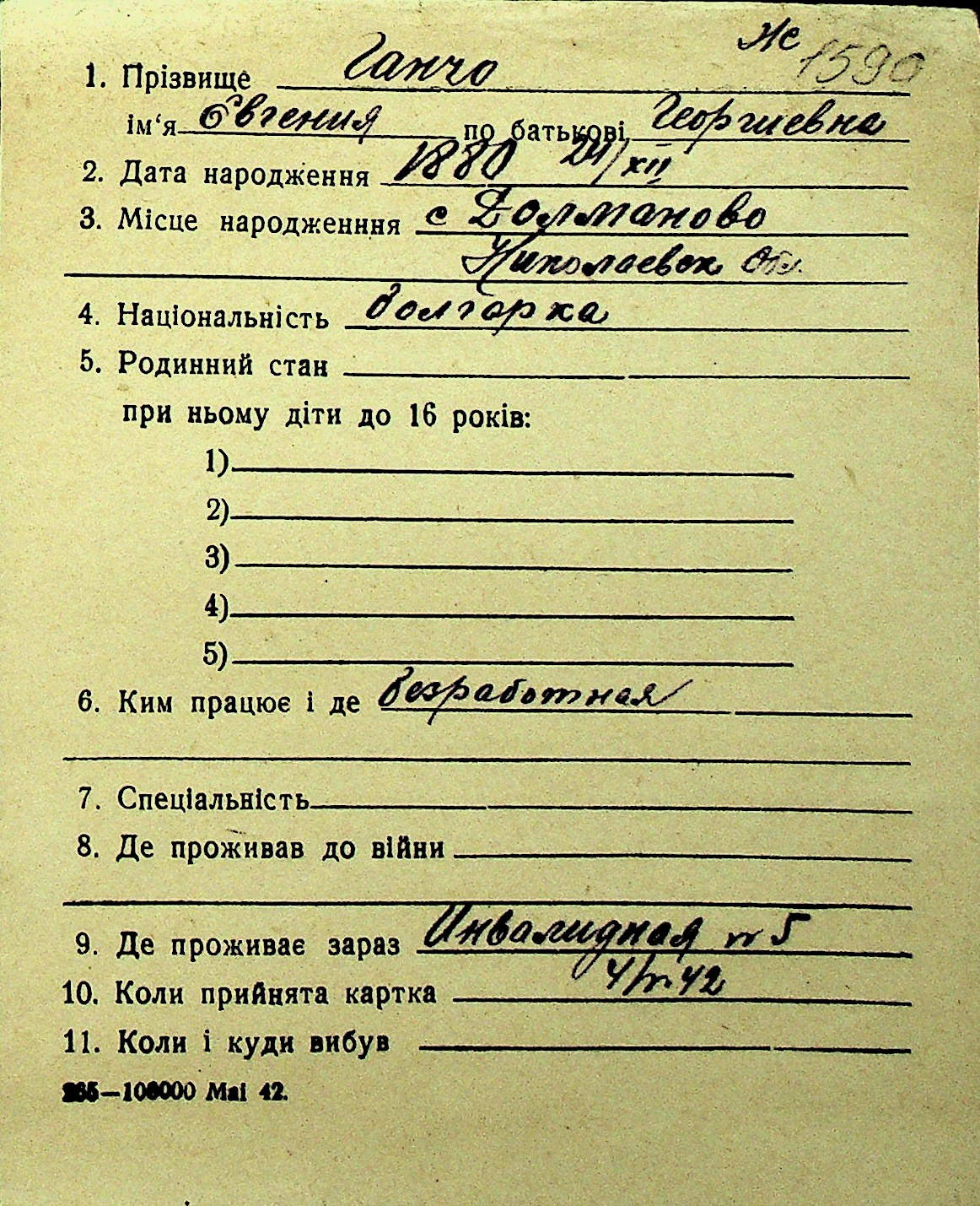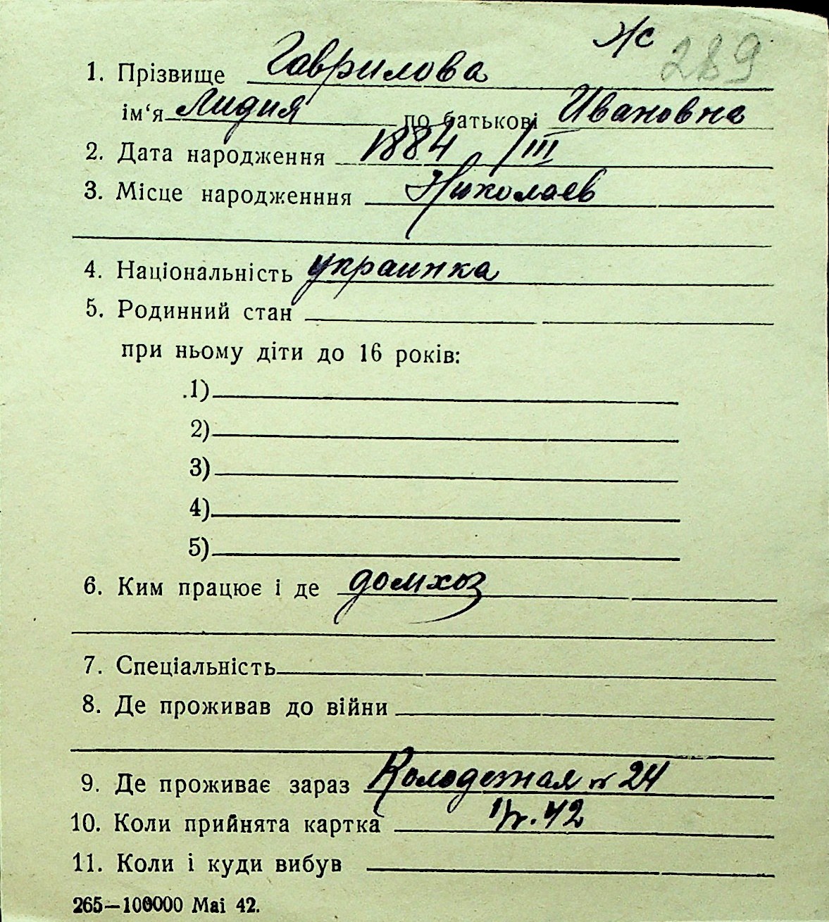 • • Перелік карток до фонду № Н-1016