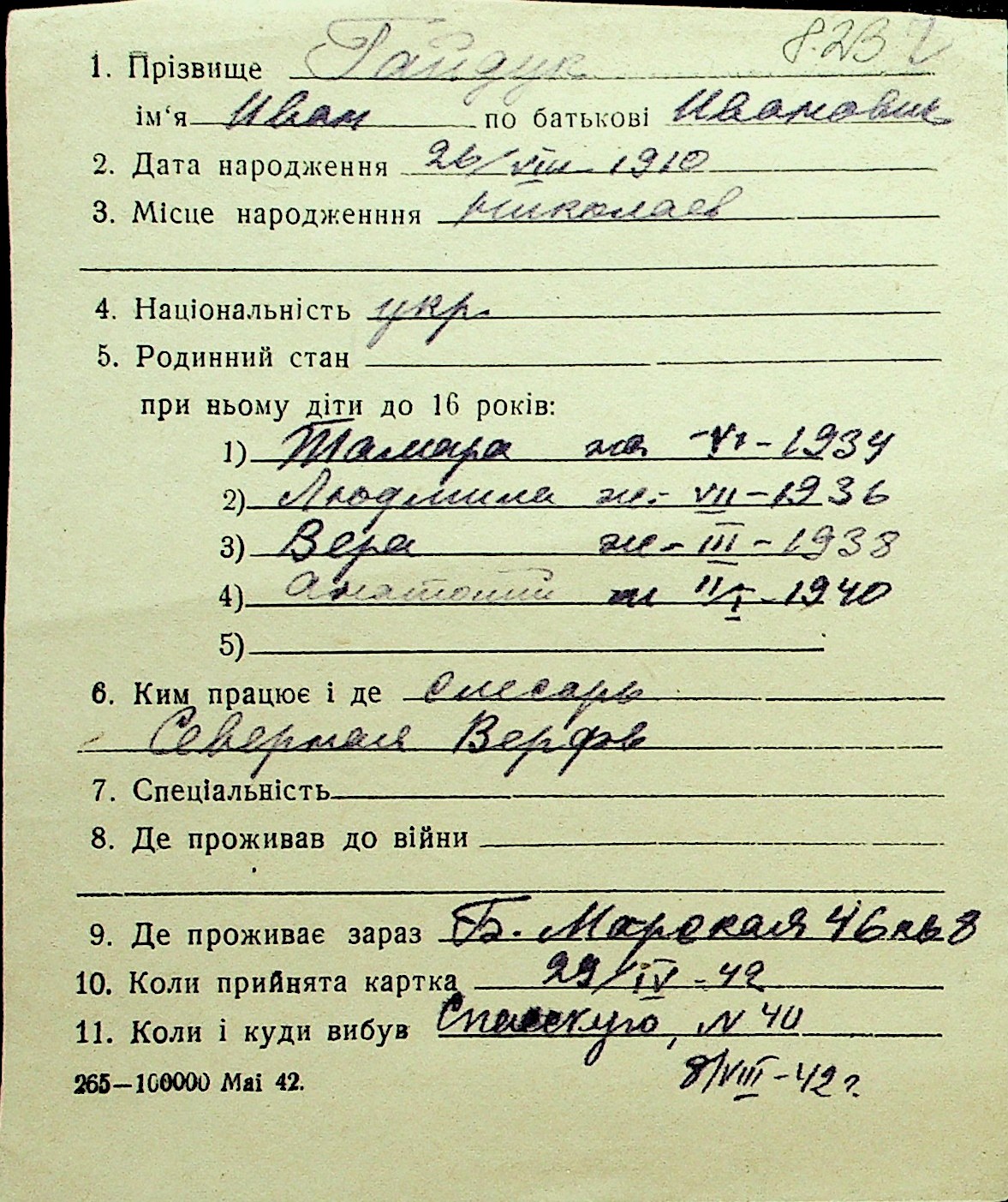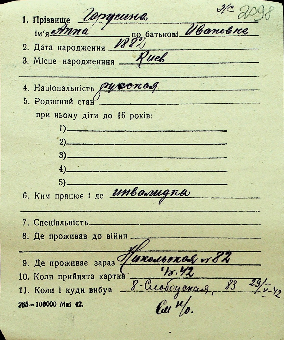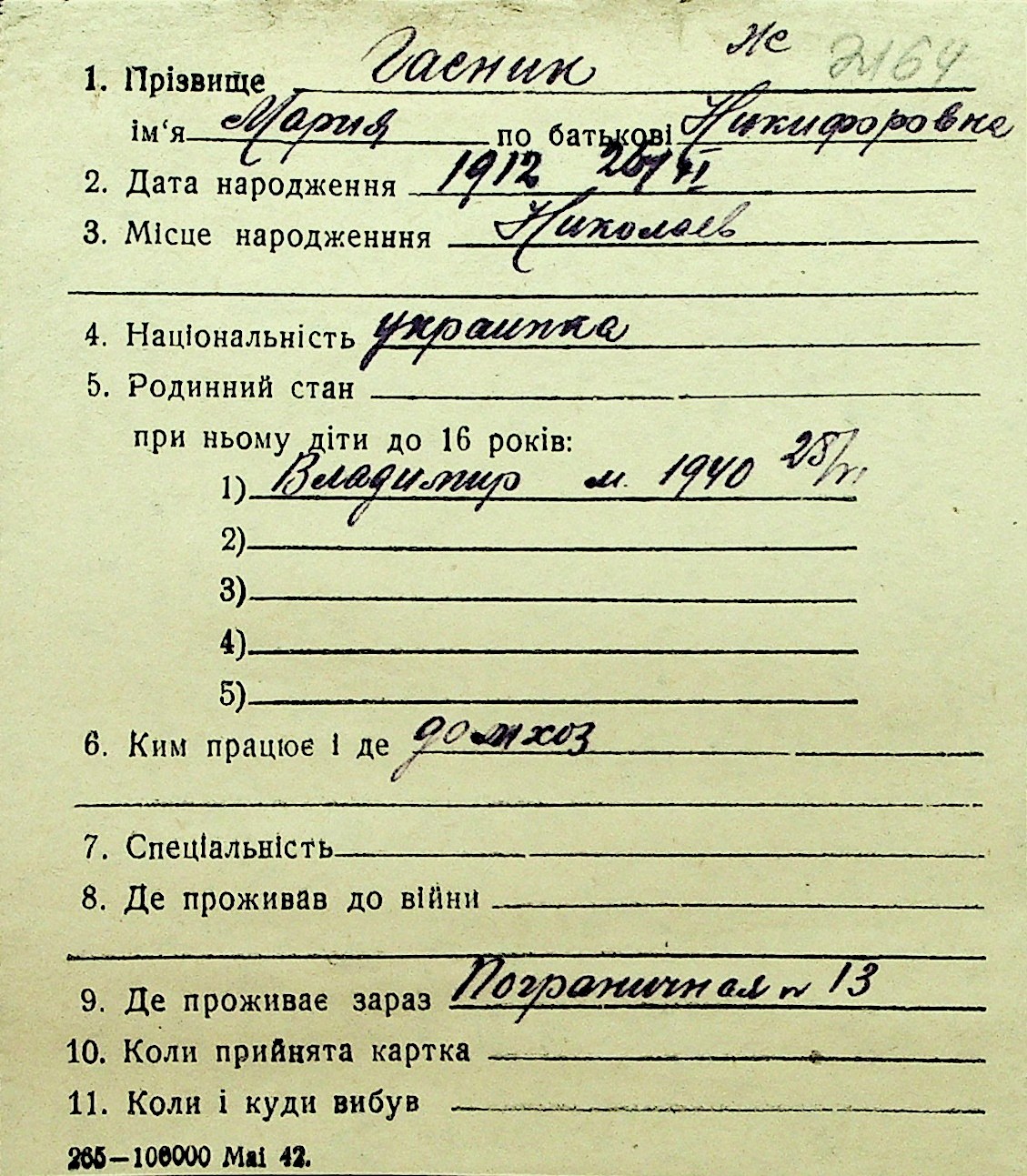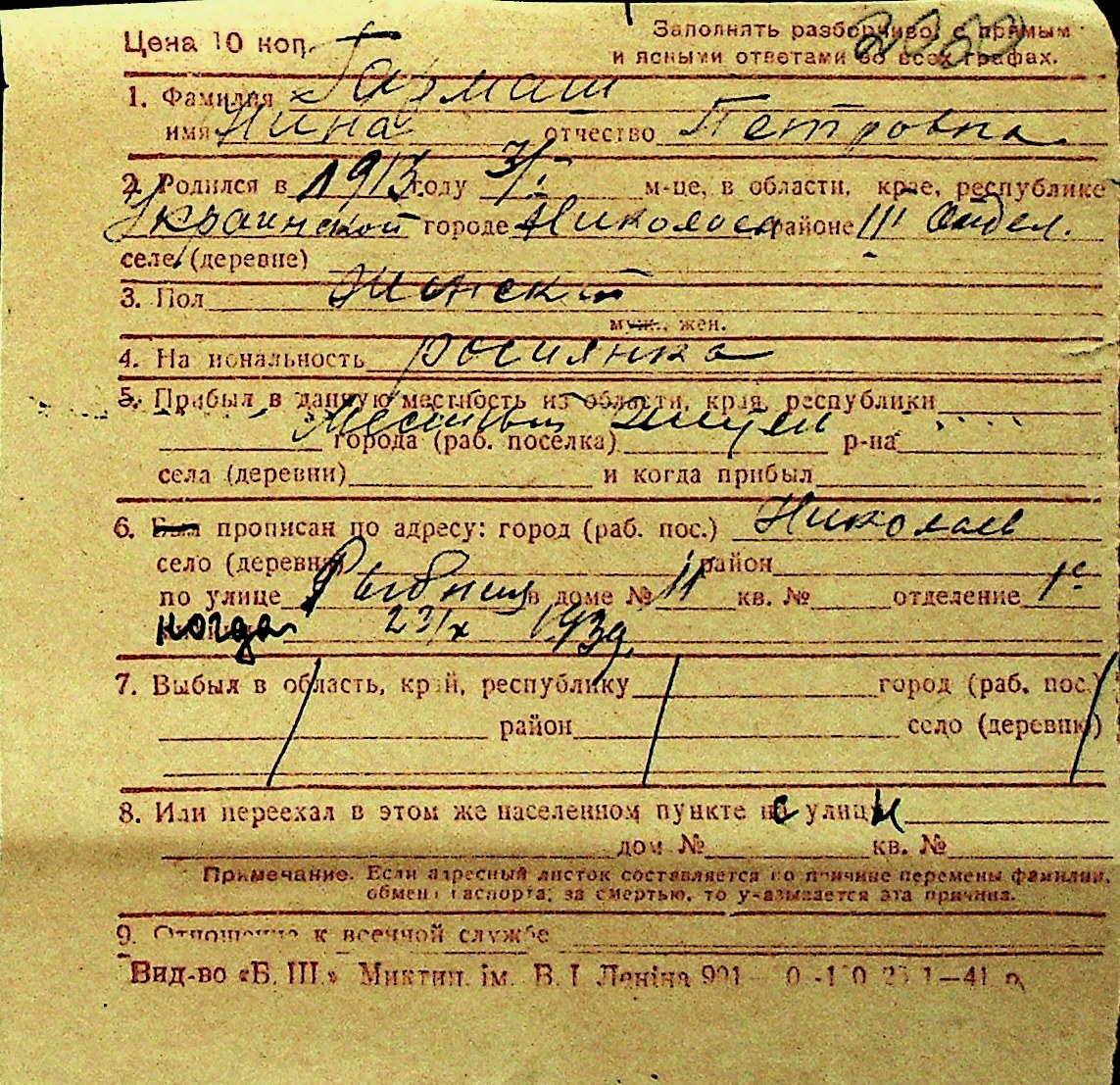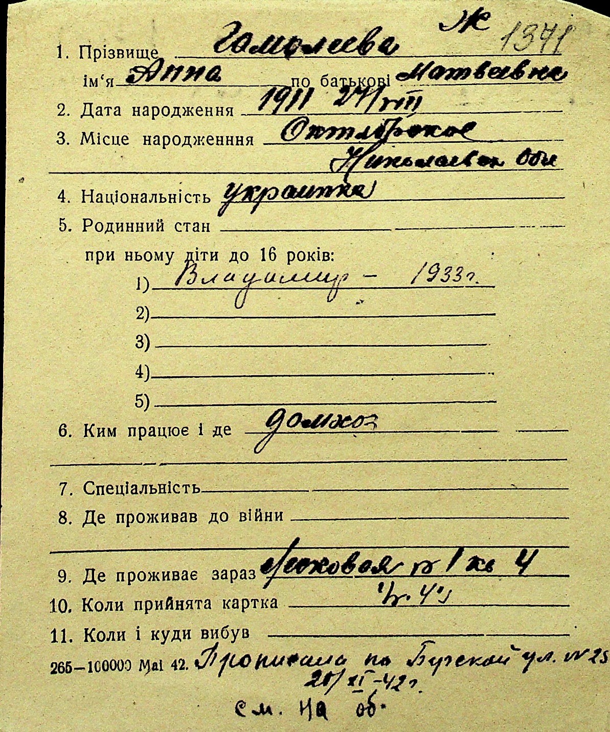 • • Перелік карток до фонду № Н-1016