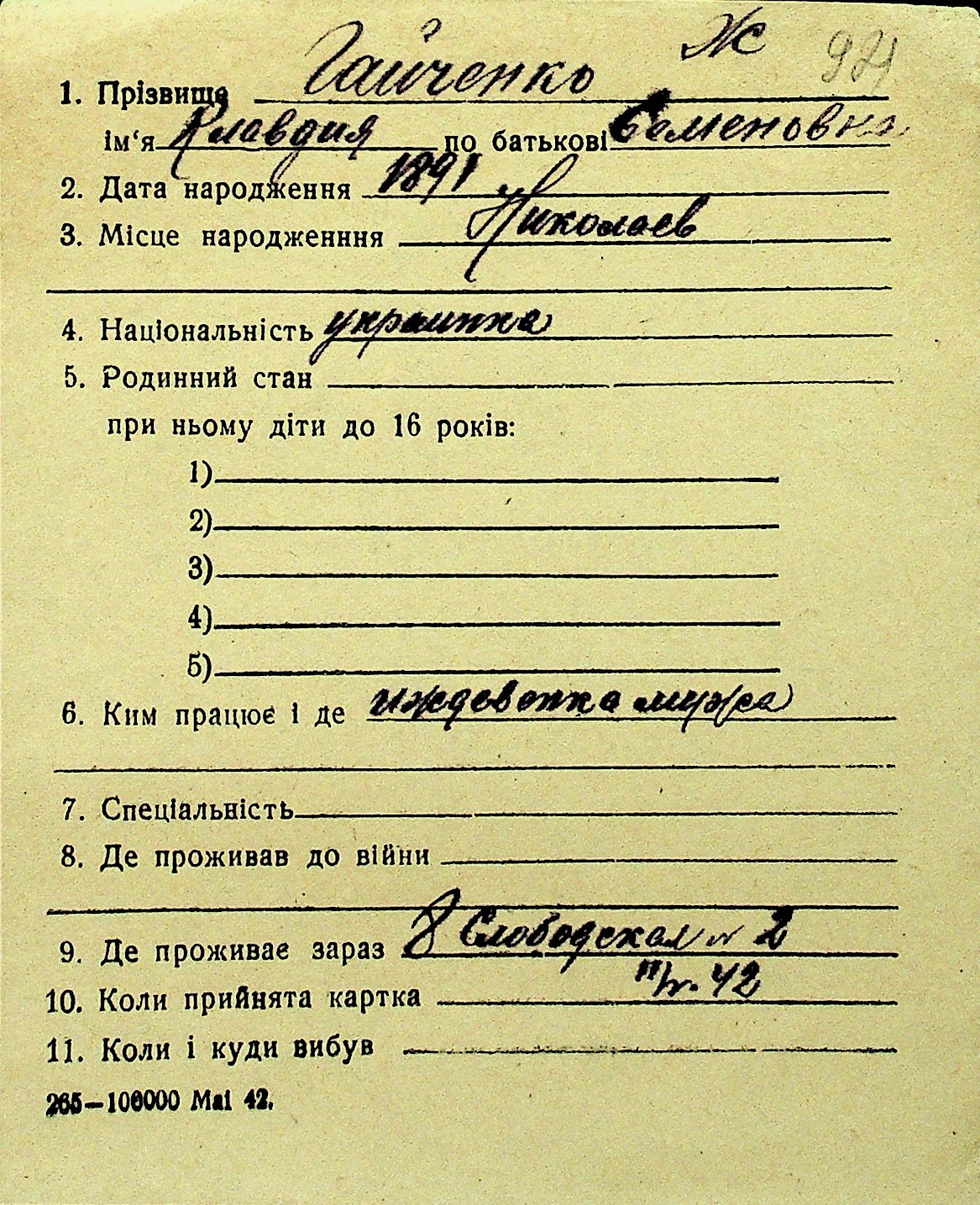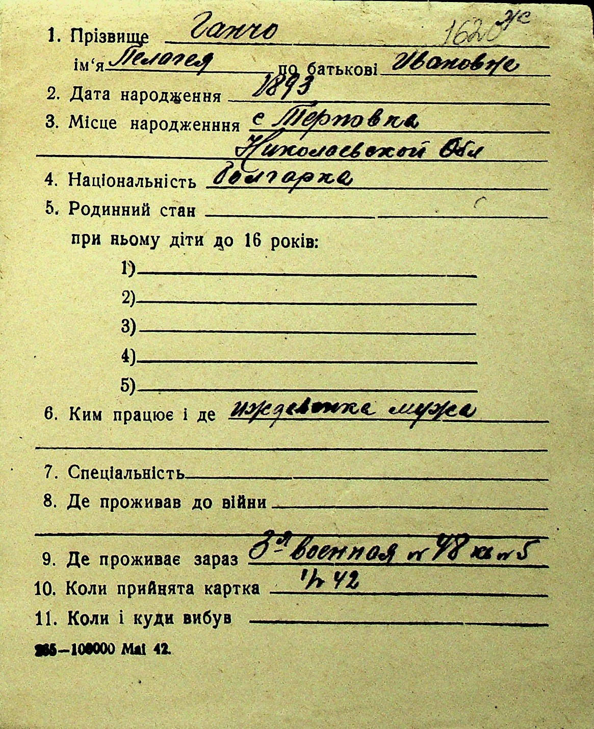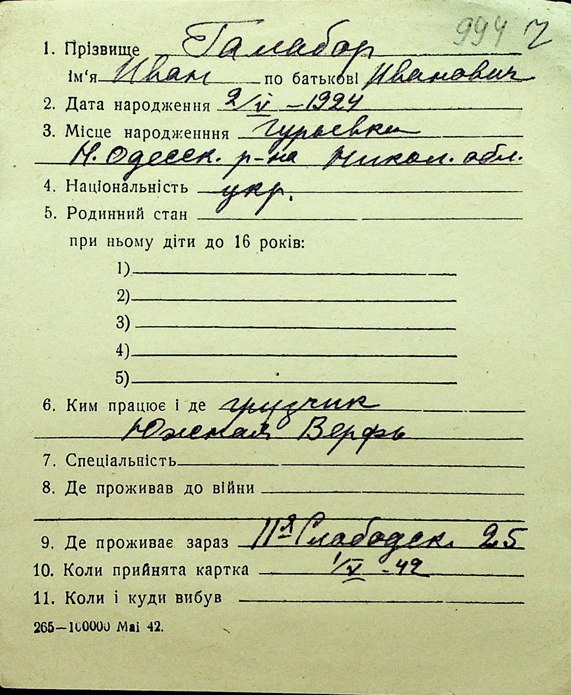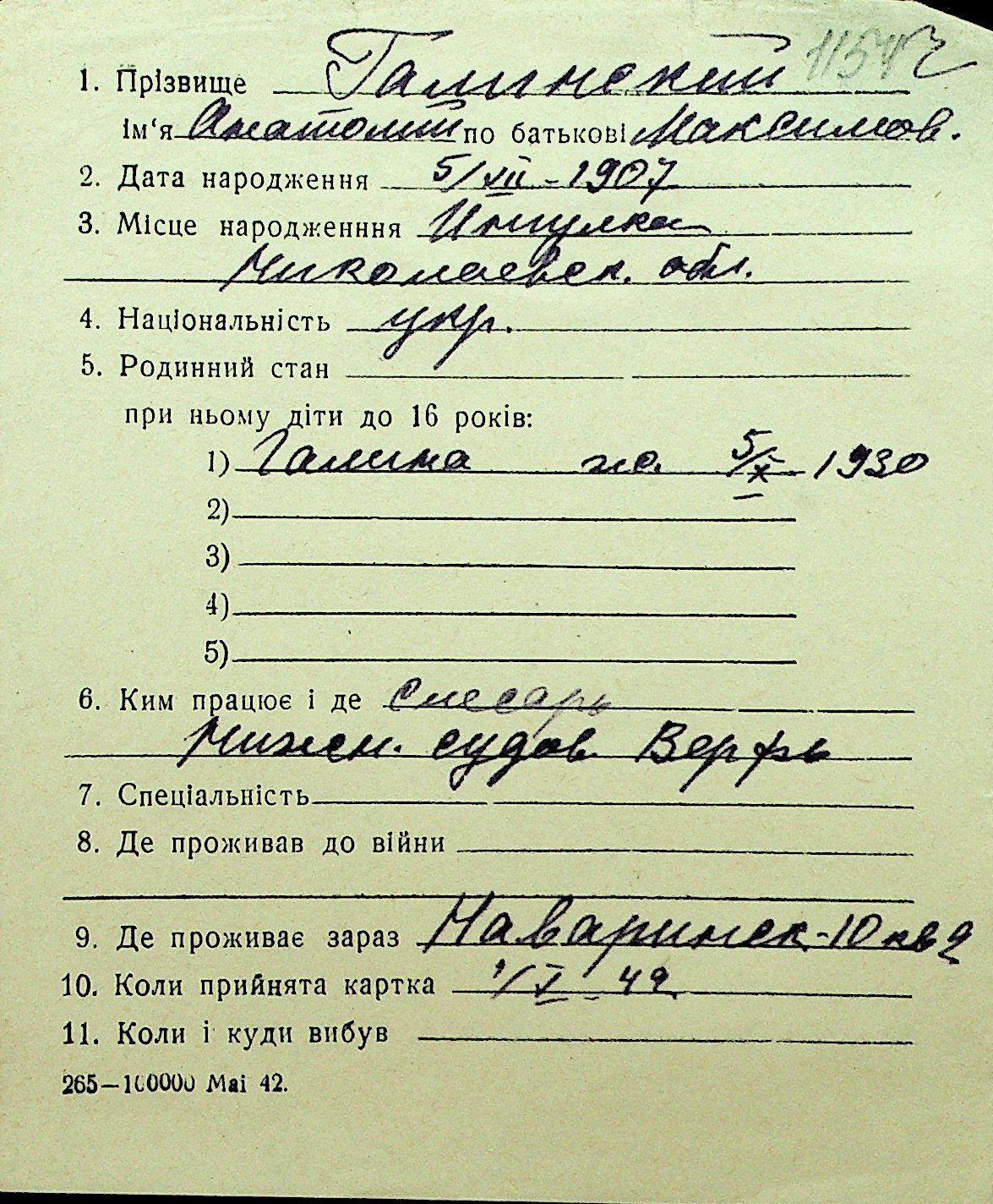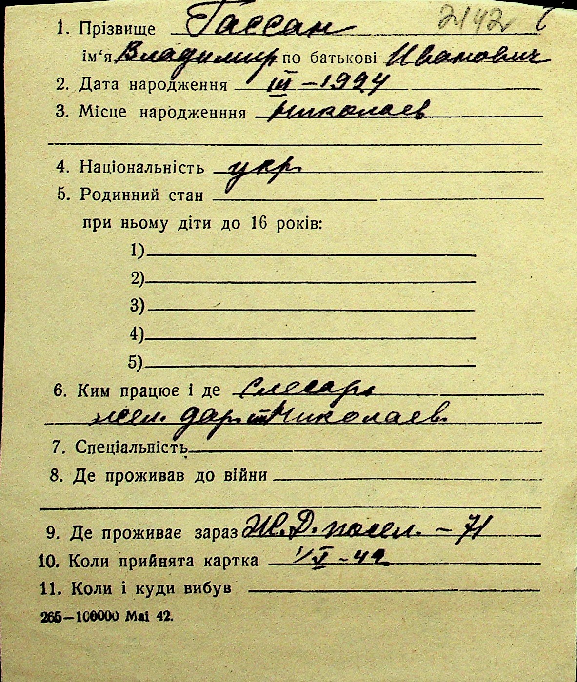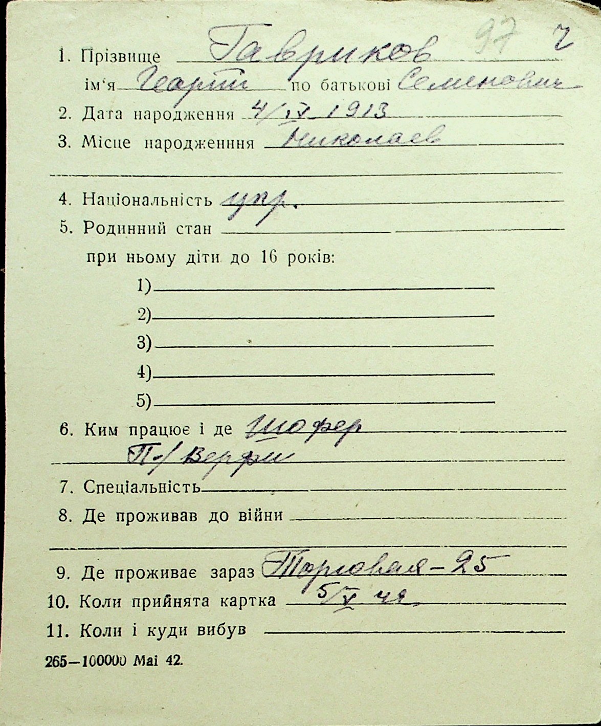 • • Перелік карток до фонду № Н-1016