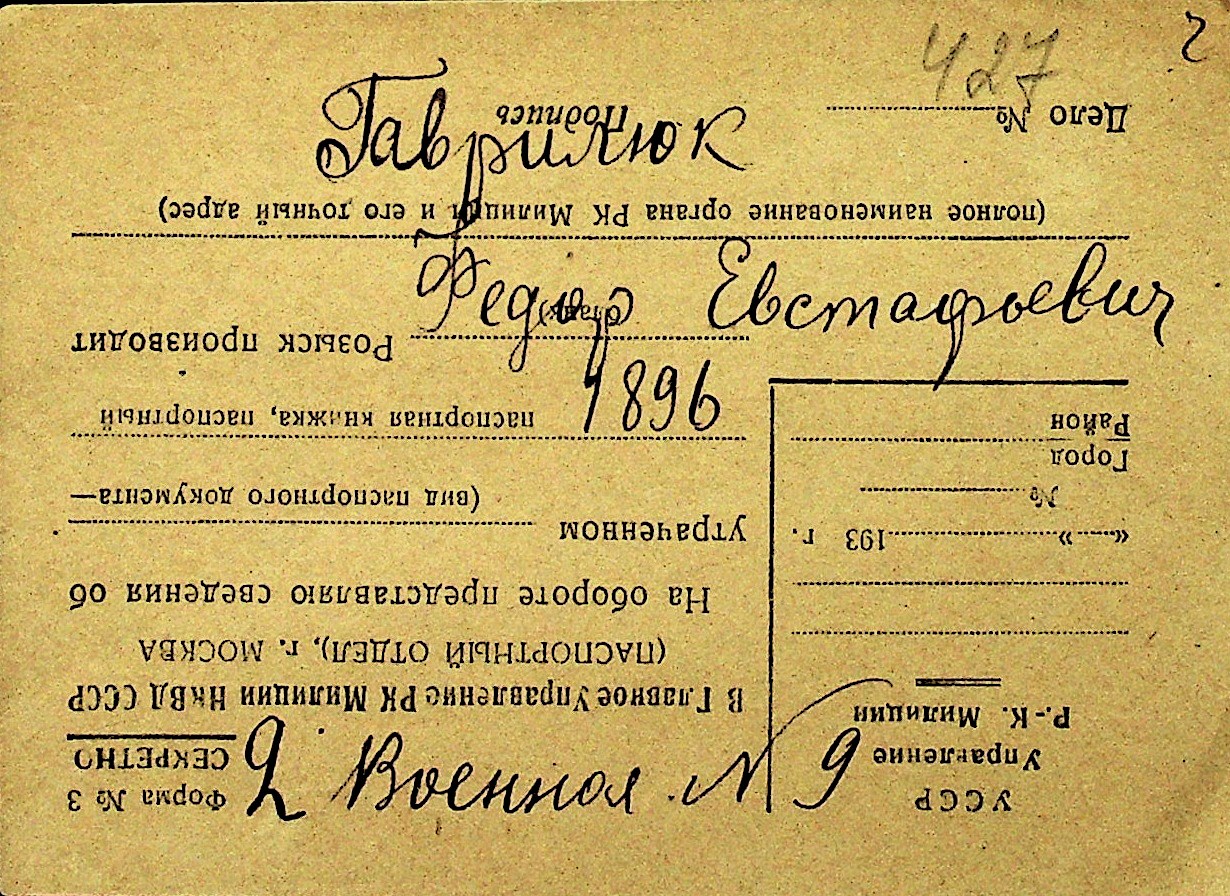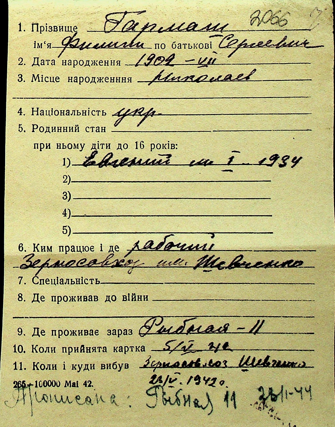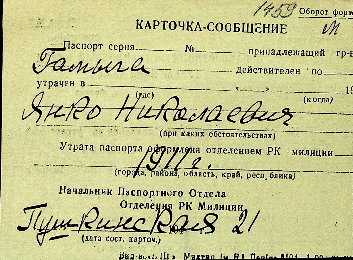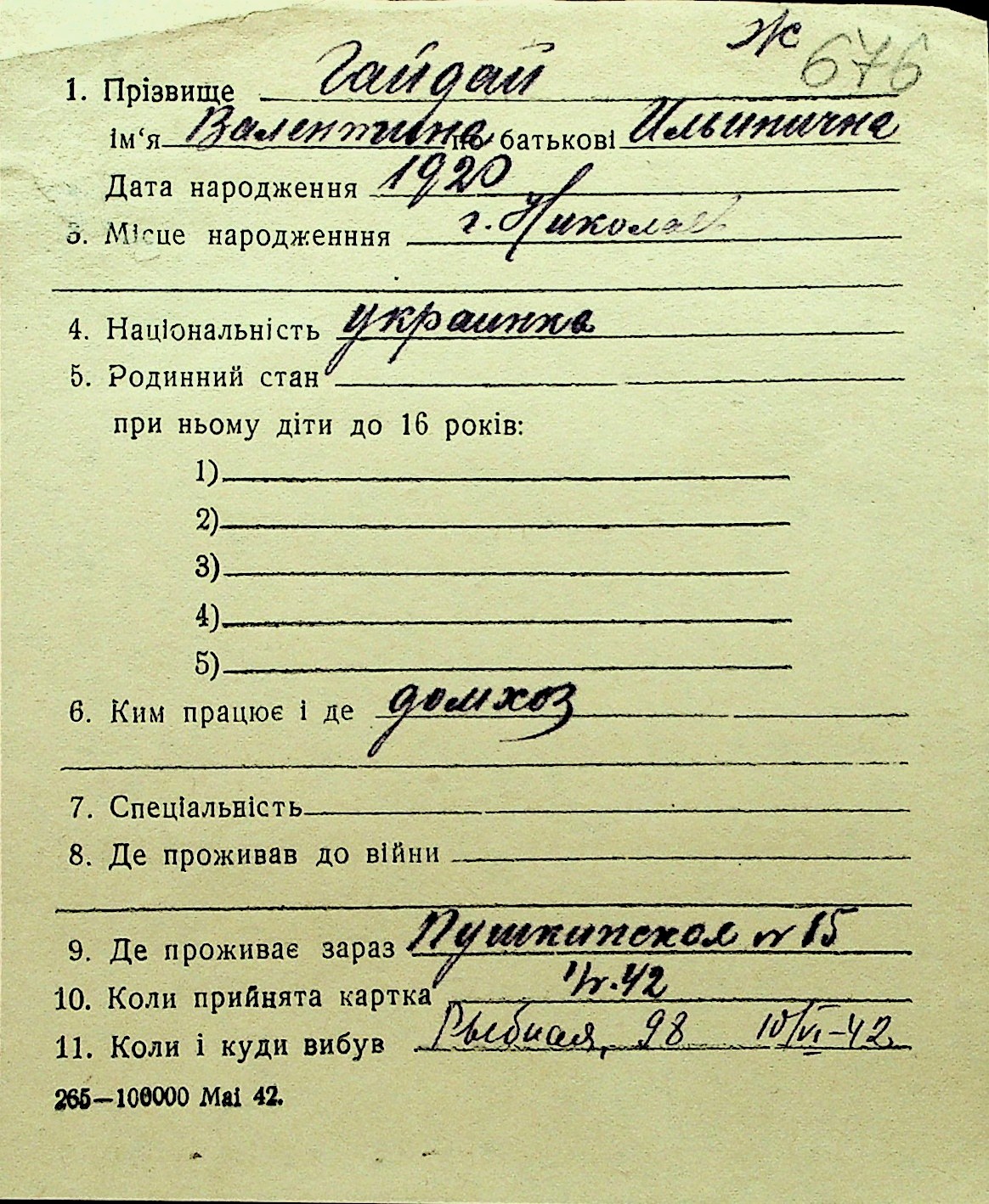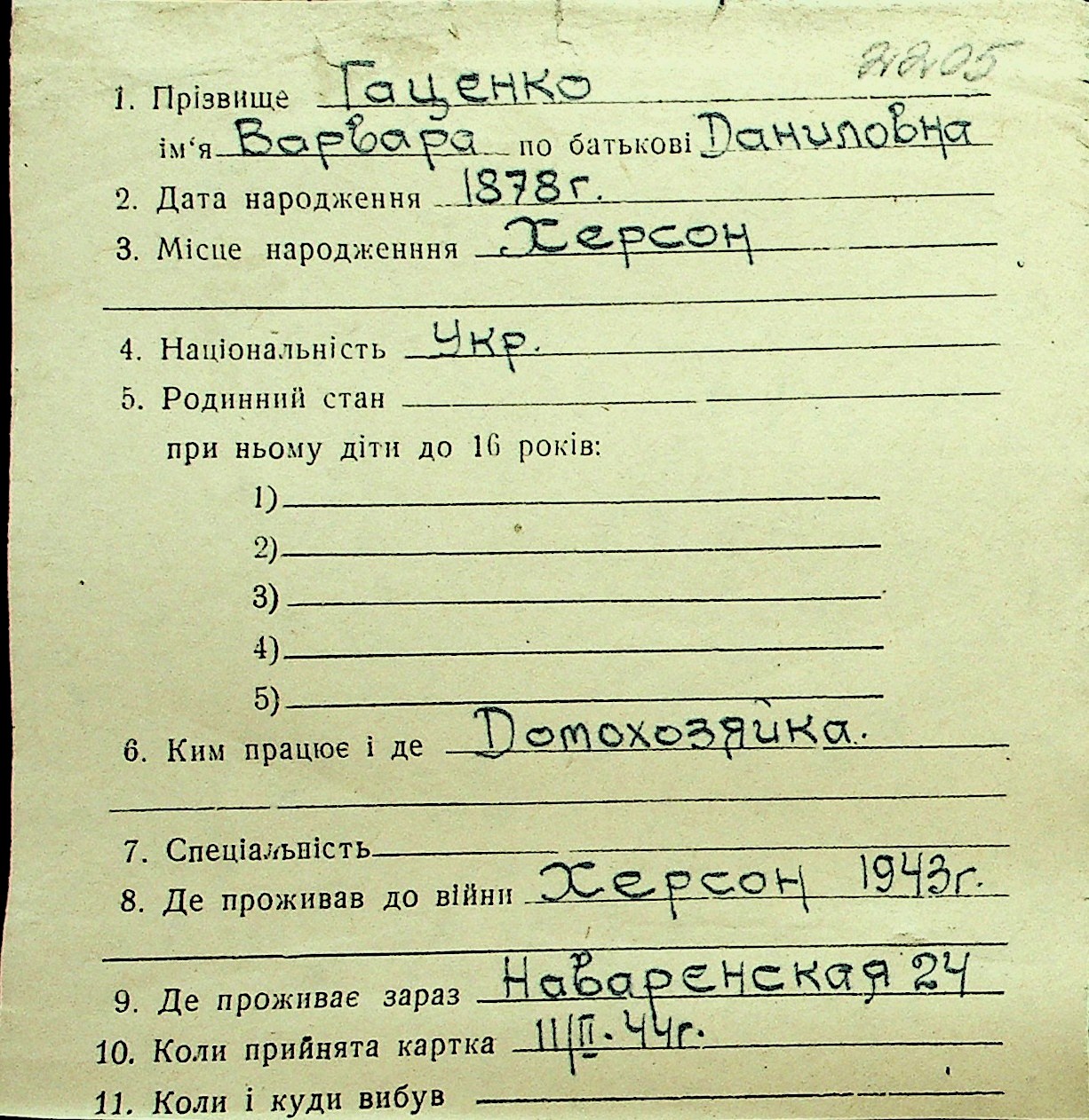 • • Перелік карток до фонду № Н-1016