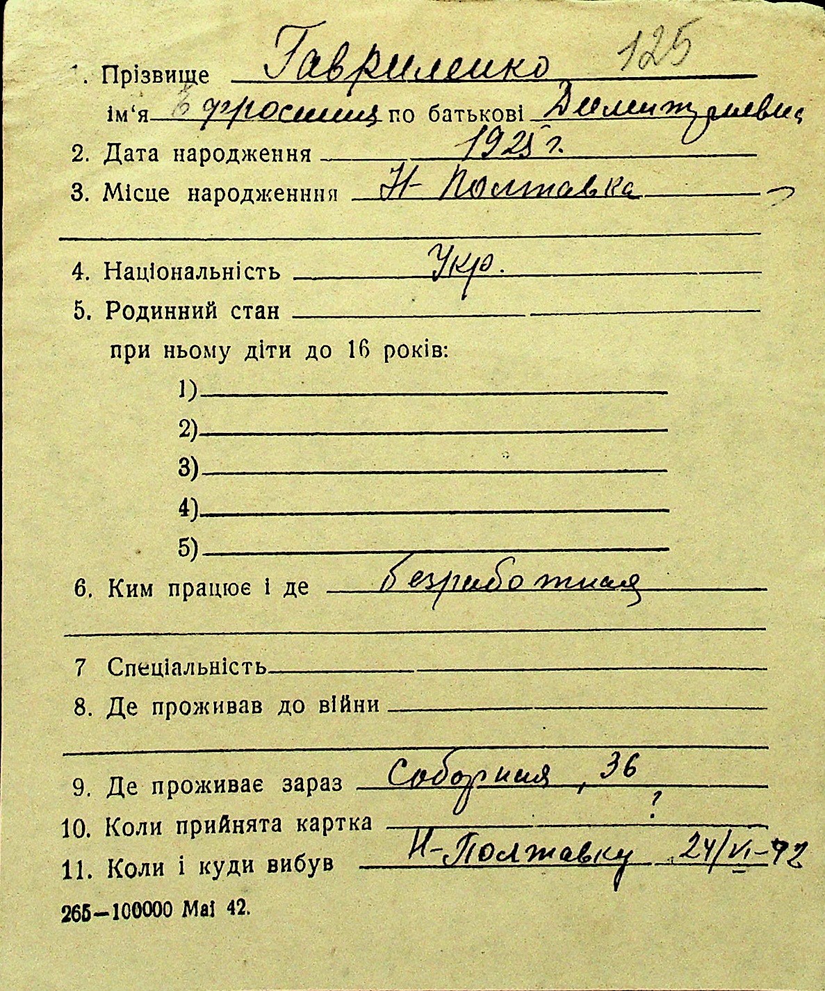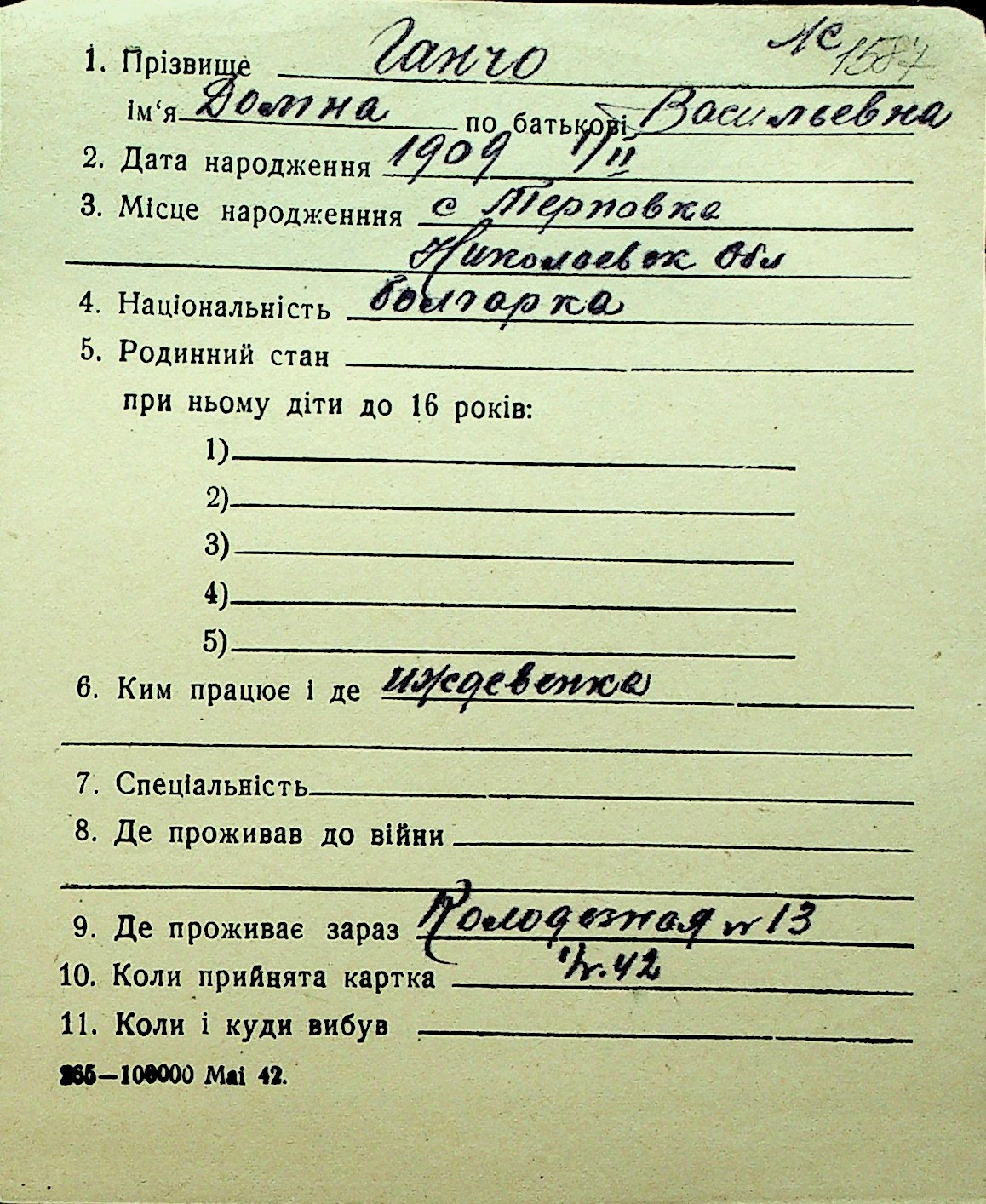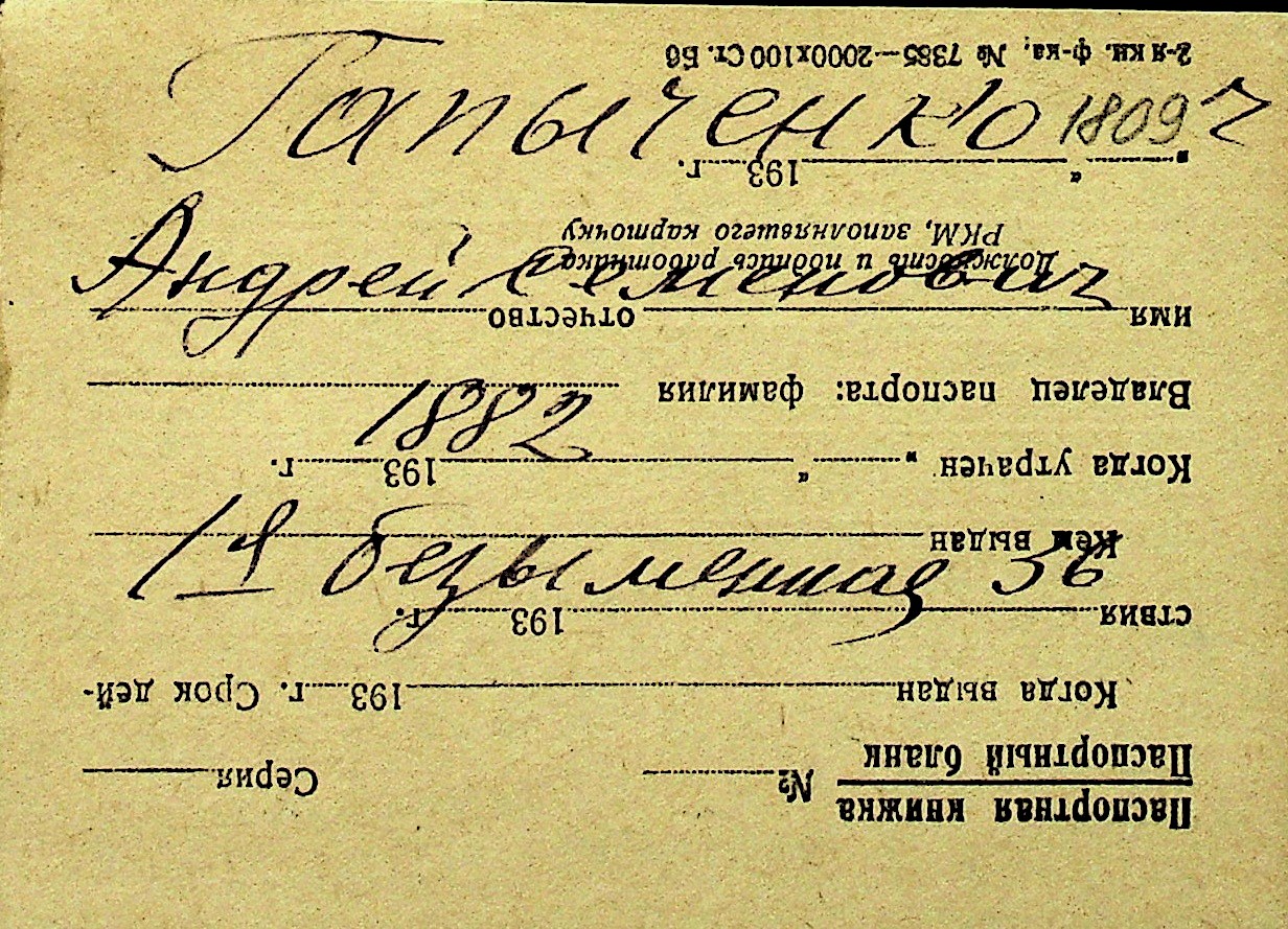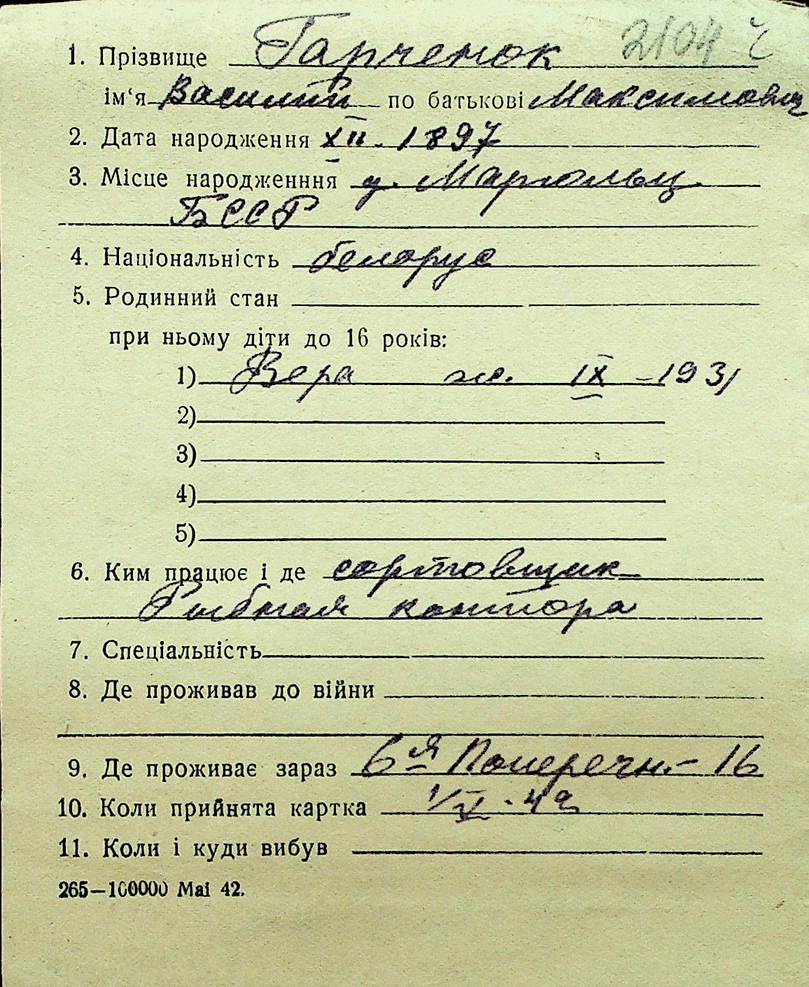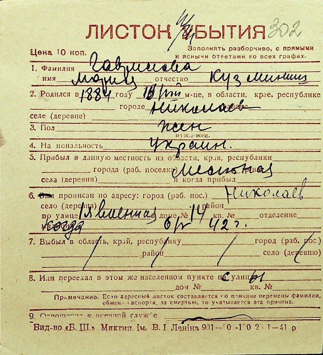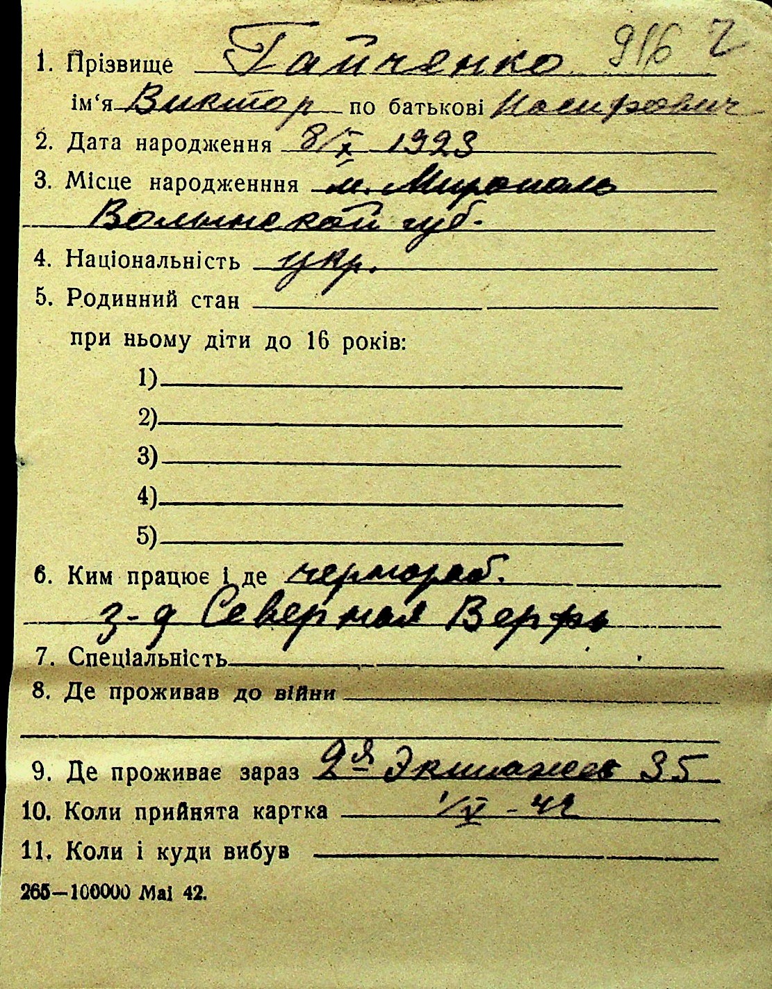 • • Перелік карток до фонду № Н-1016