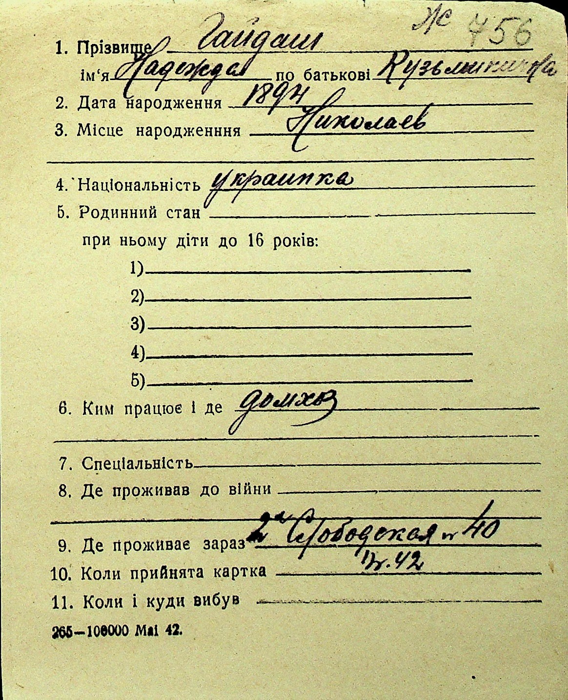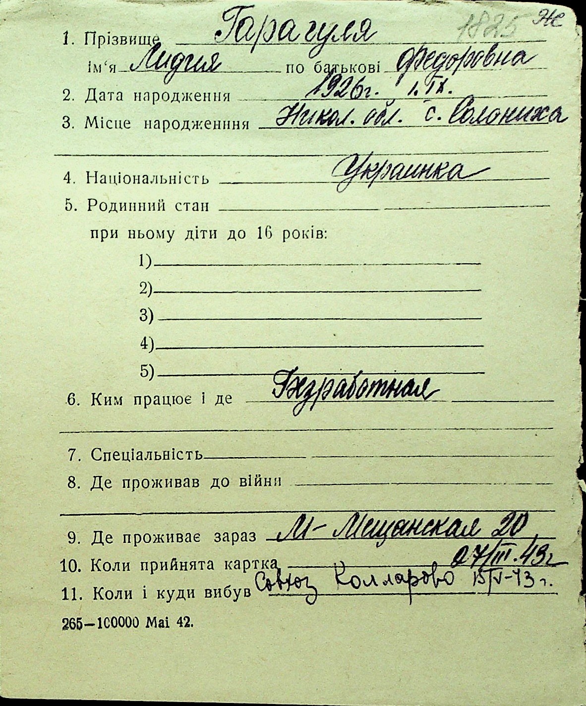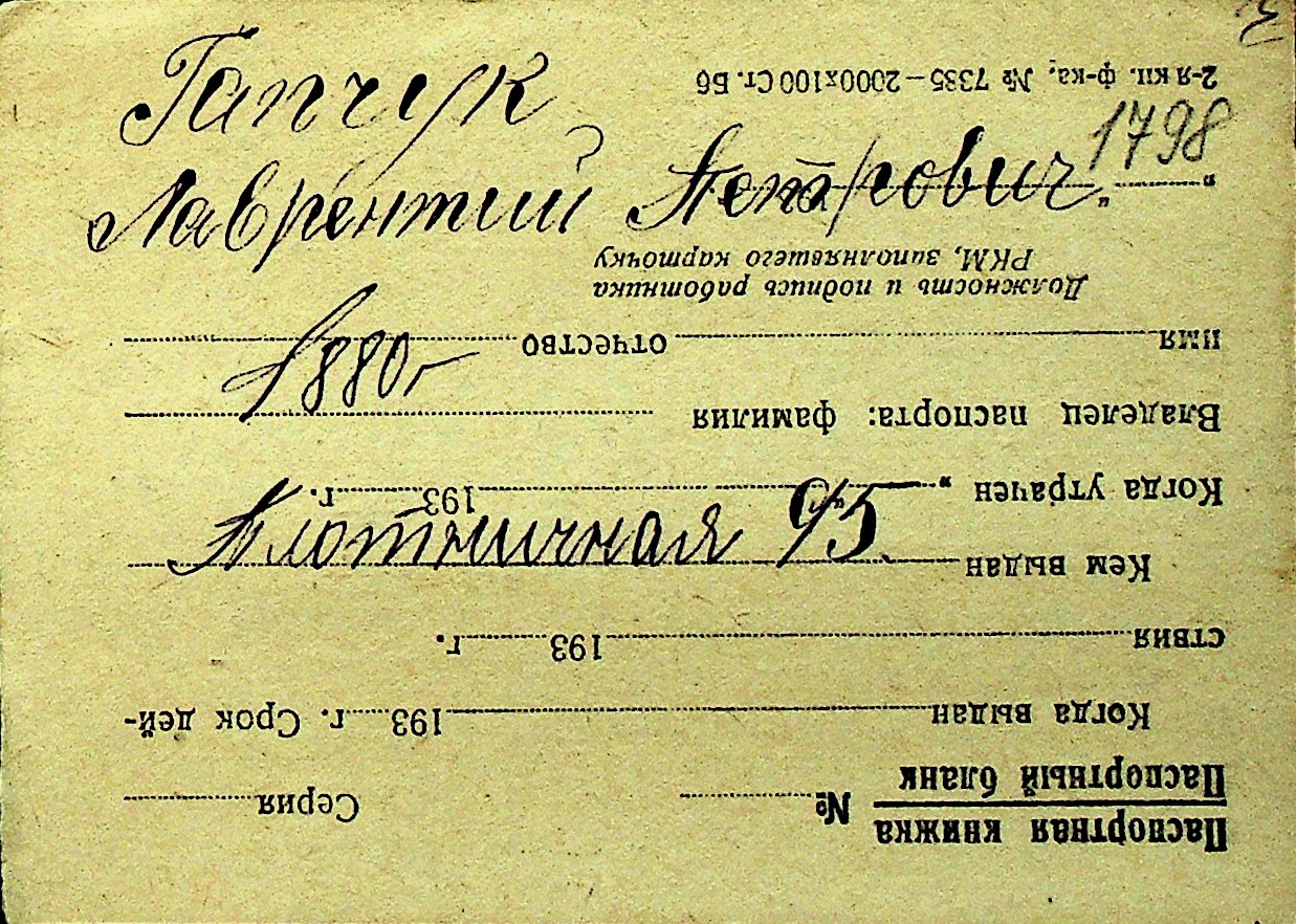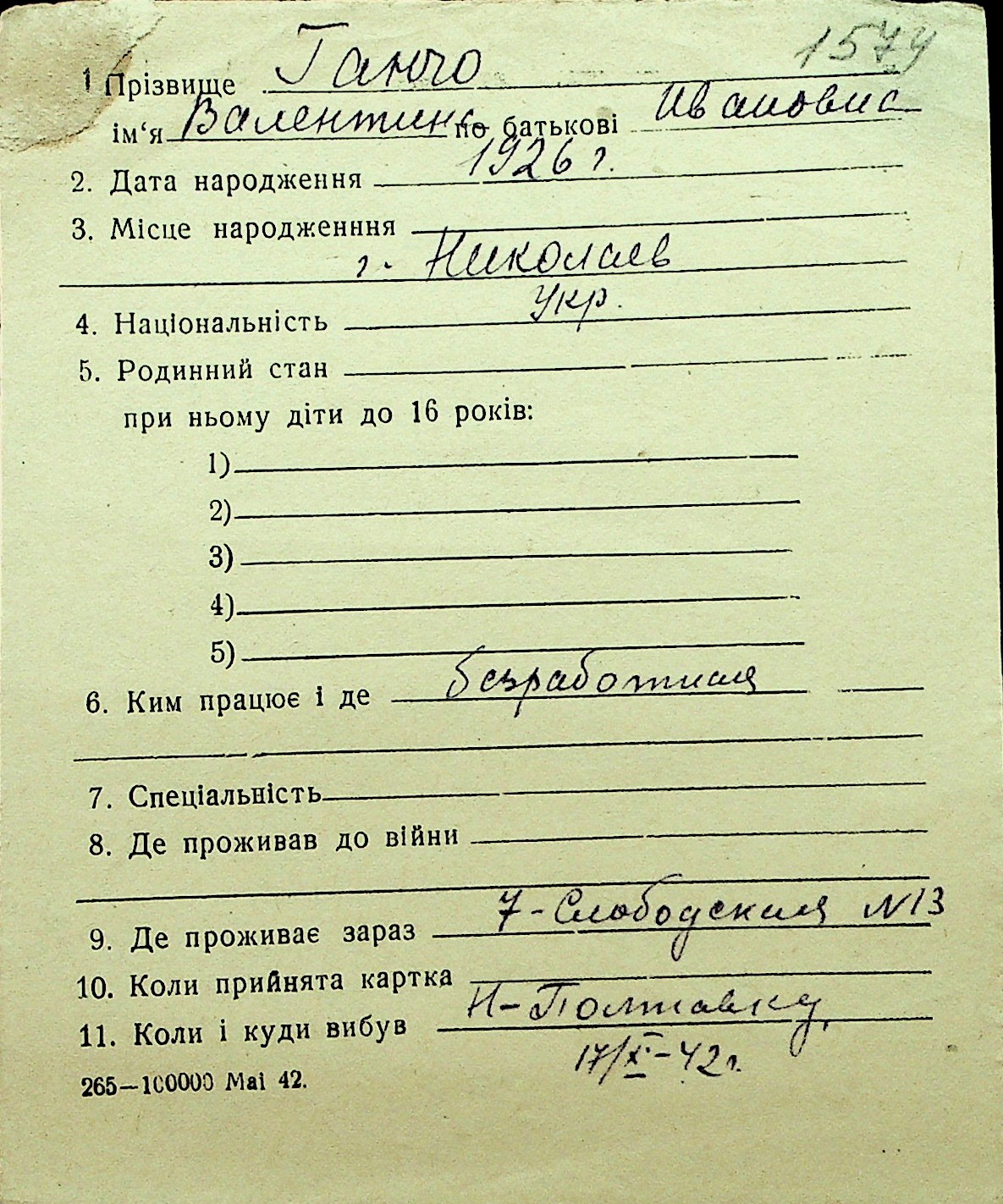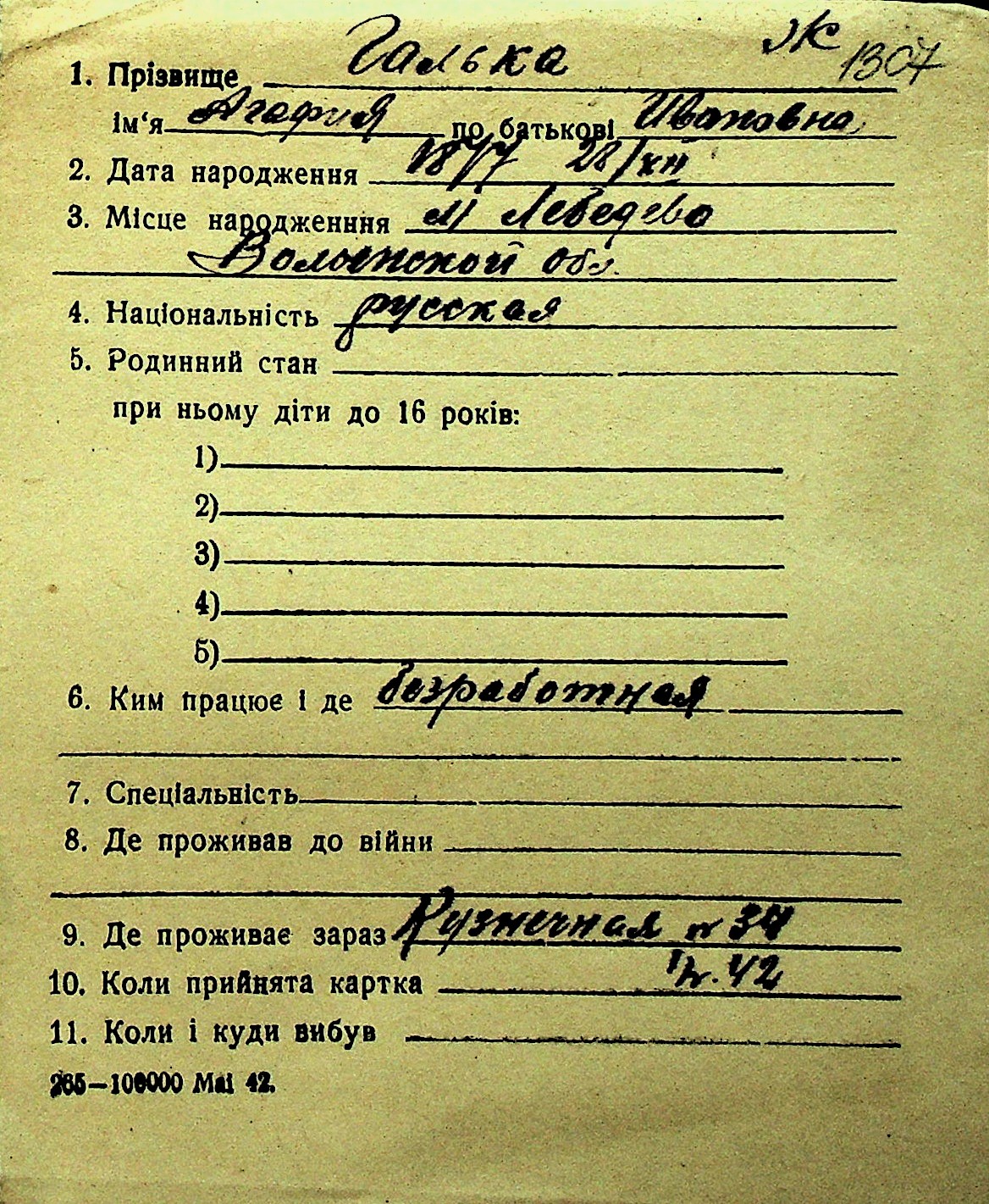 • • Перелік карток до фонду № Н-1016