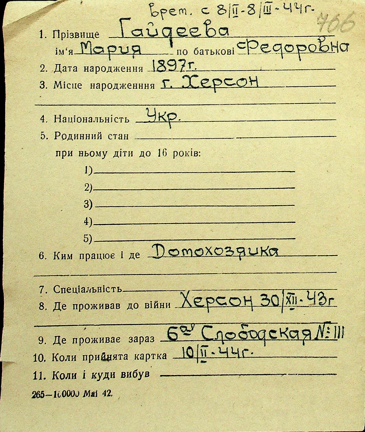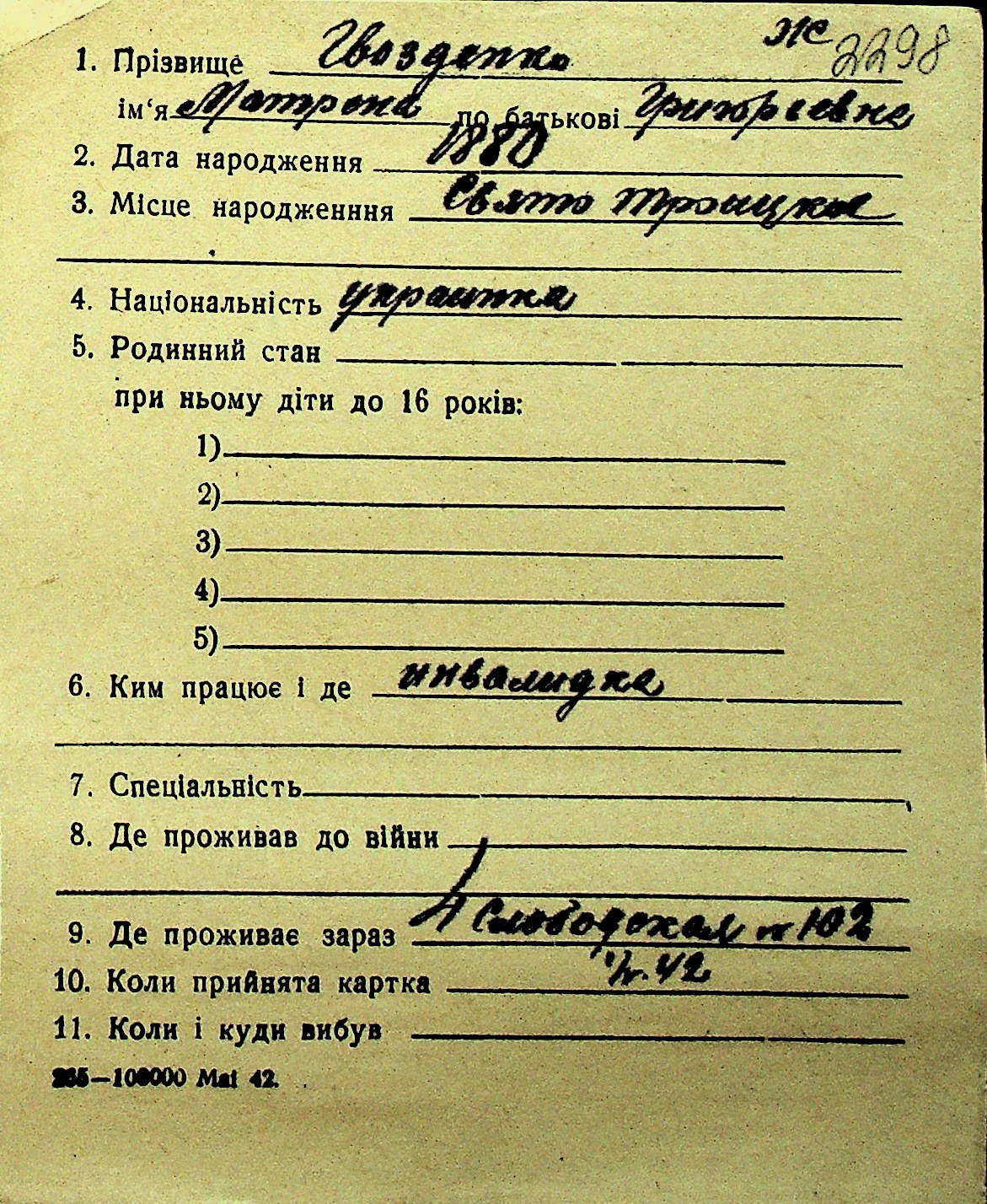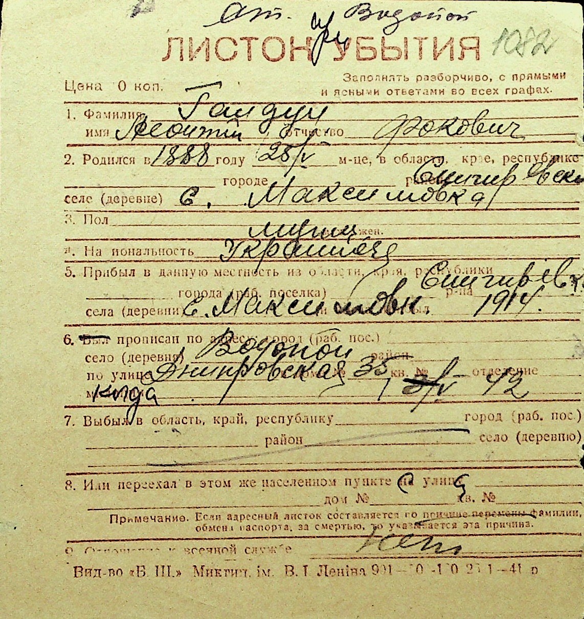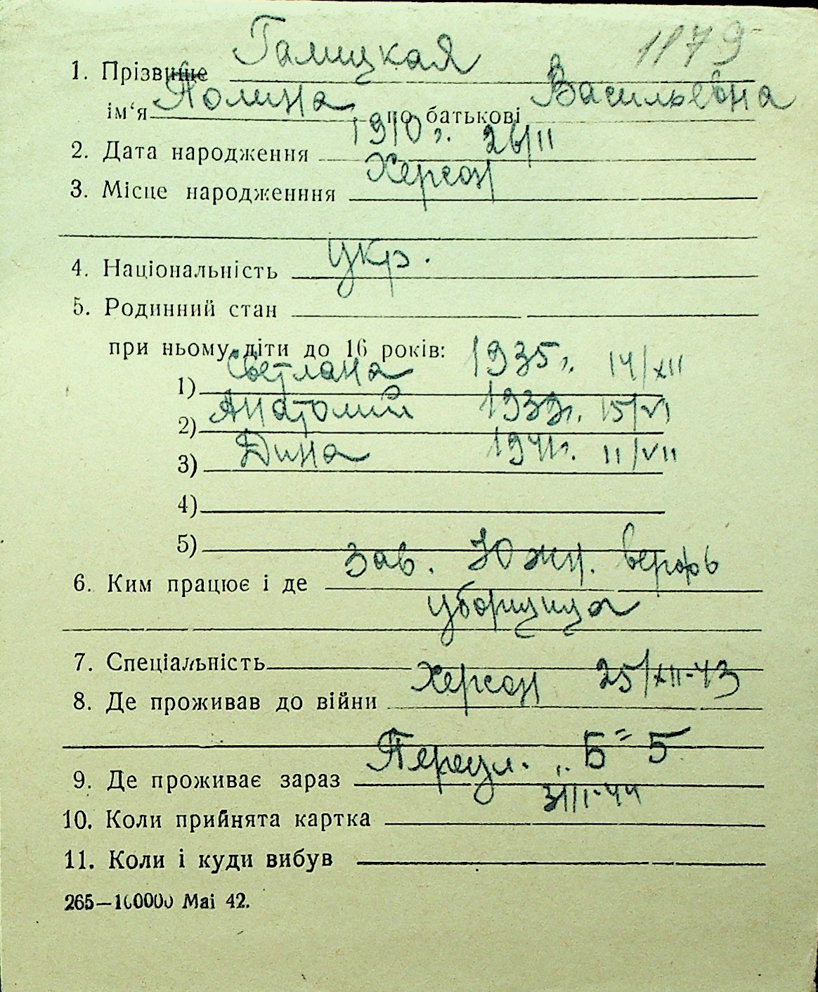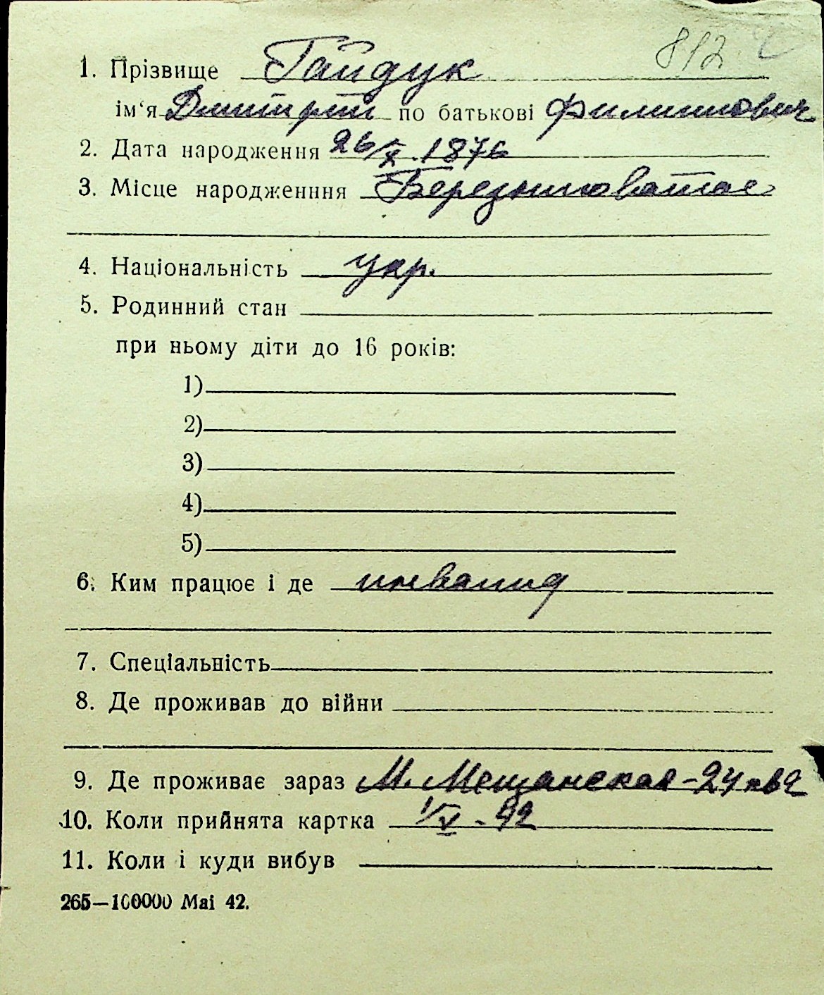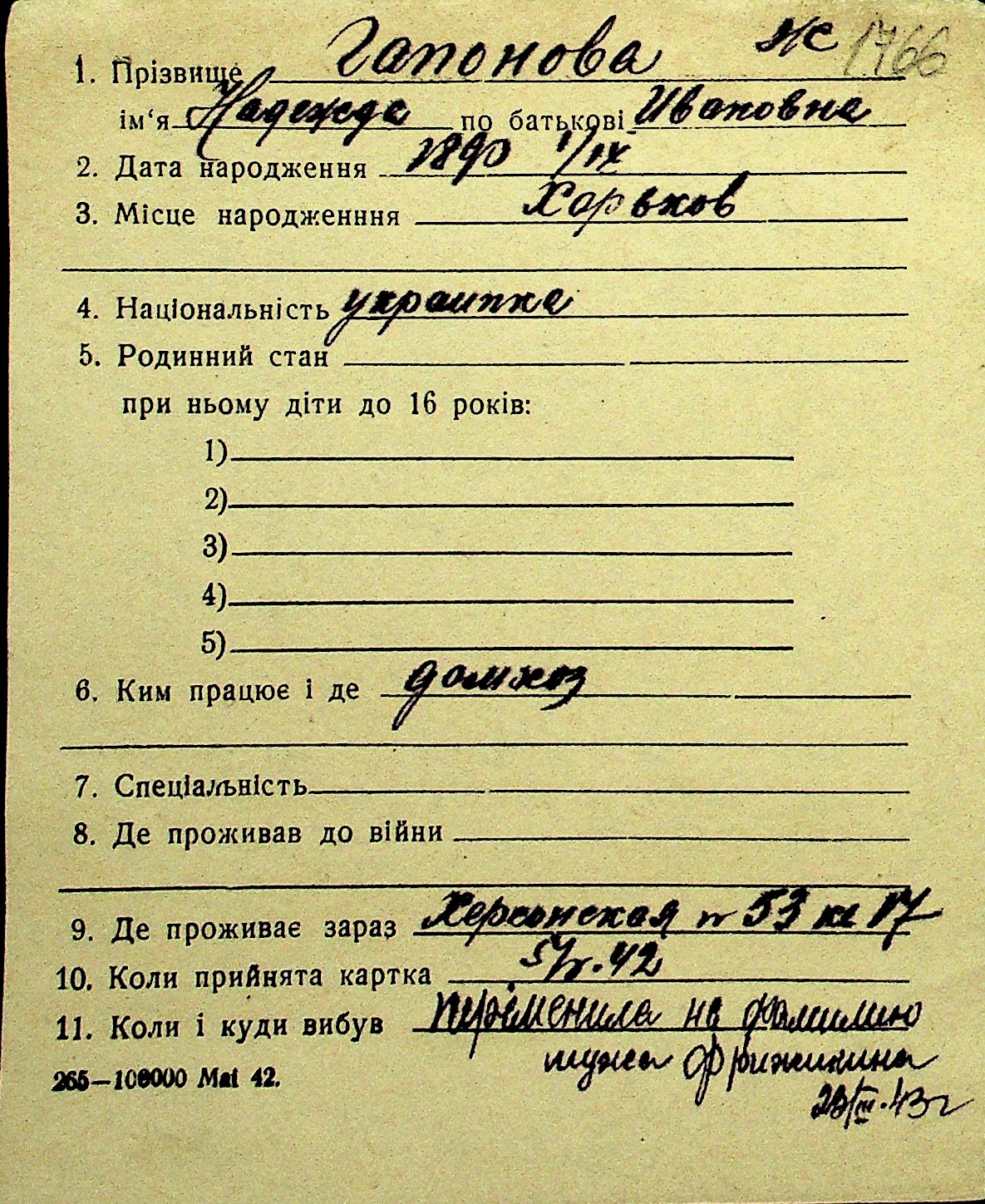 • • Перелік карток до фонду № Н-1016