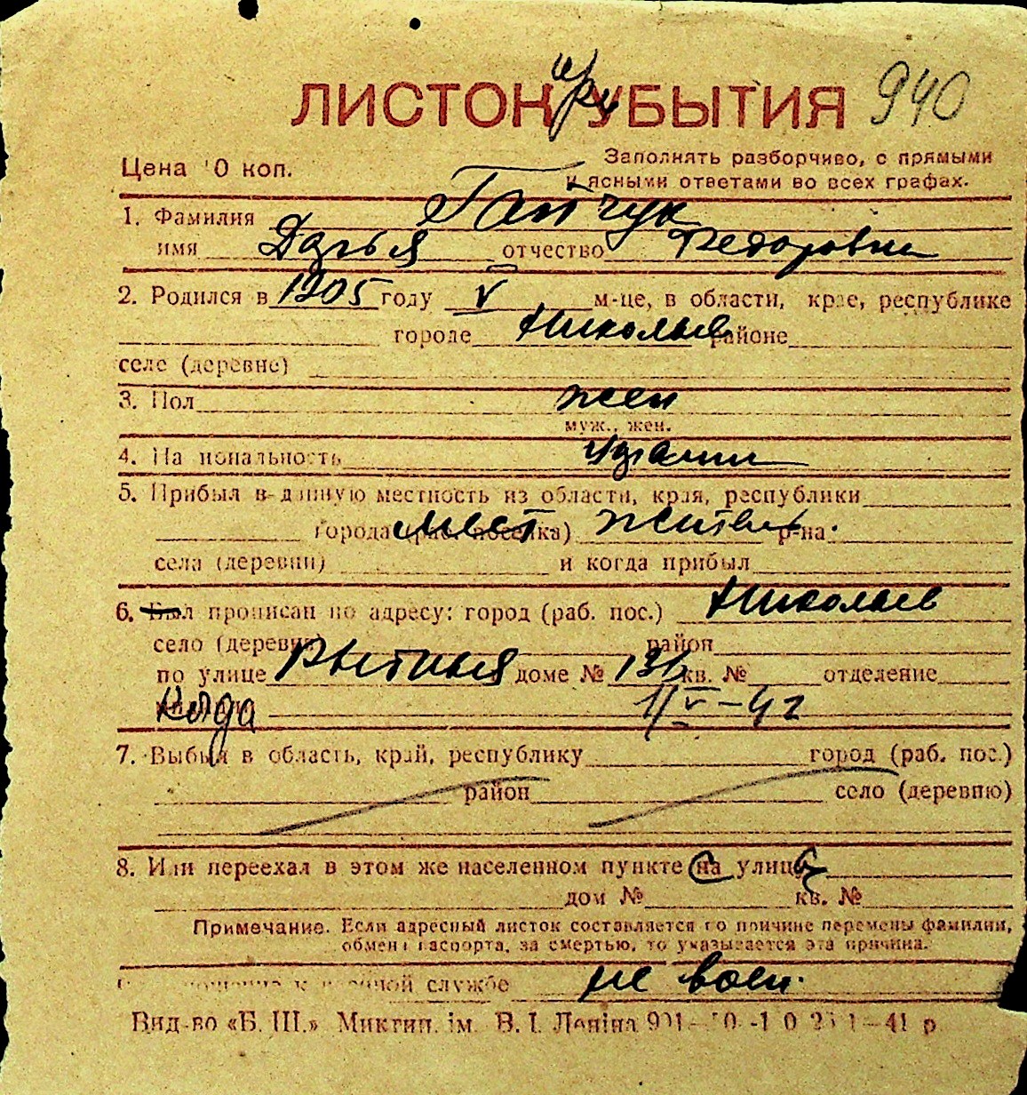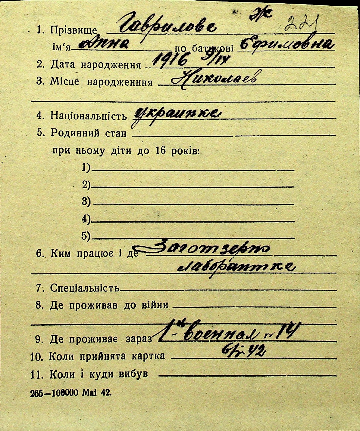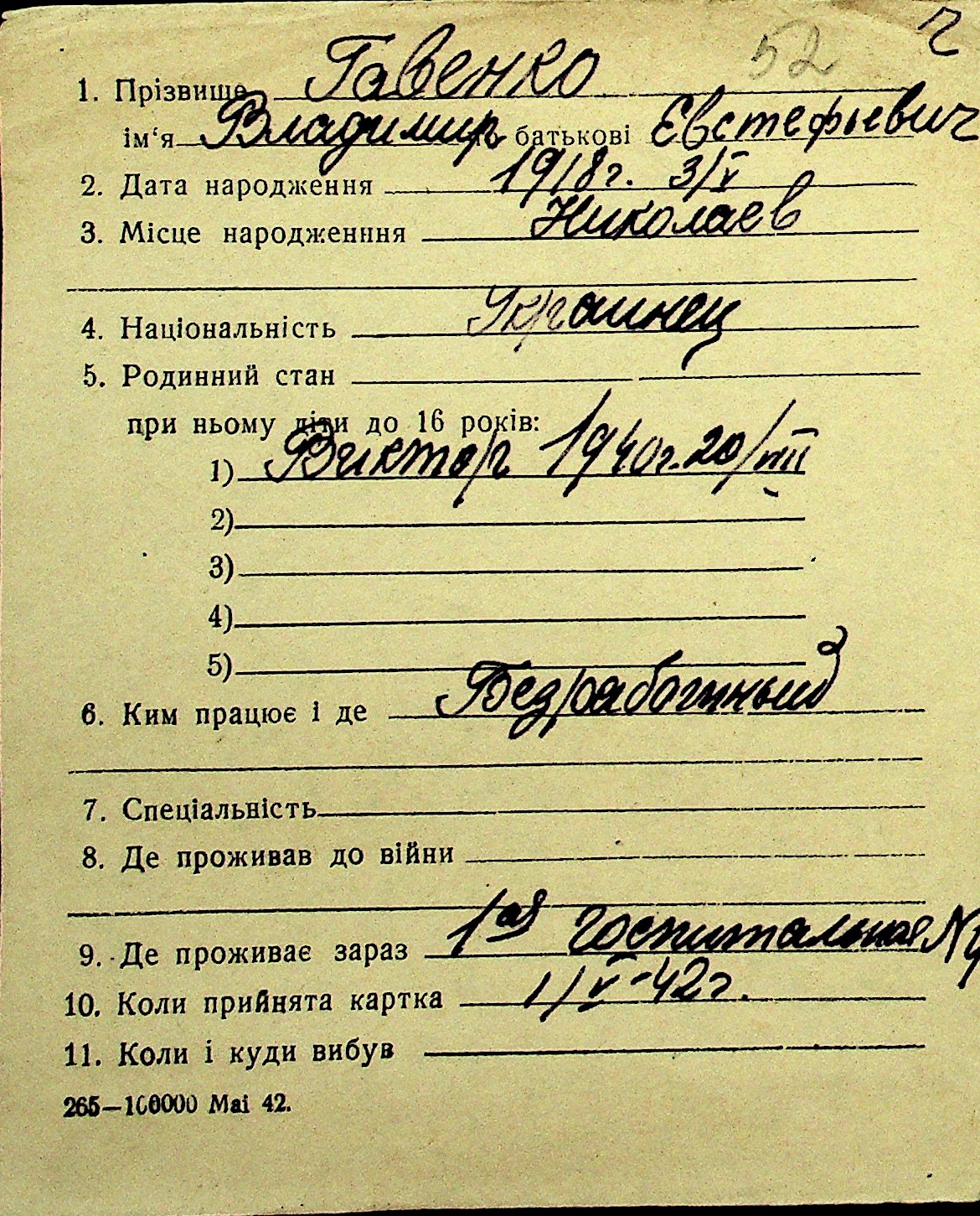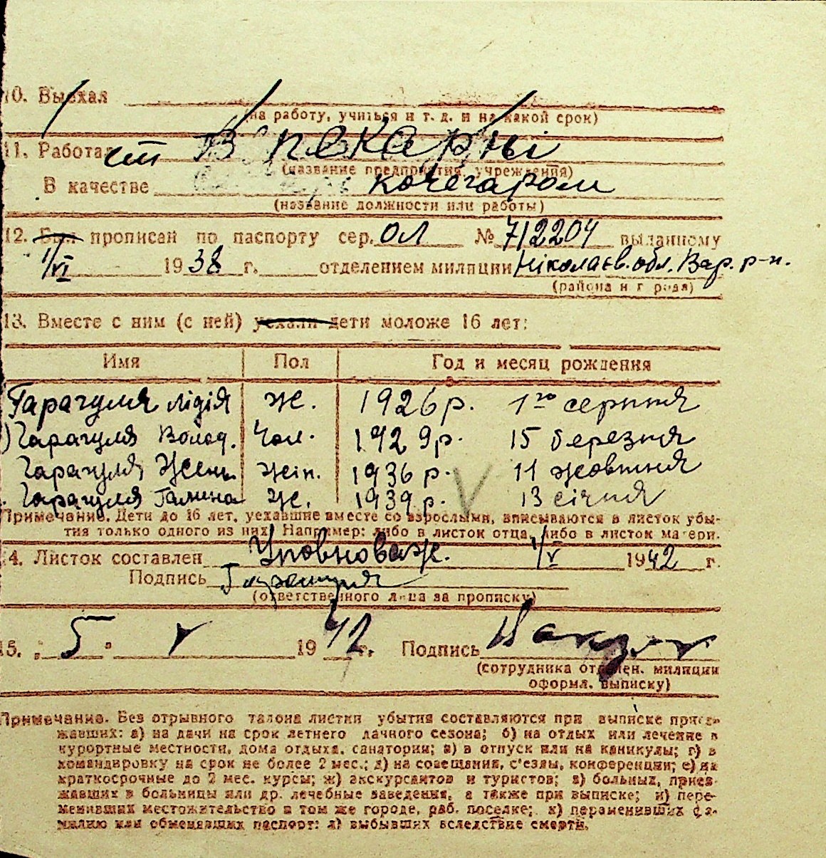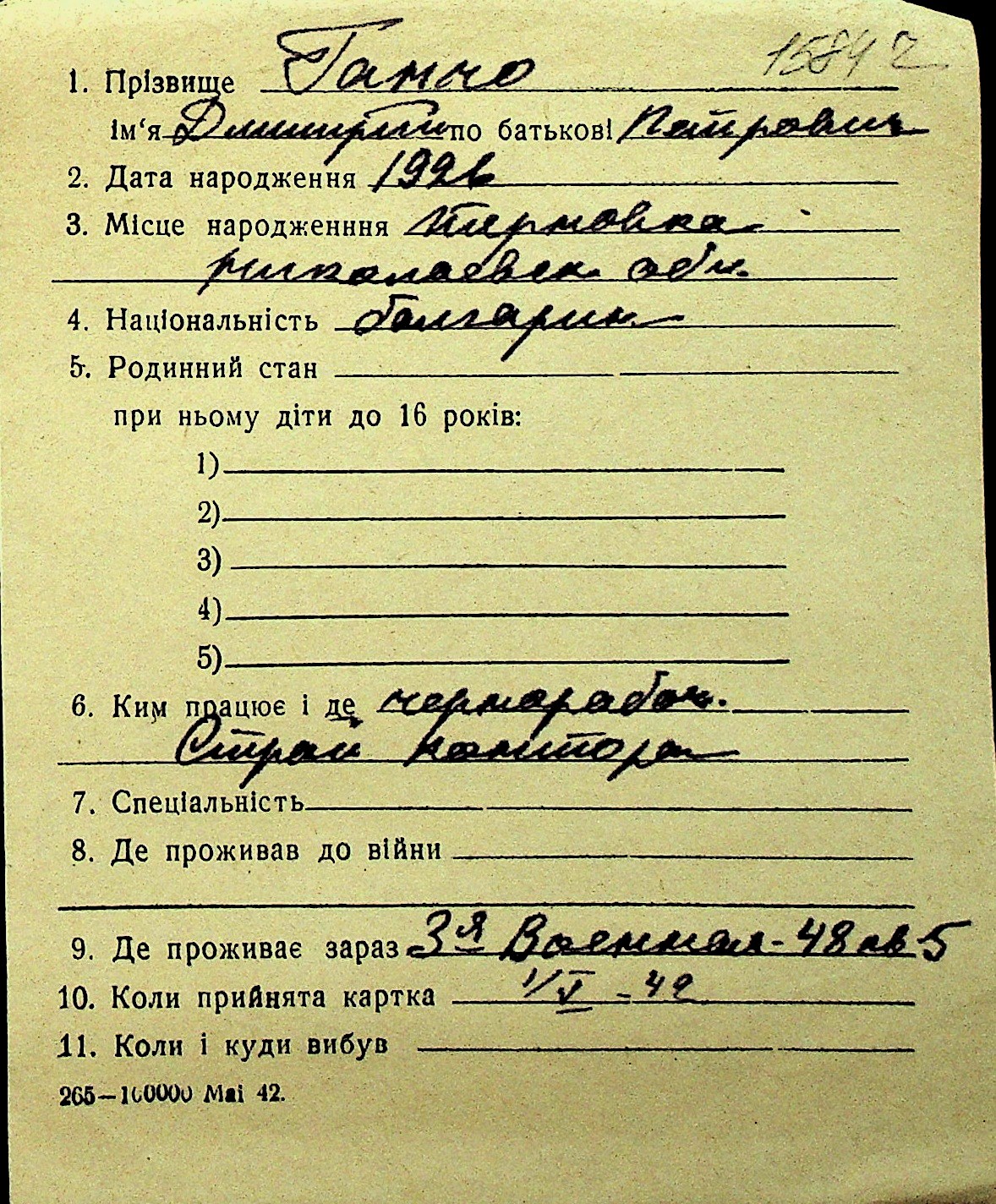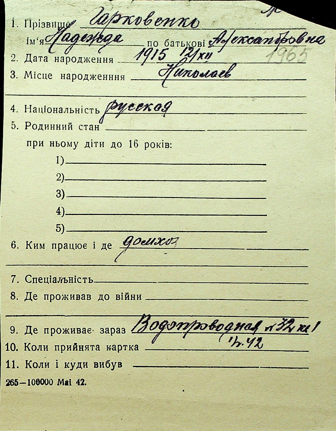 • • Перелік карток до фонду № Н-1016