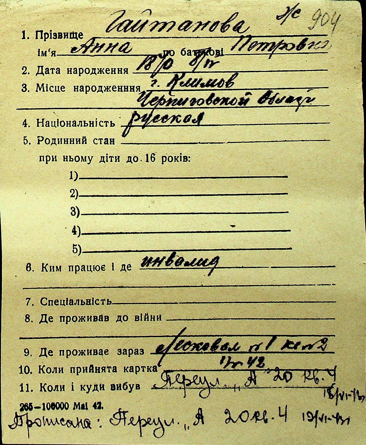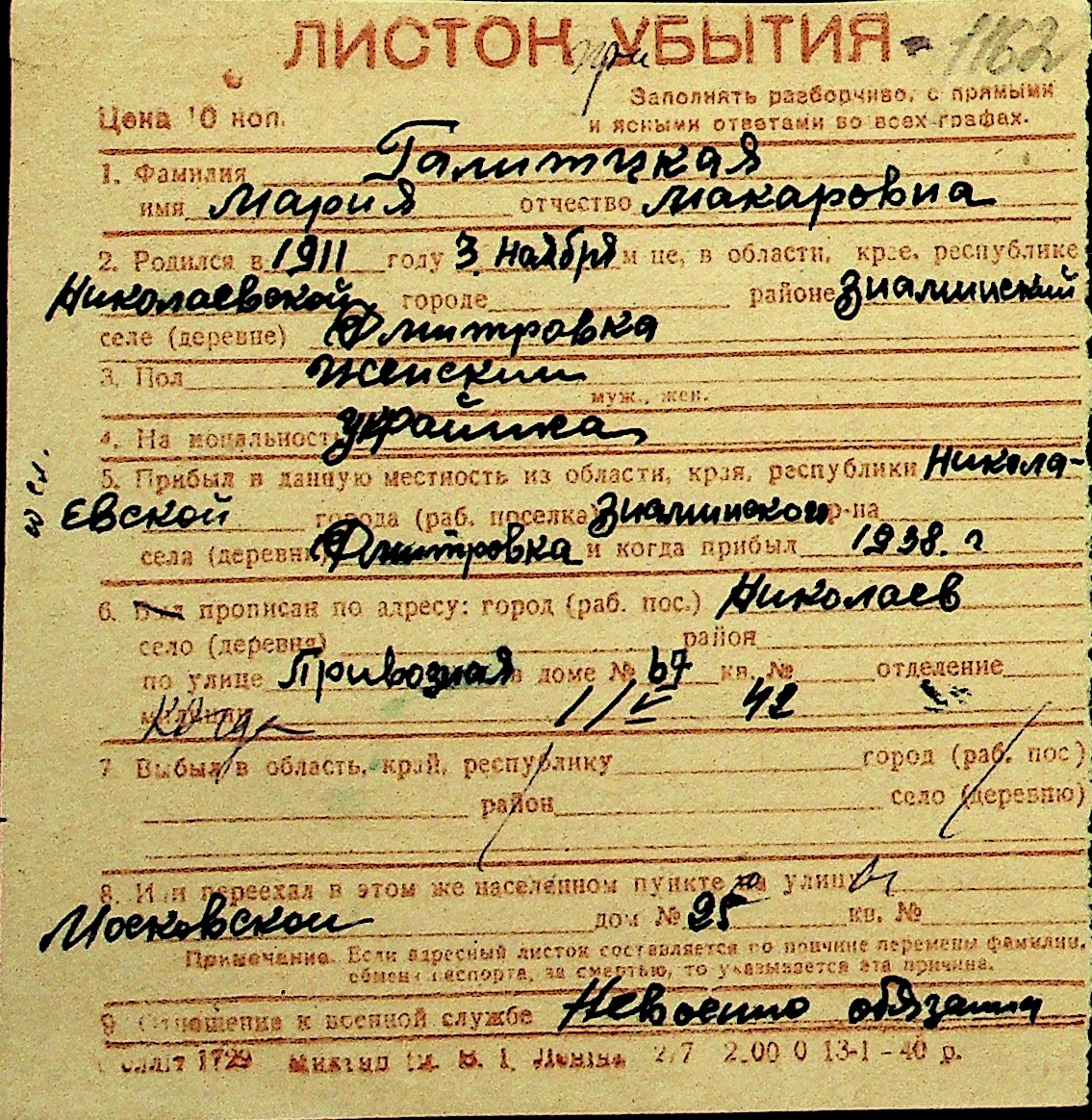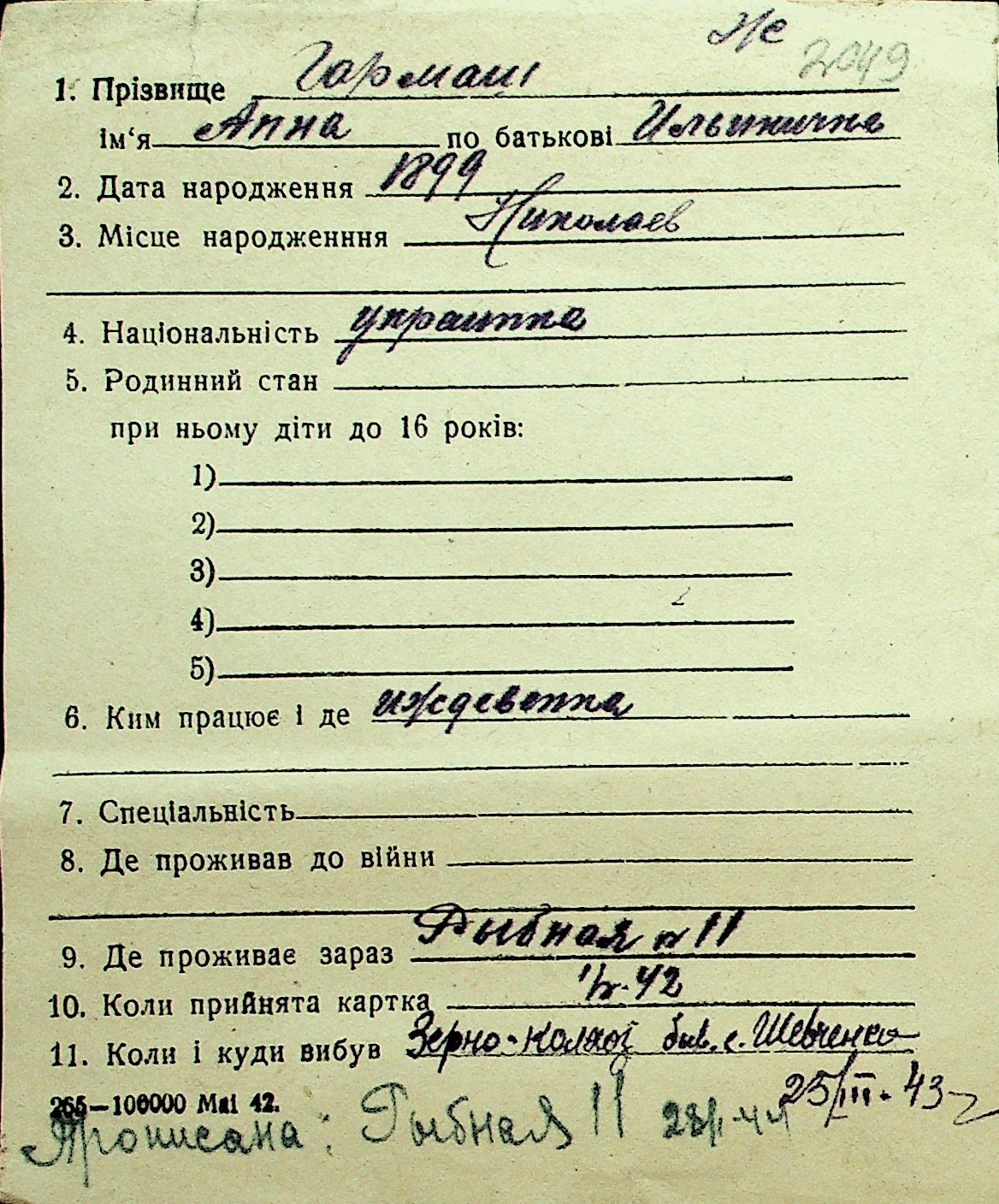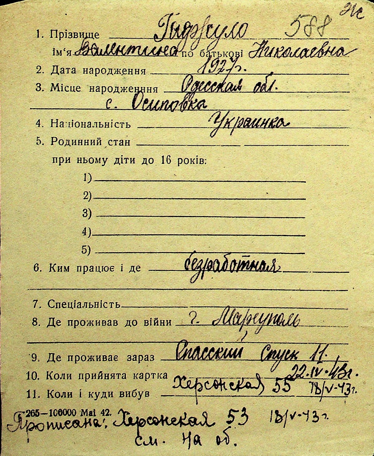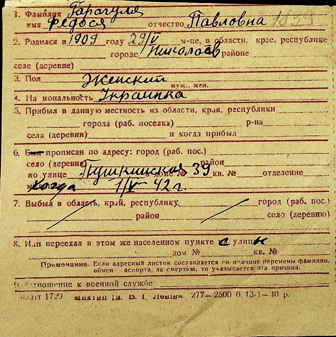 • • Перелік карток до фонду № Н-1016