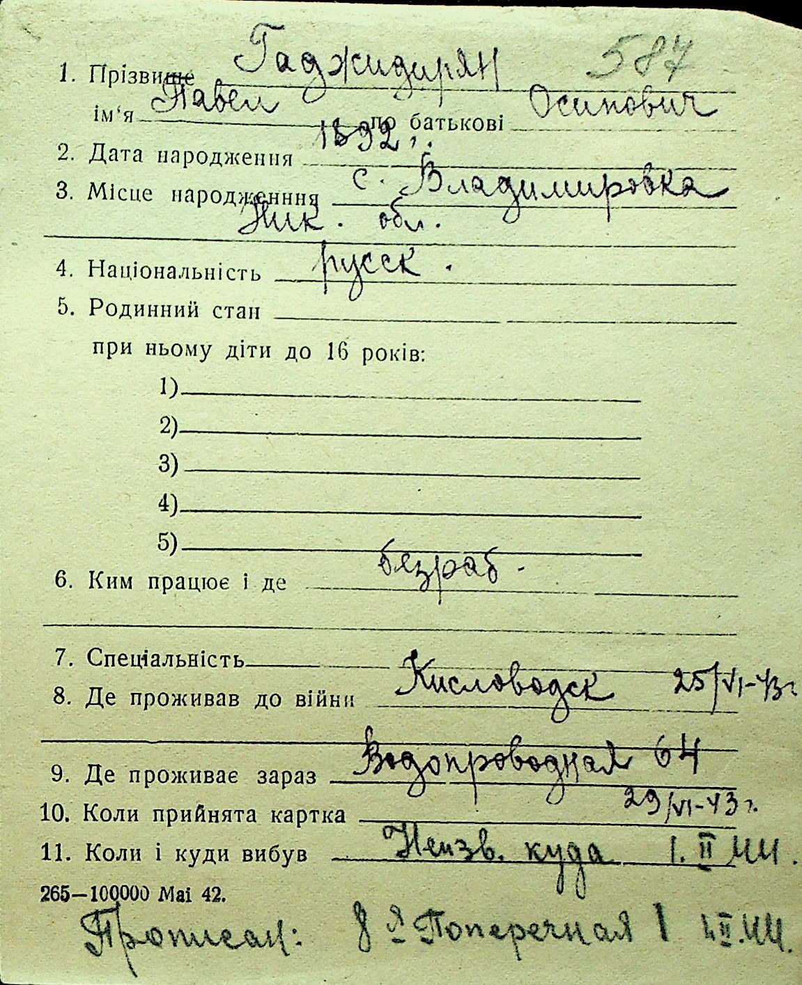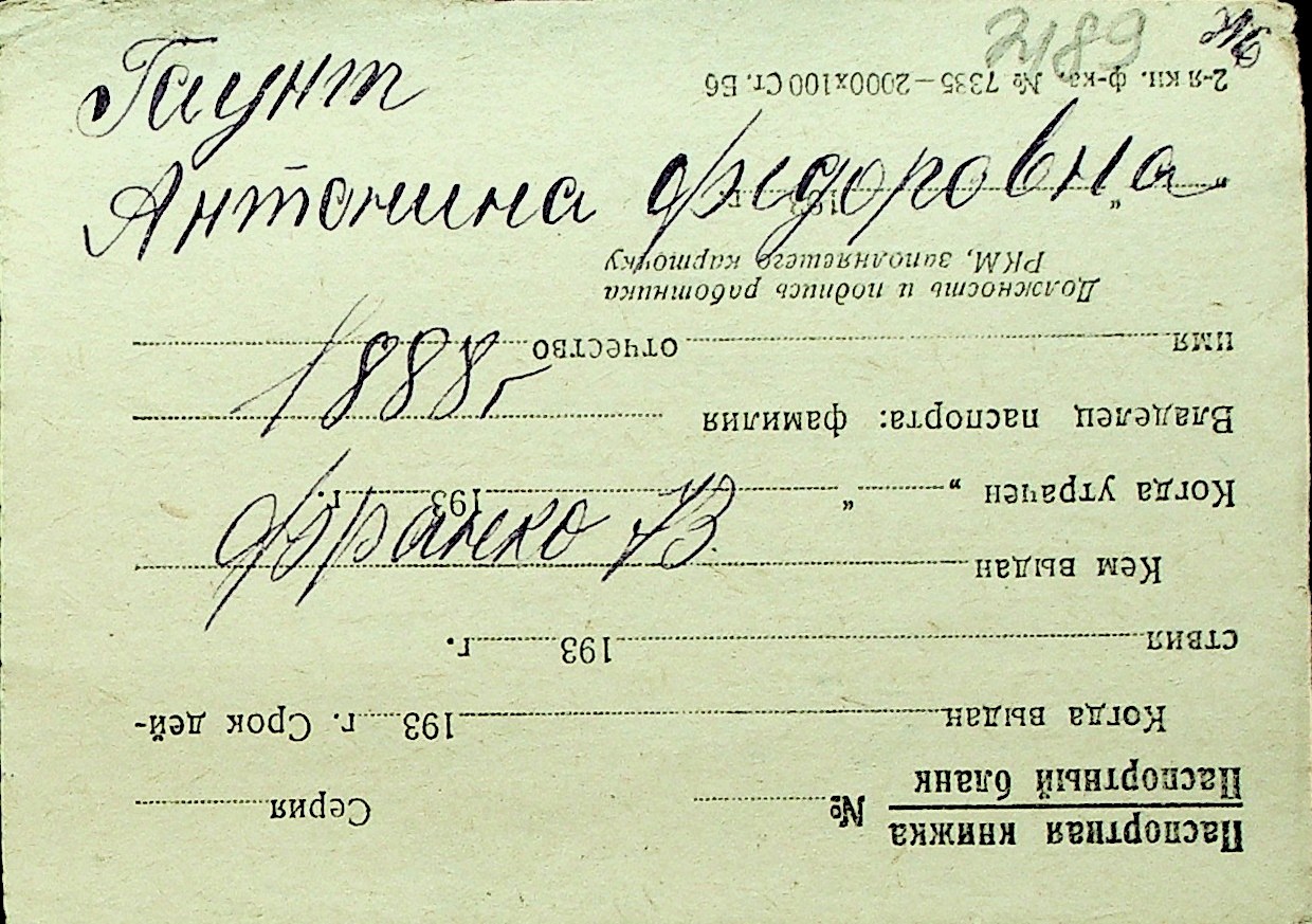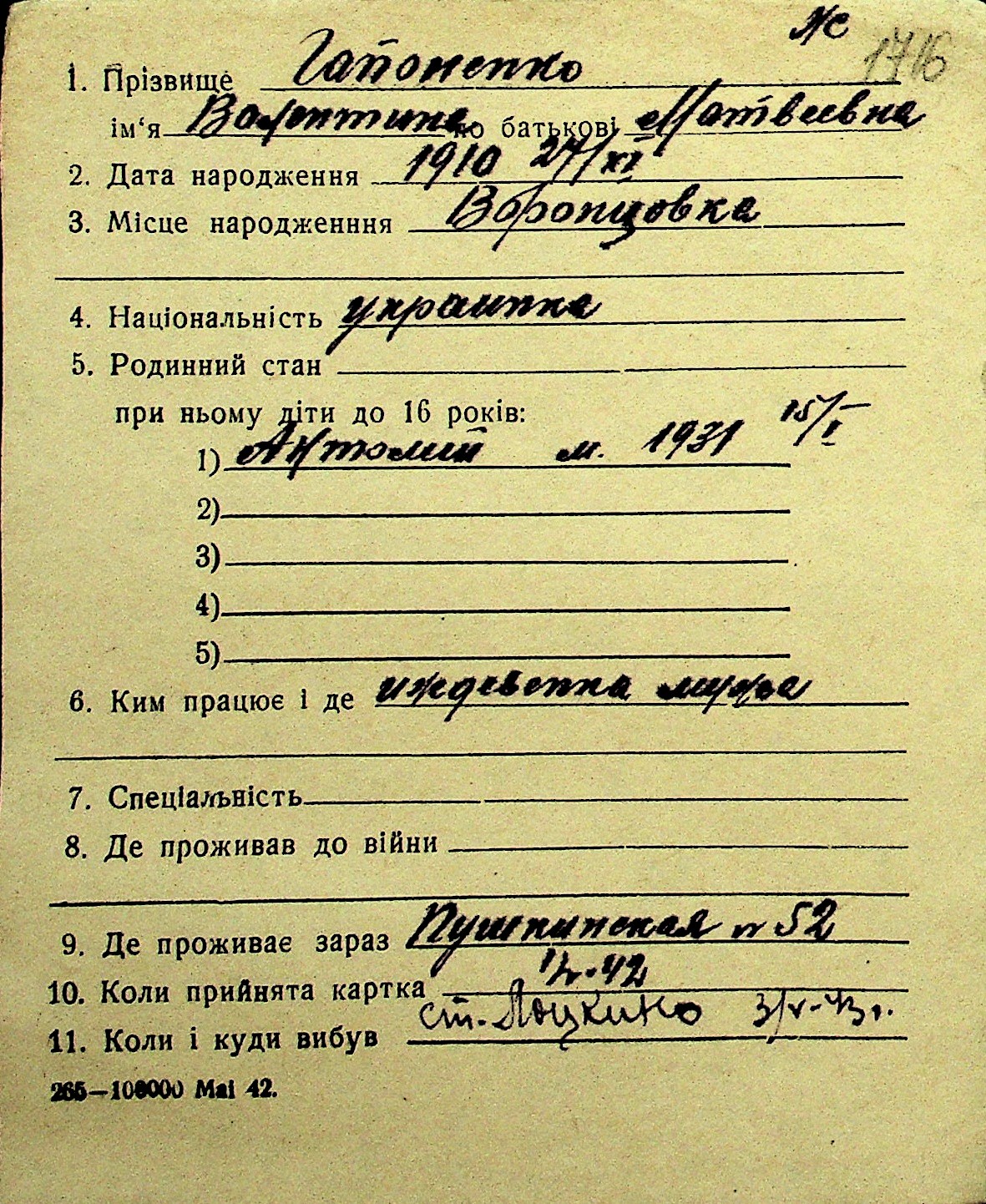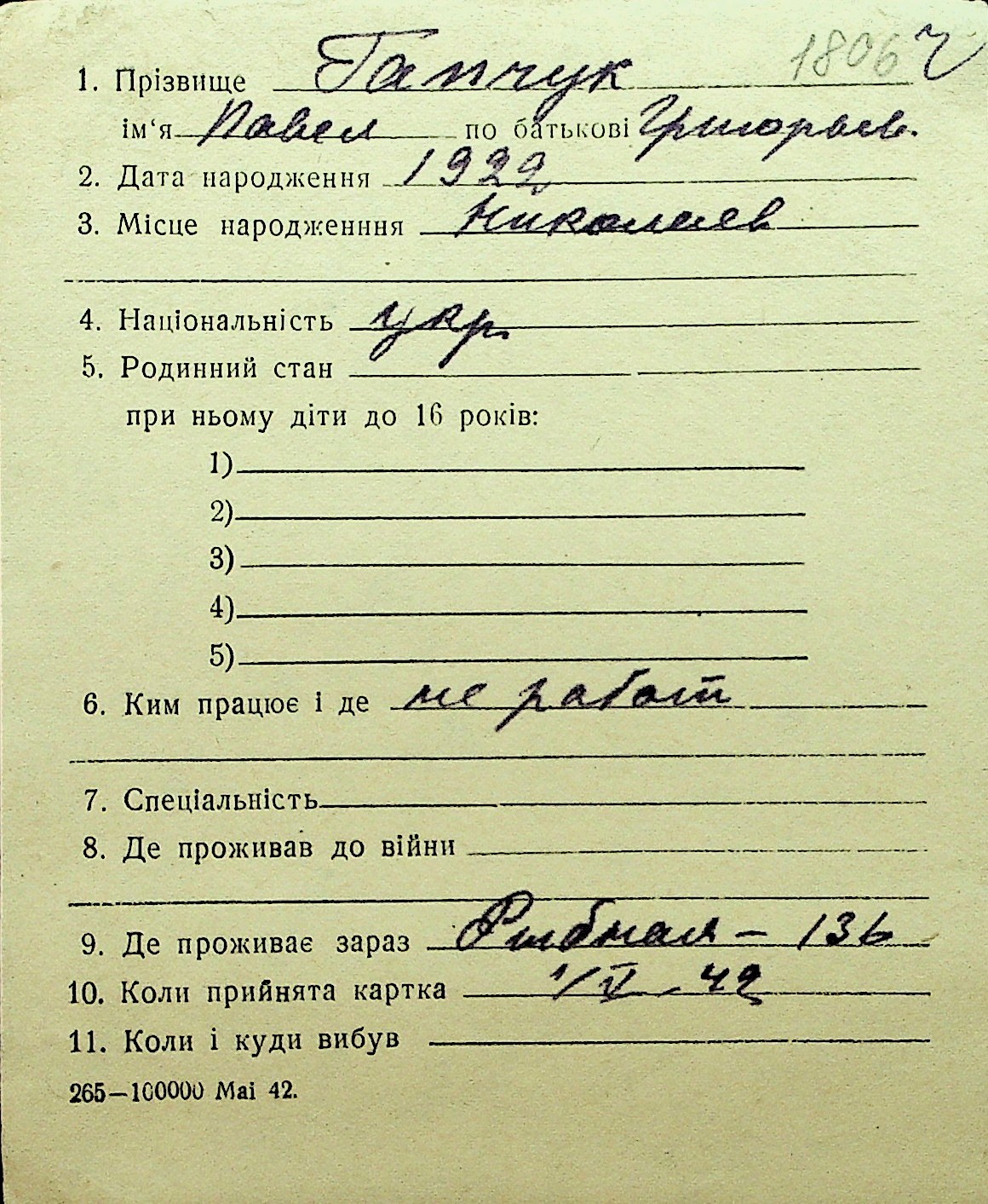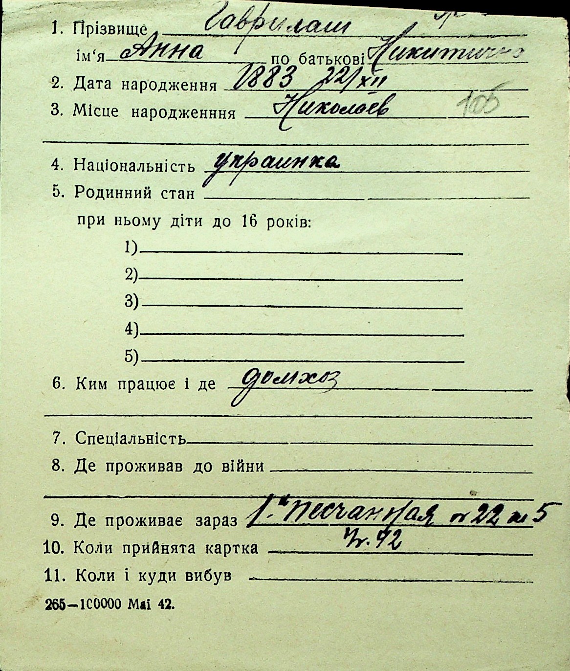• • Перелік карток до фонду № Н-1016