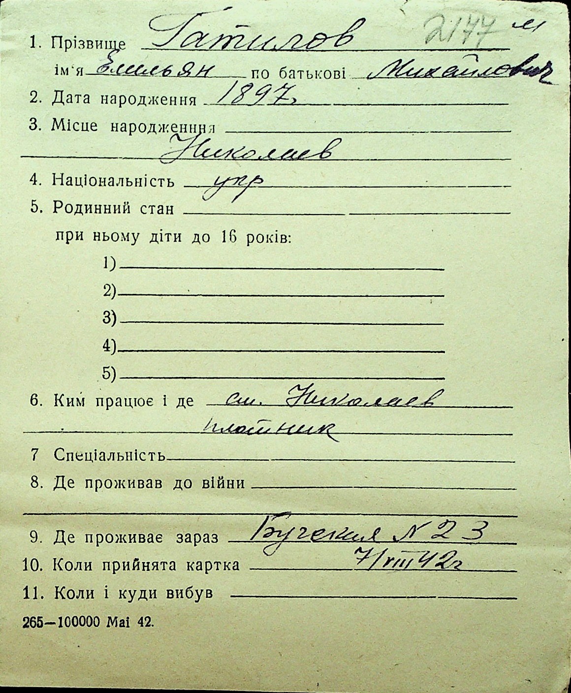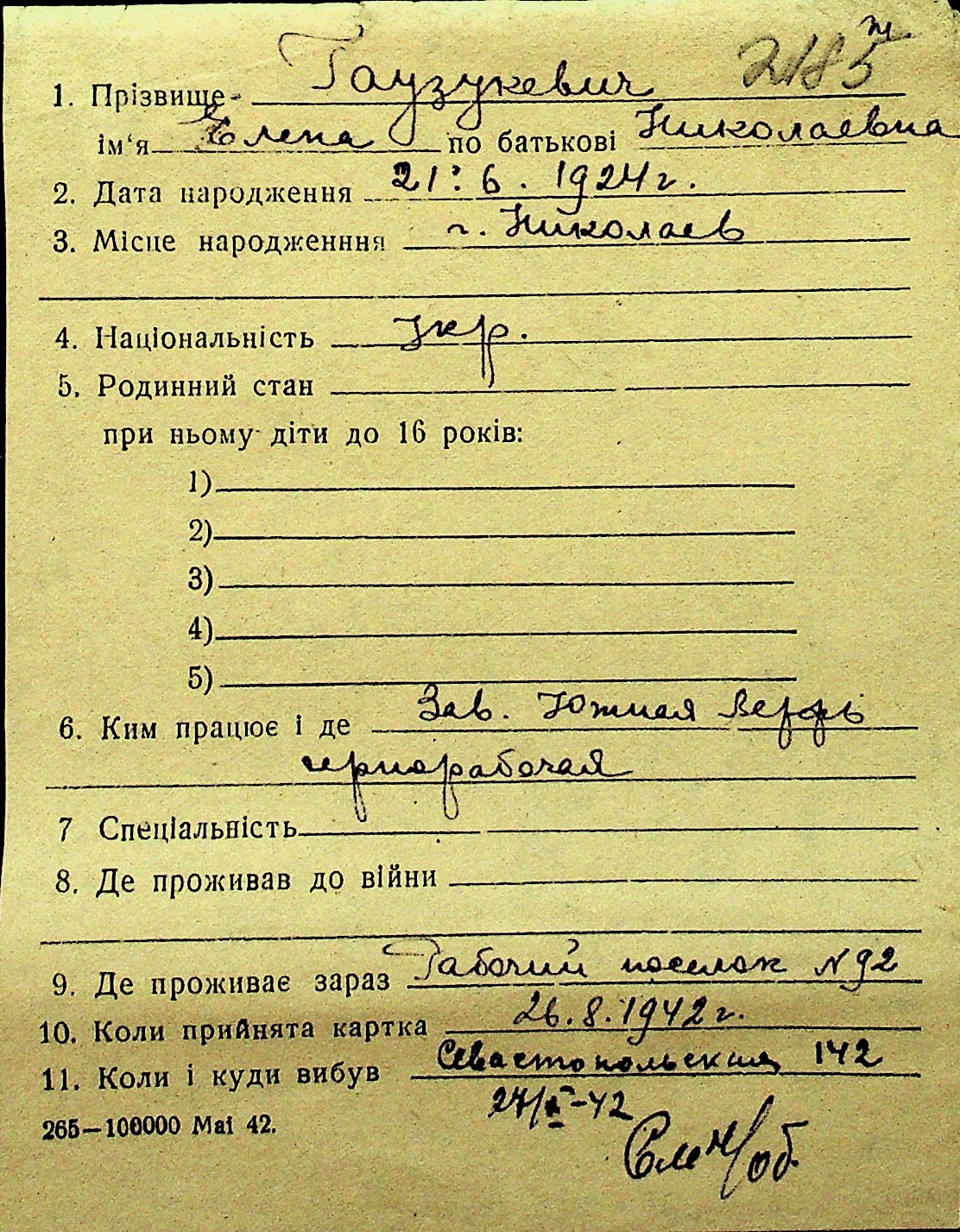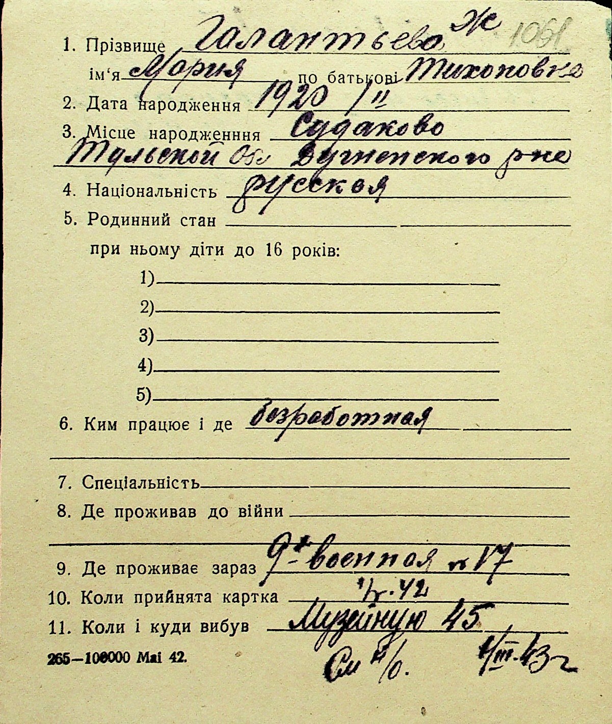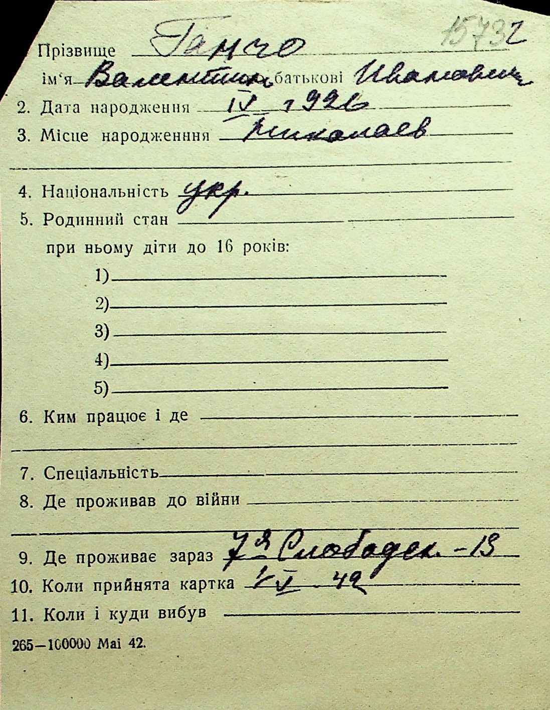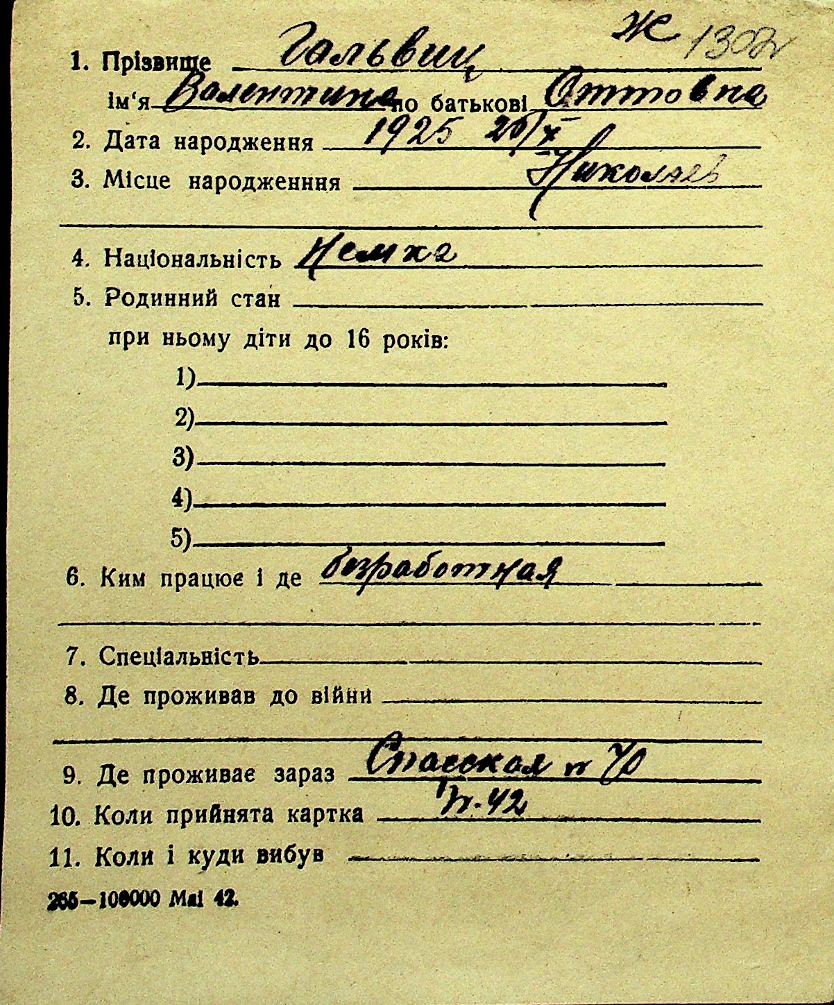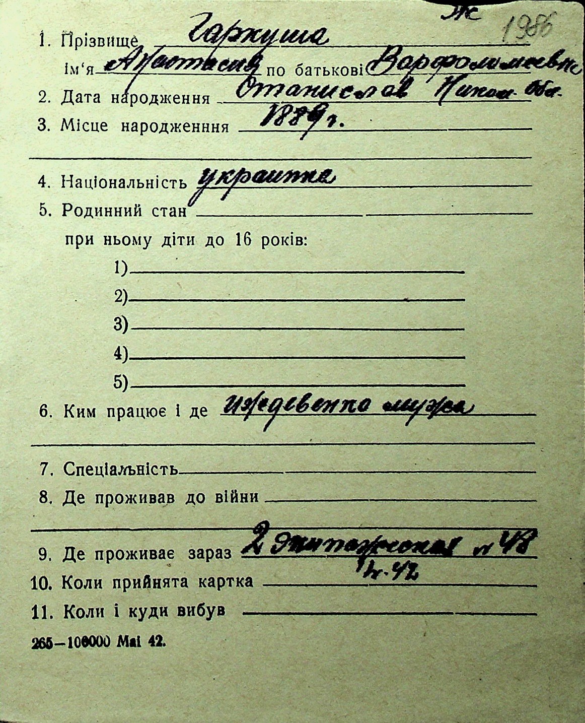 • • Перелік карток до фонду № Н-1016