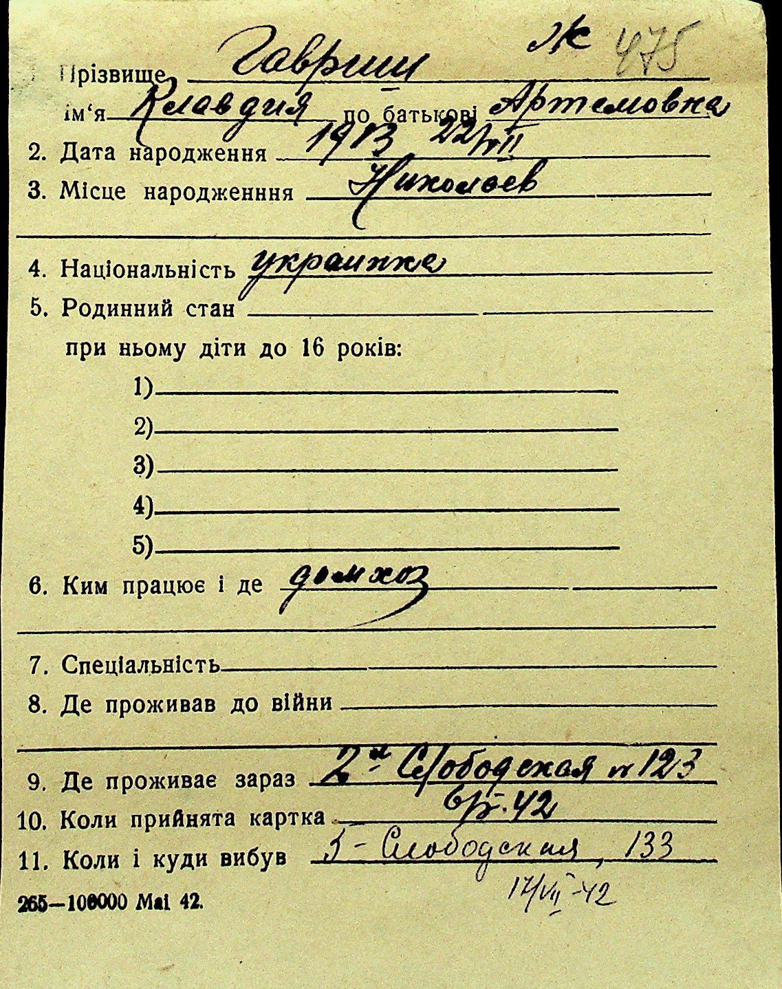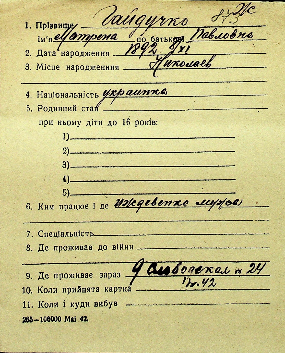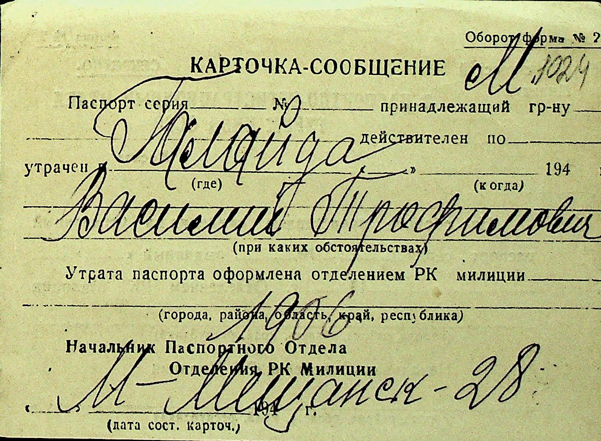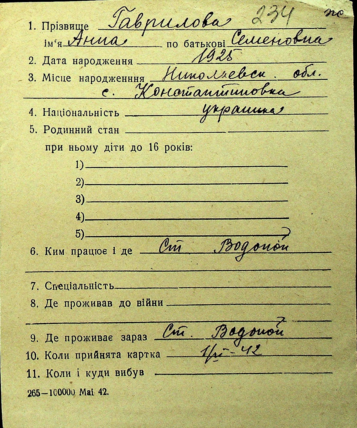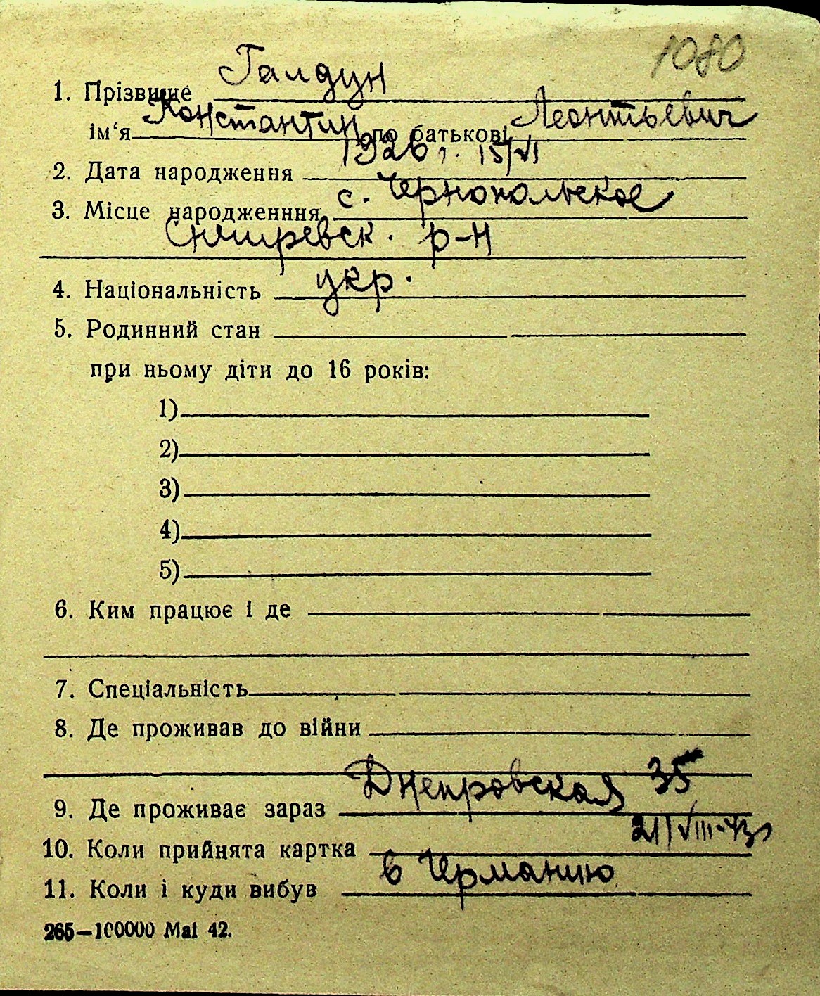 • • Перелік карток до фонду № Н-1016