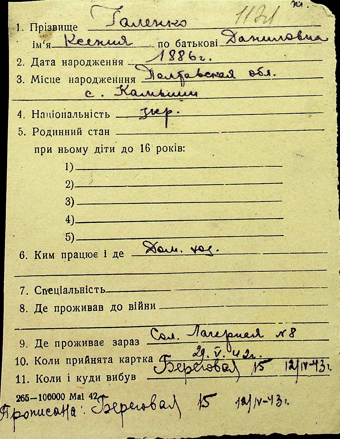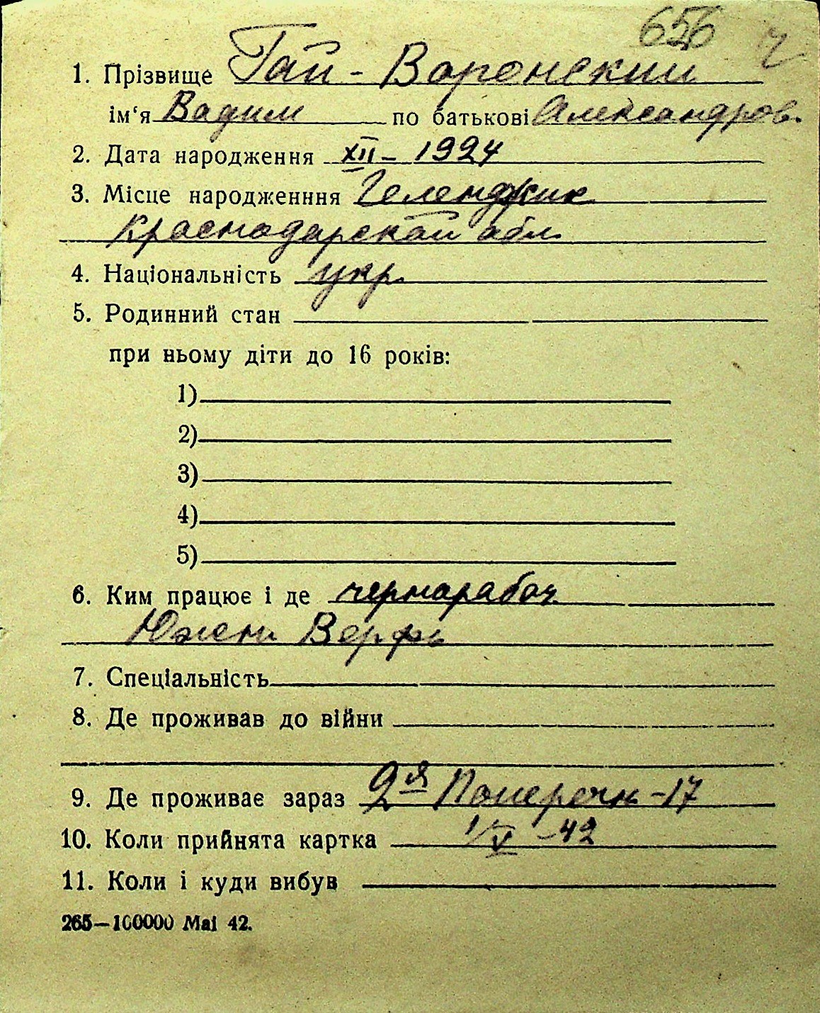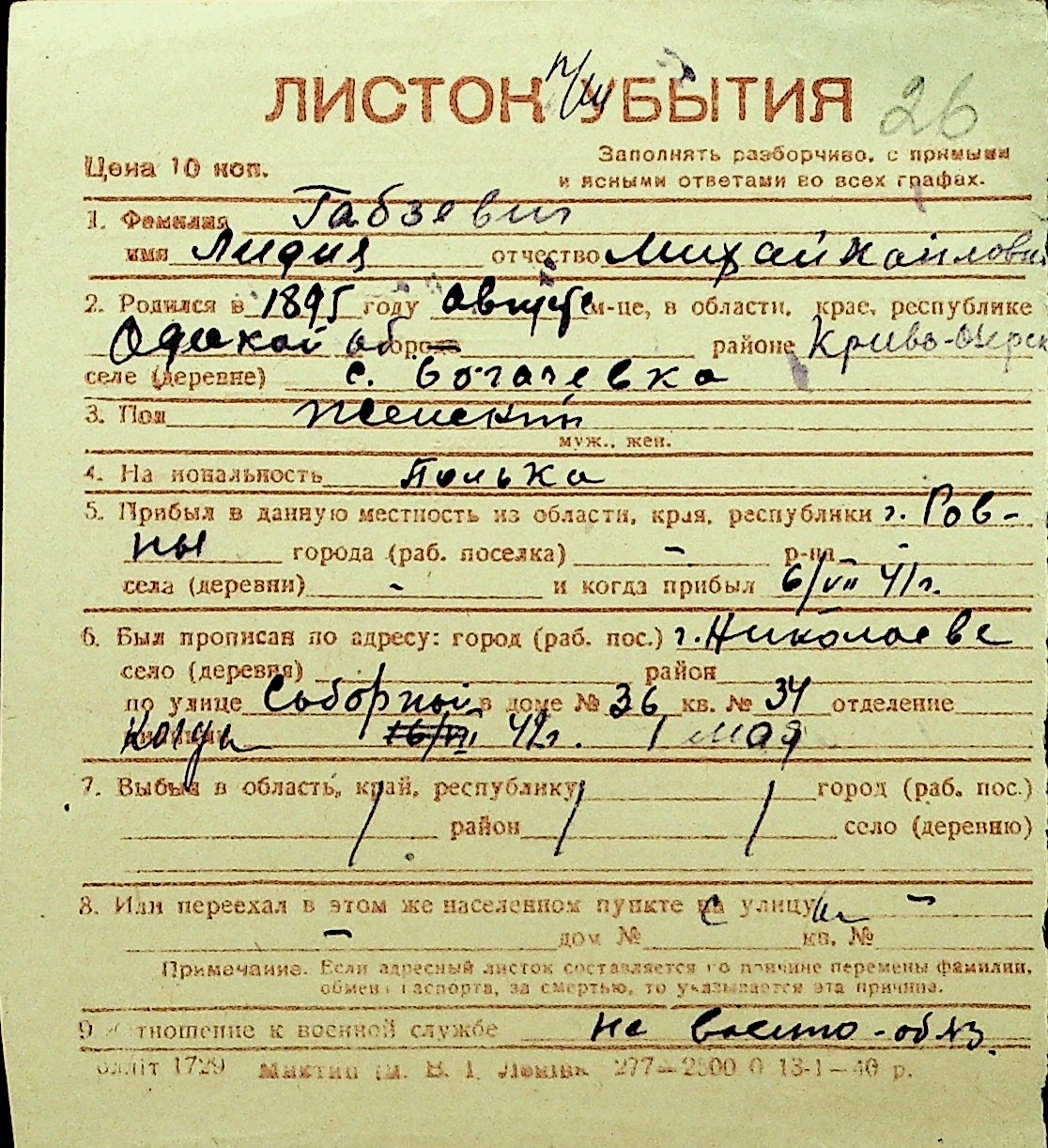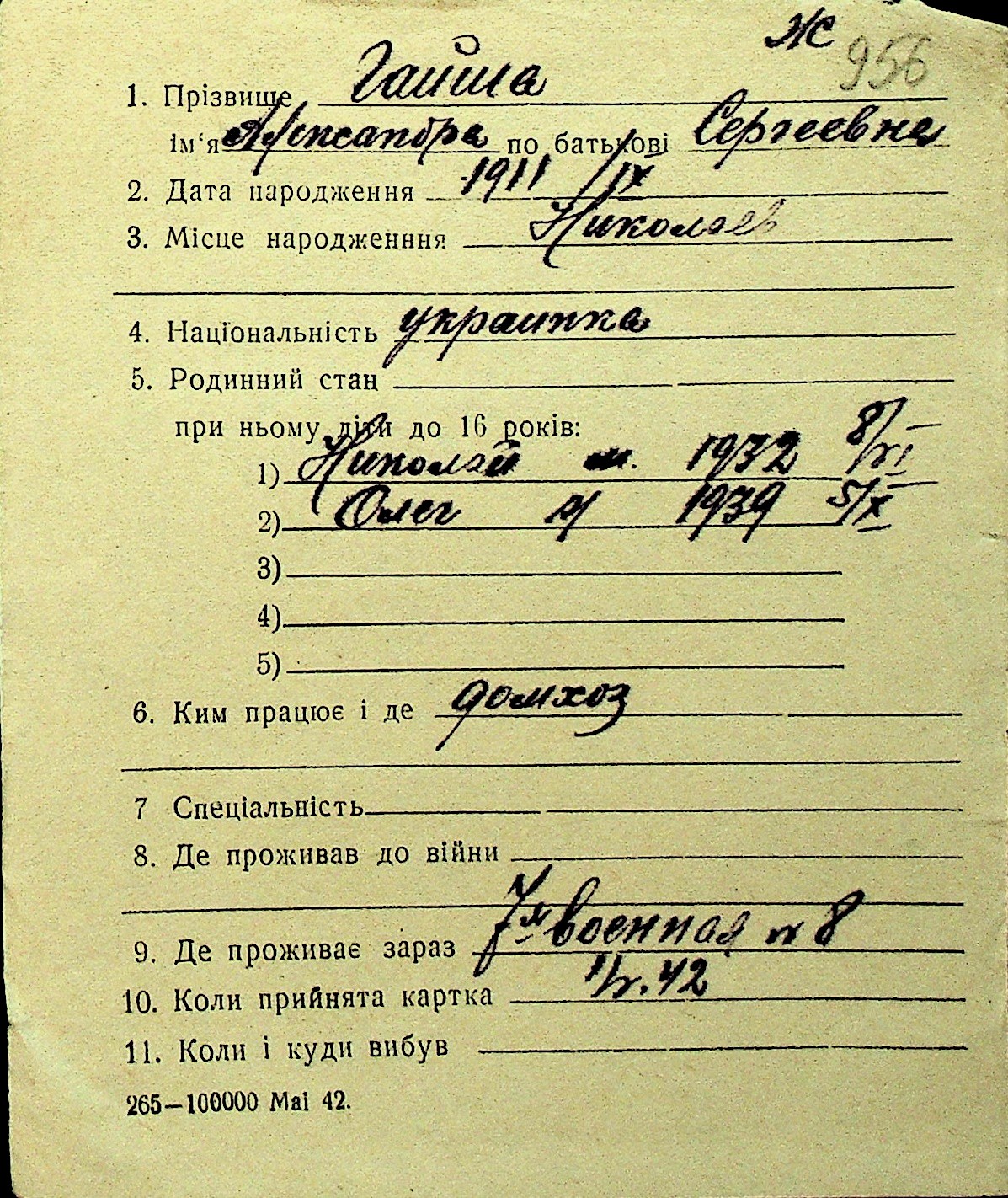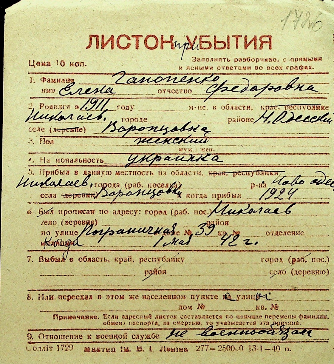 • • Перелік карток до фонду № Н-1016