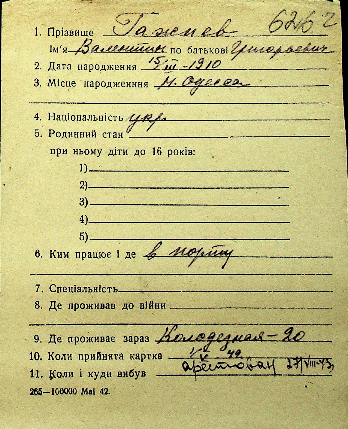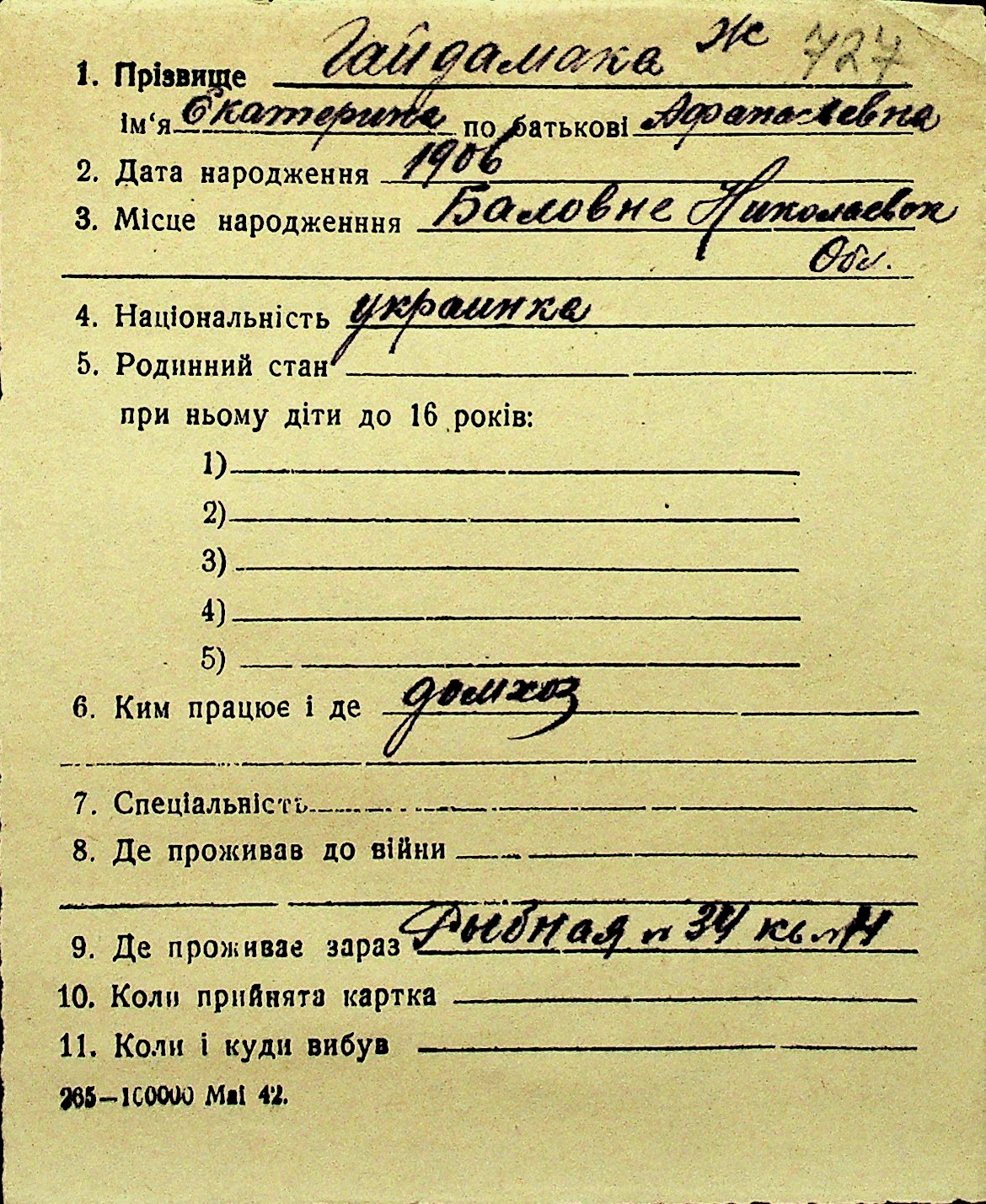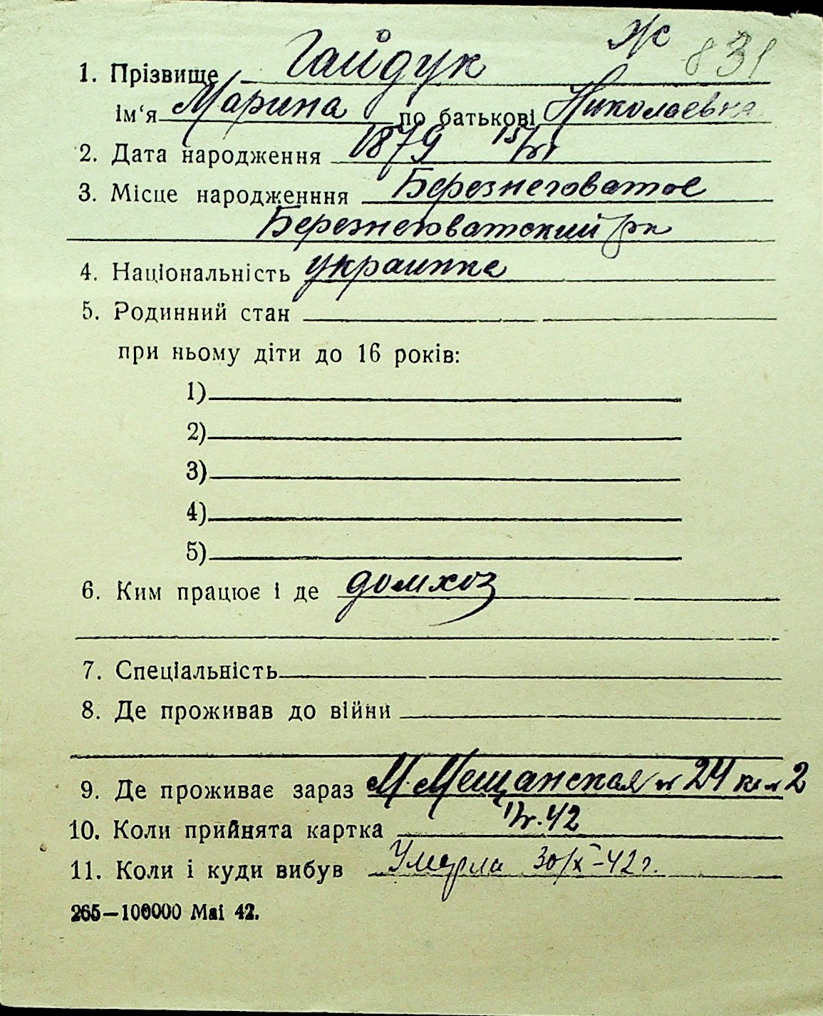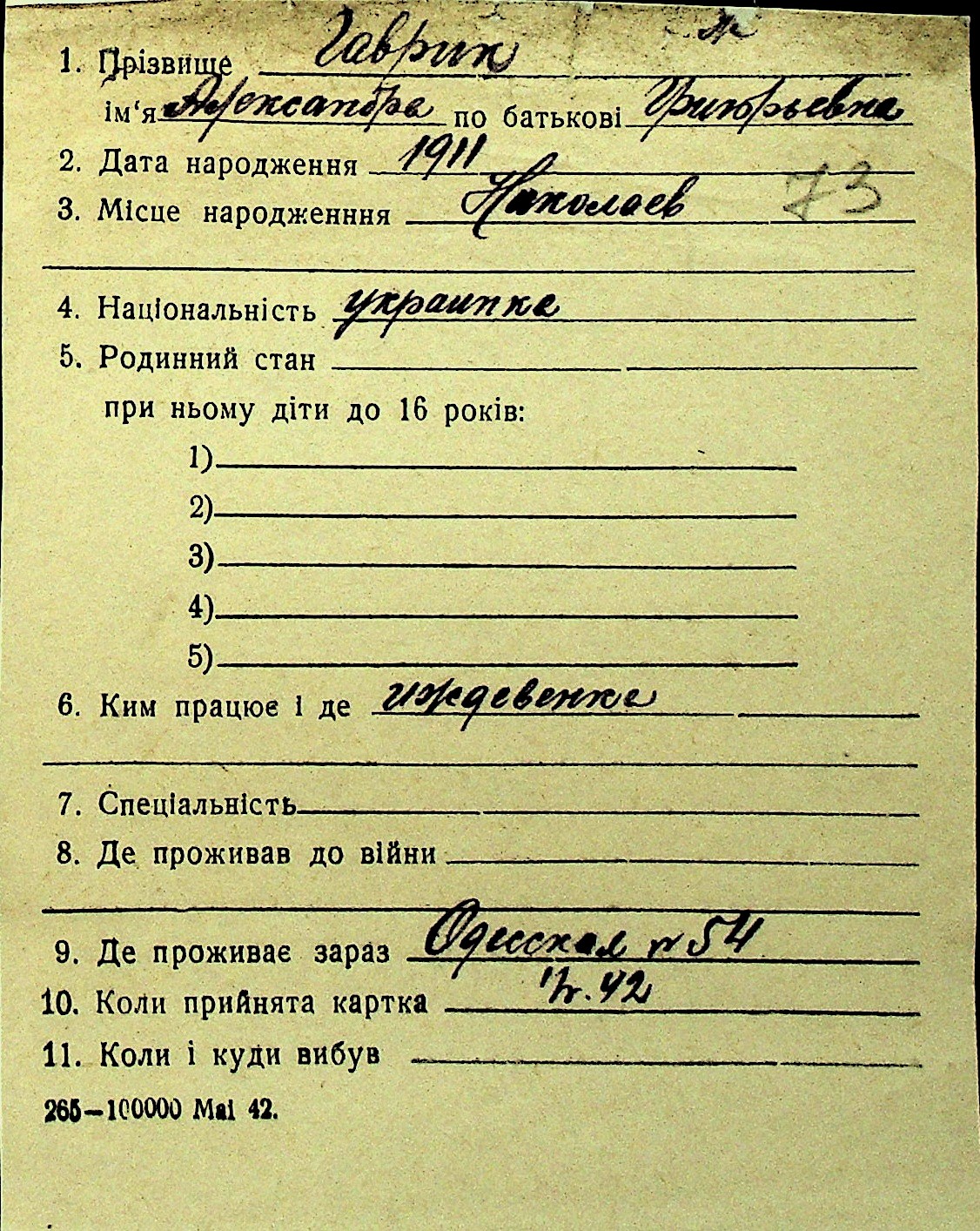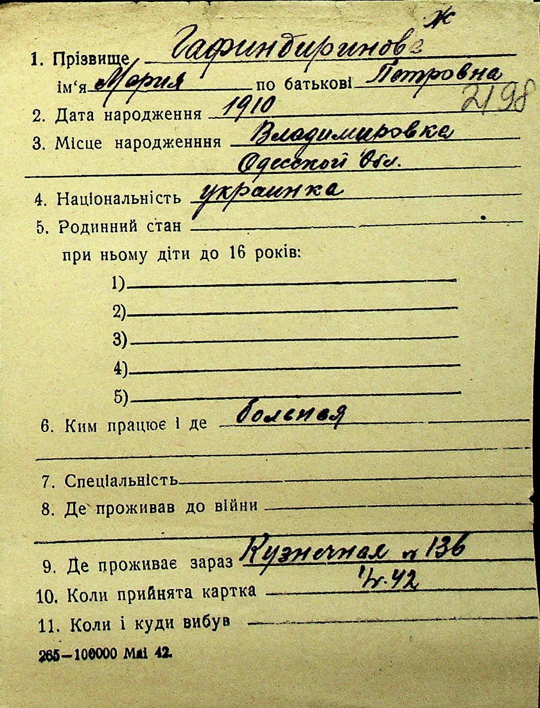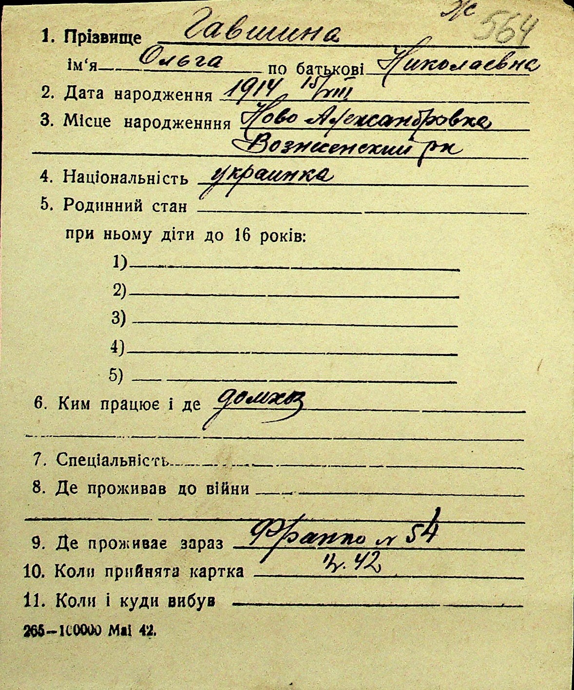 • • Перелік карток до фонду № Н-1016