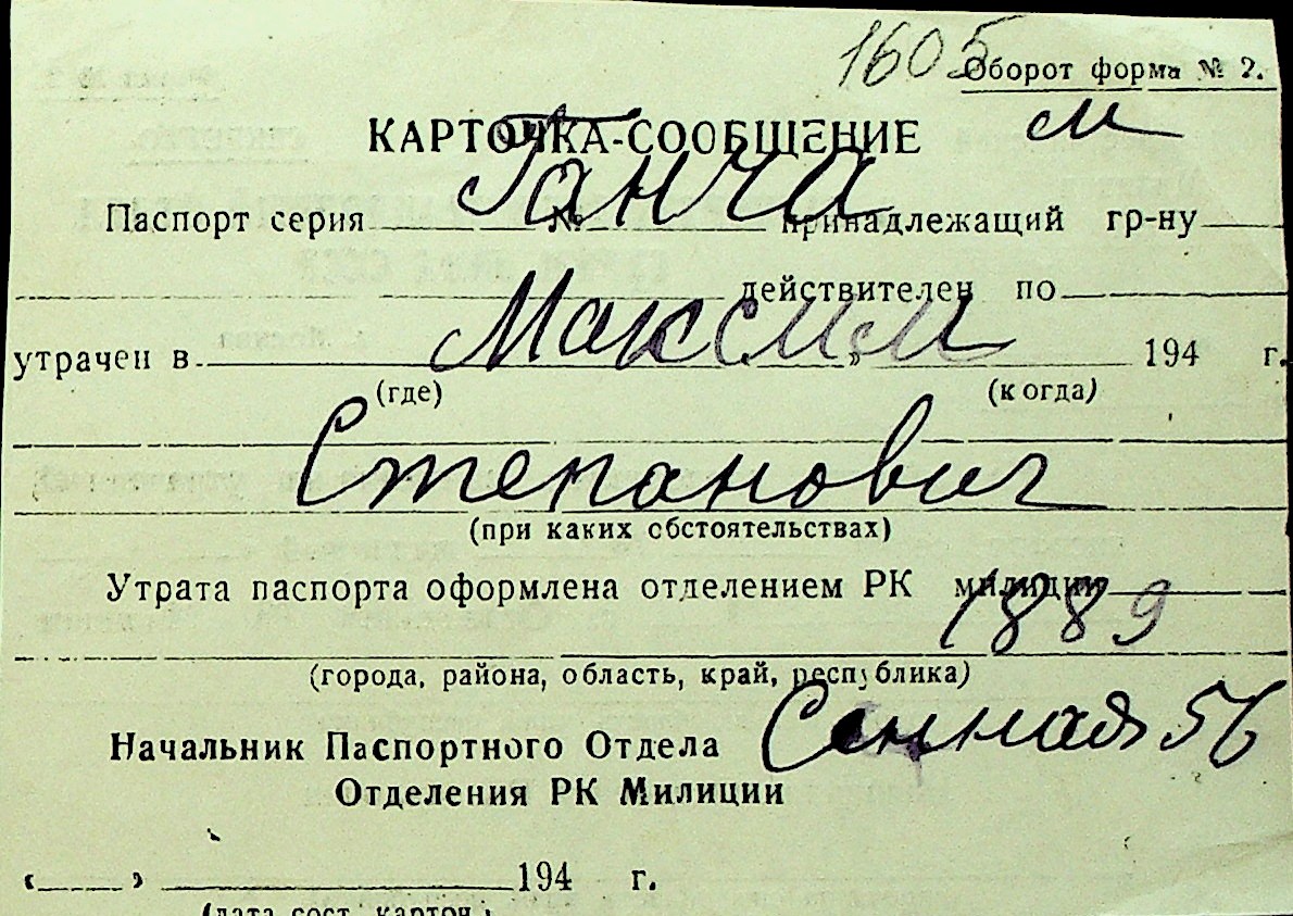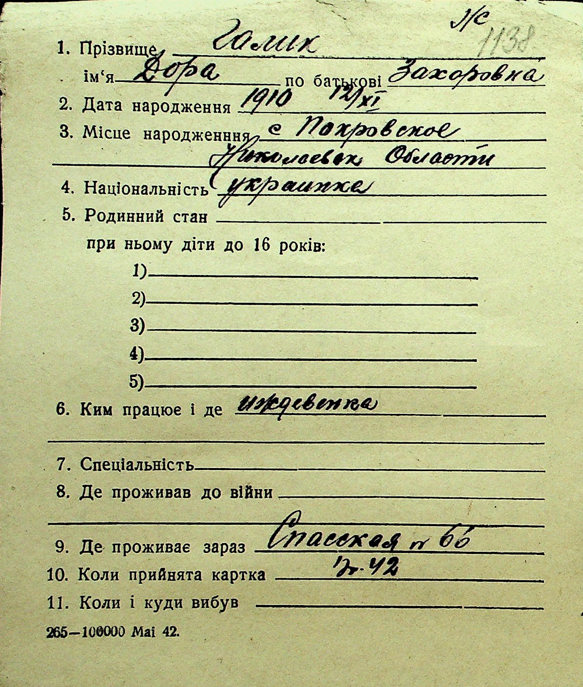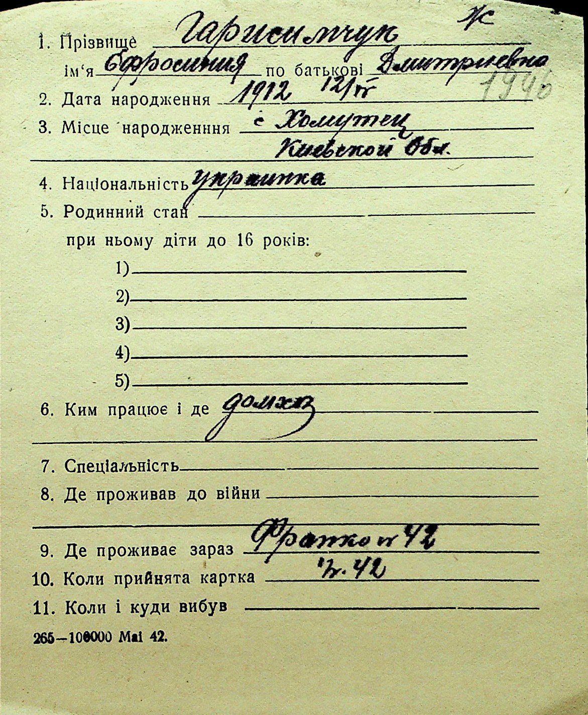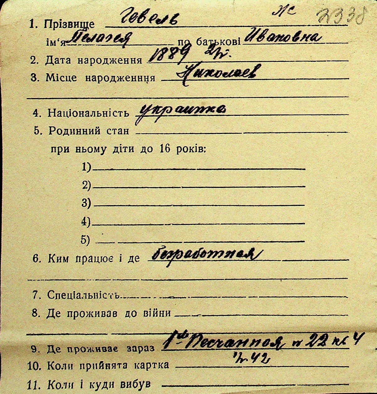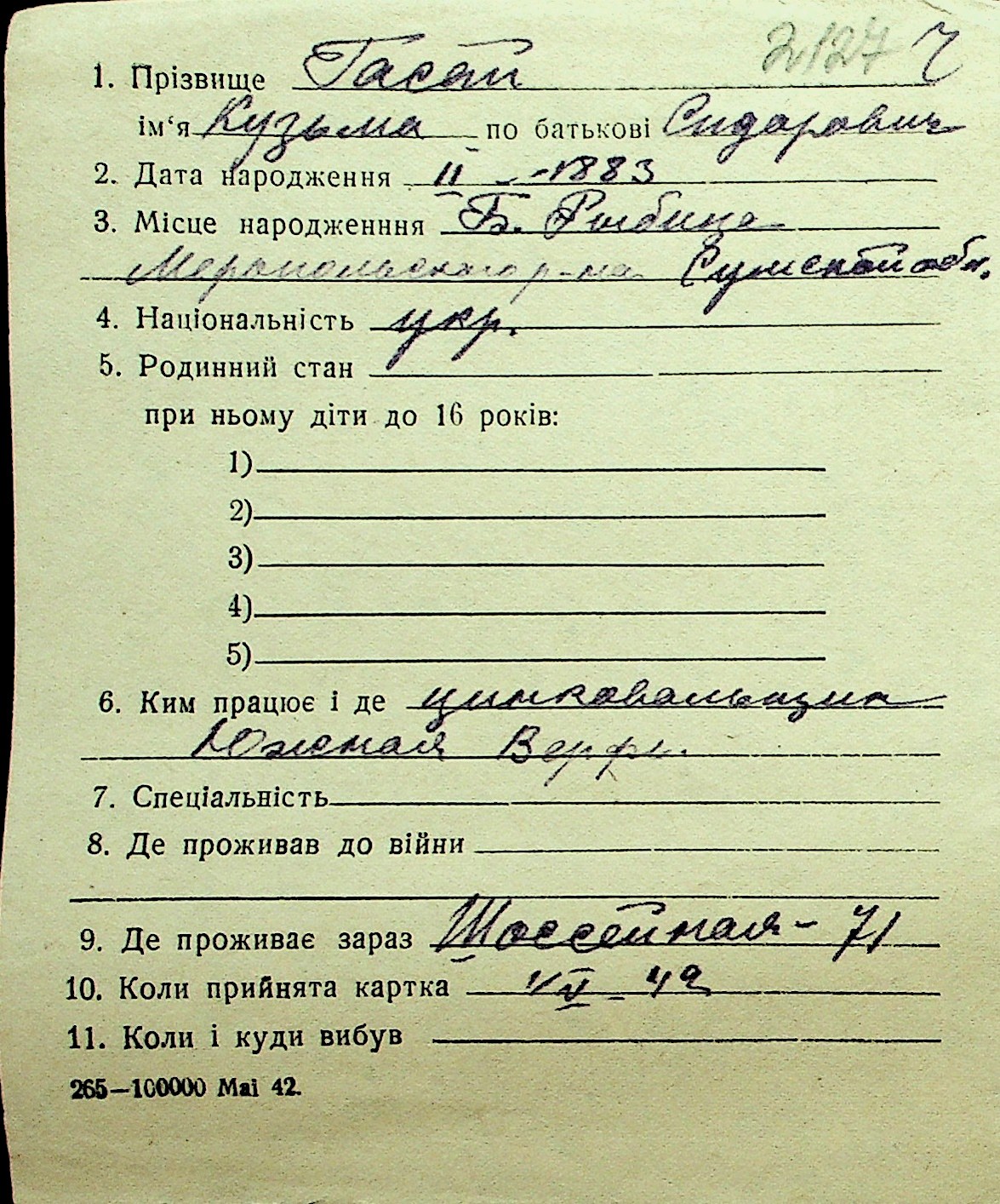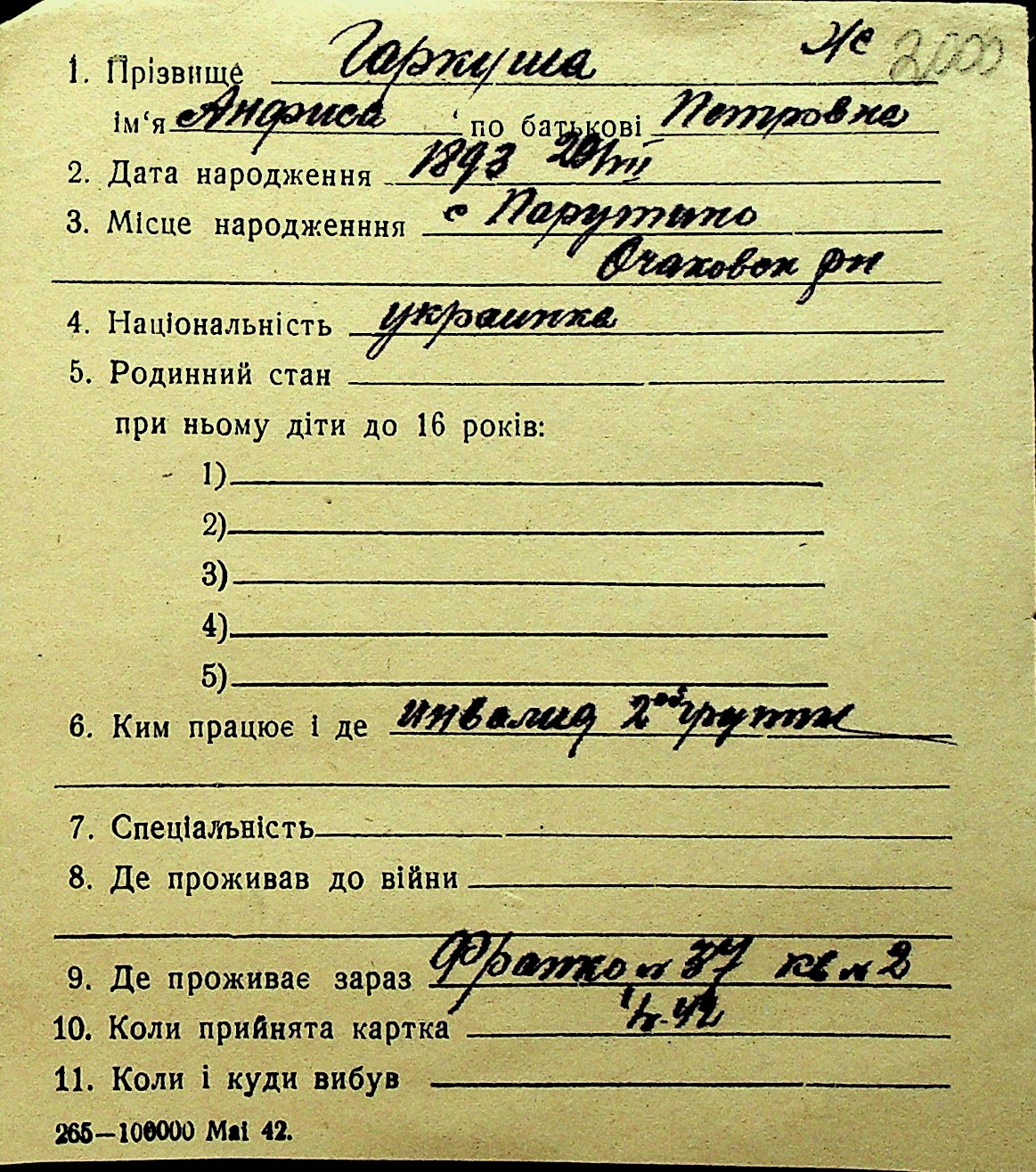 • • Перелік карток до фонду № Н-1016