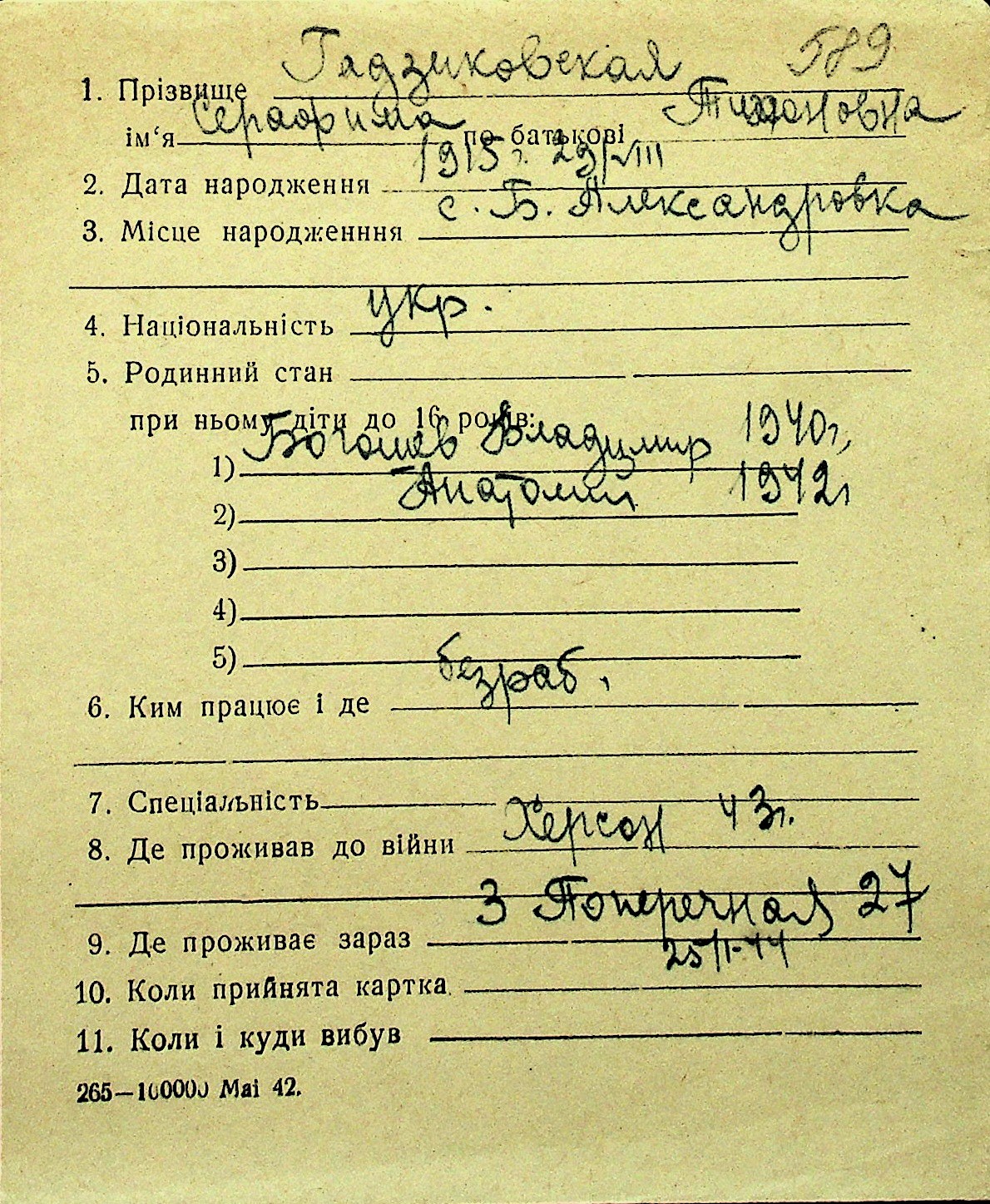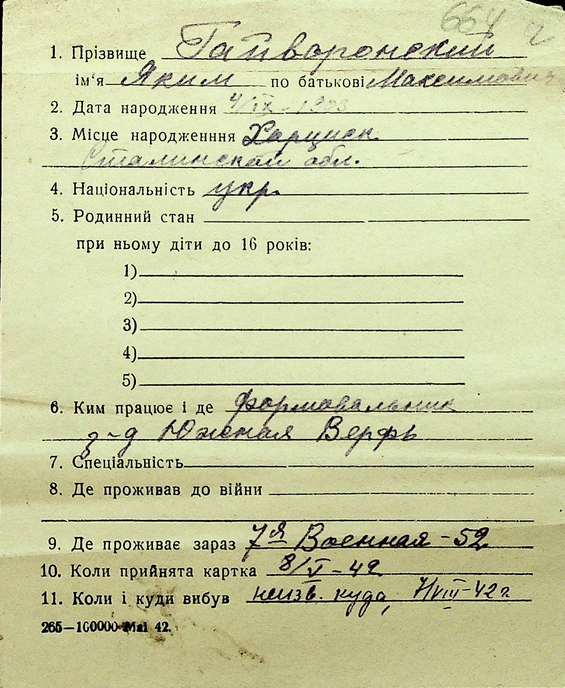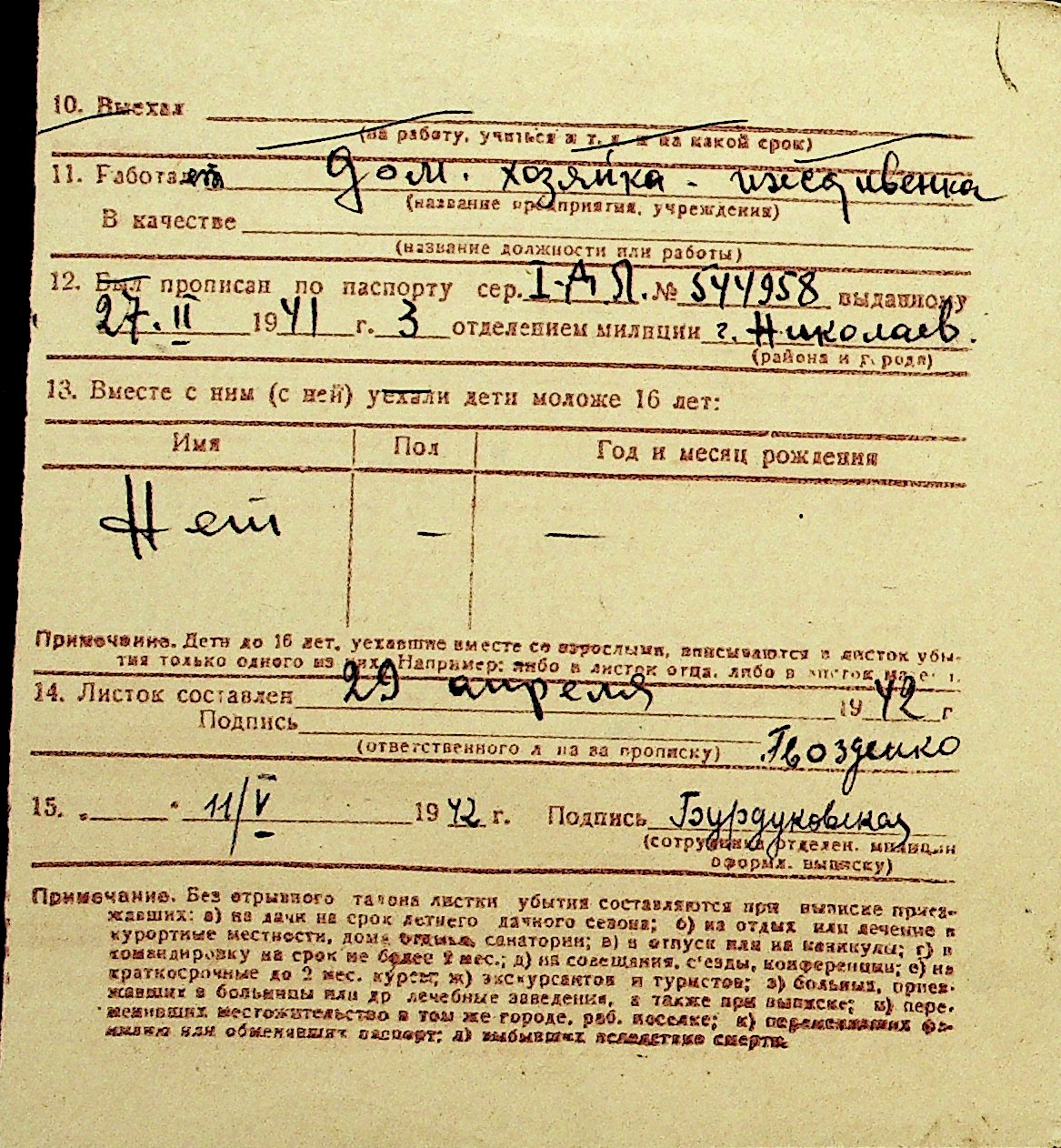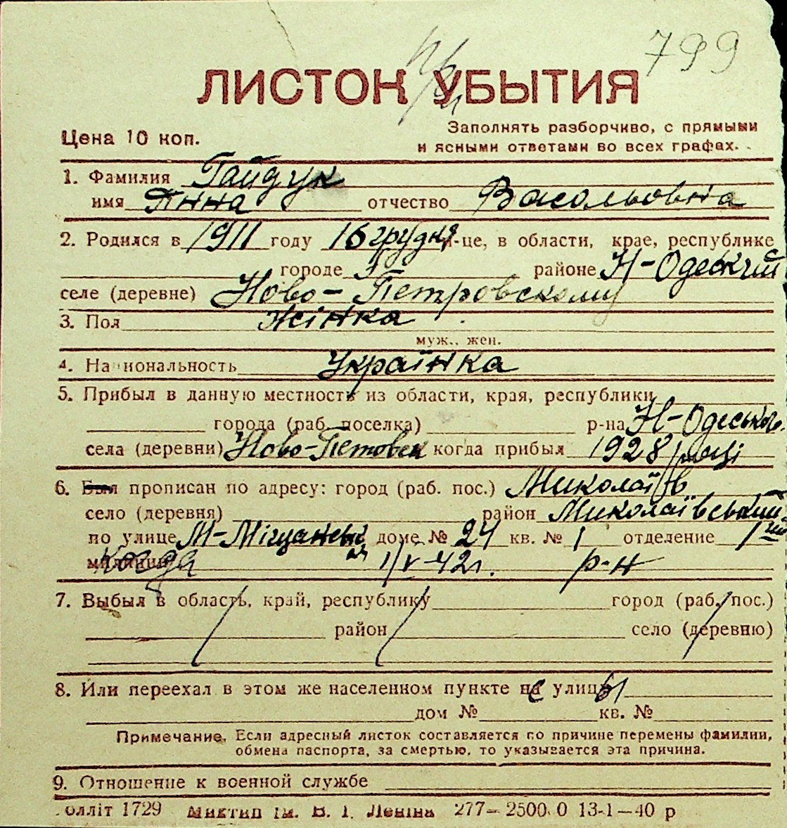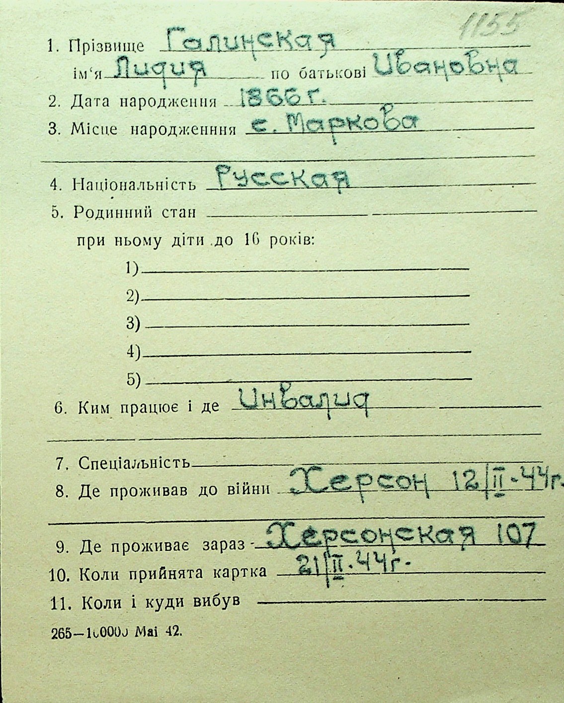 • • Перелік карток до фонду № Н-1016