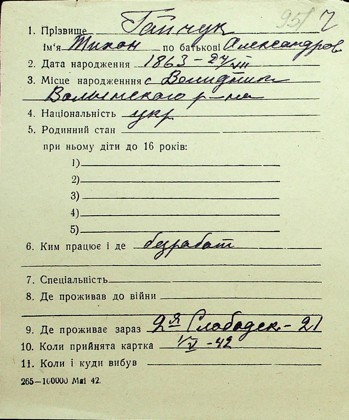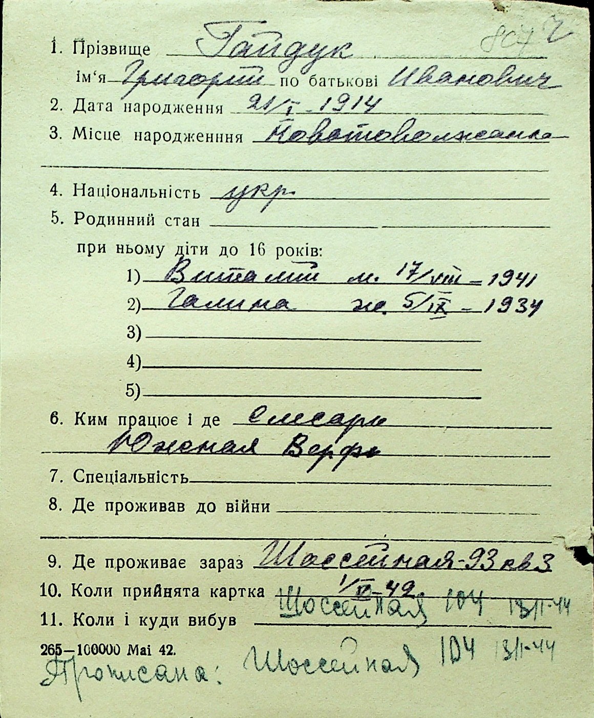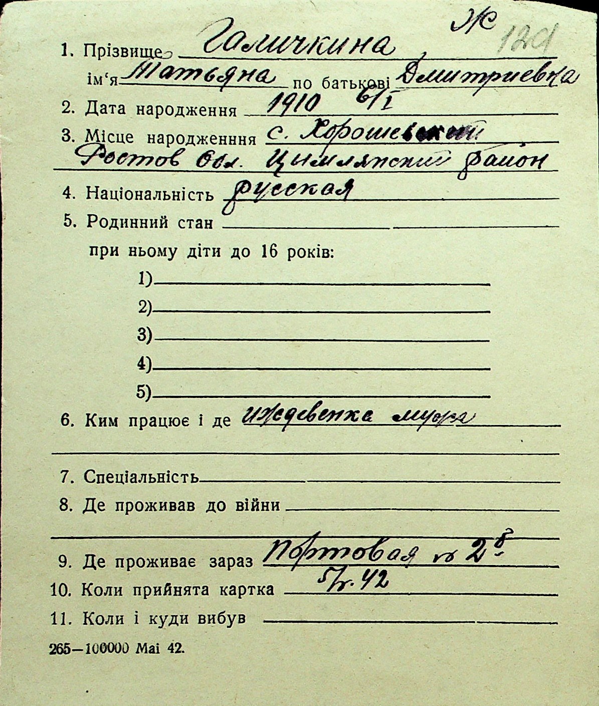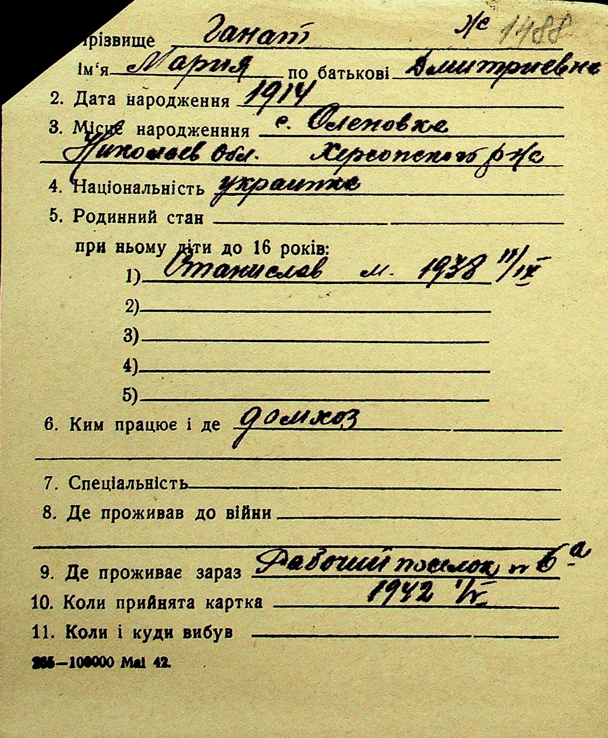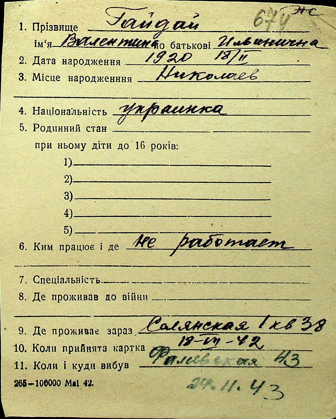• • Перелік карток до фонду № Н-1016