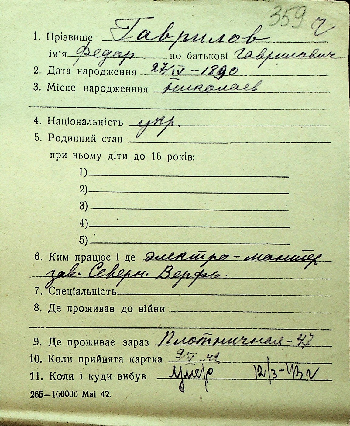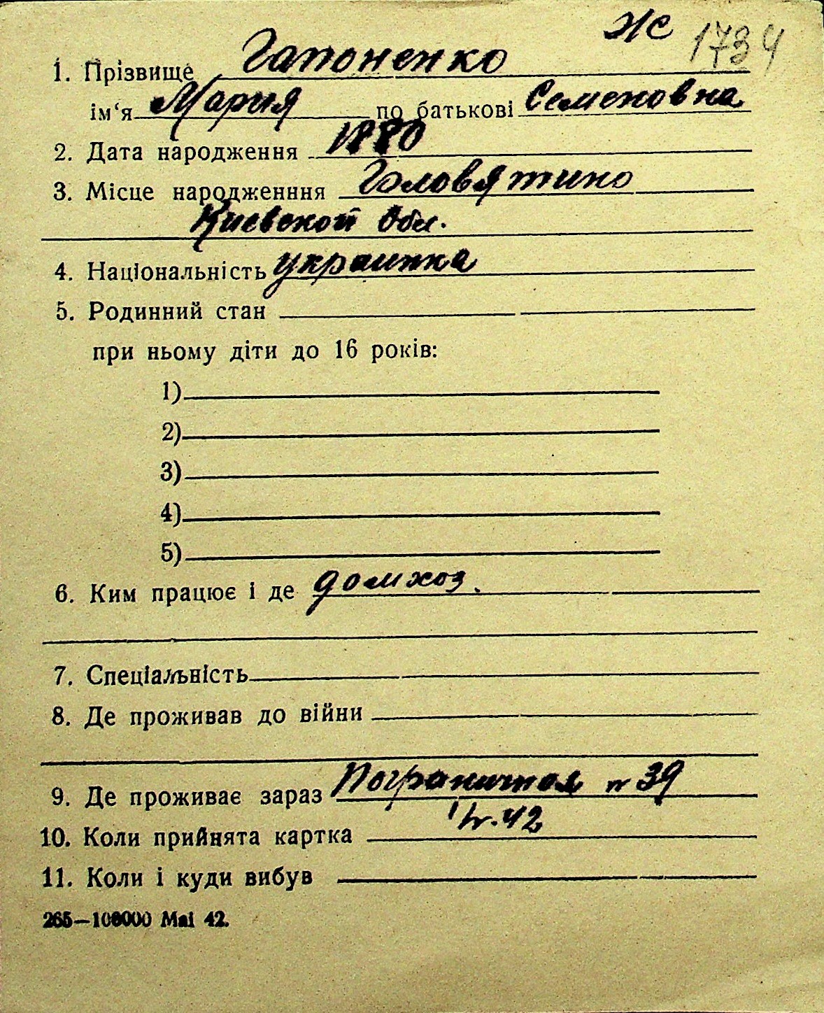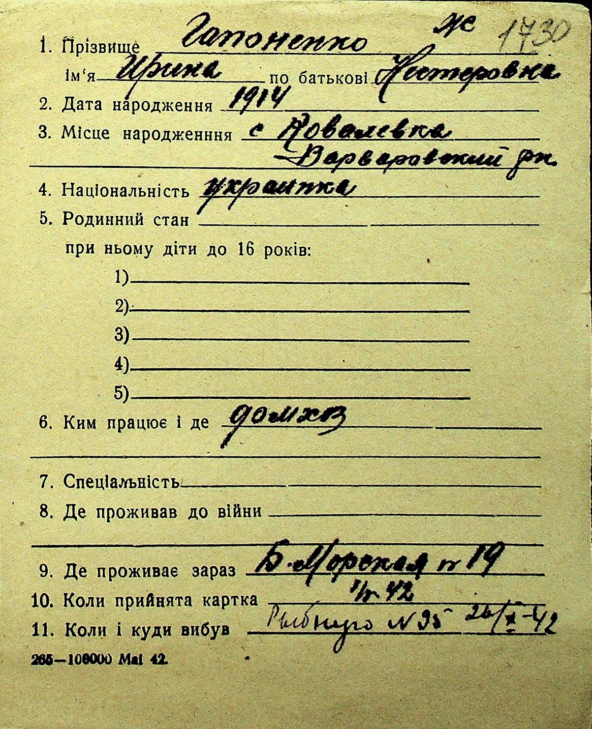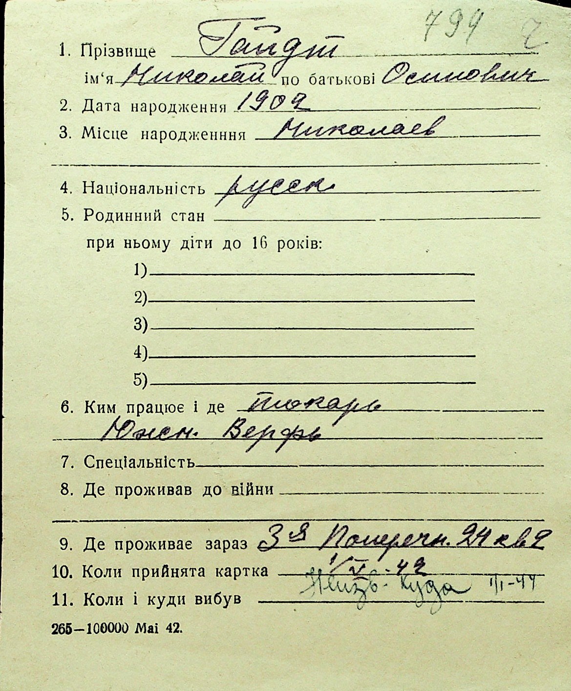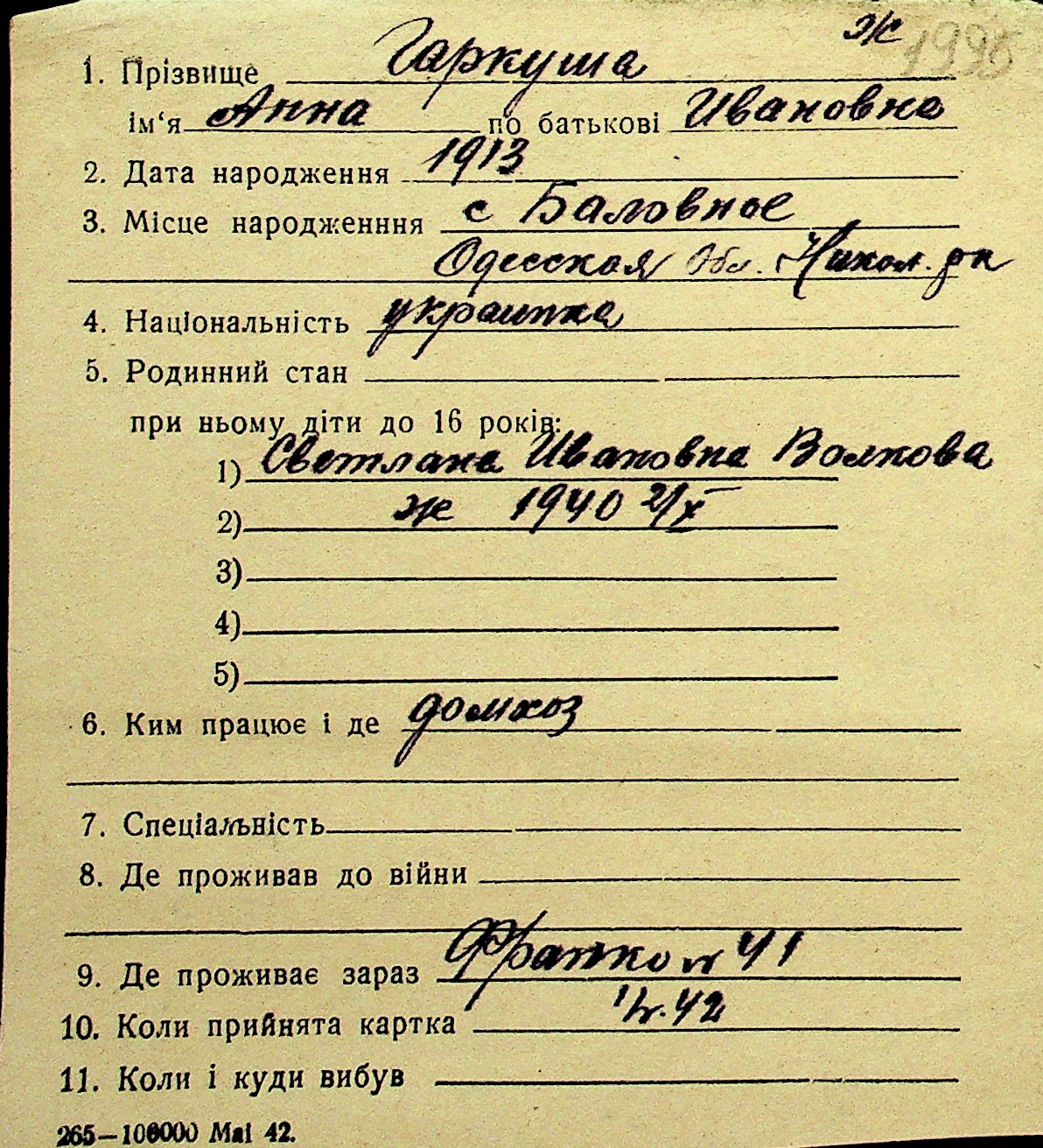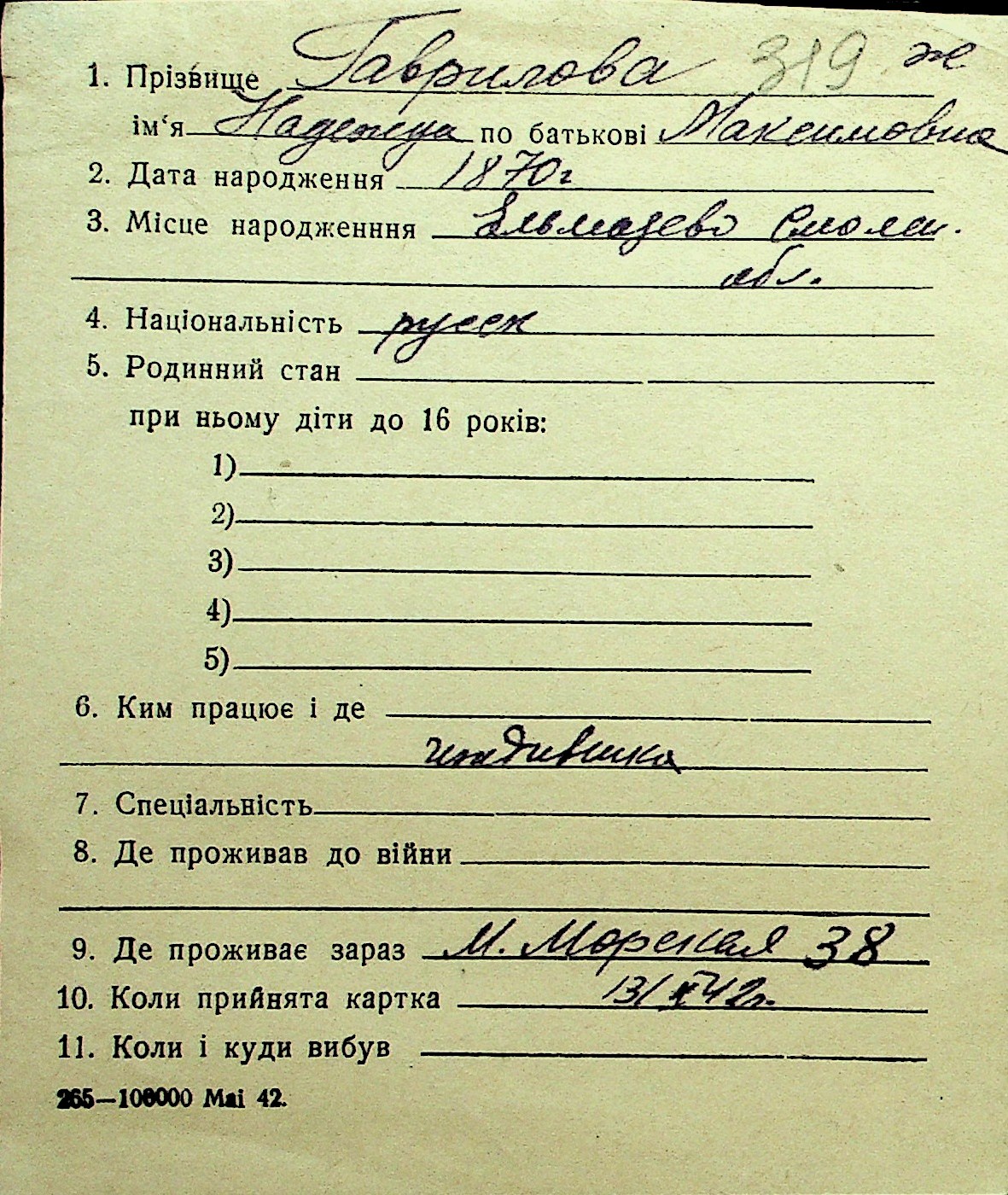 • • Перелік карток до фонду № Н-1016