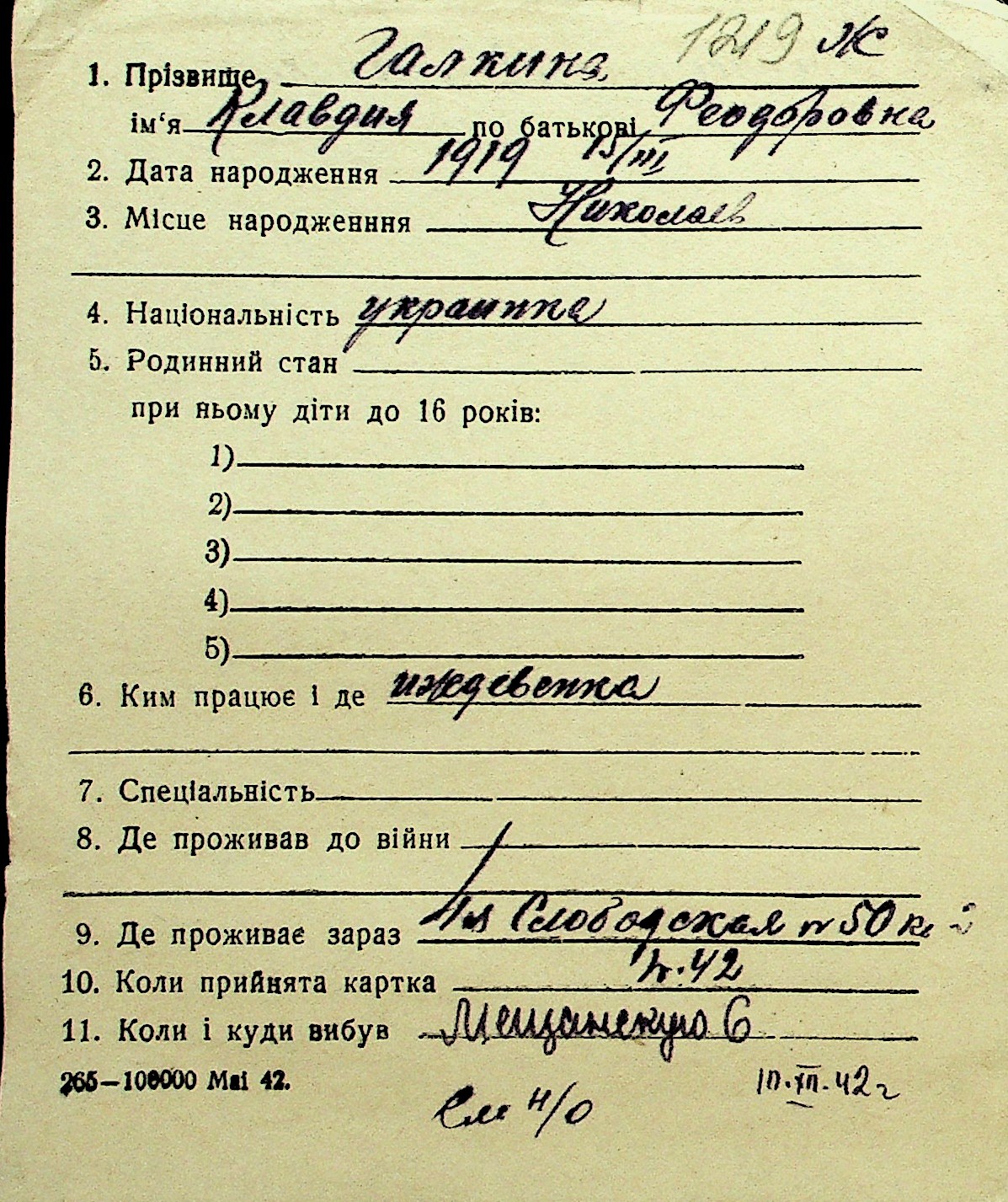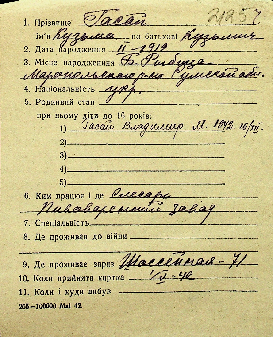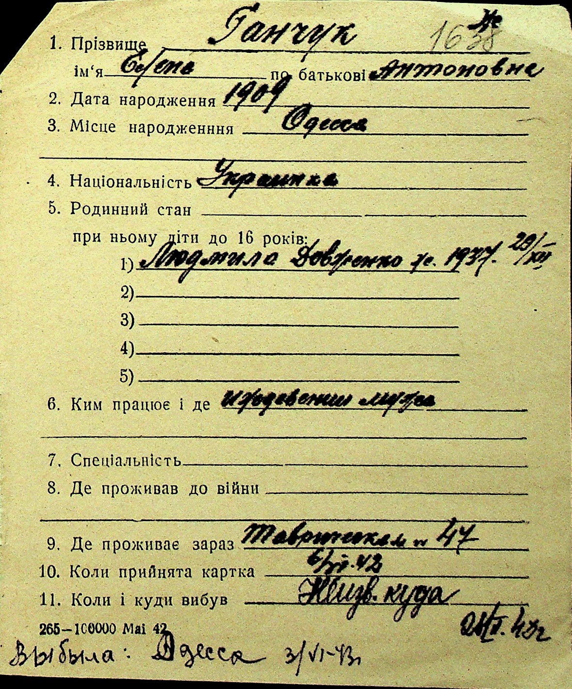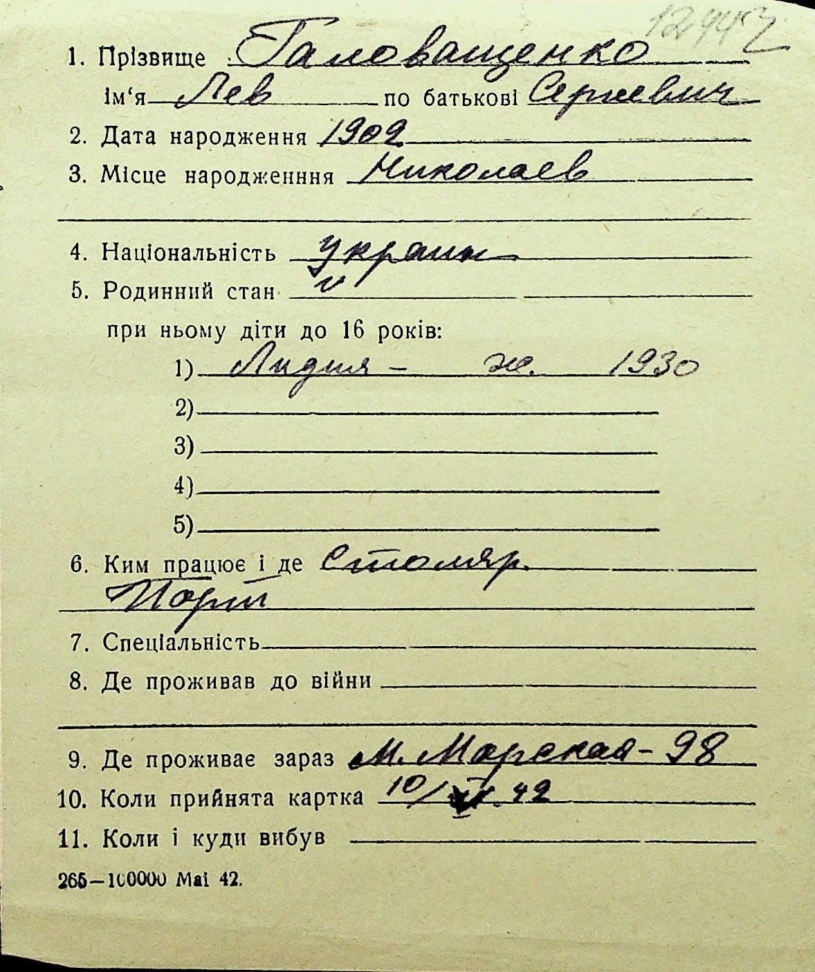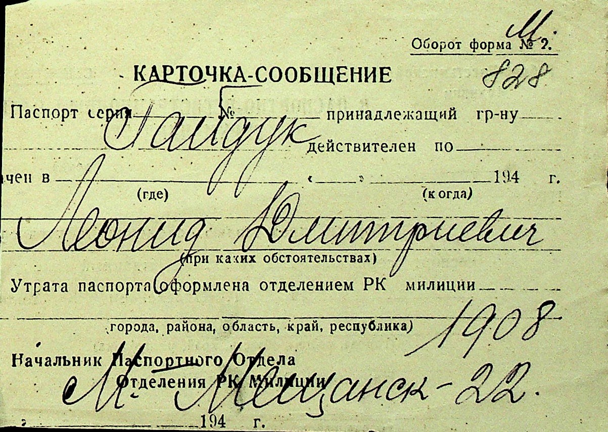 • • Перелік карток до фонду № Н-1016