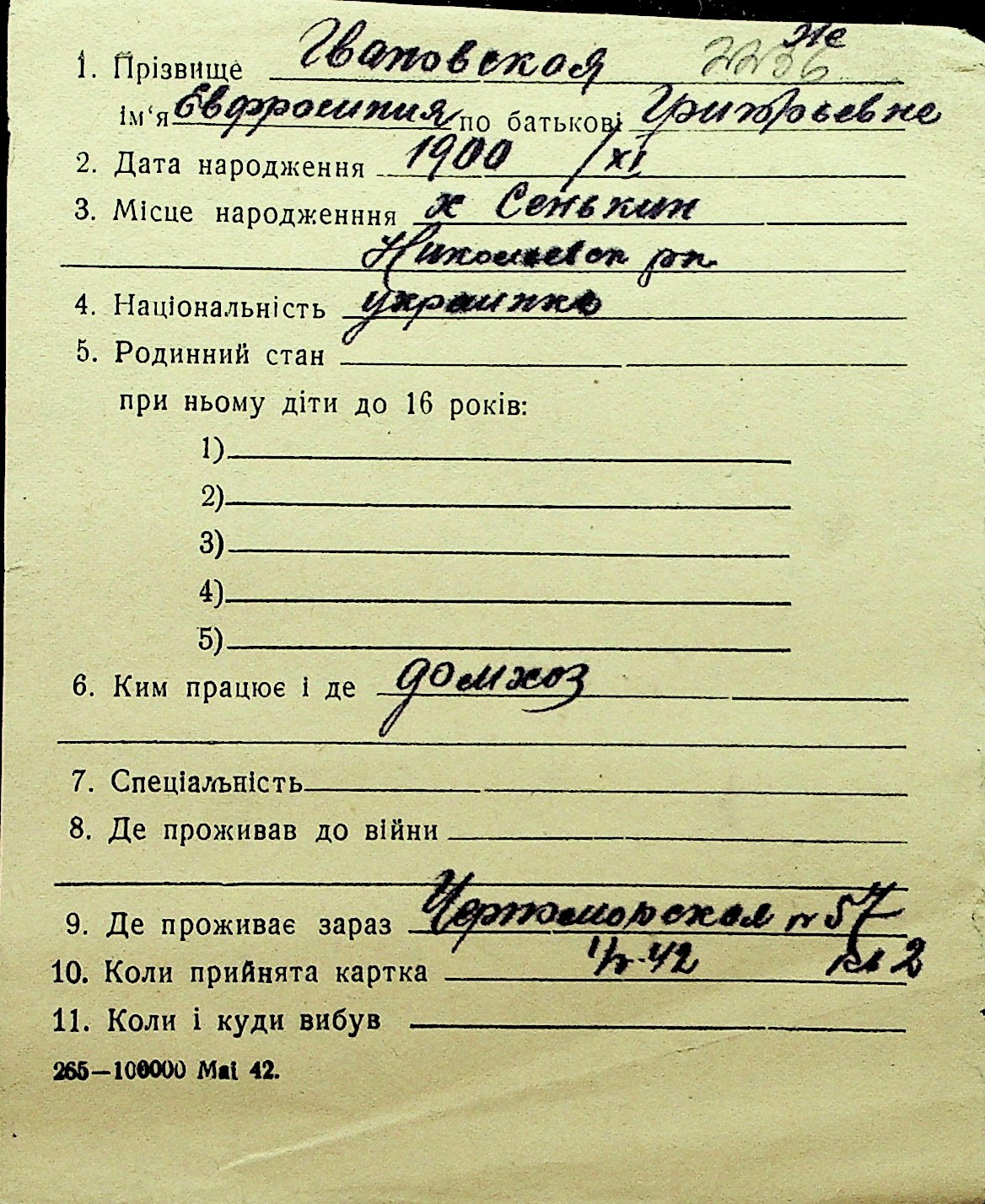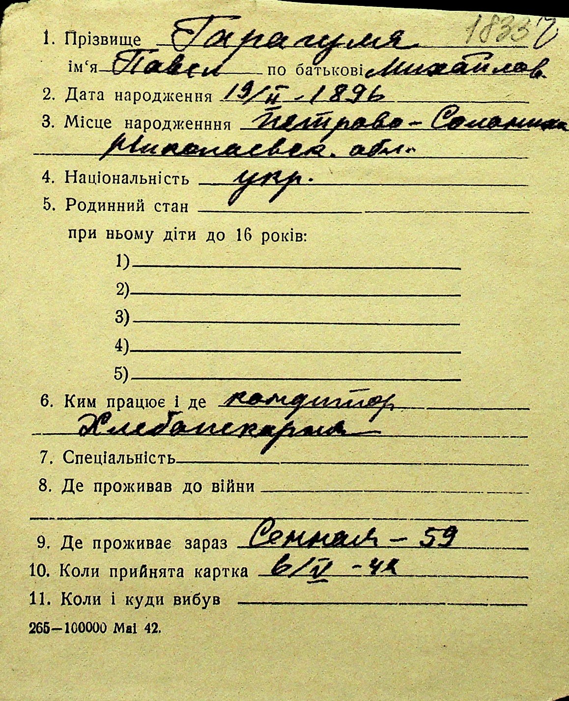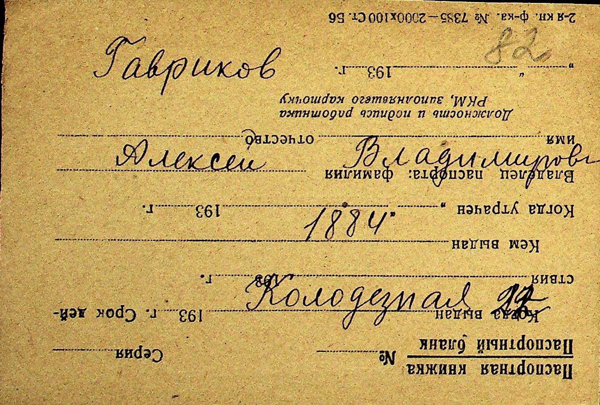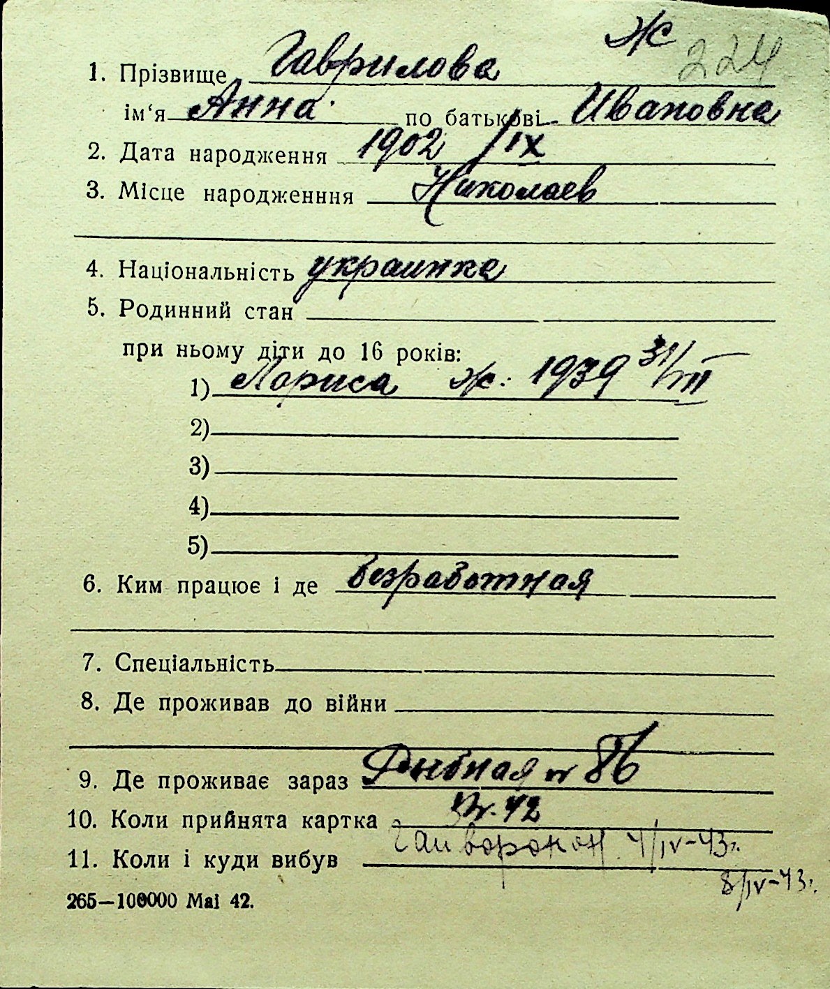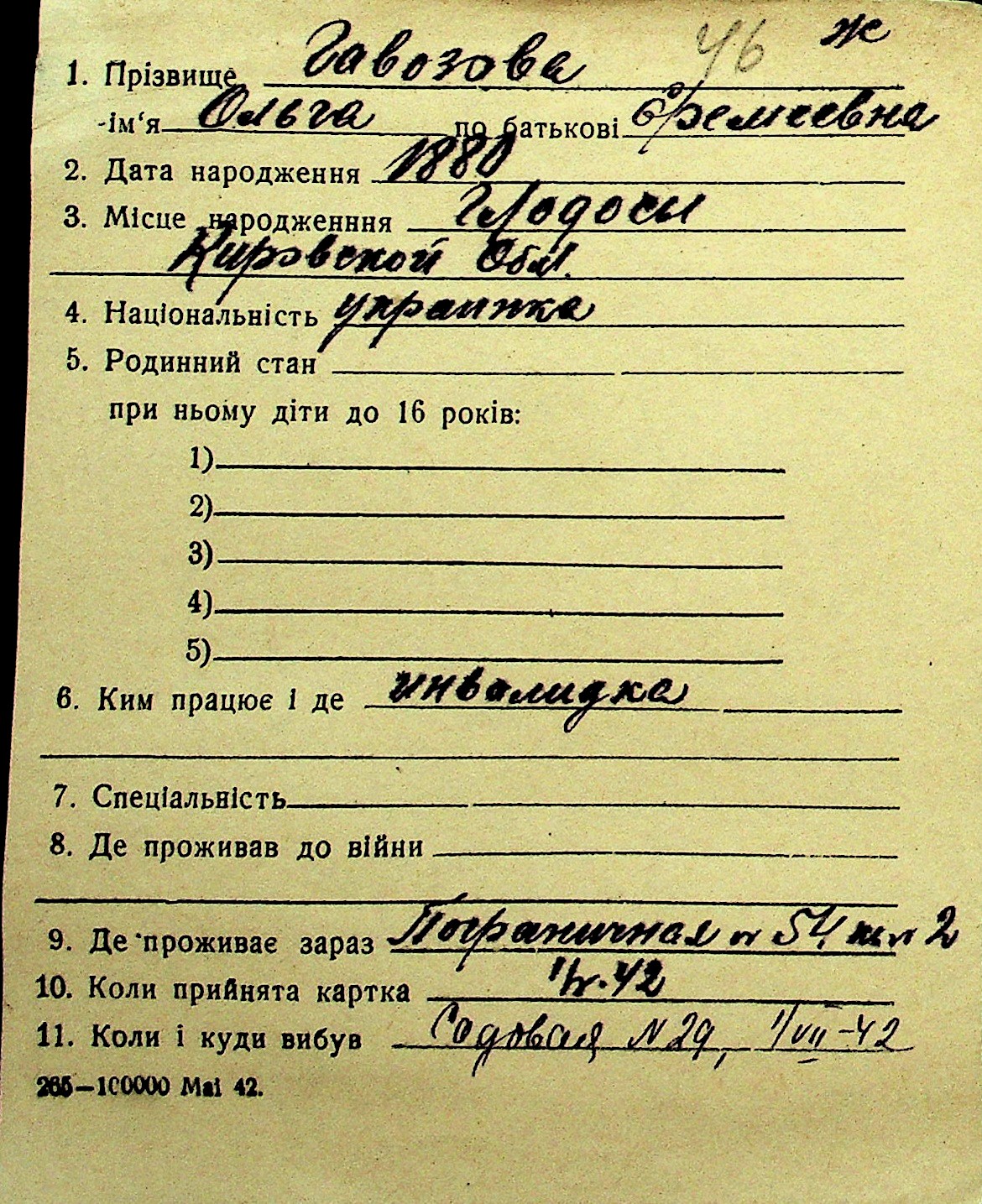 • • Перелік карток до фонду № Н-1016