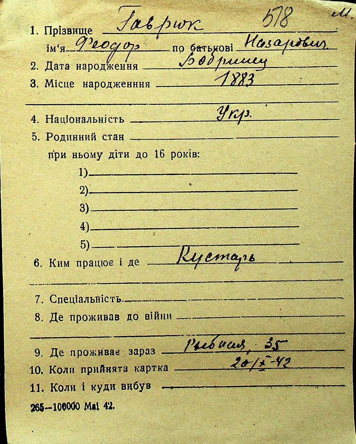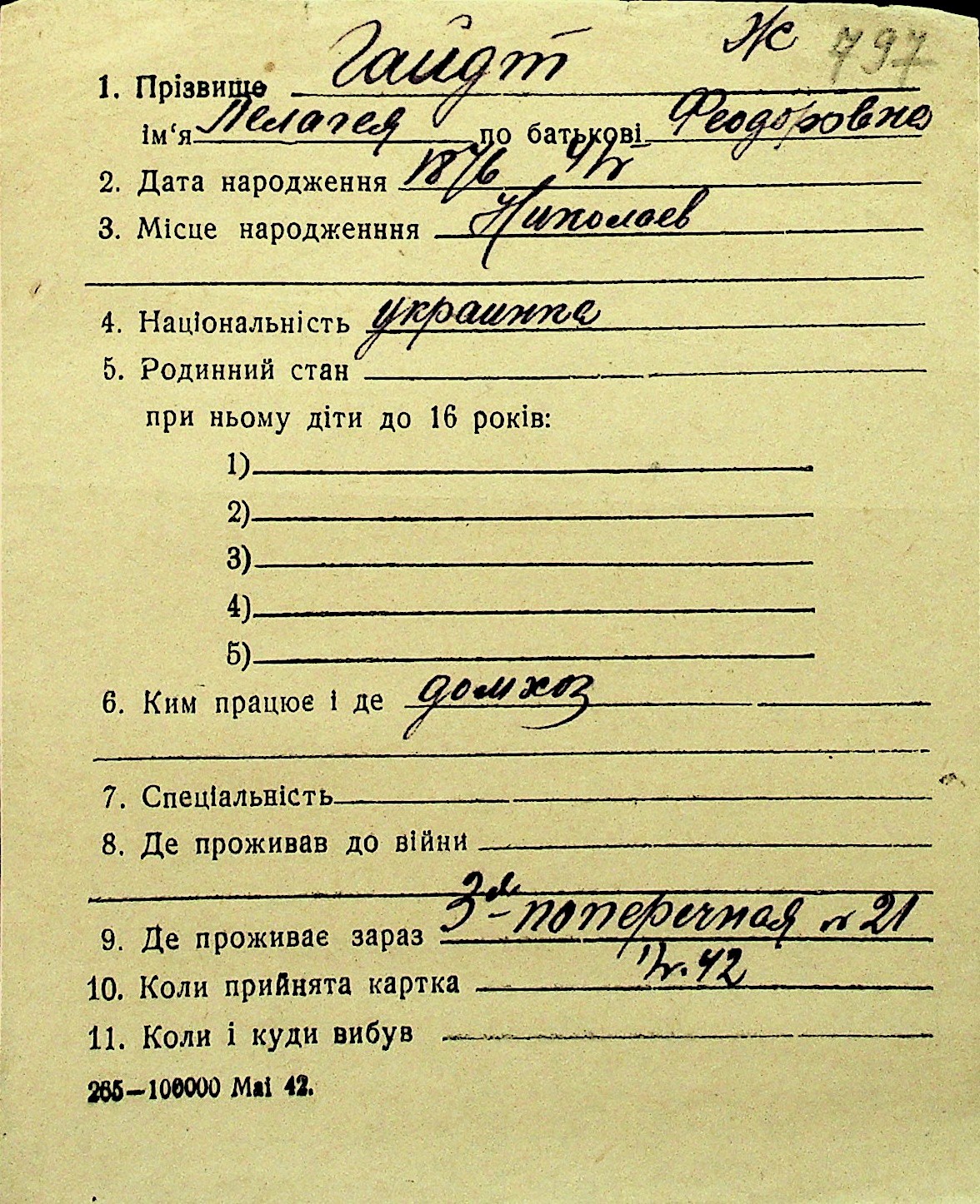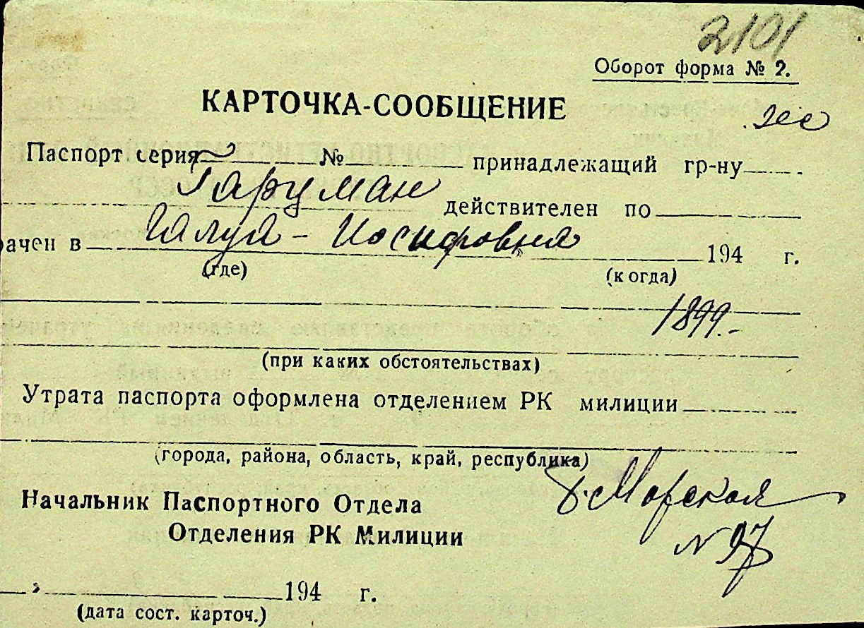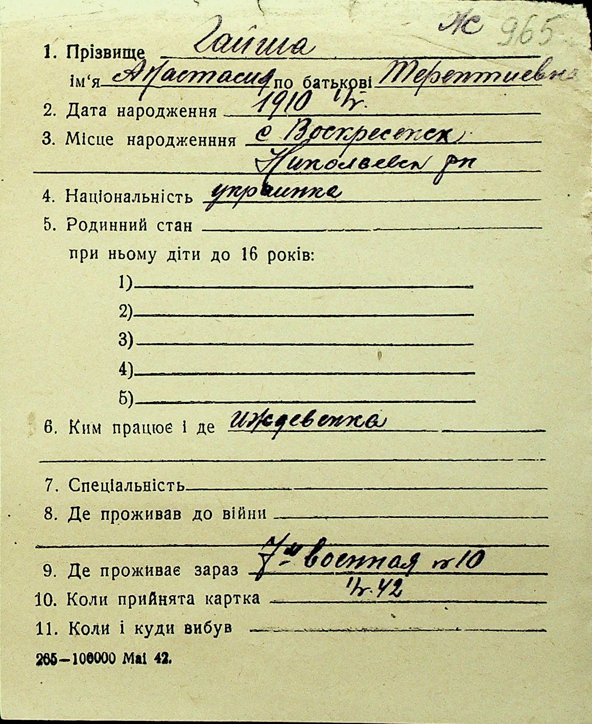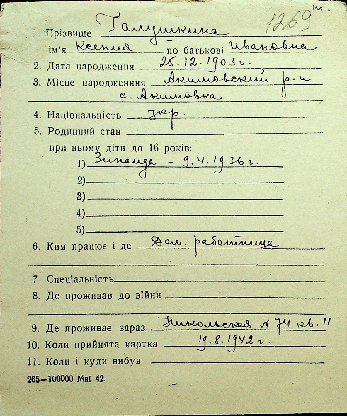 • • Перелік карток до фонду № Н-1016