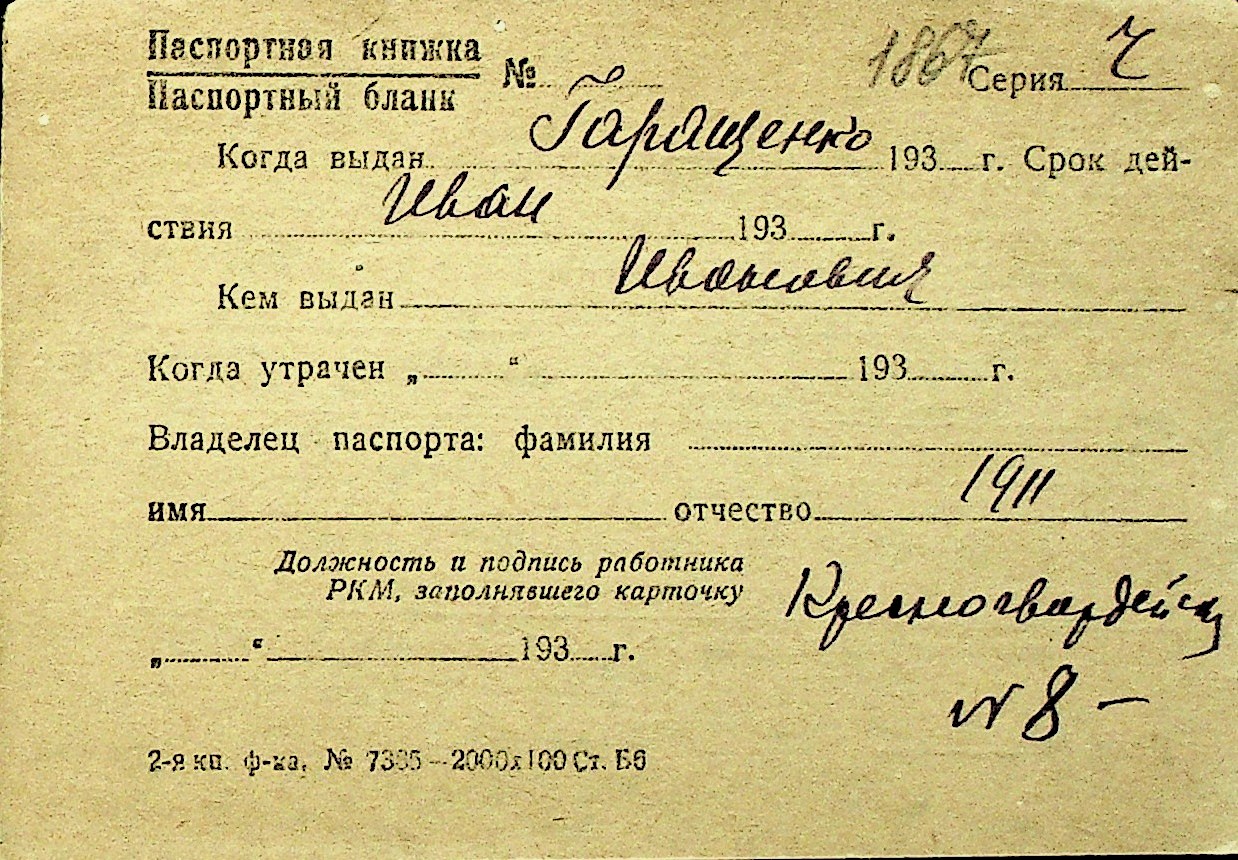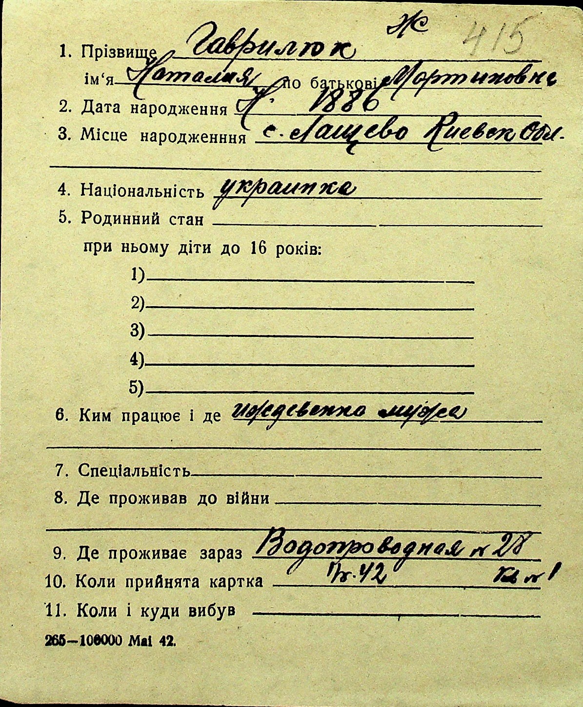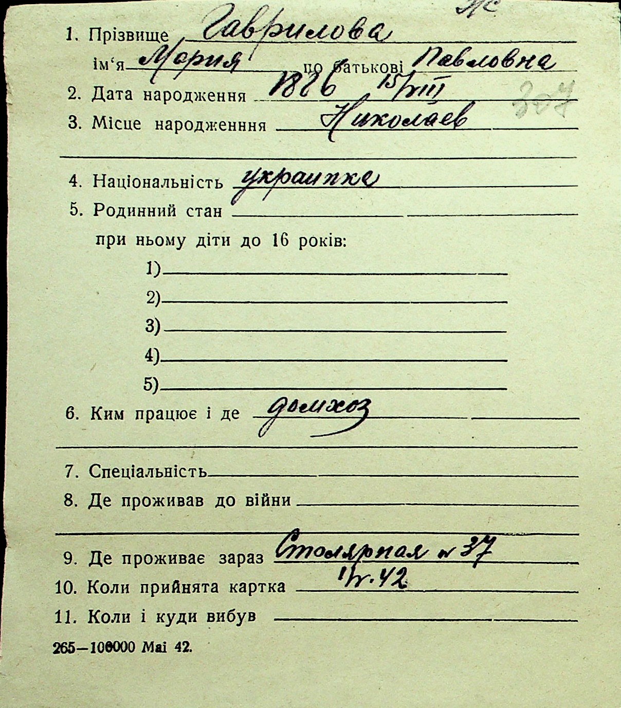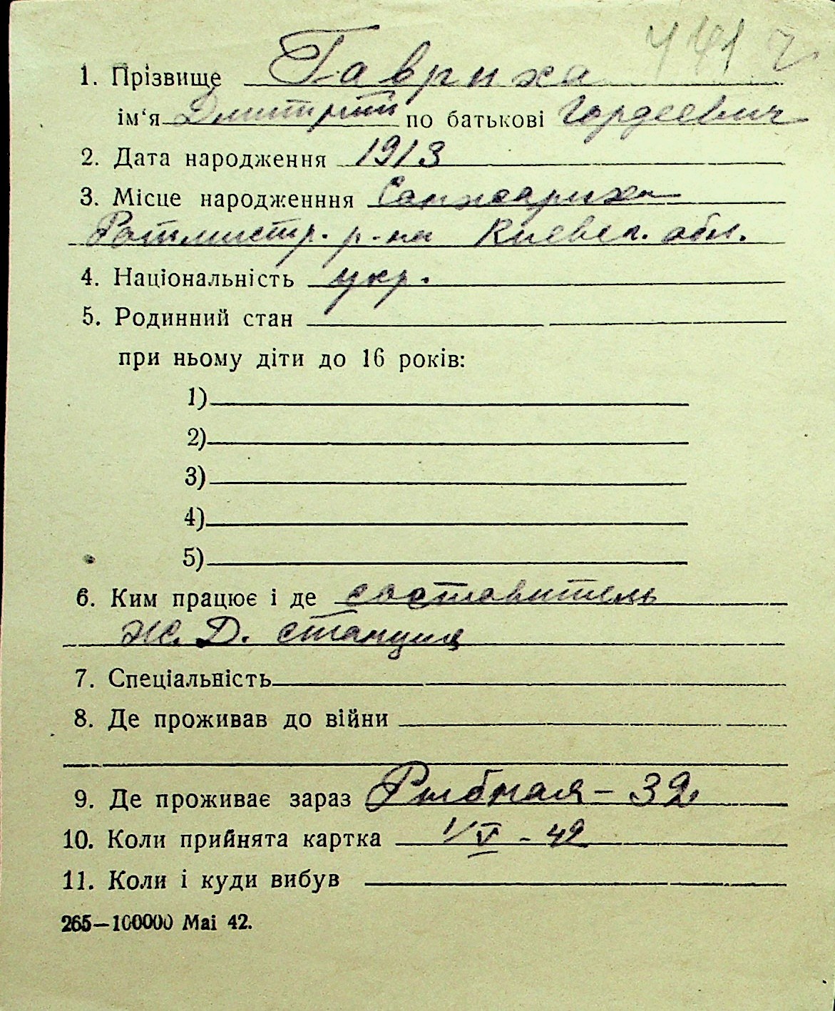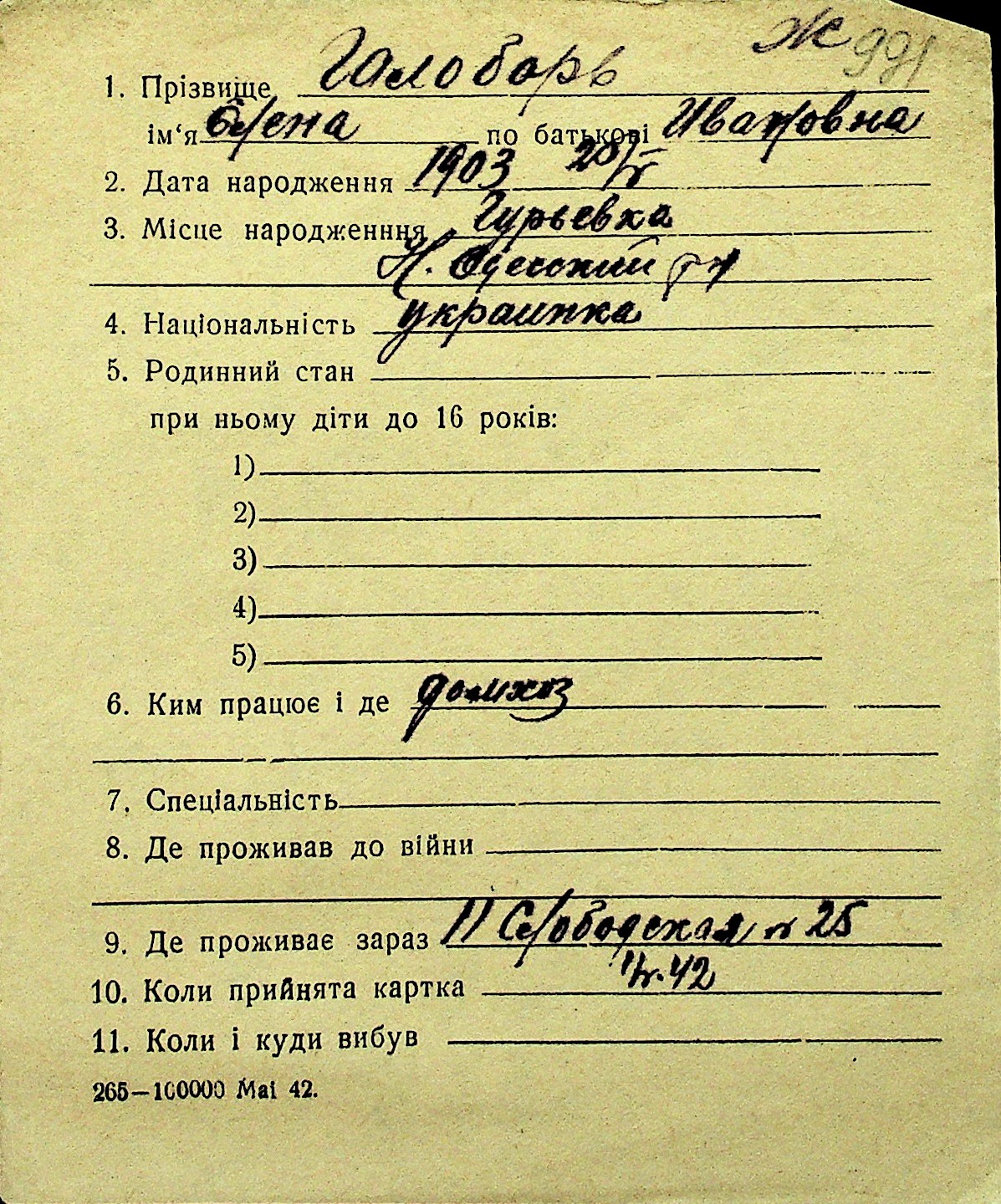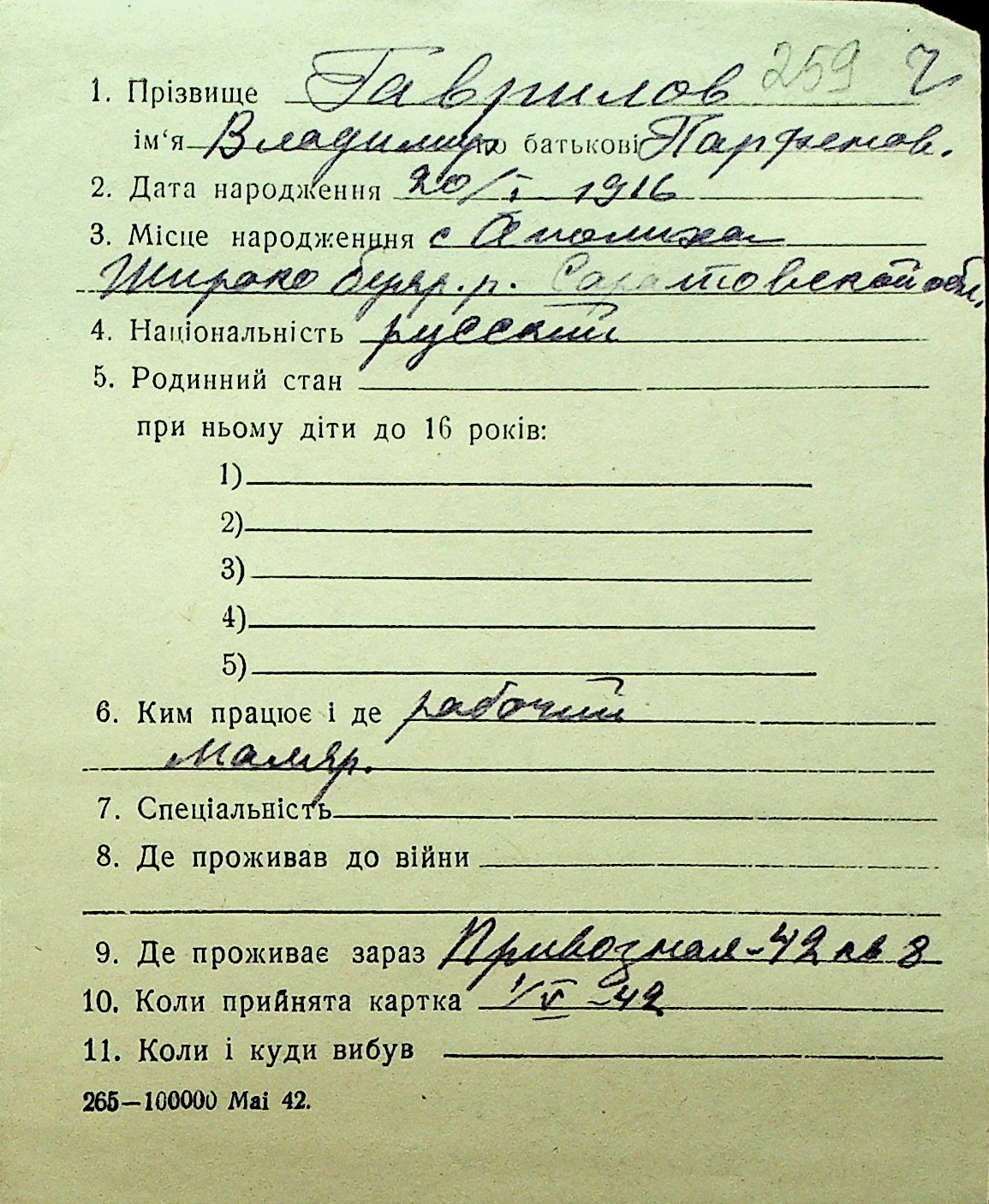 • • Перелік карток до фонду № Н-1016