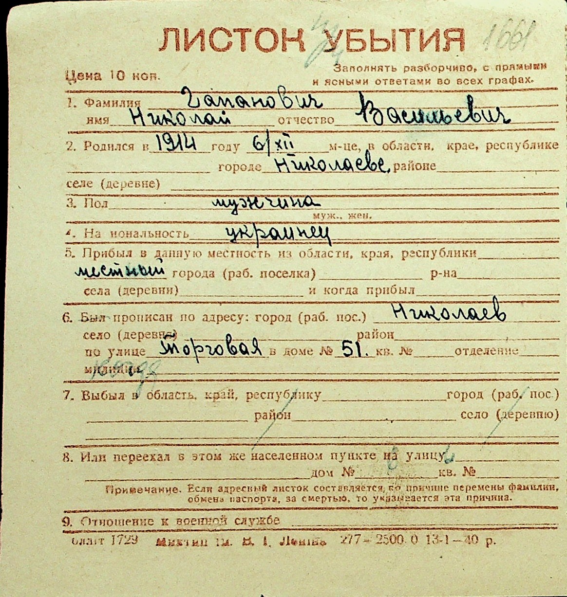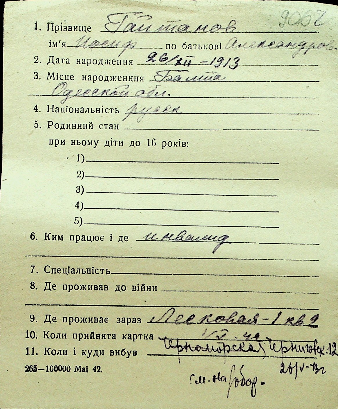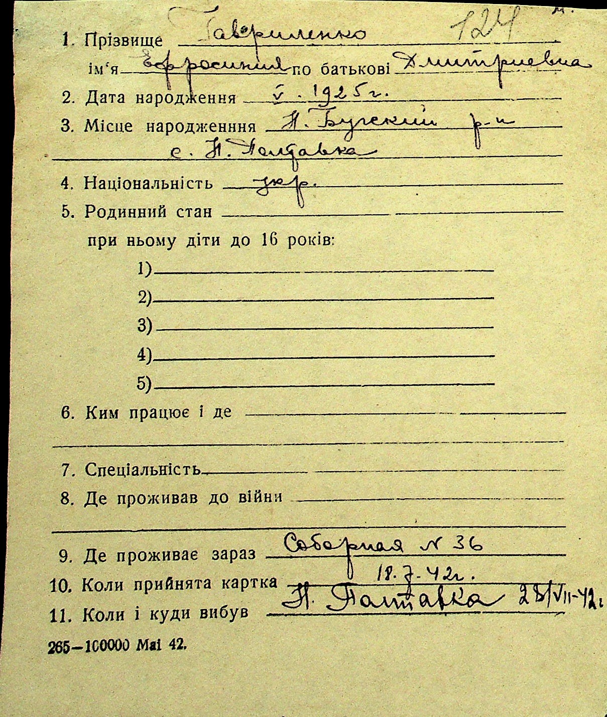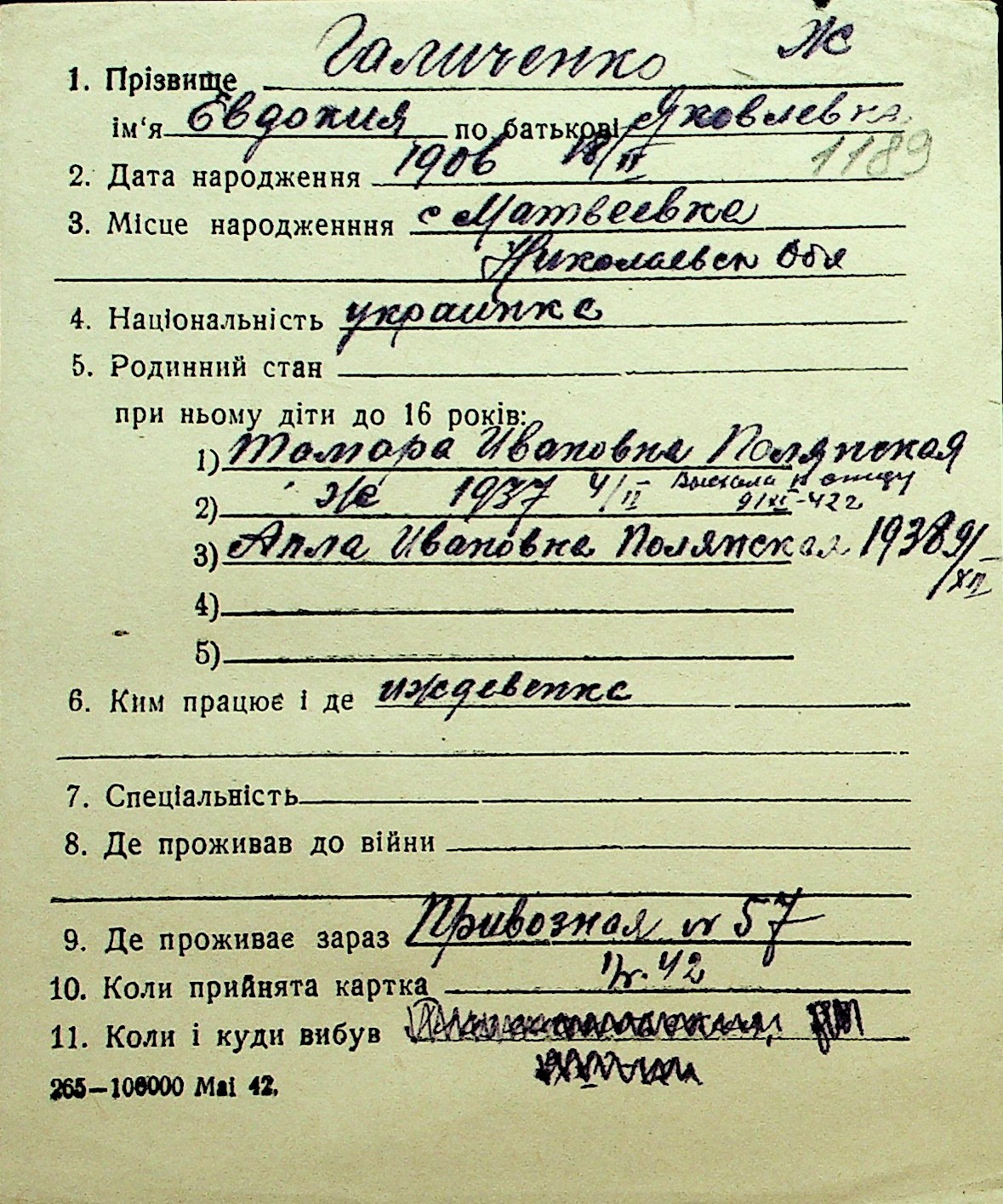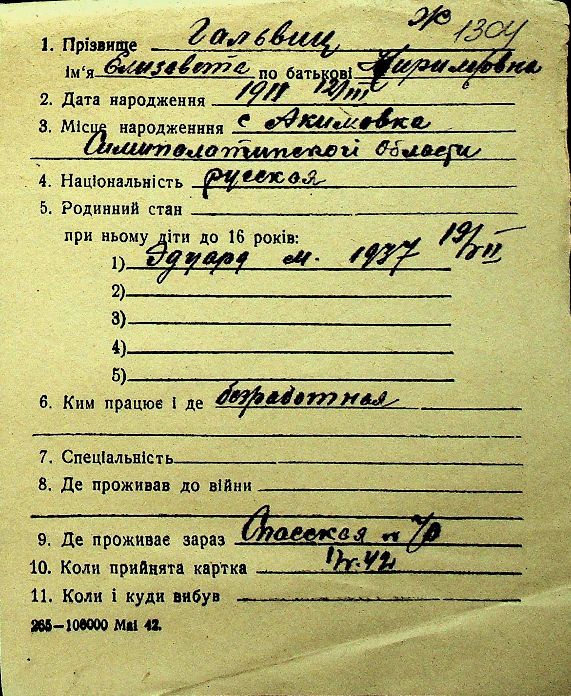 • • Перелік карток до фонду № Н-1016