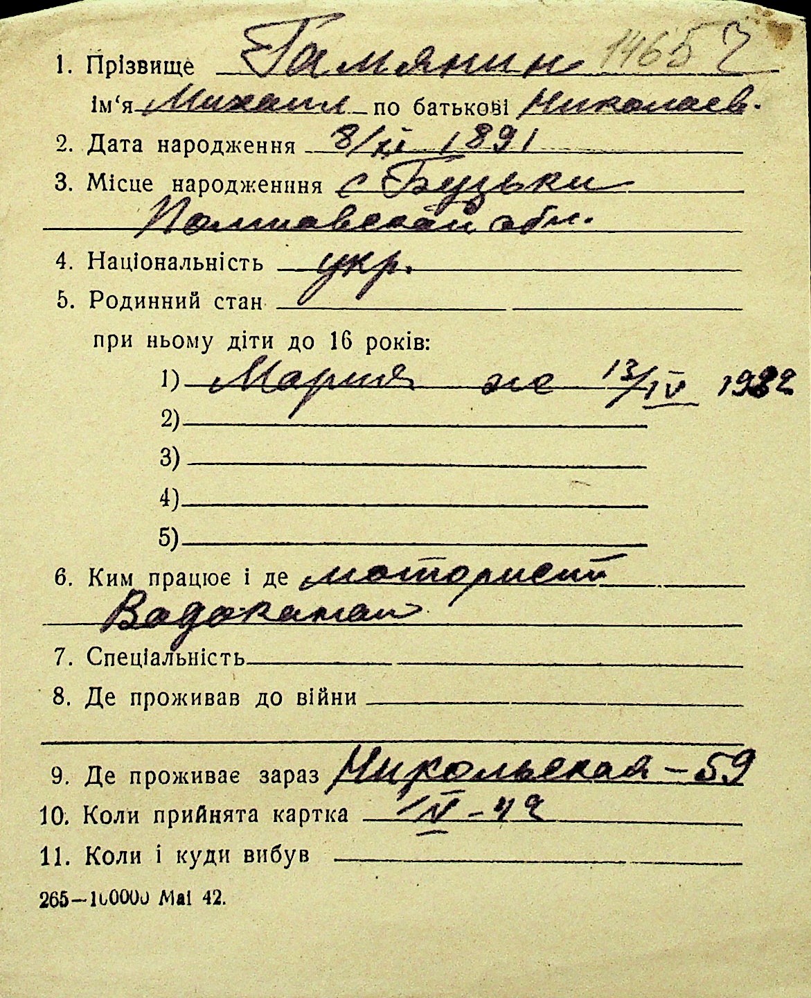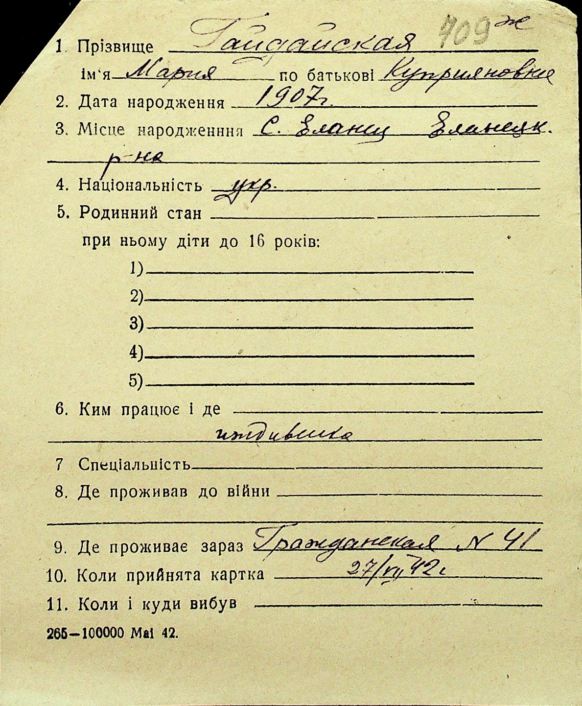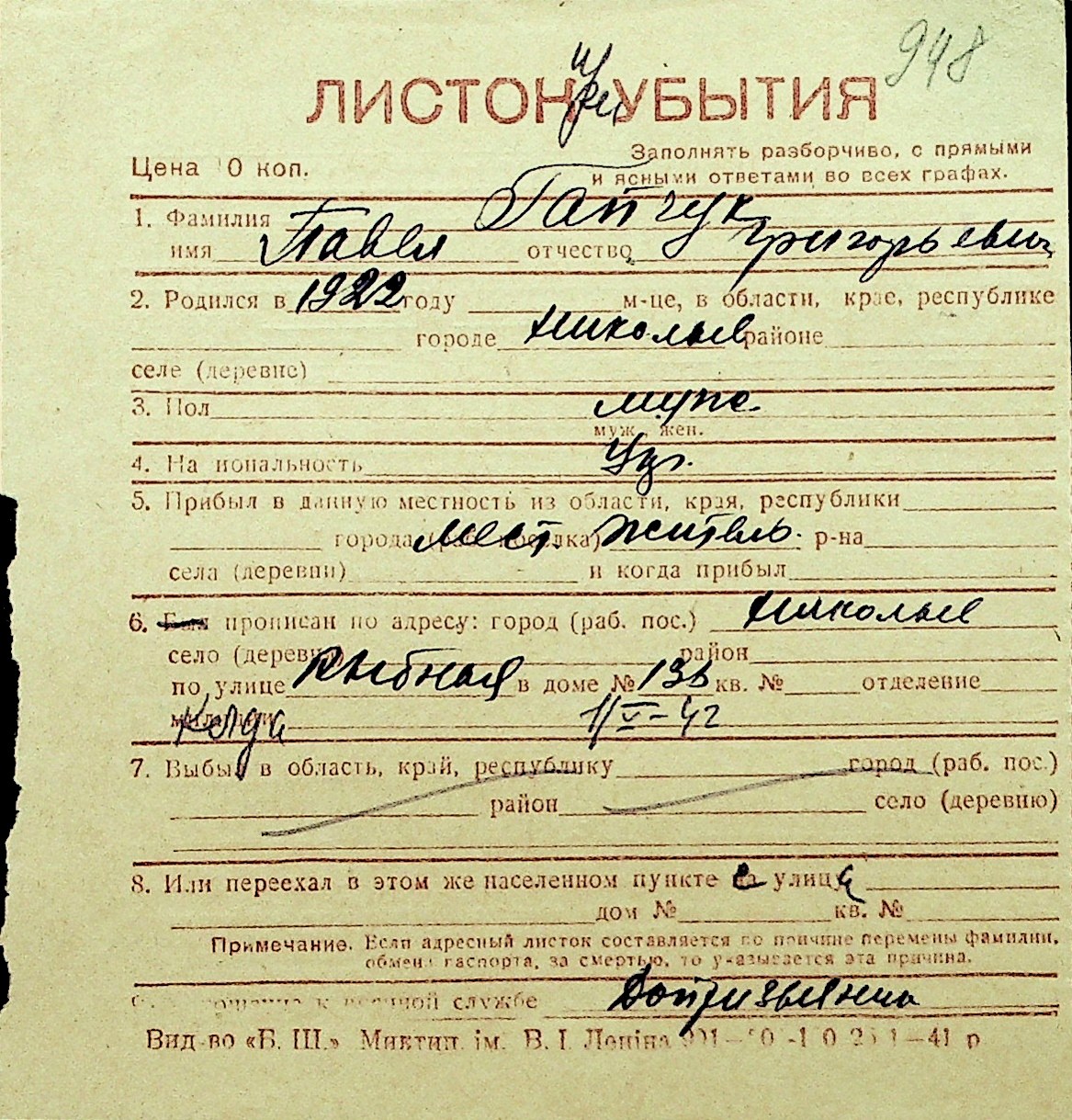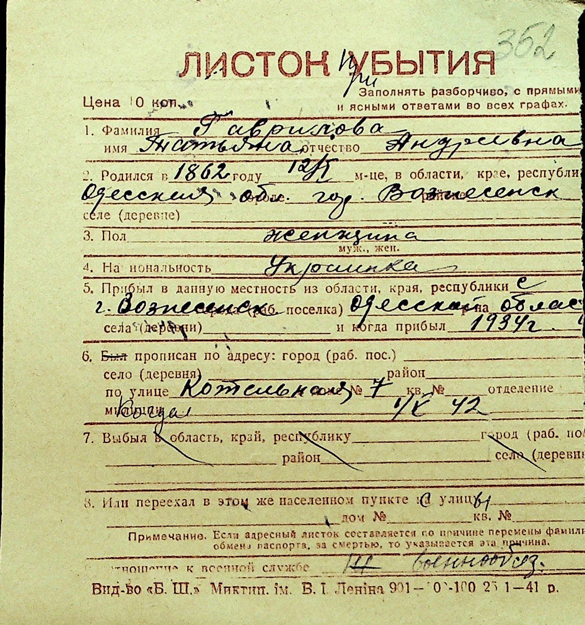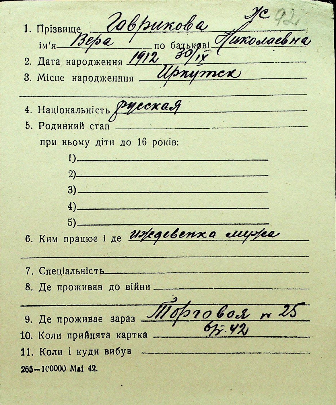 • • Перелік карток до фонду № Н-1016