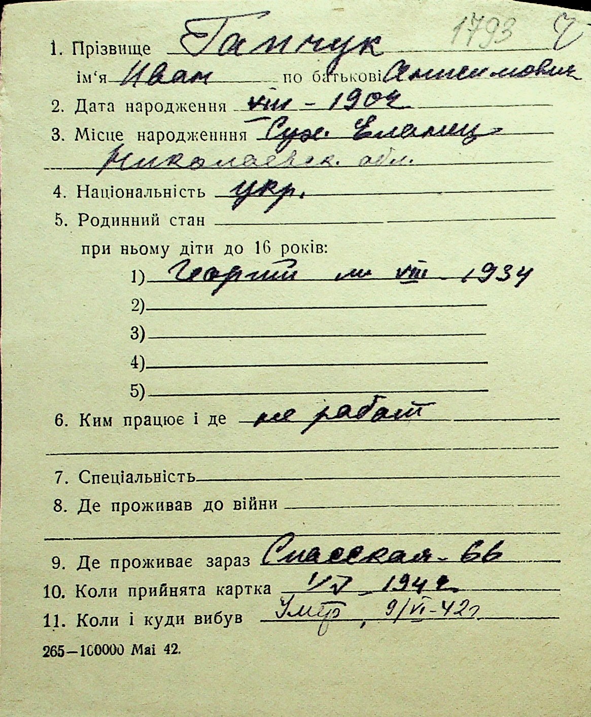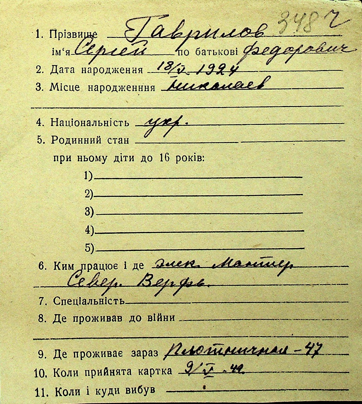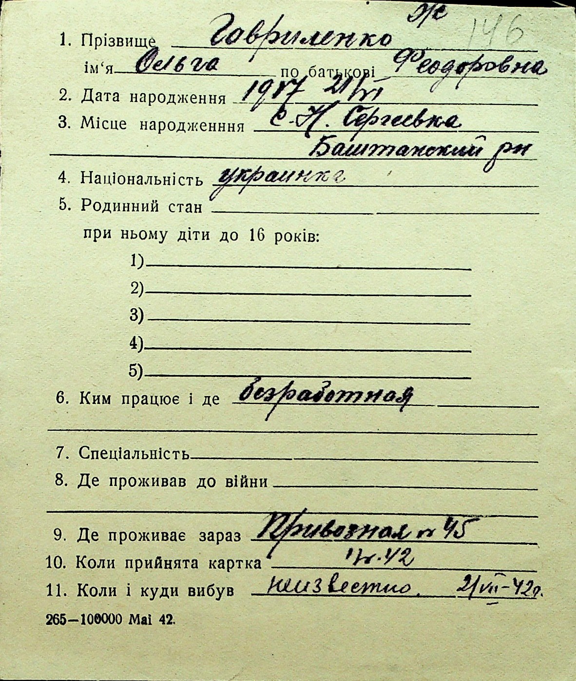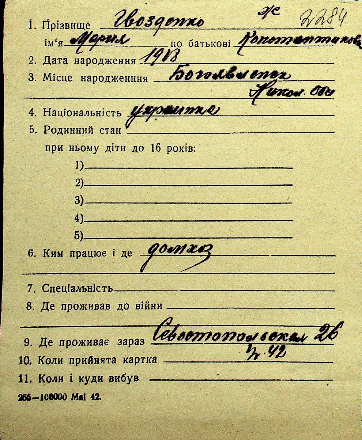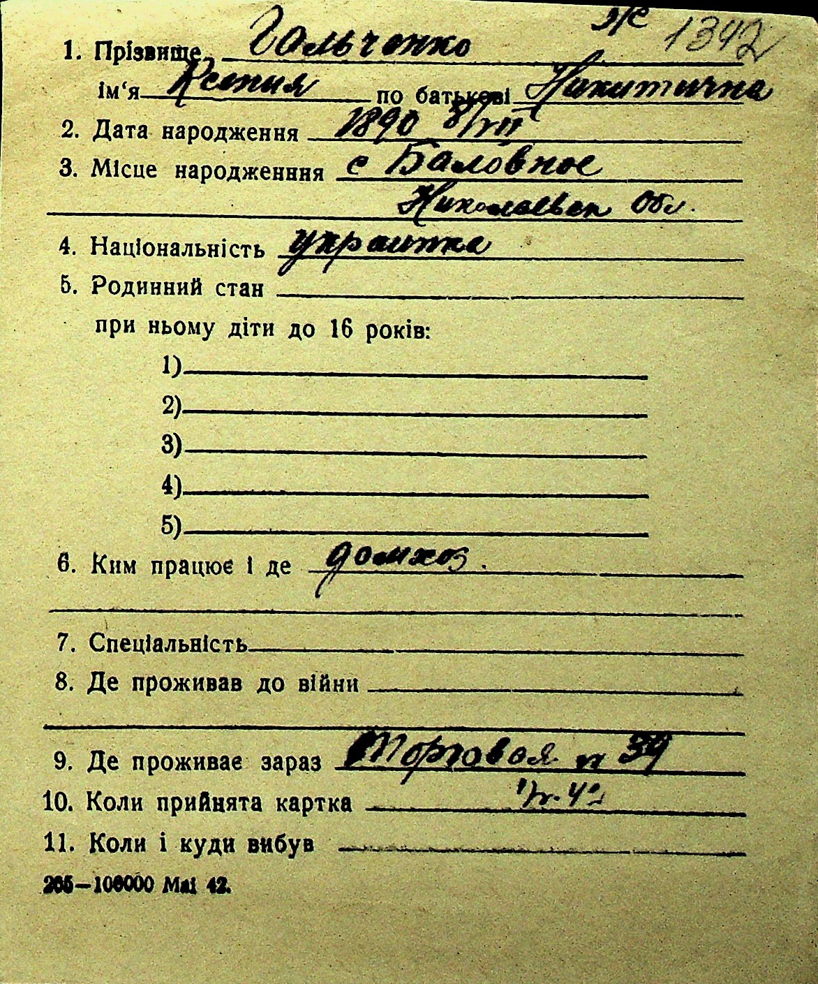 • • Перелік карток до фонду № Н-1016