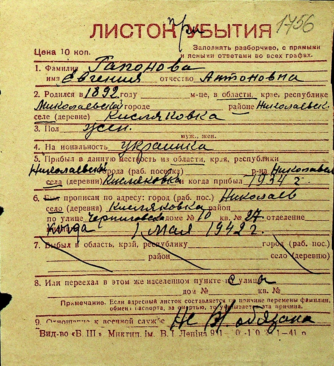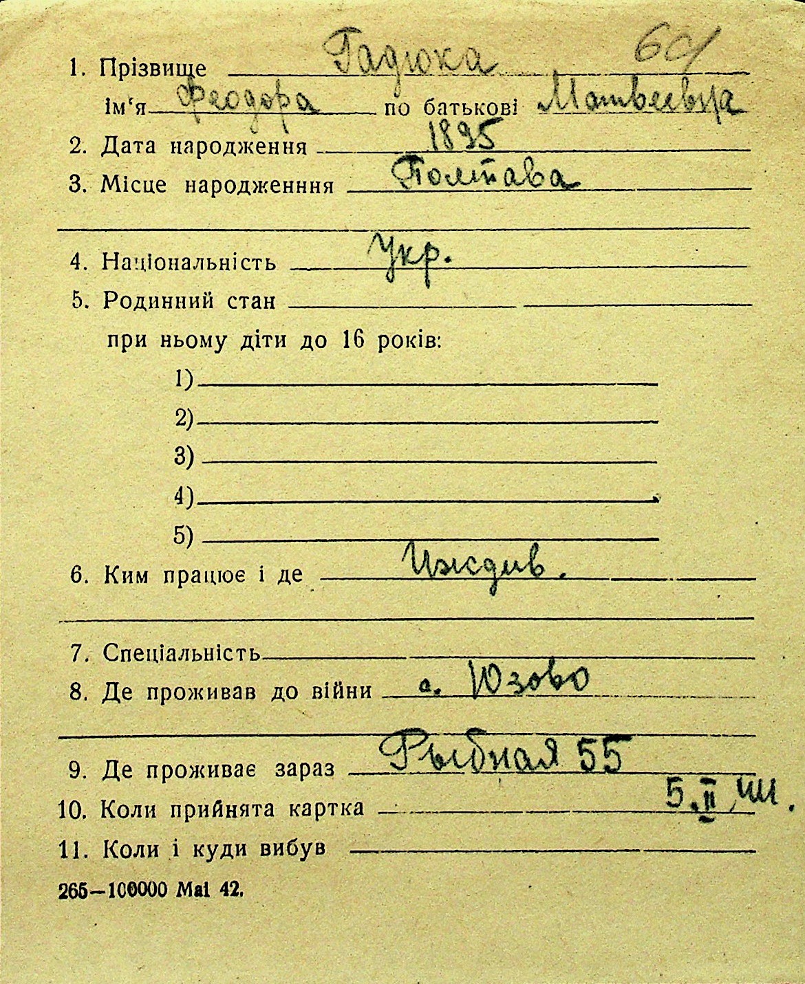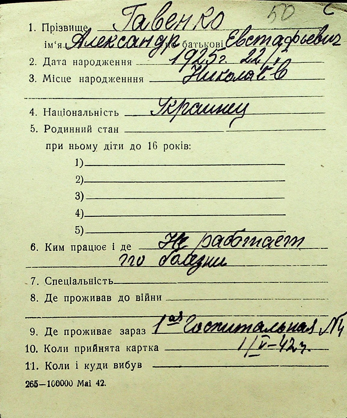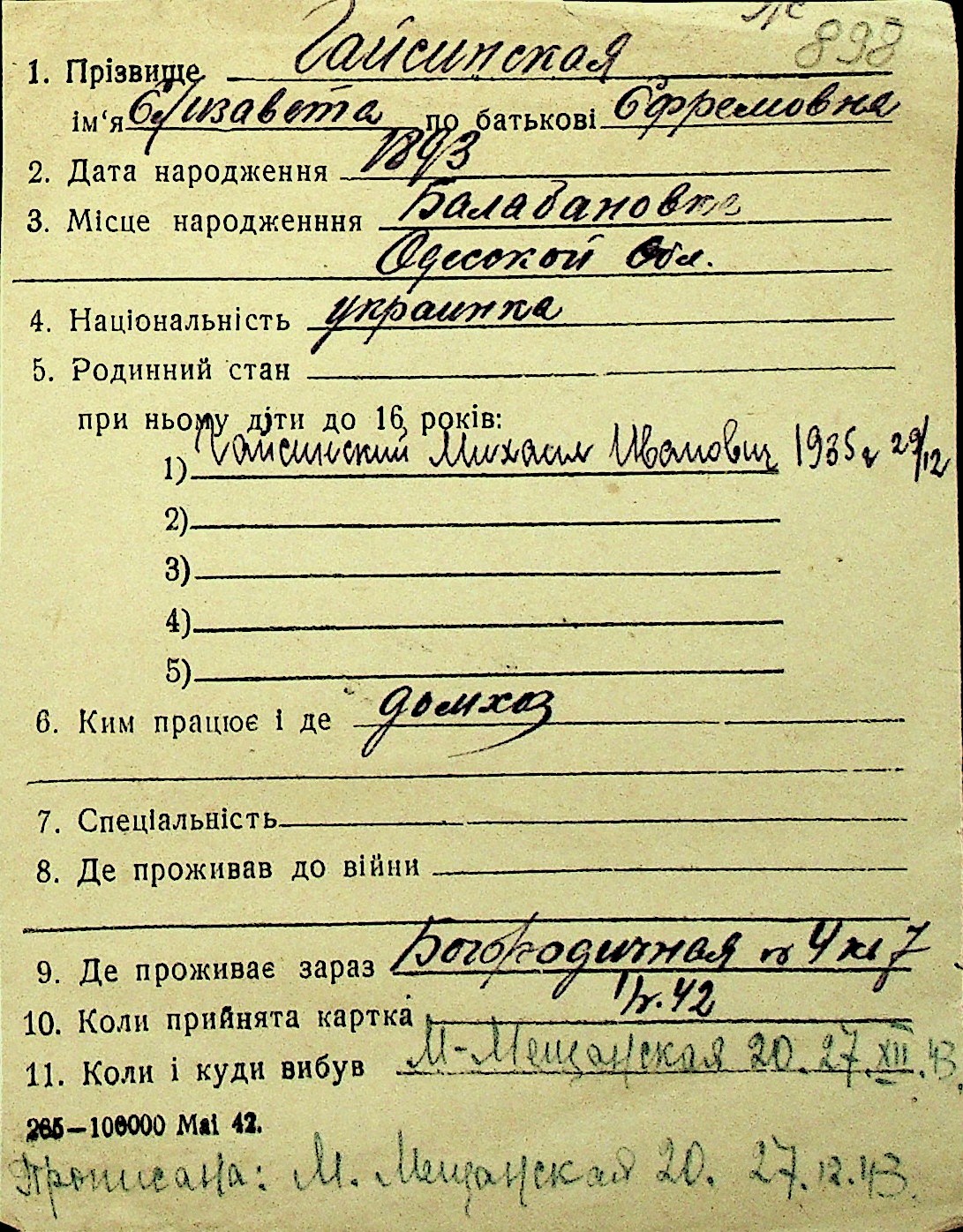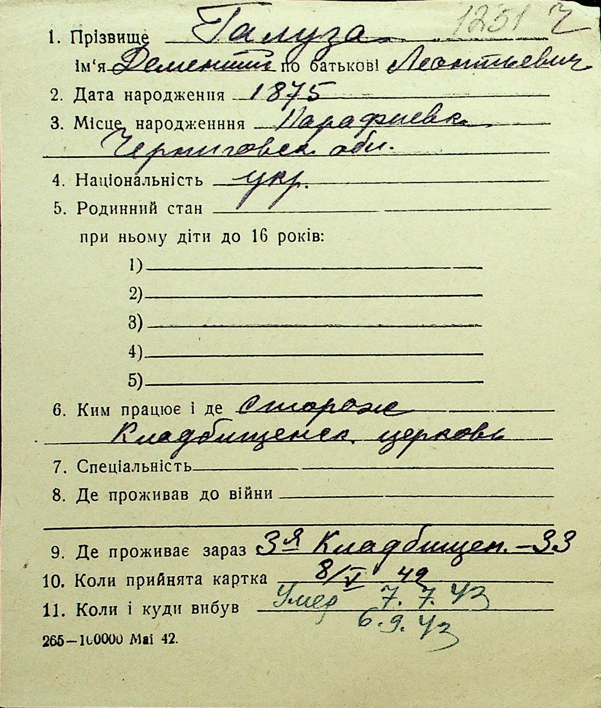• • Перелік карток до фонду № Н-1016