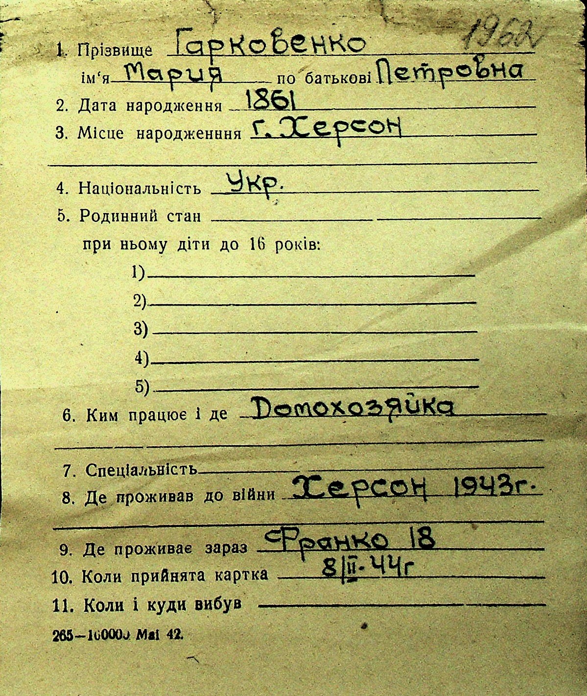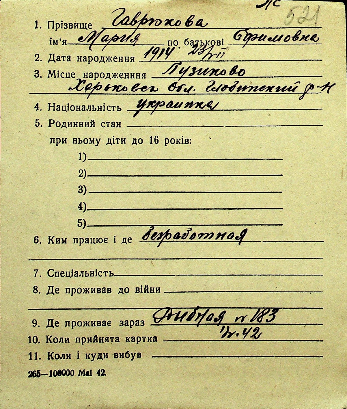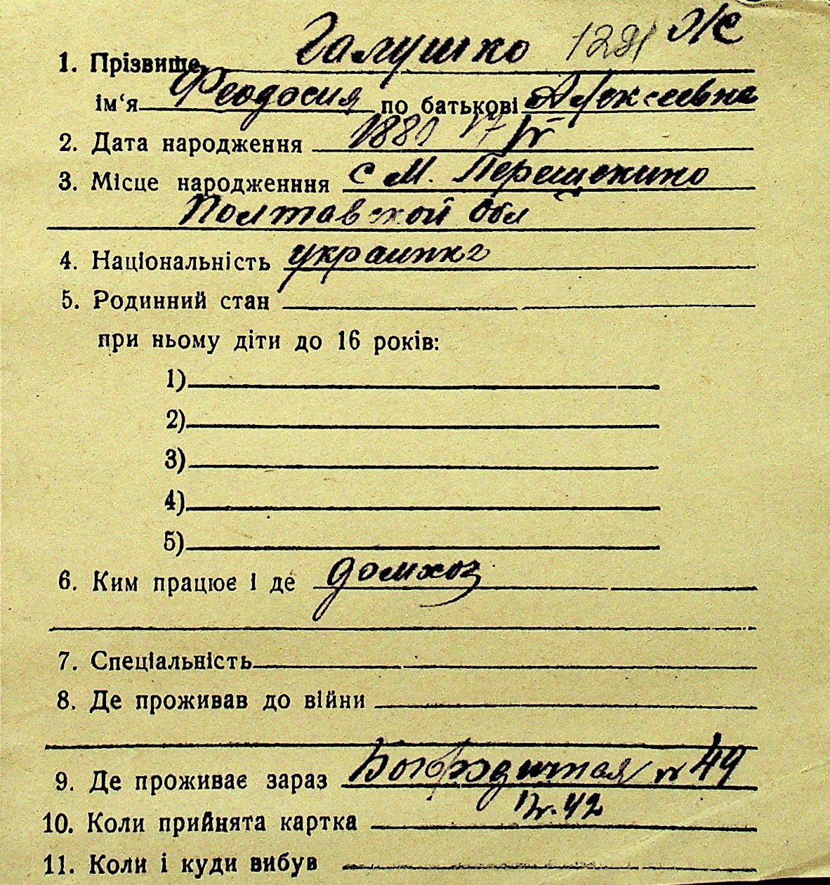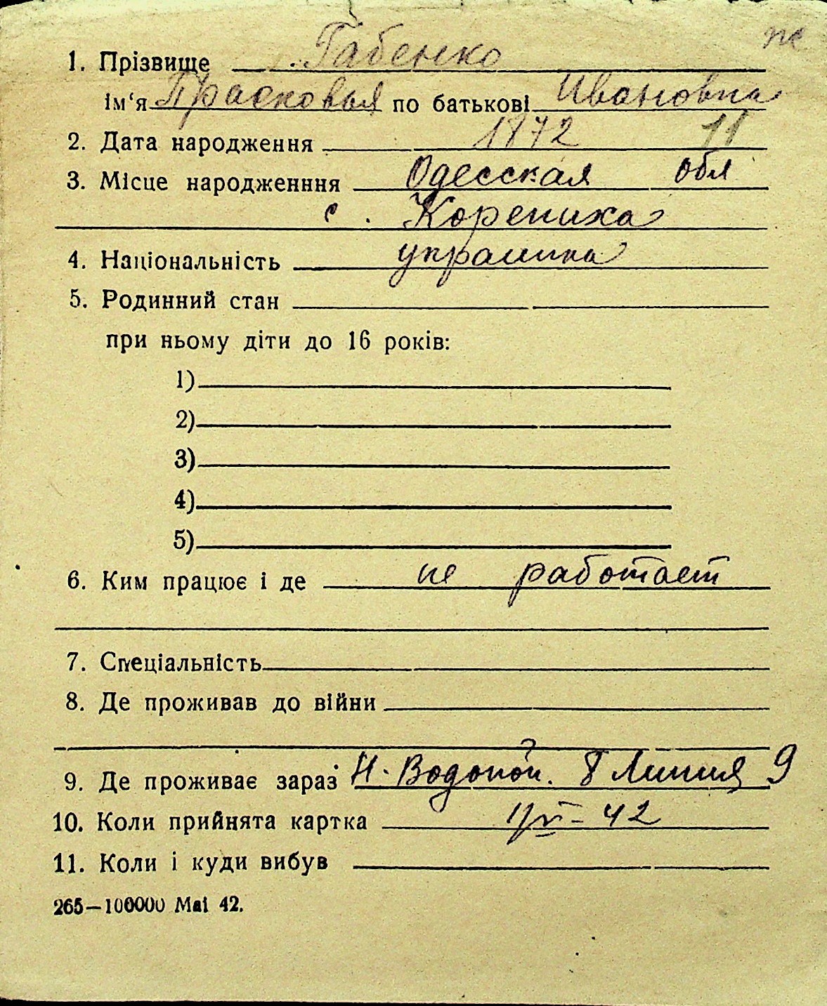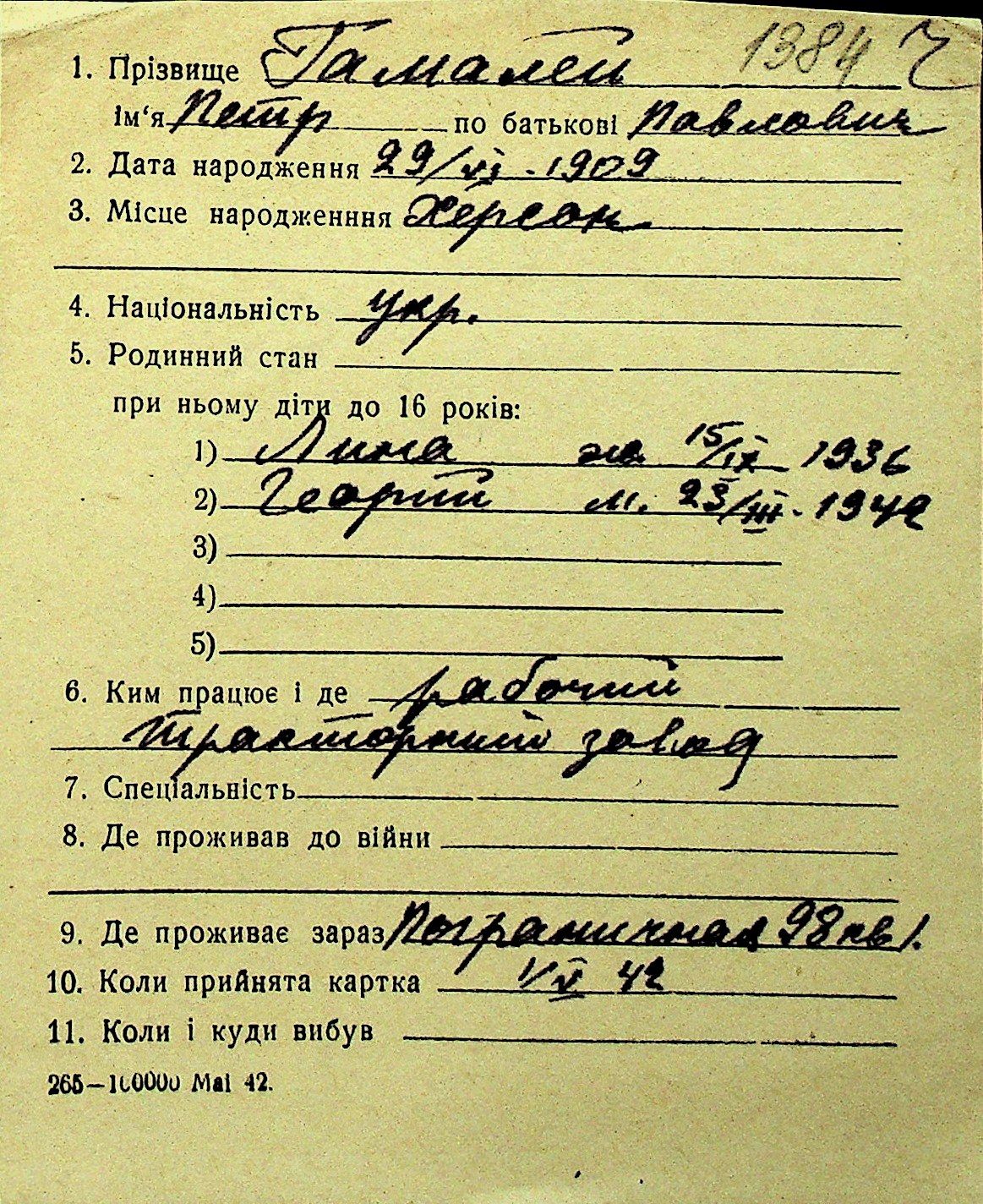 • • Перелік карток до фонду № Н-1016