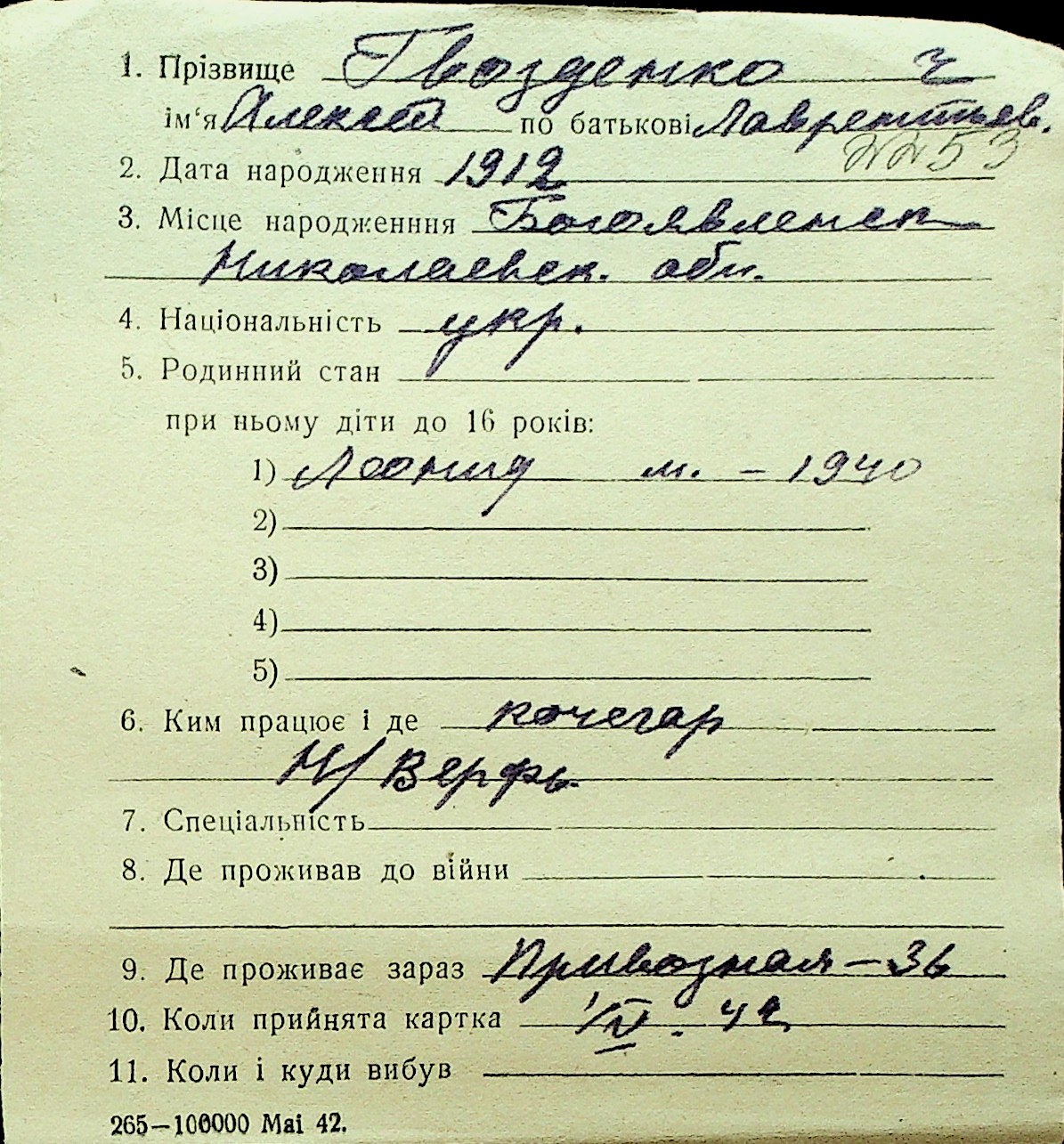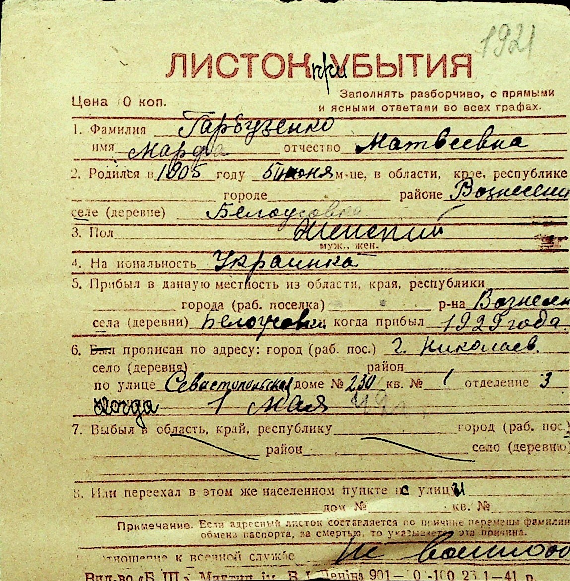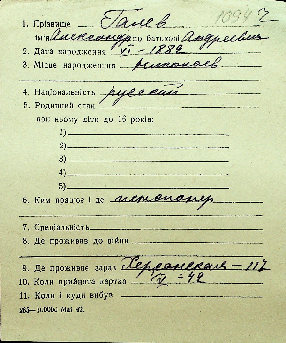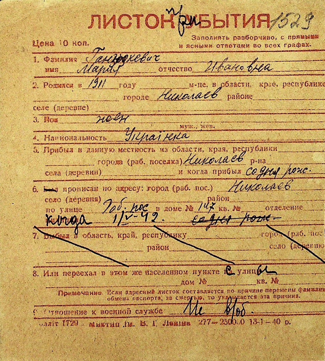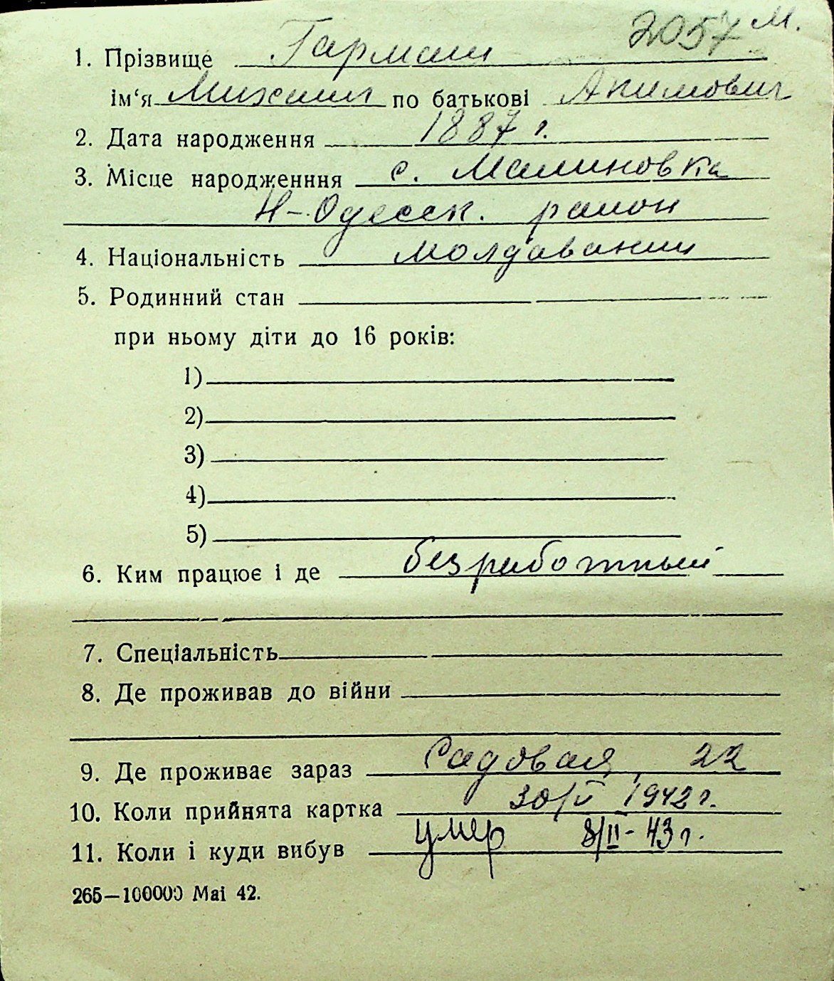 • • Перелік карток до фонду № Н-1016