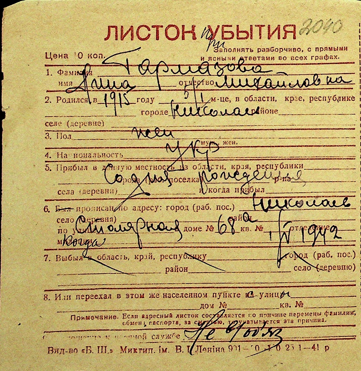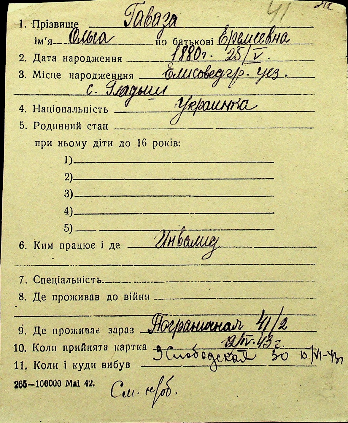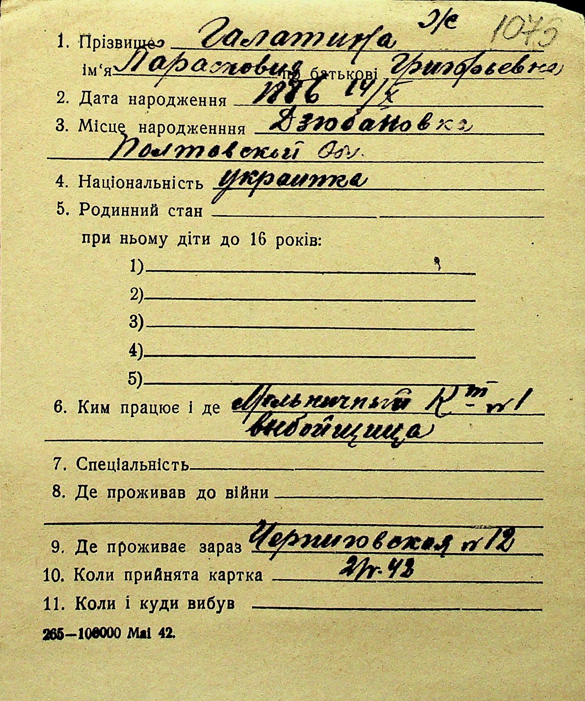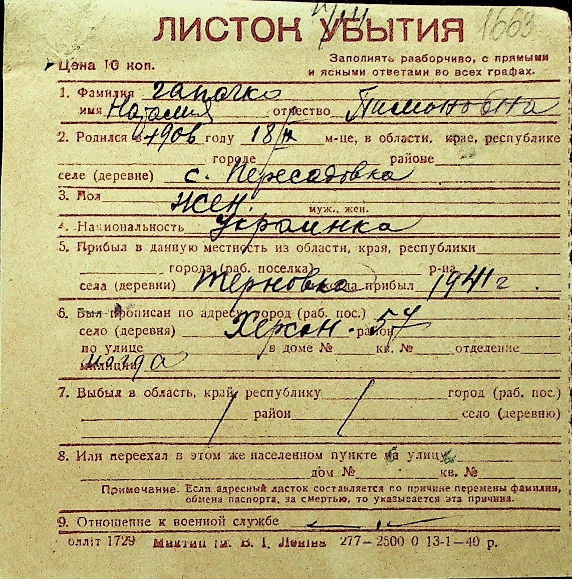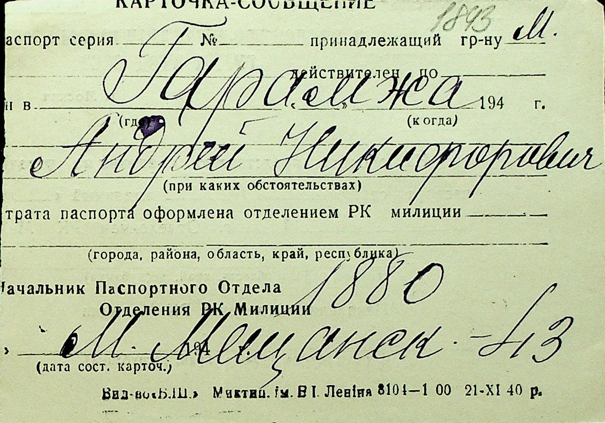 • • Перелік карток до фонду № Н-1016