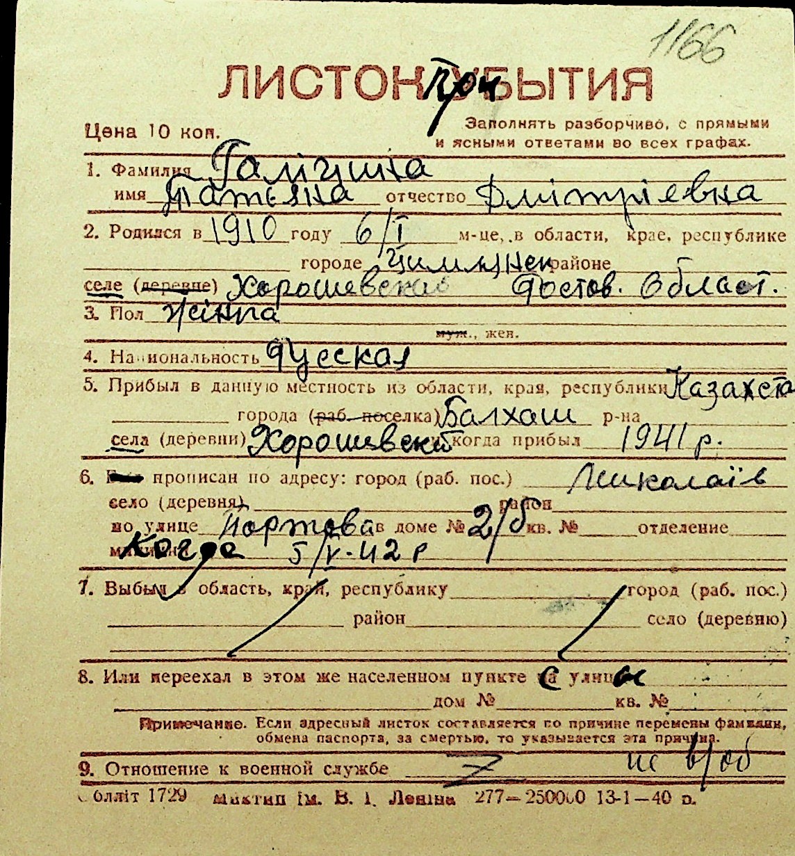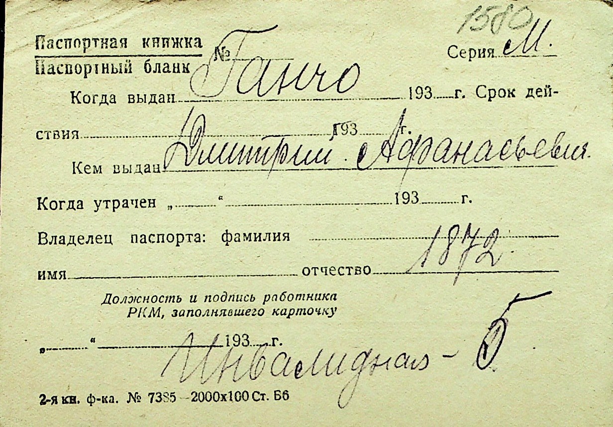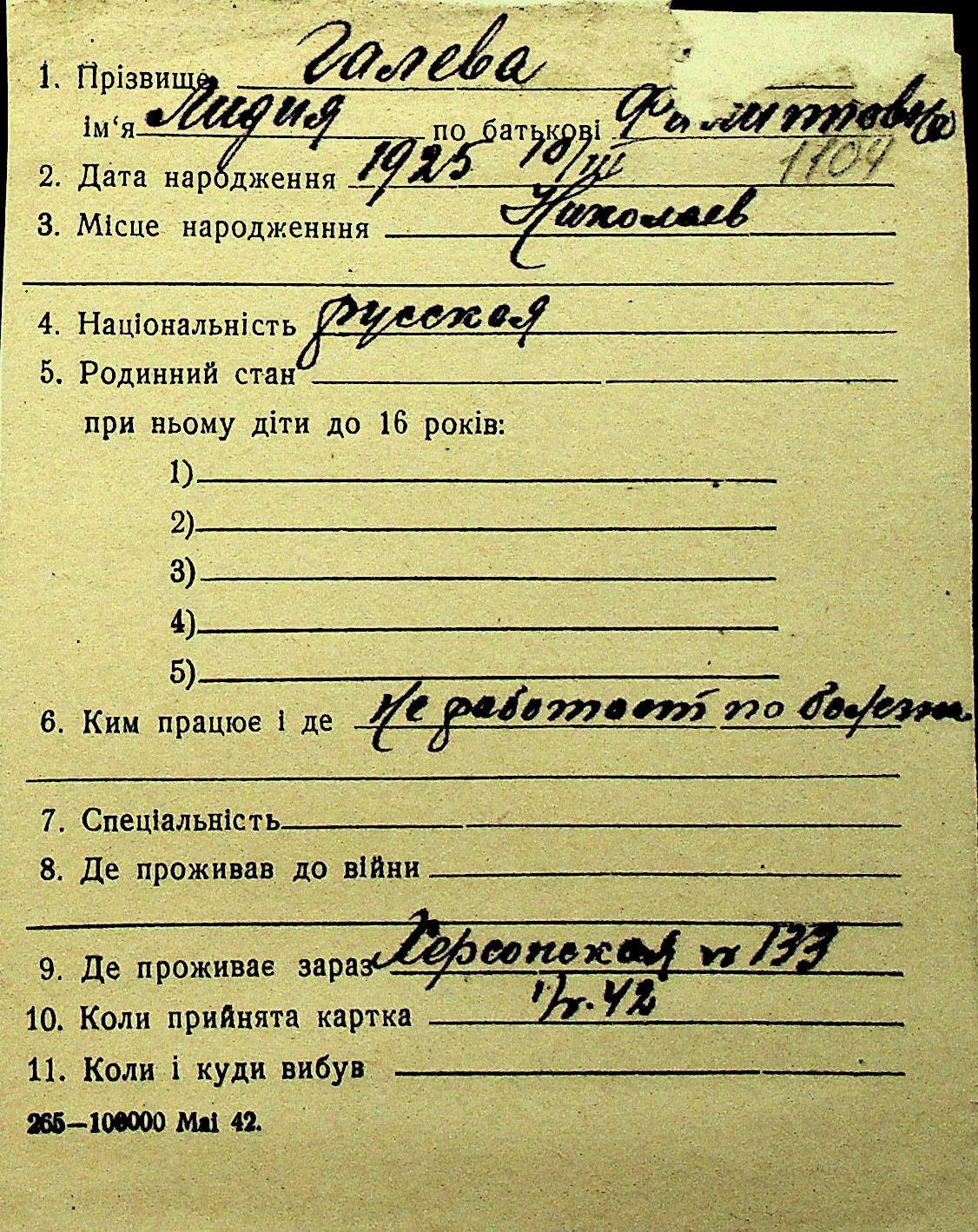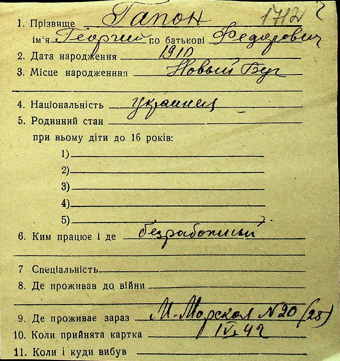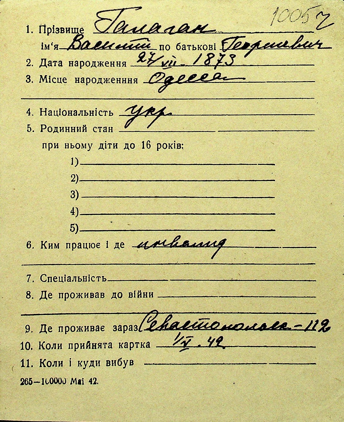 • • Перелік карток до фонду № Н-1016