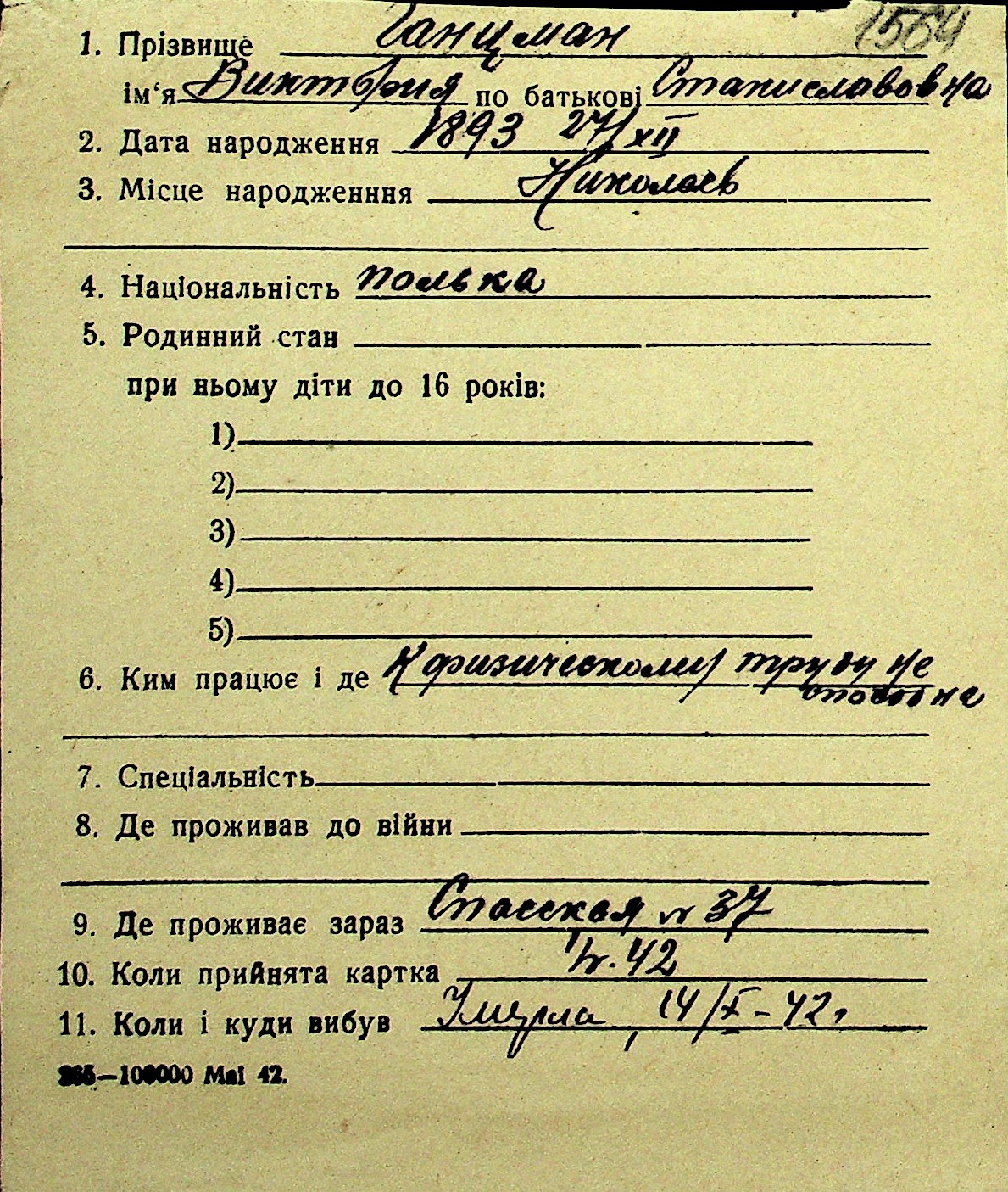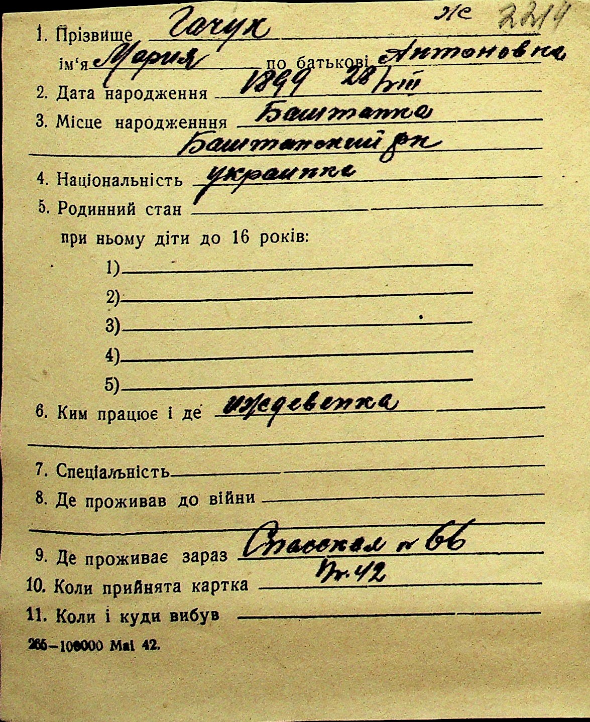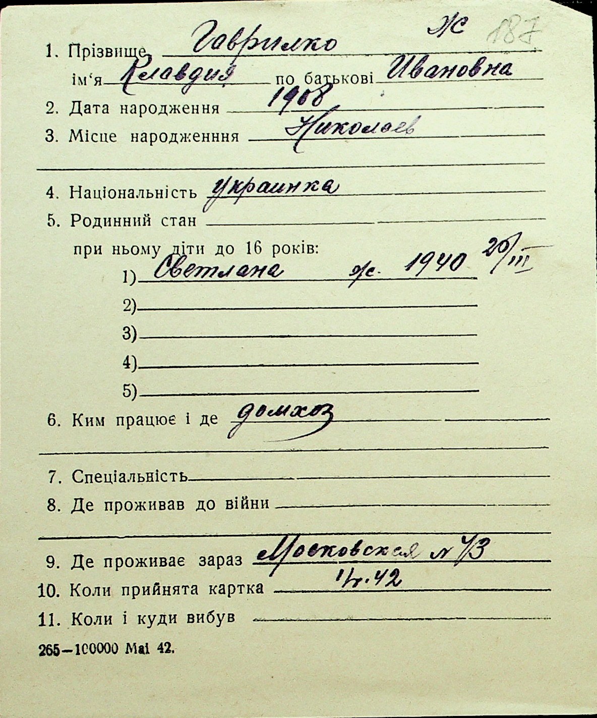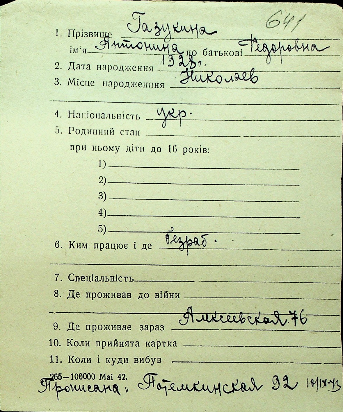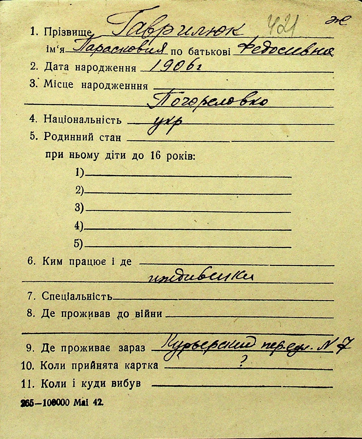 • • Перелік карток до фонду № Н-1016