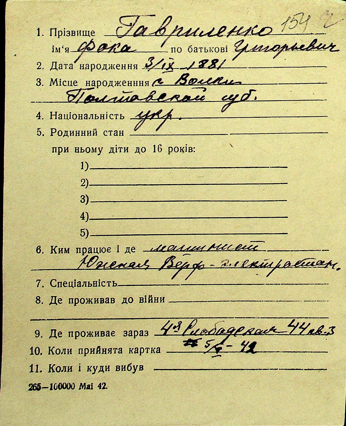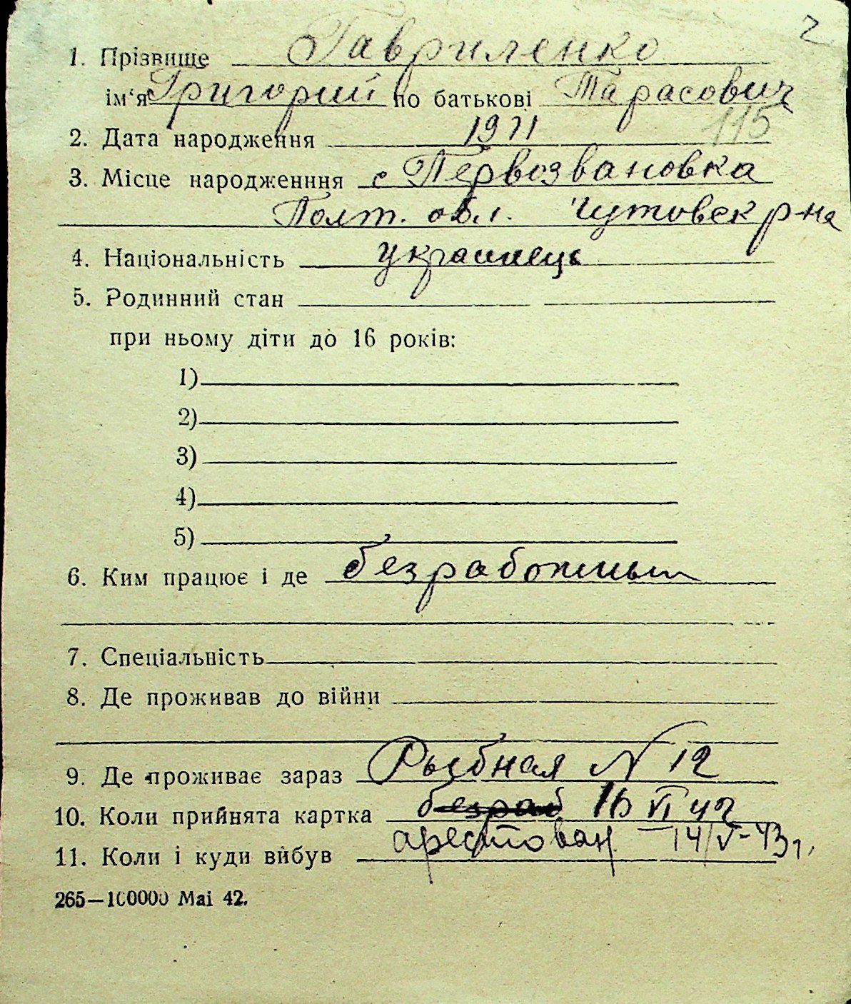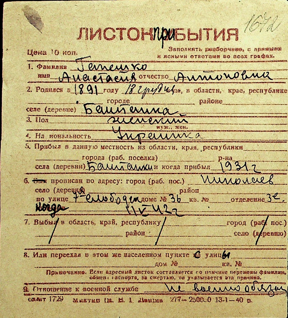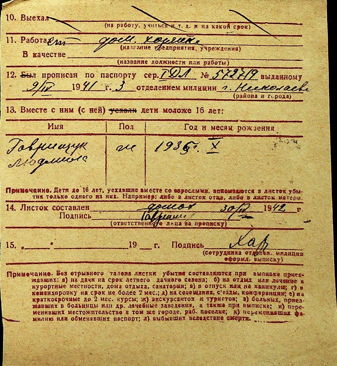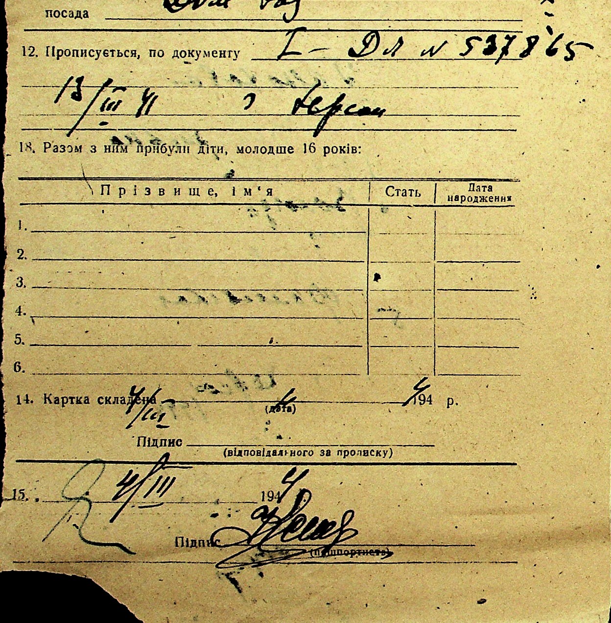• • Перелік карток до фонду № Н-1016