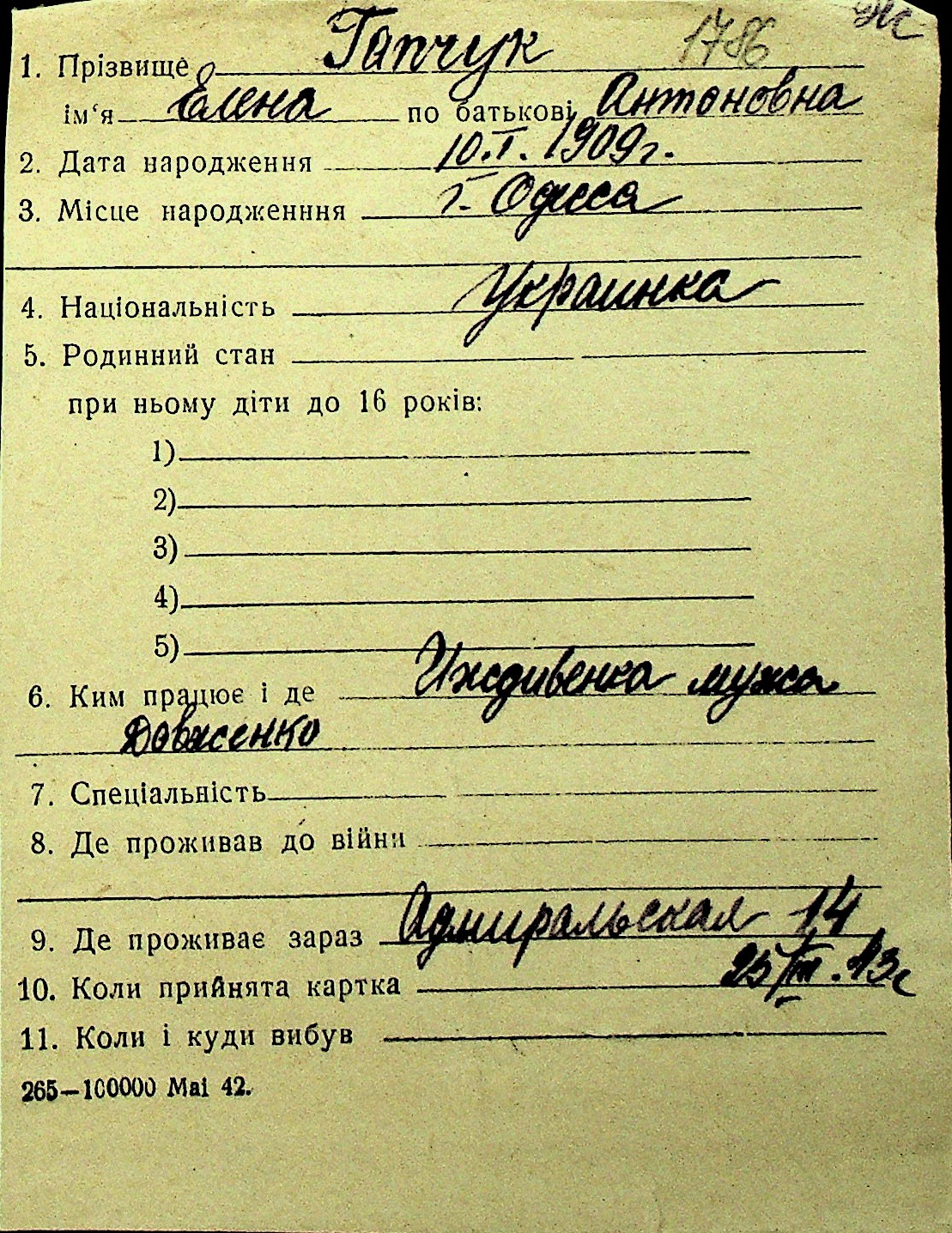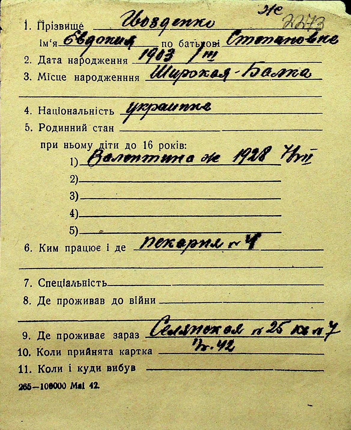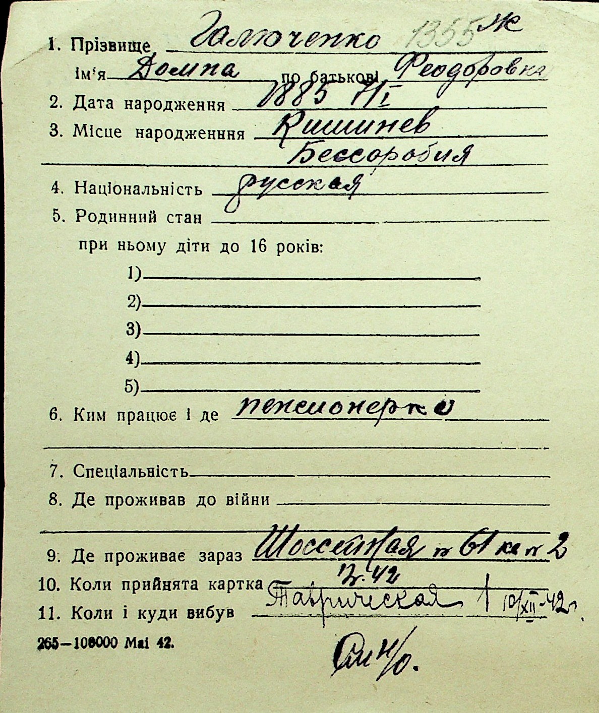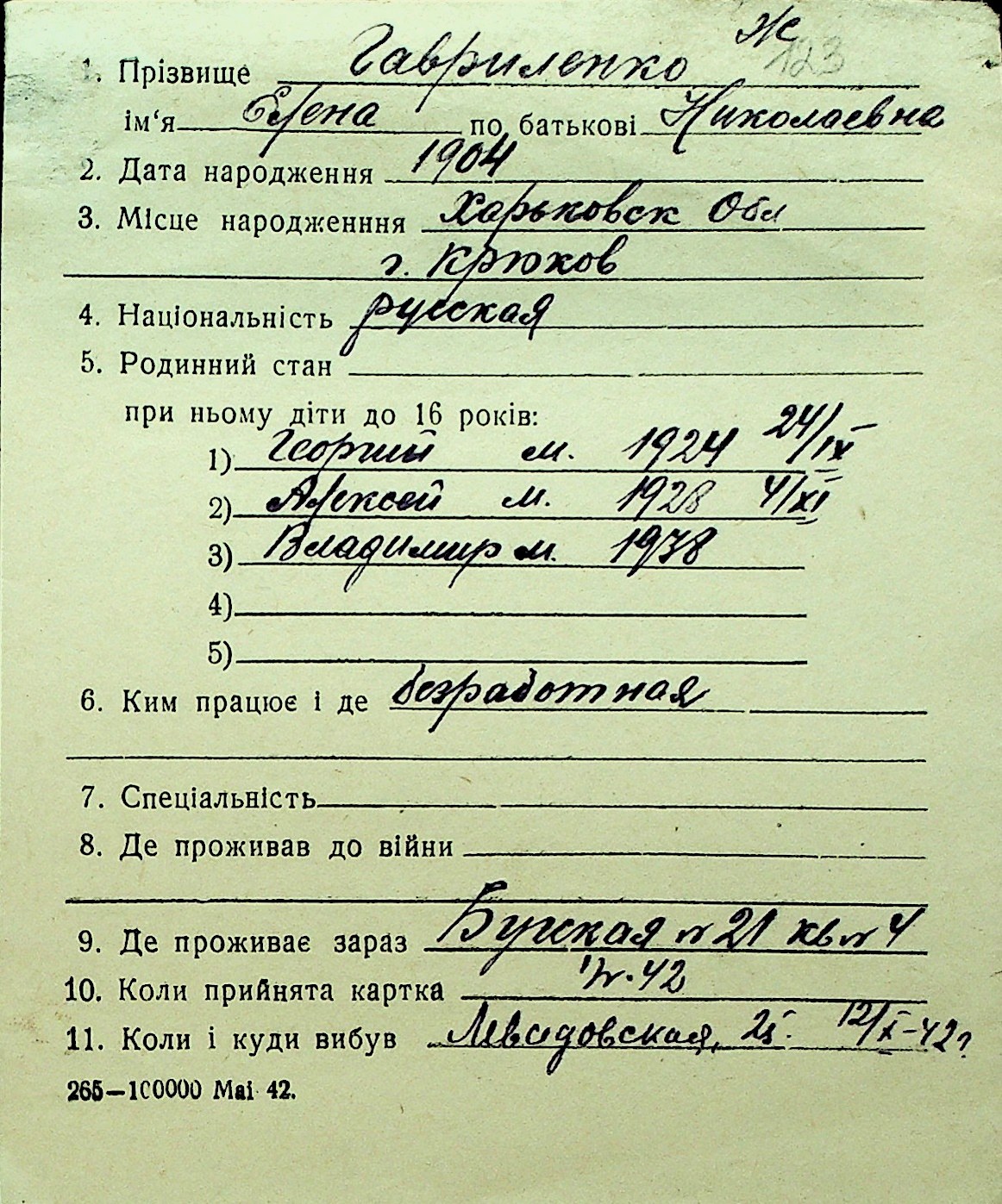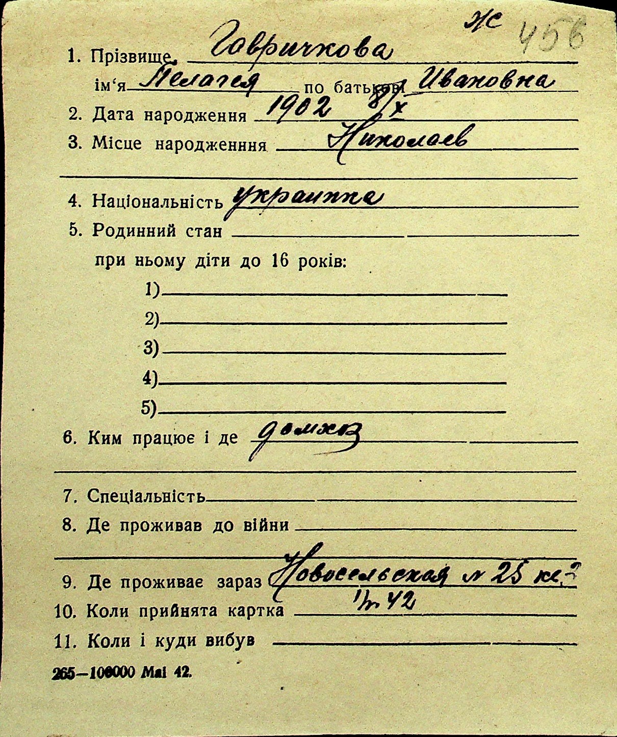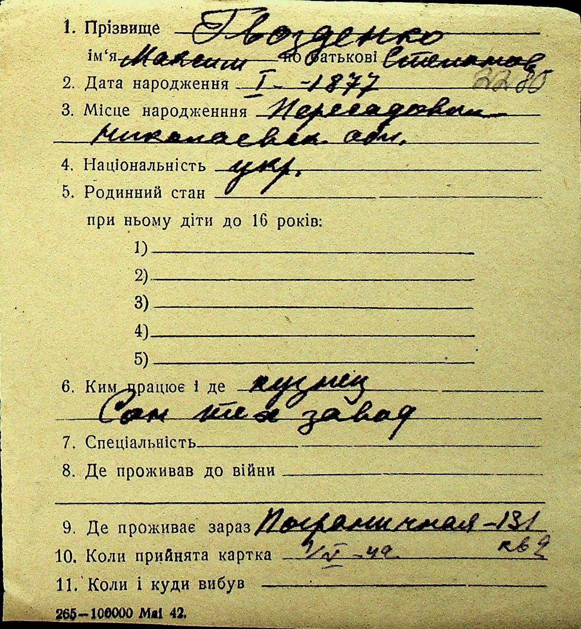 • • Перелік карток до фонду № Н-1016