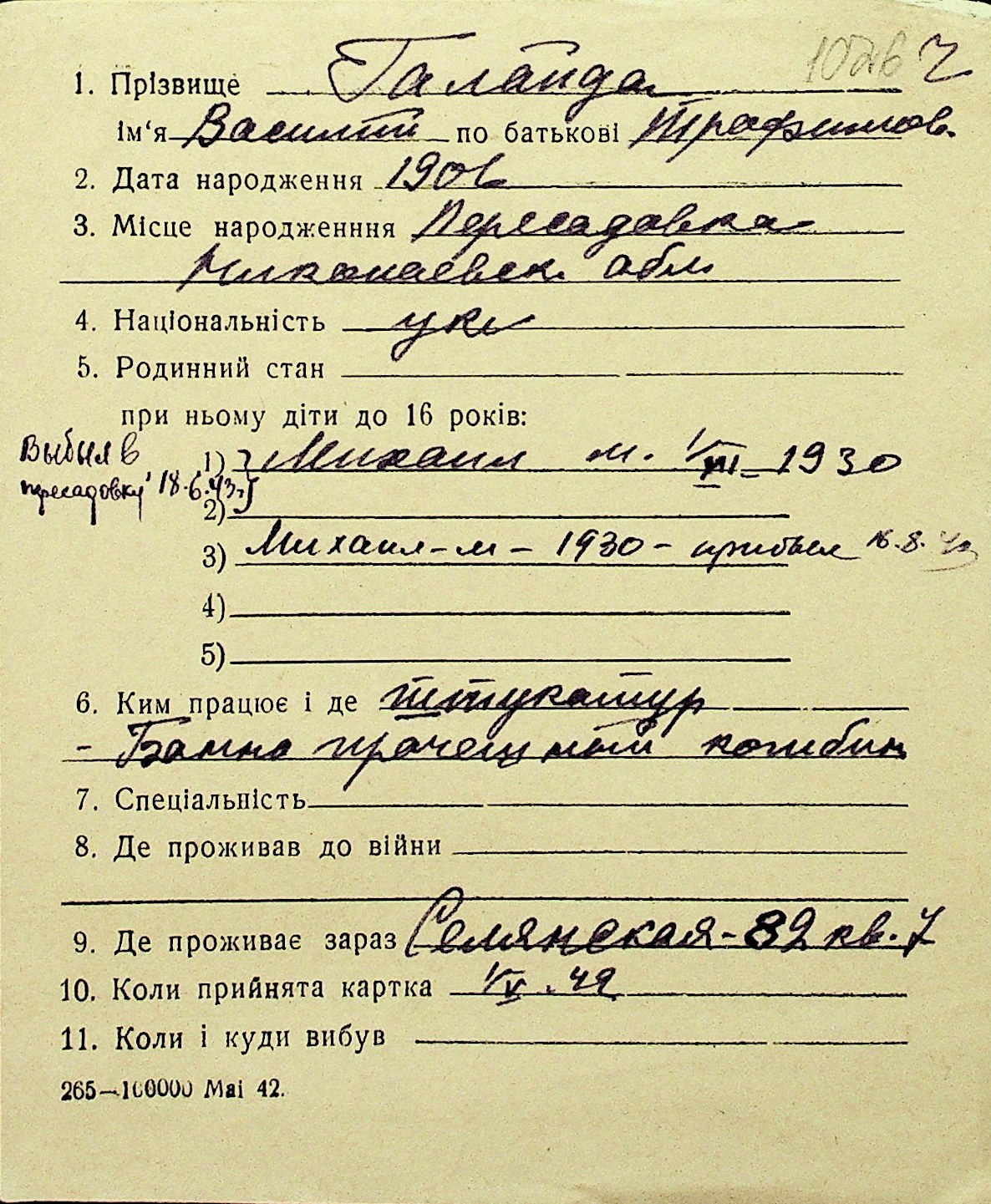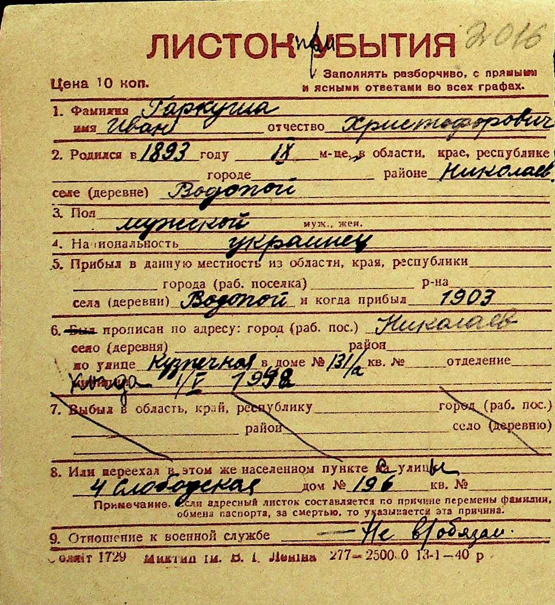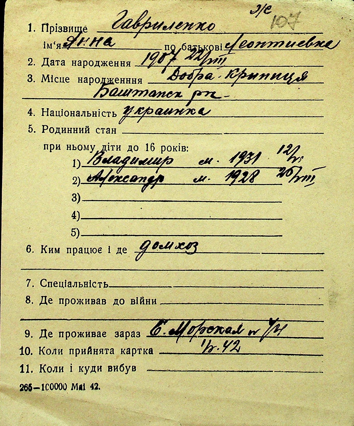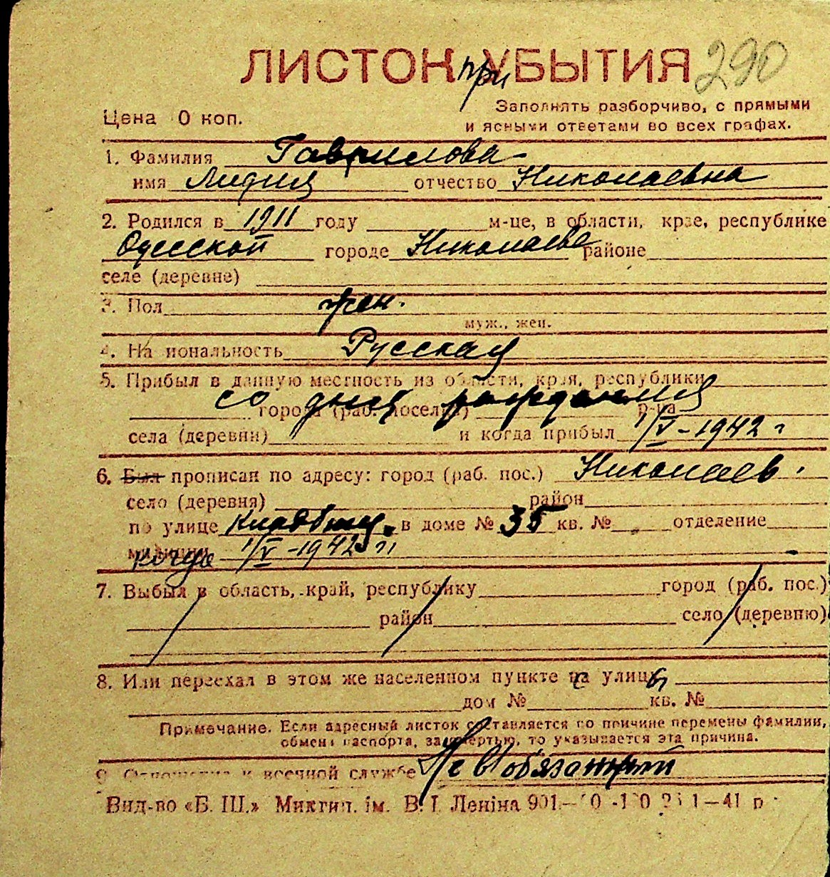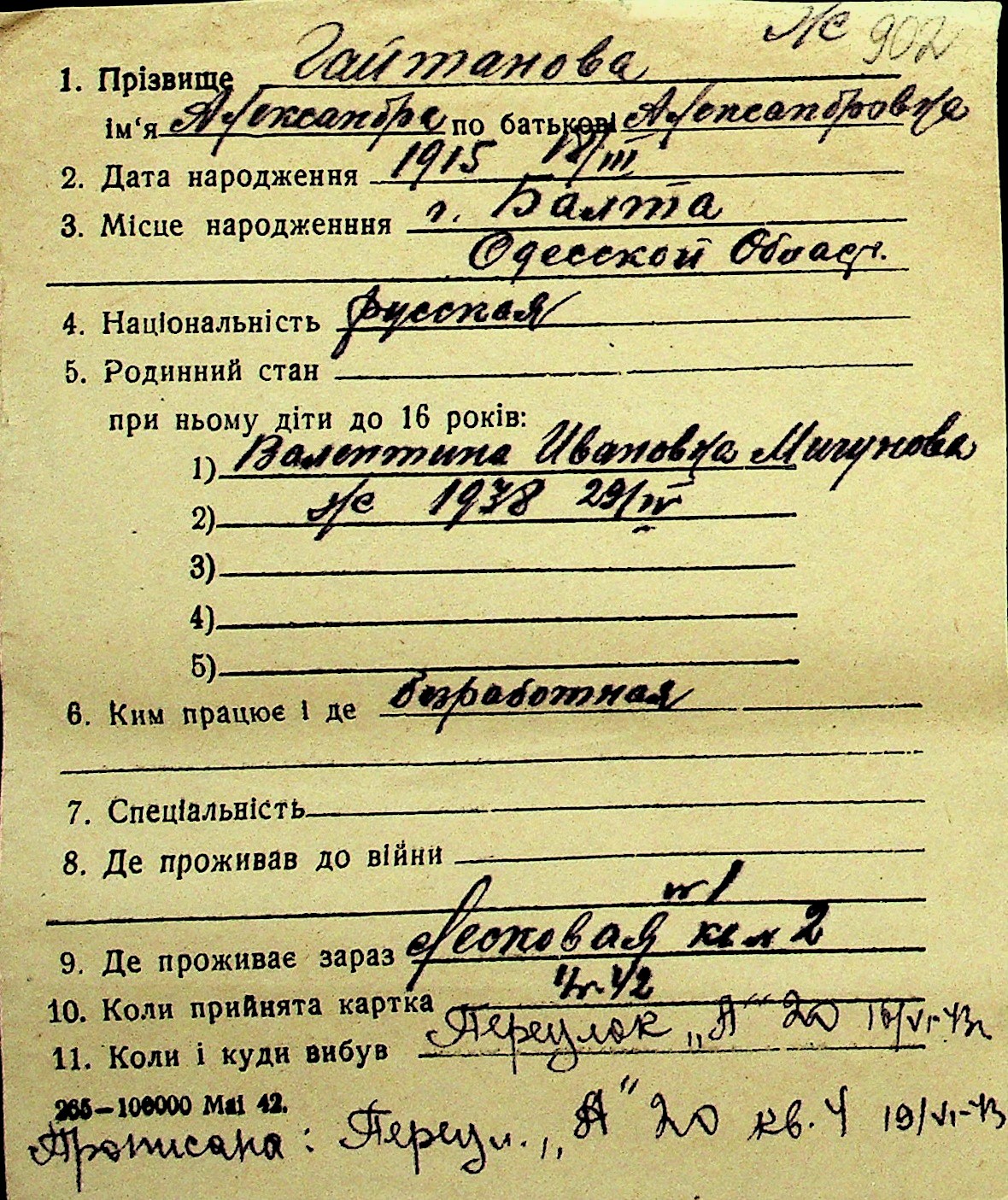 • • Перелік карток до фонду № Н-1016