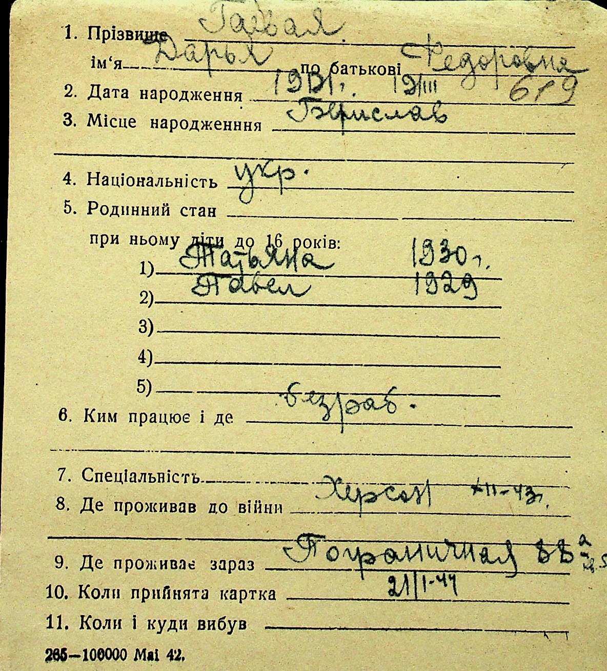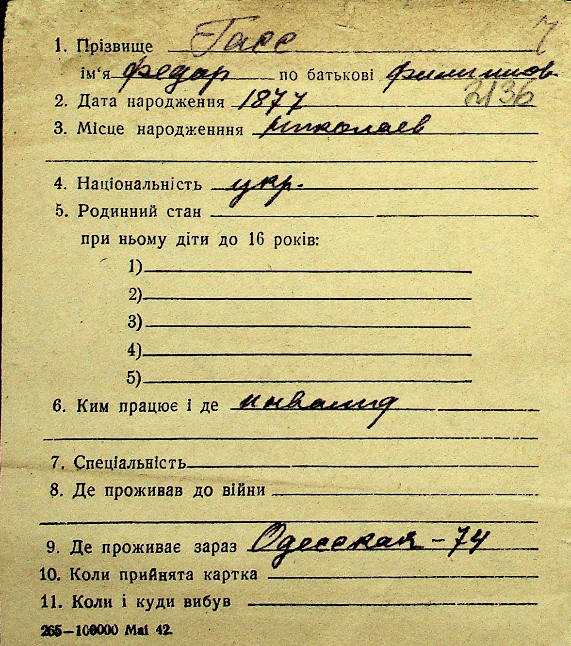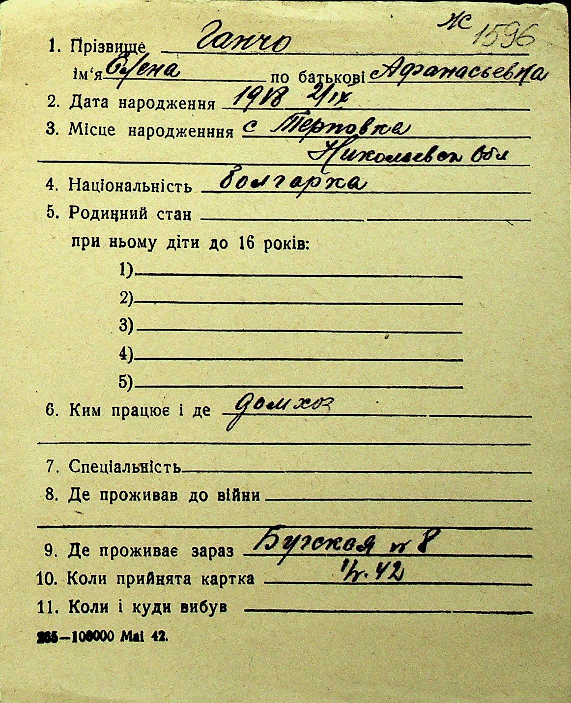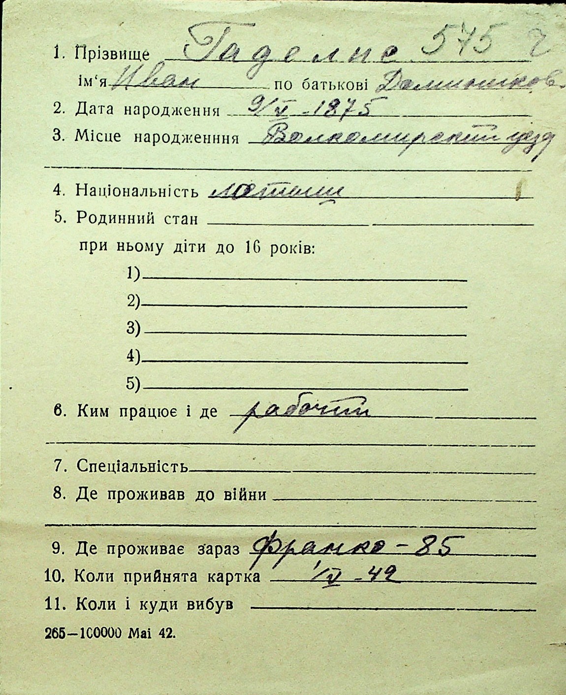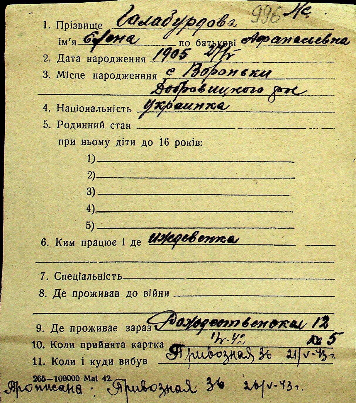 • • Перелік карток до фонду № Н-1016