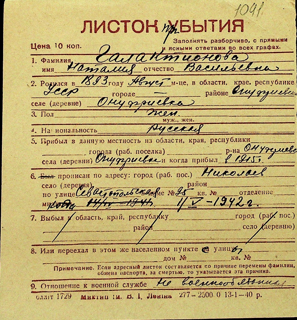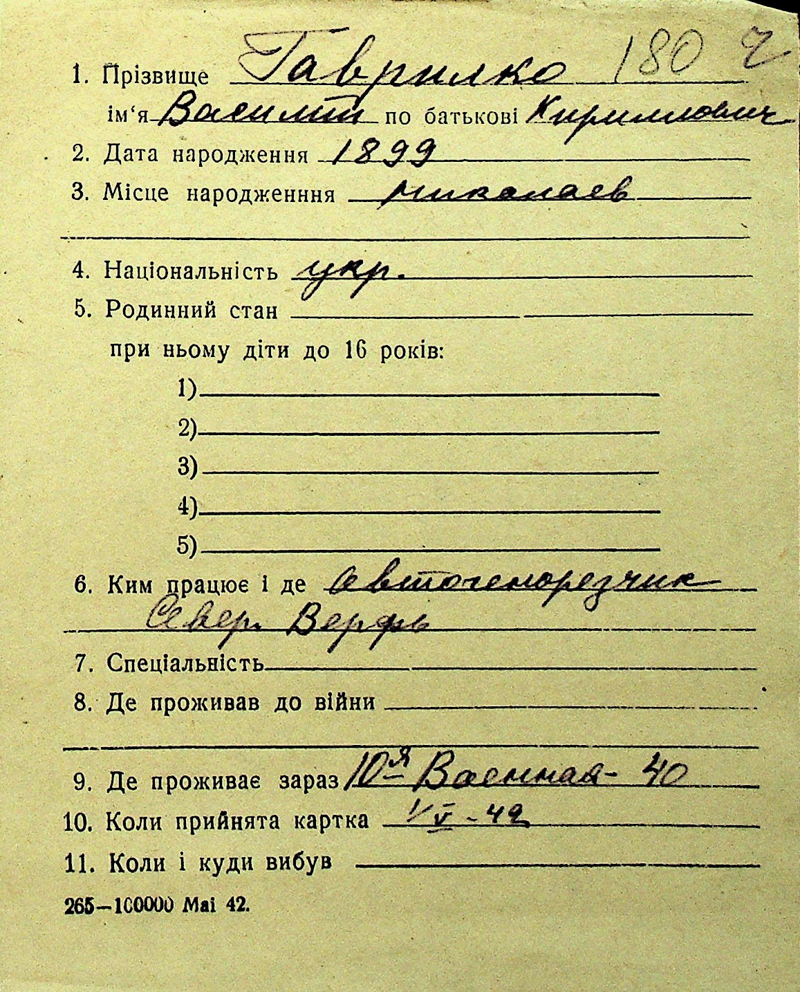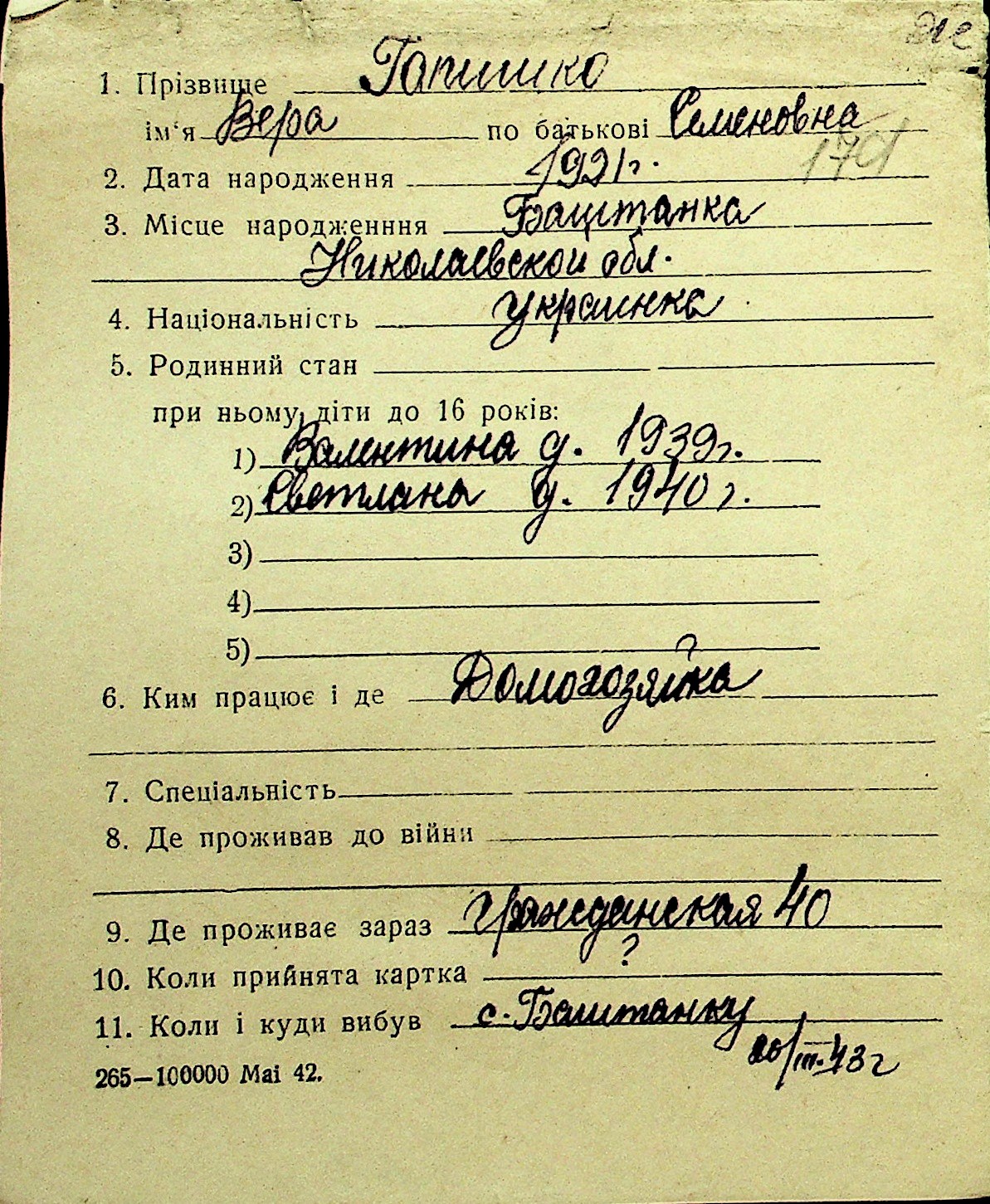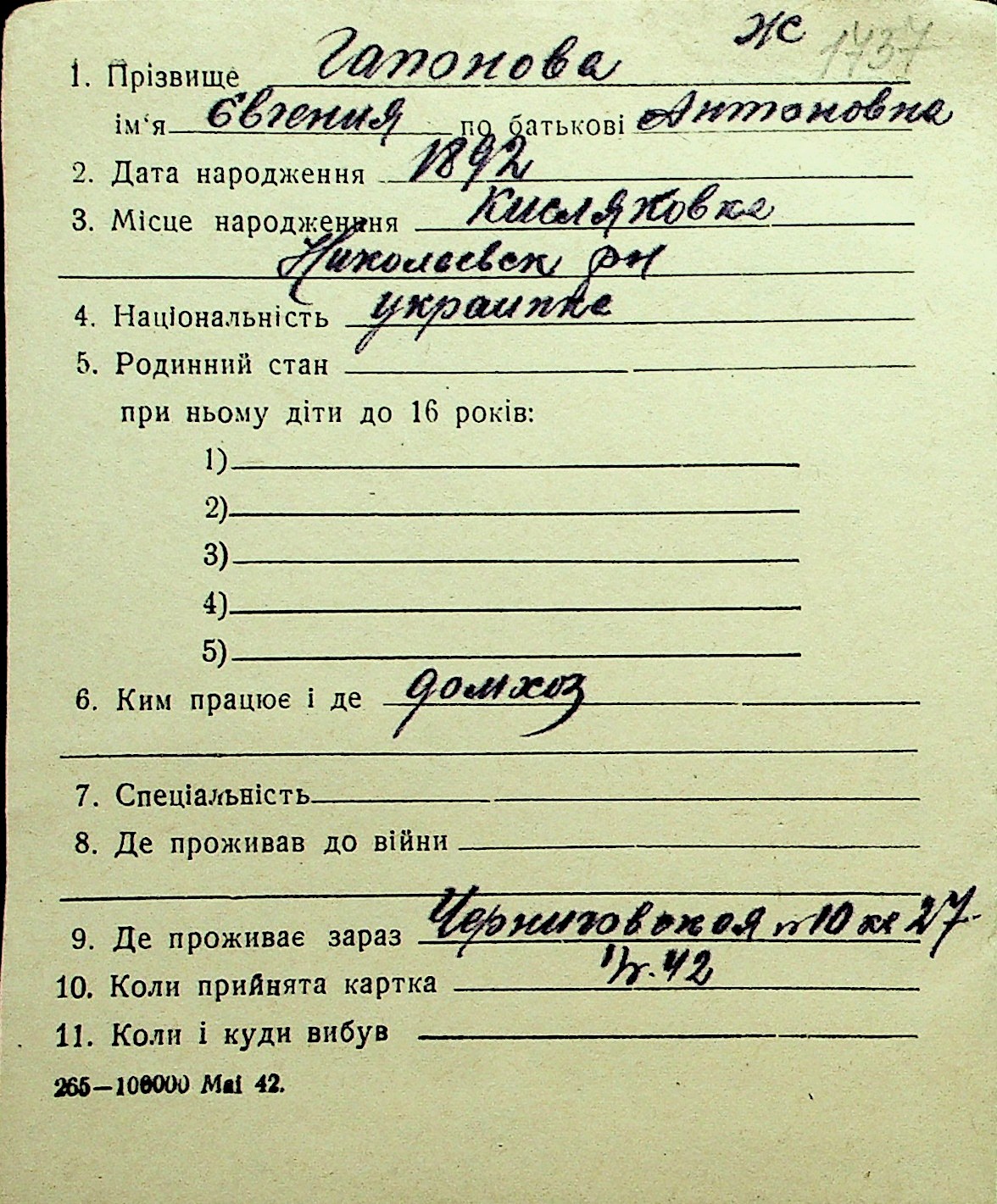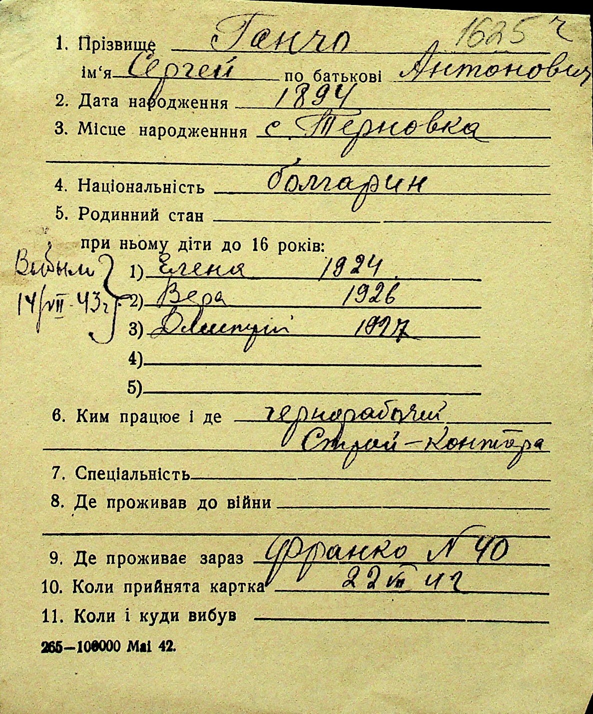 • • Перелік карток до фонду № Н-1016