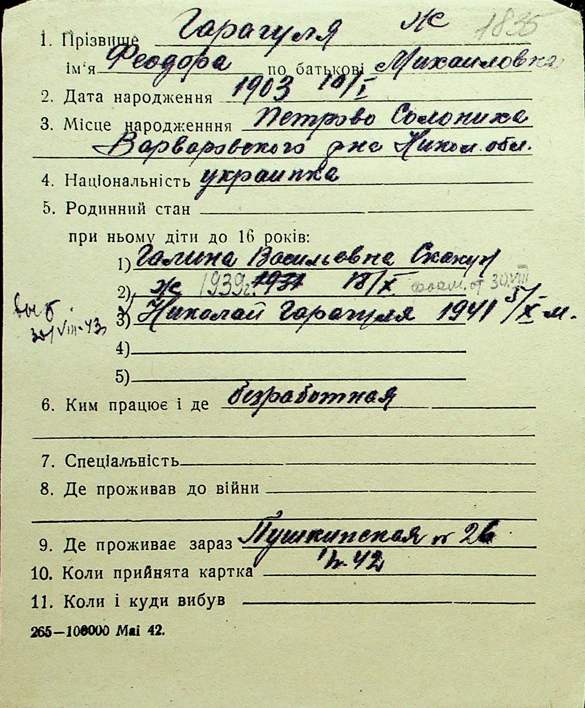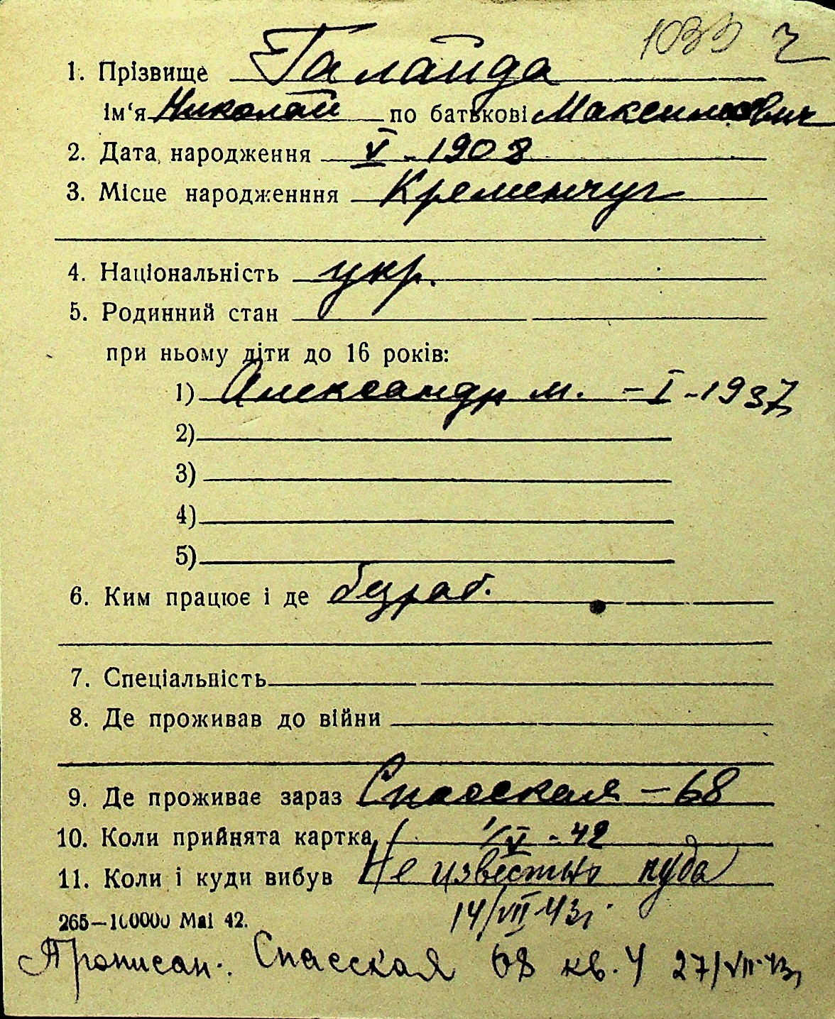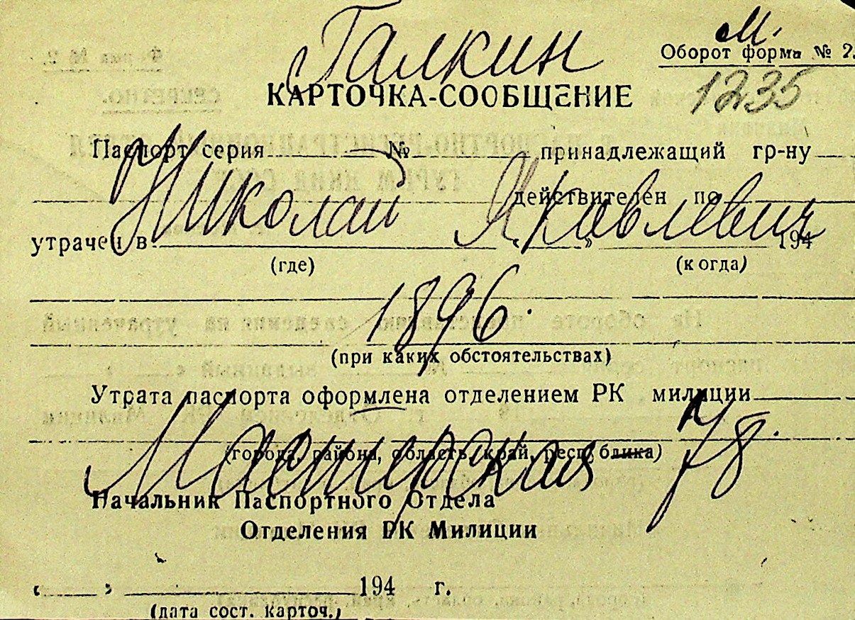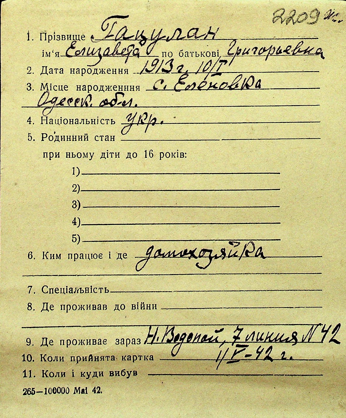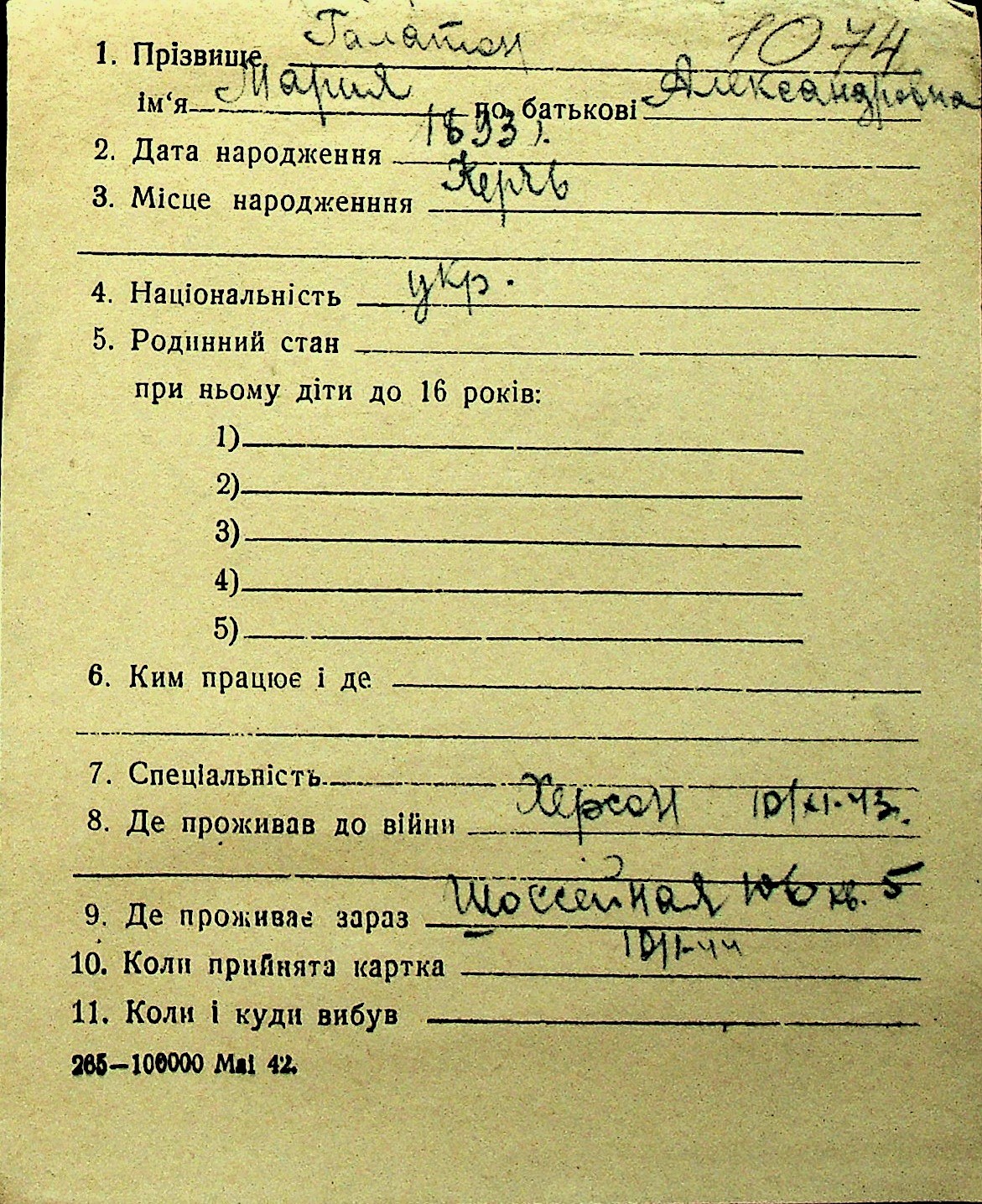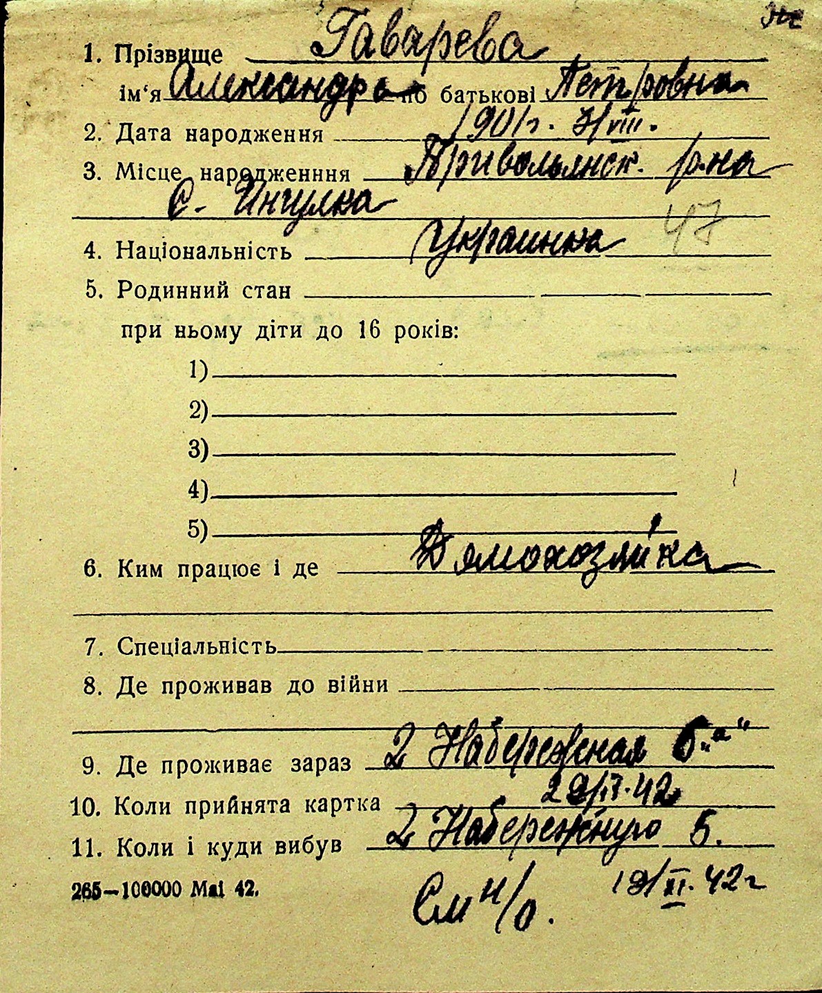 • • Перелік карток до фонду № Н-1016