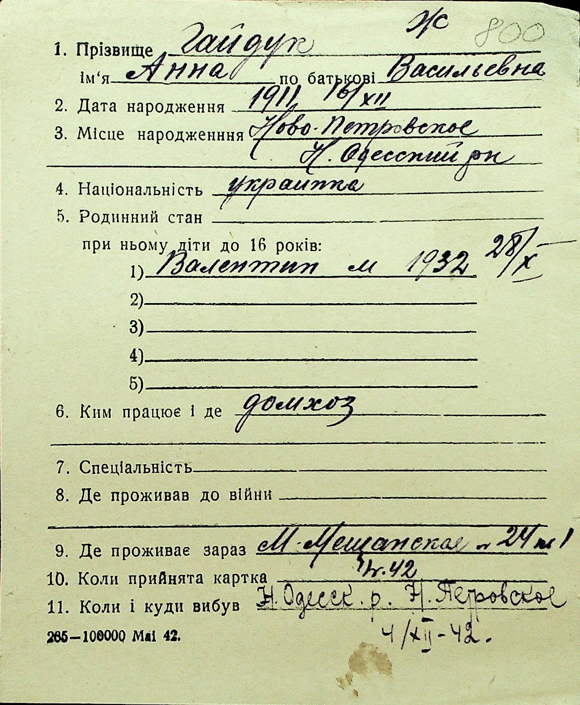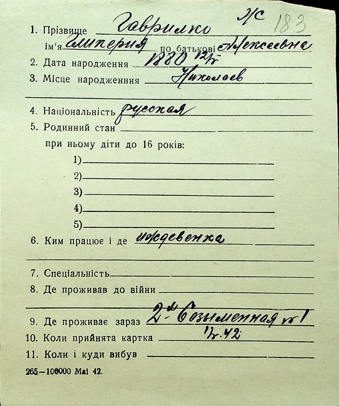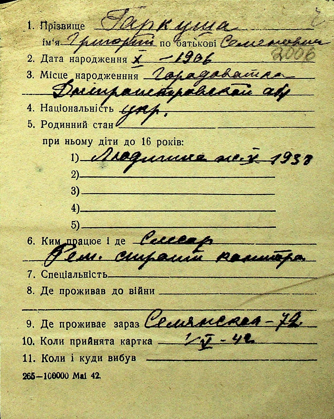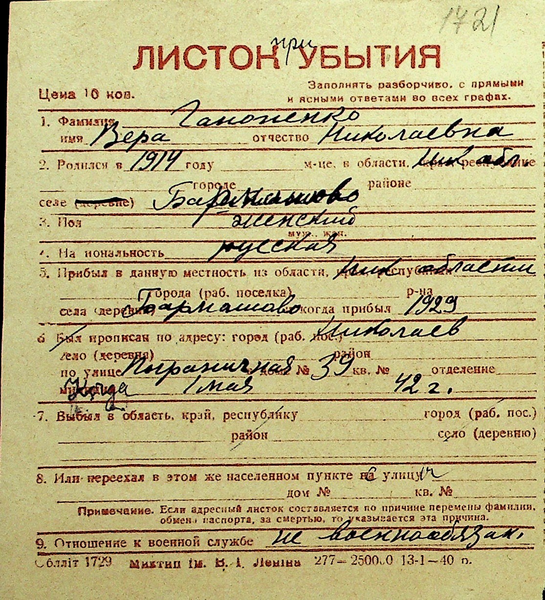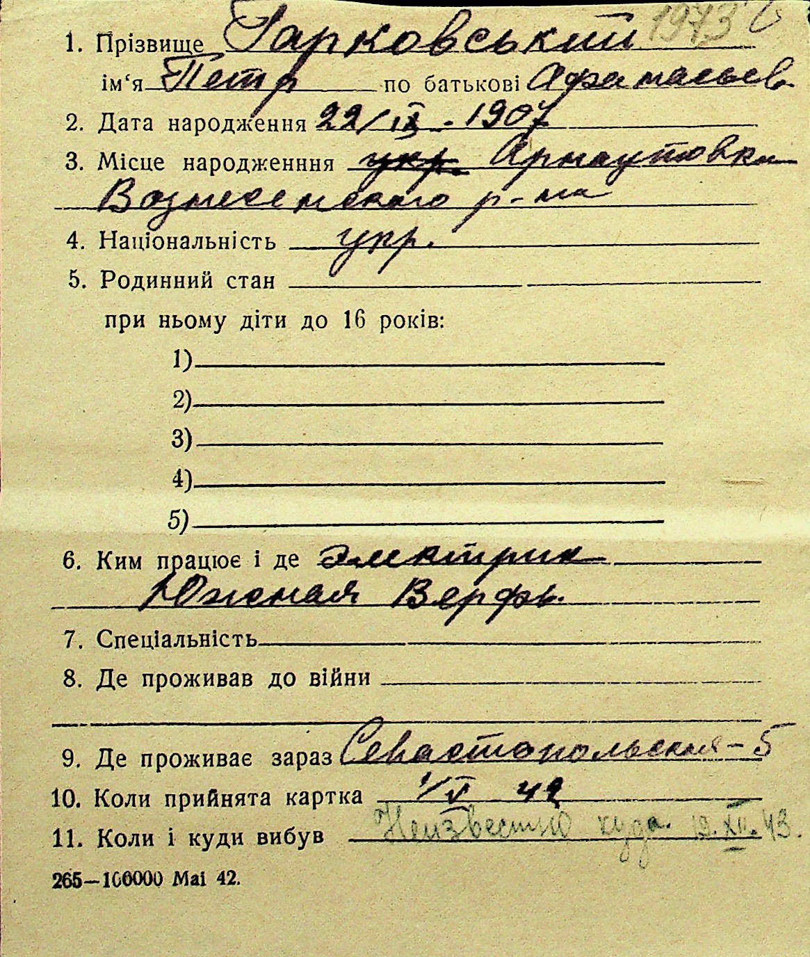 • • Перелік карток до фонду № Н-1016