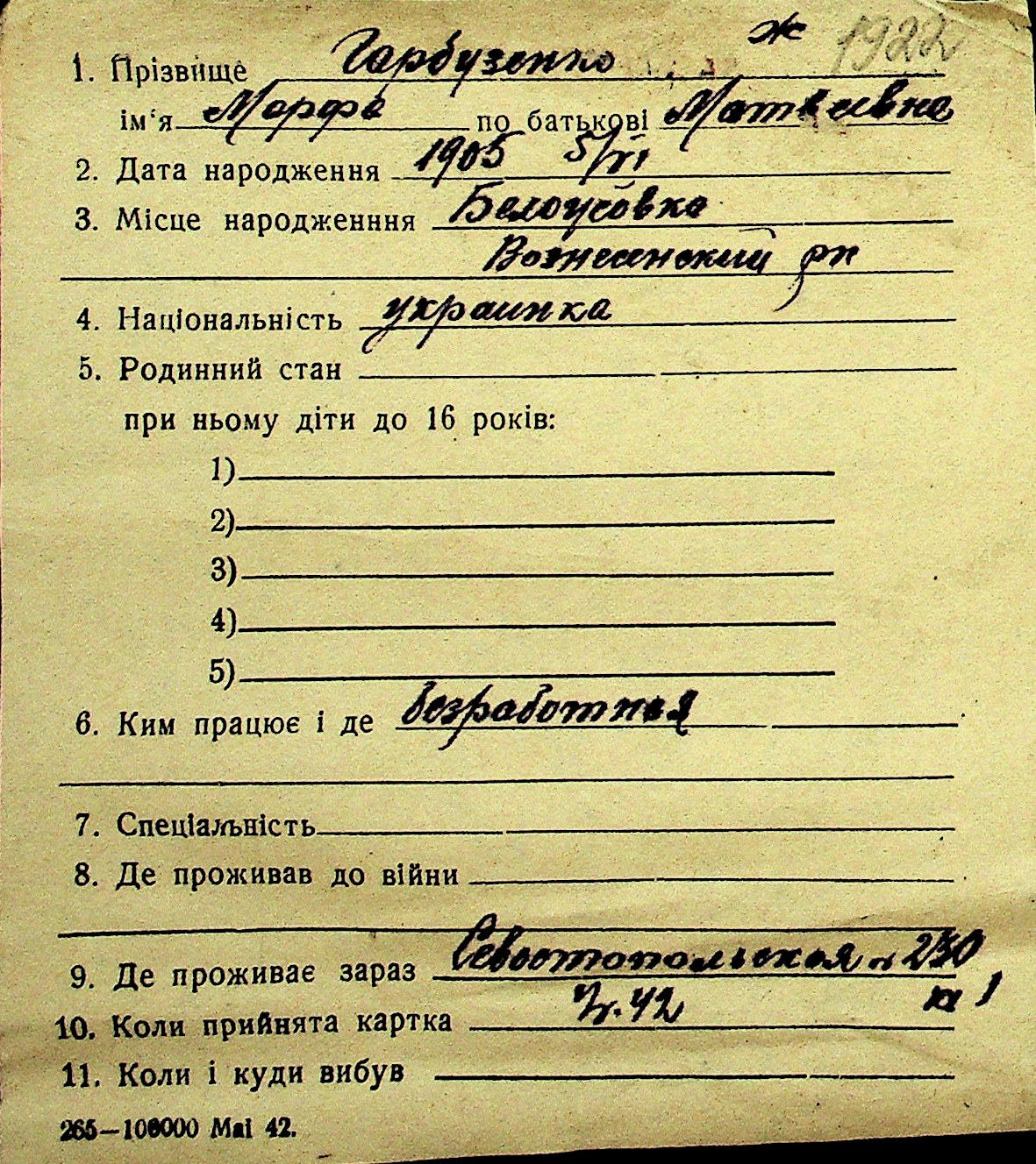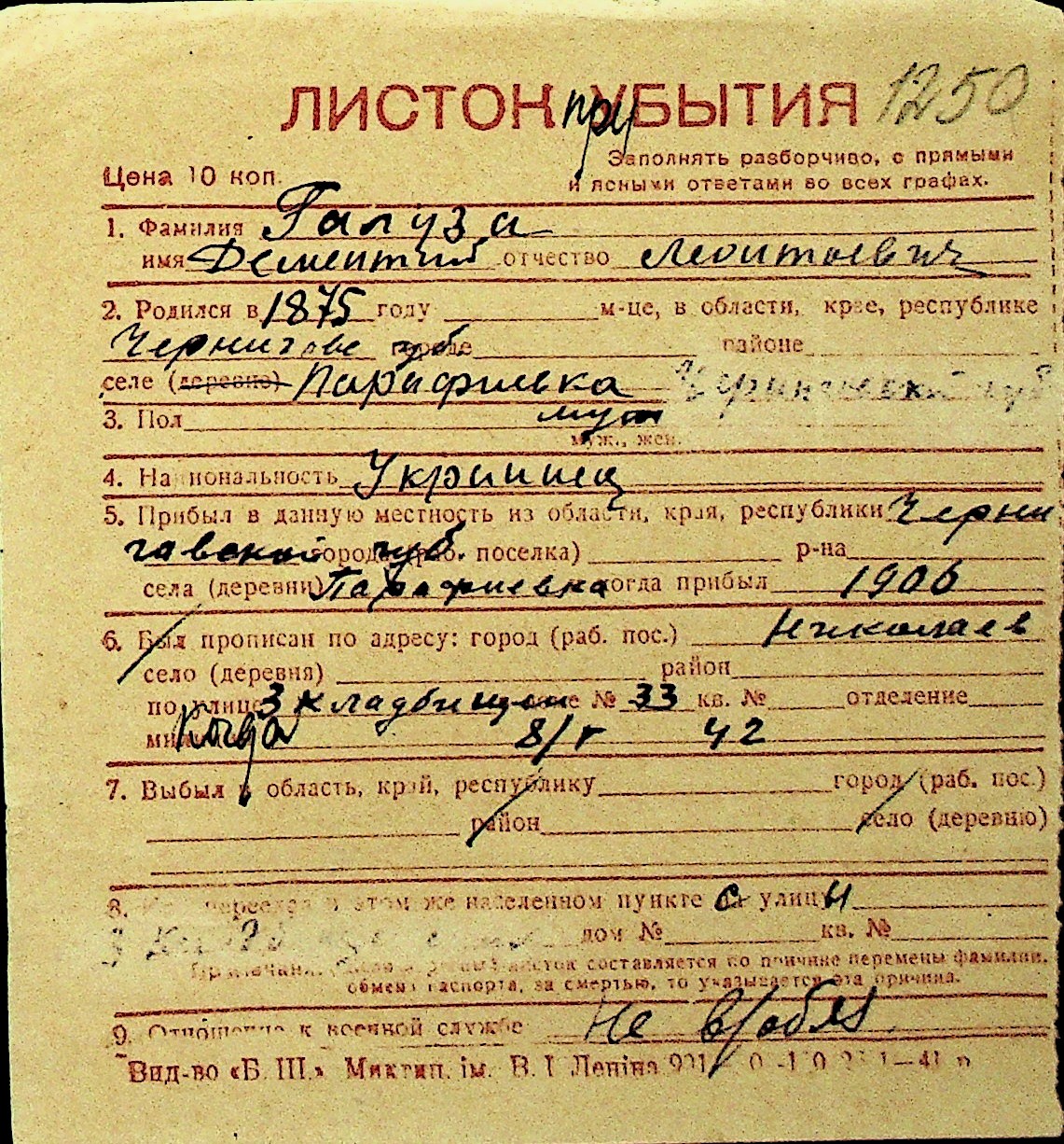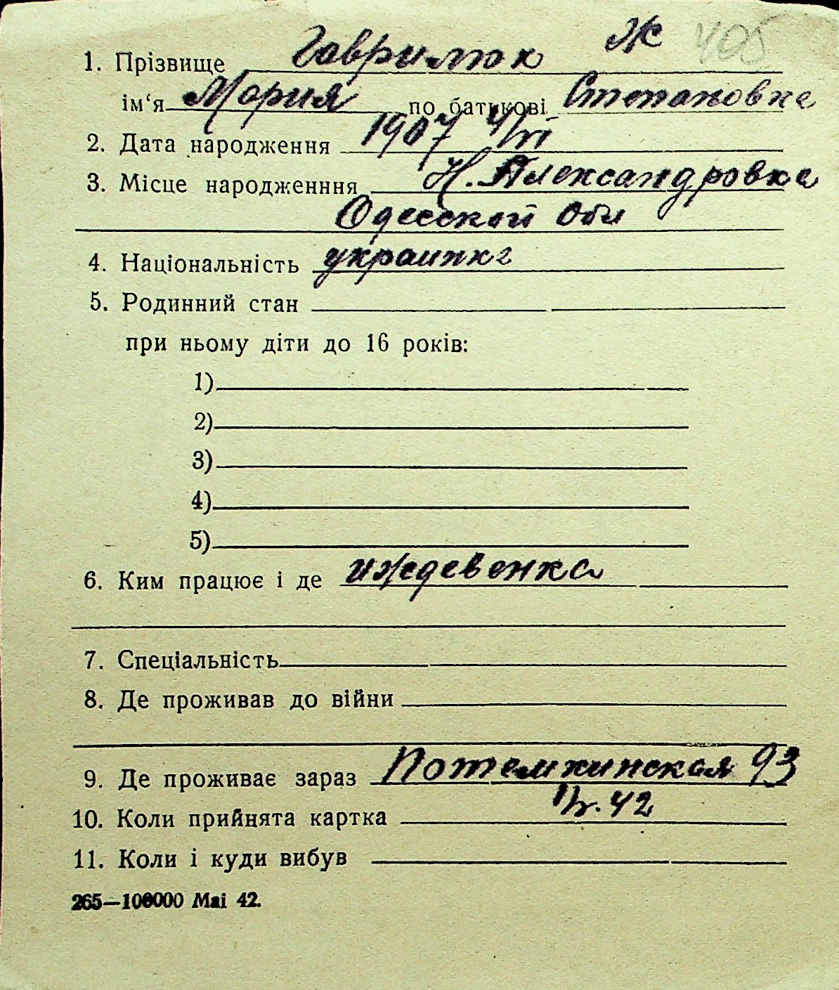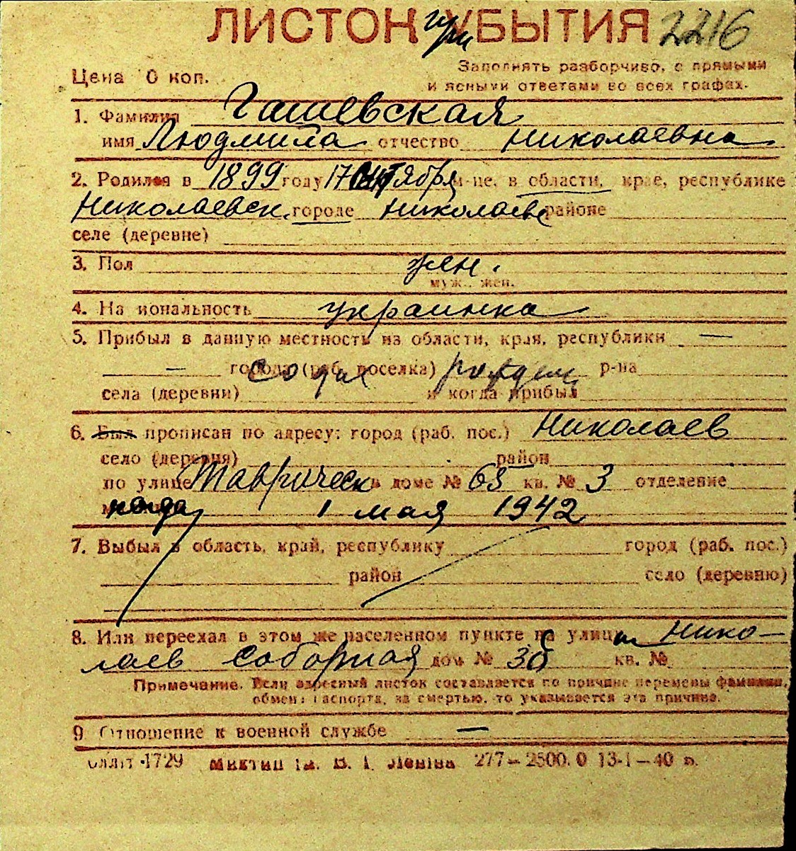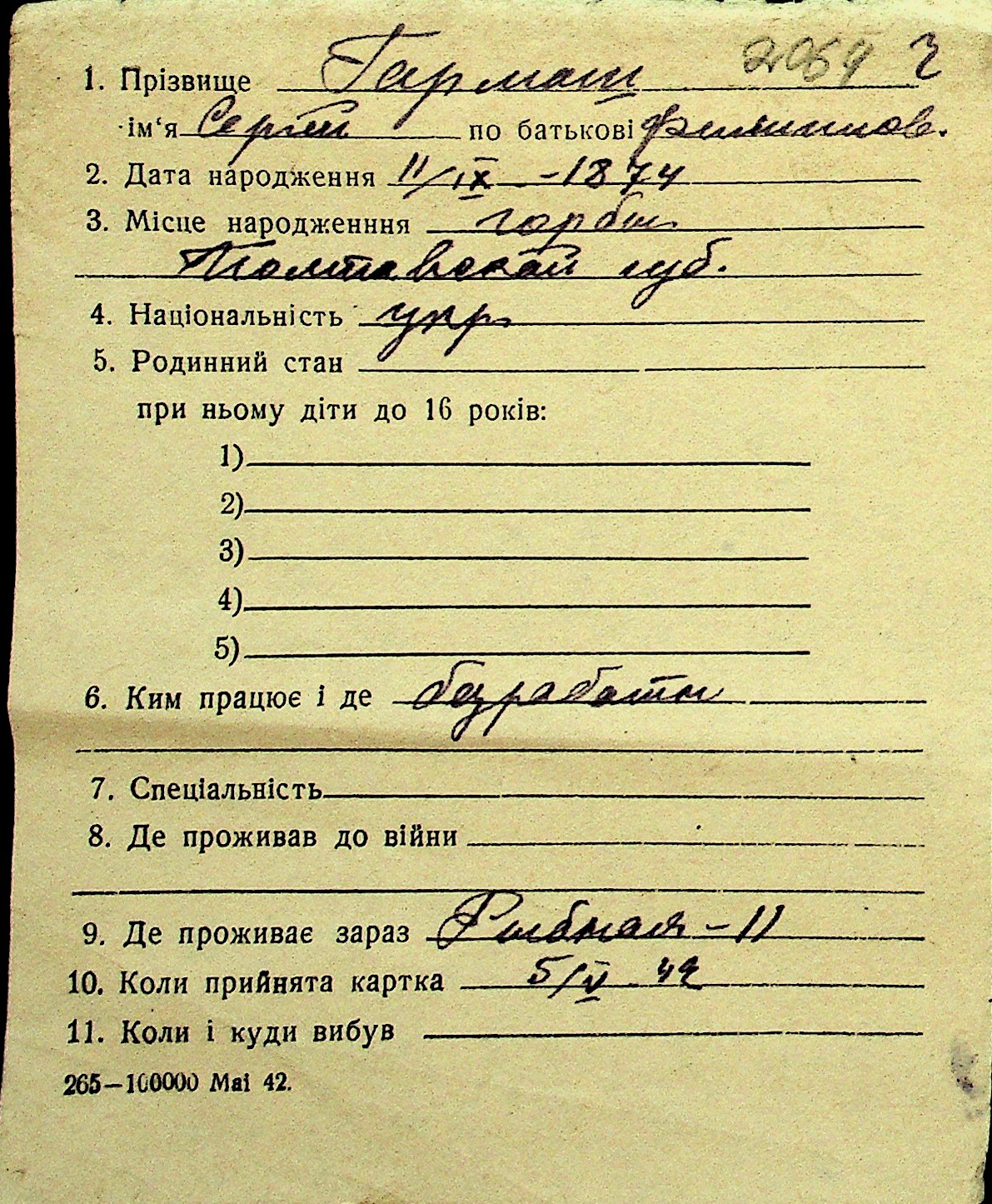 • • Перелік карток до фонду № Н-1016
