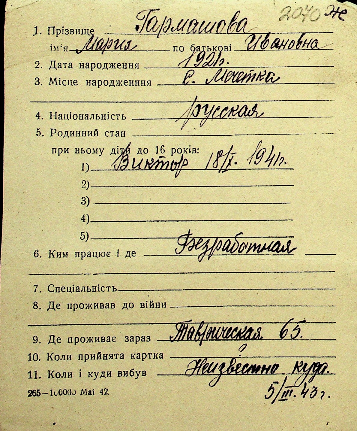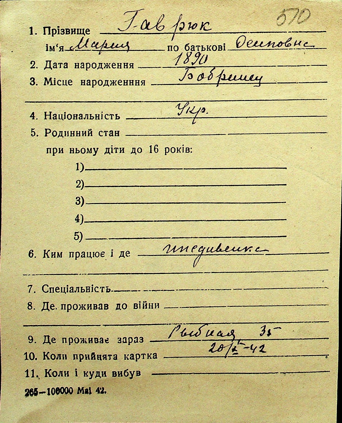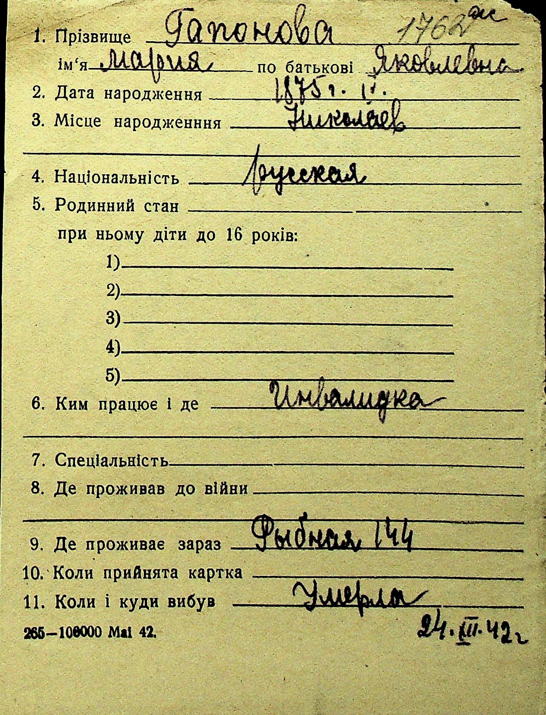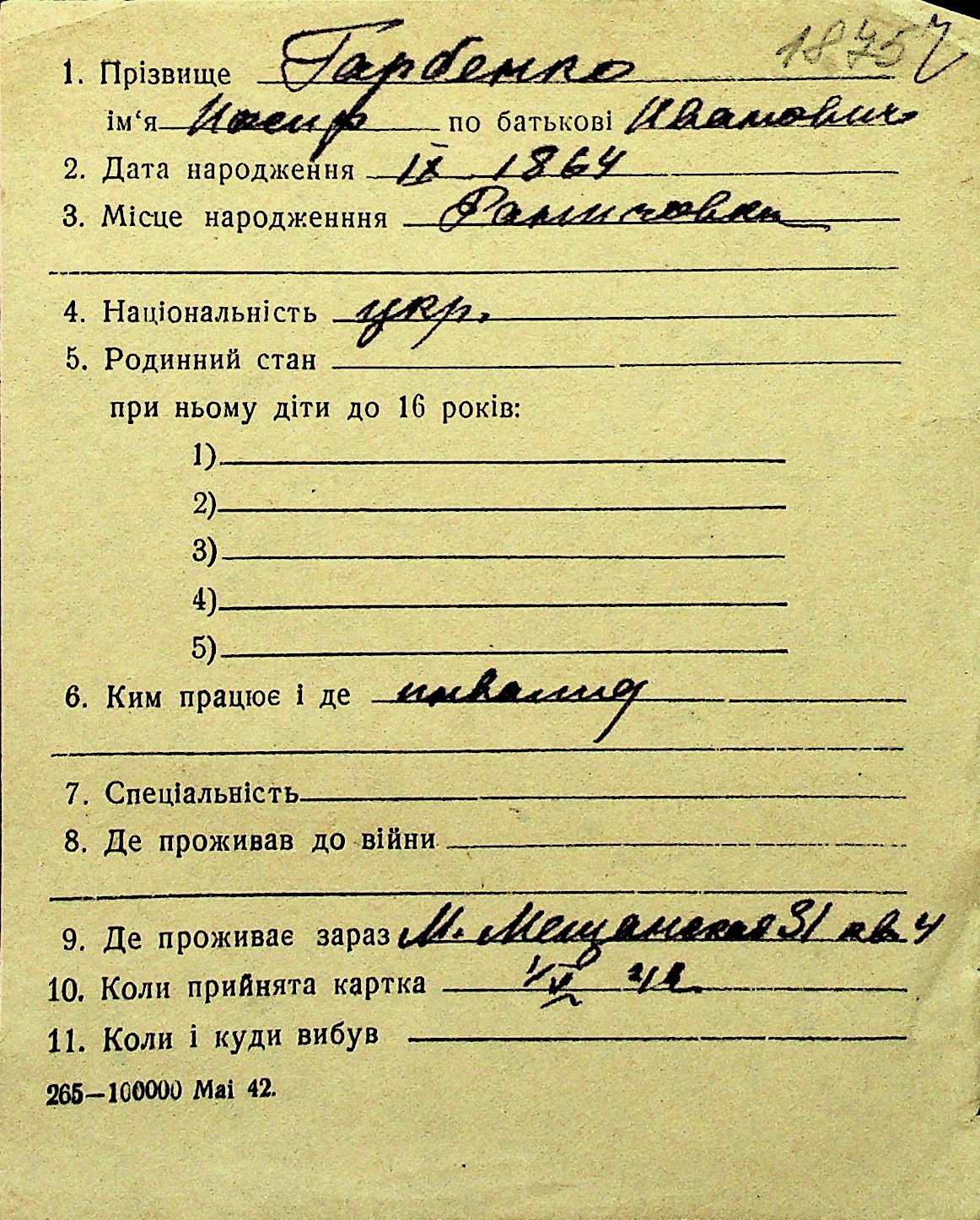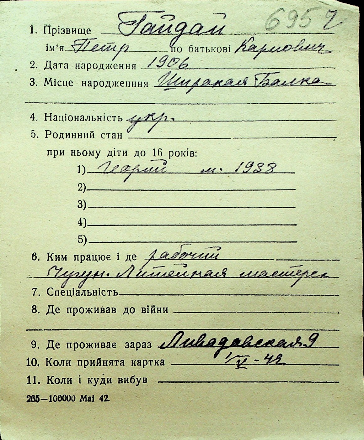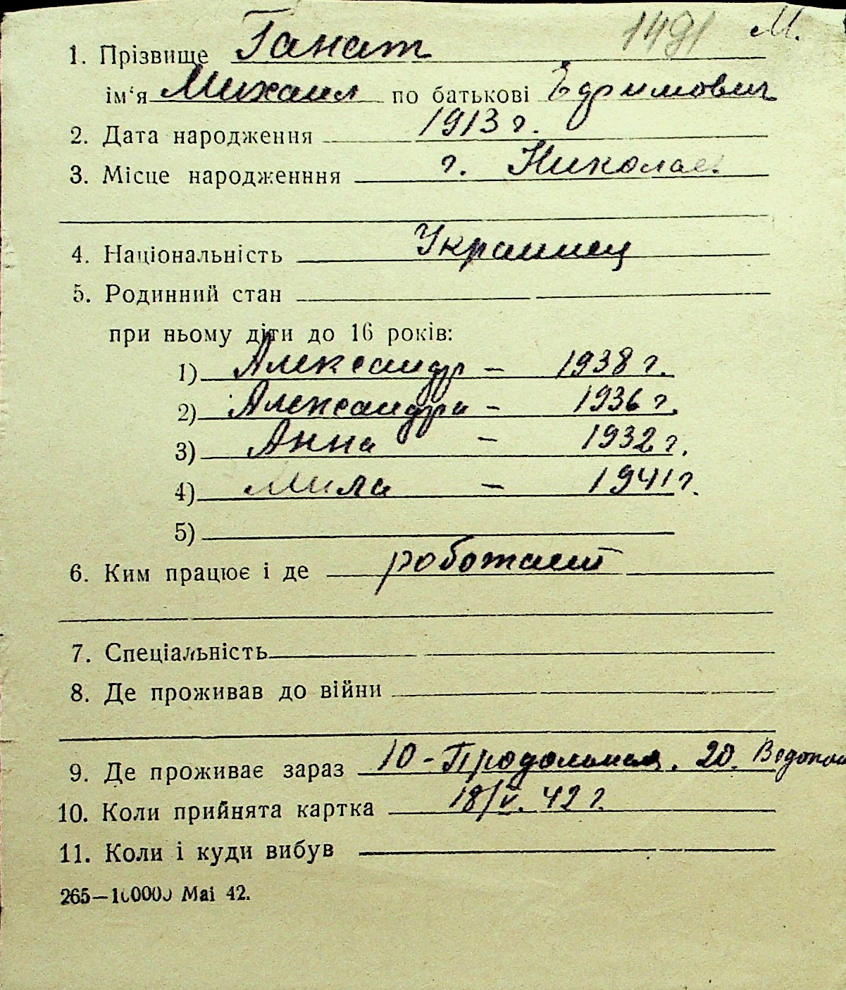 • • Перелік карток до фонду № Н-1016