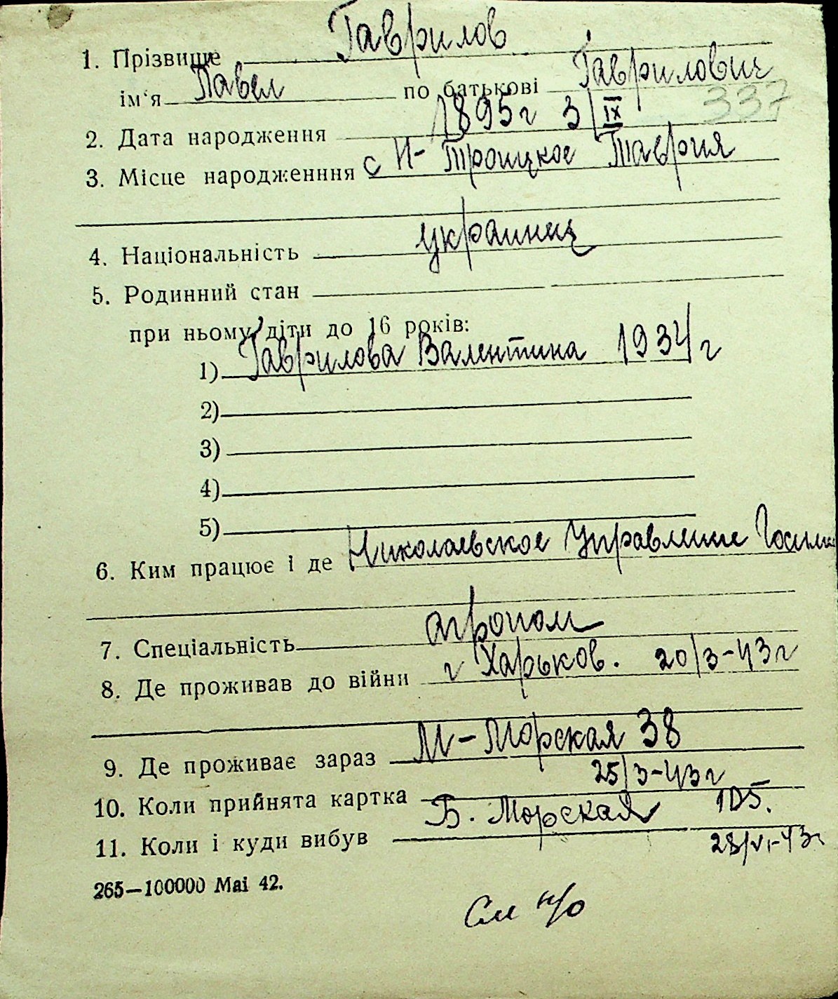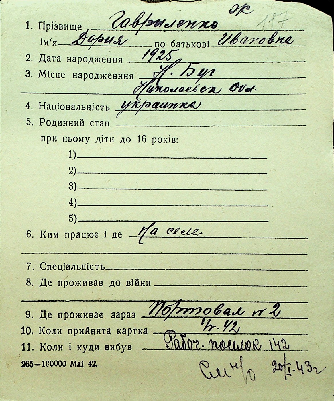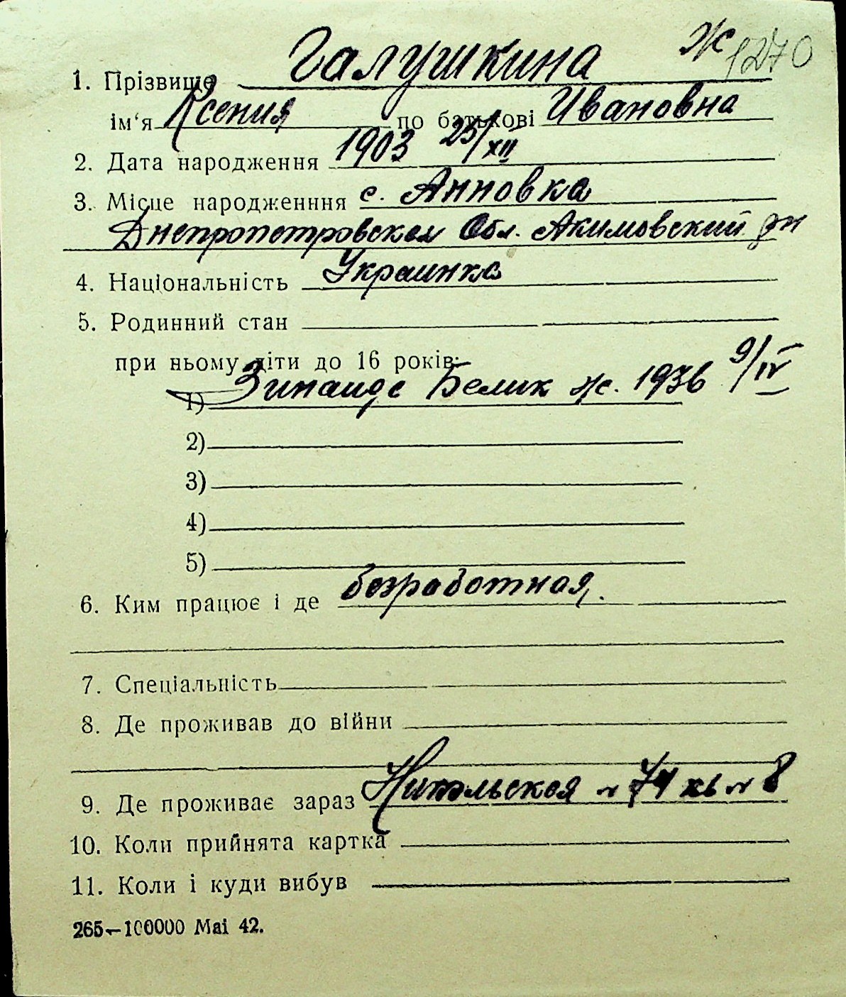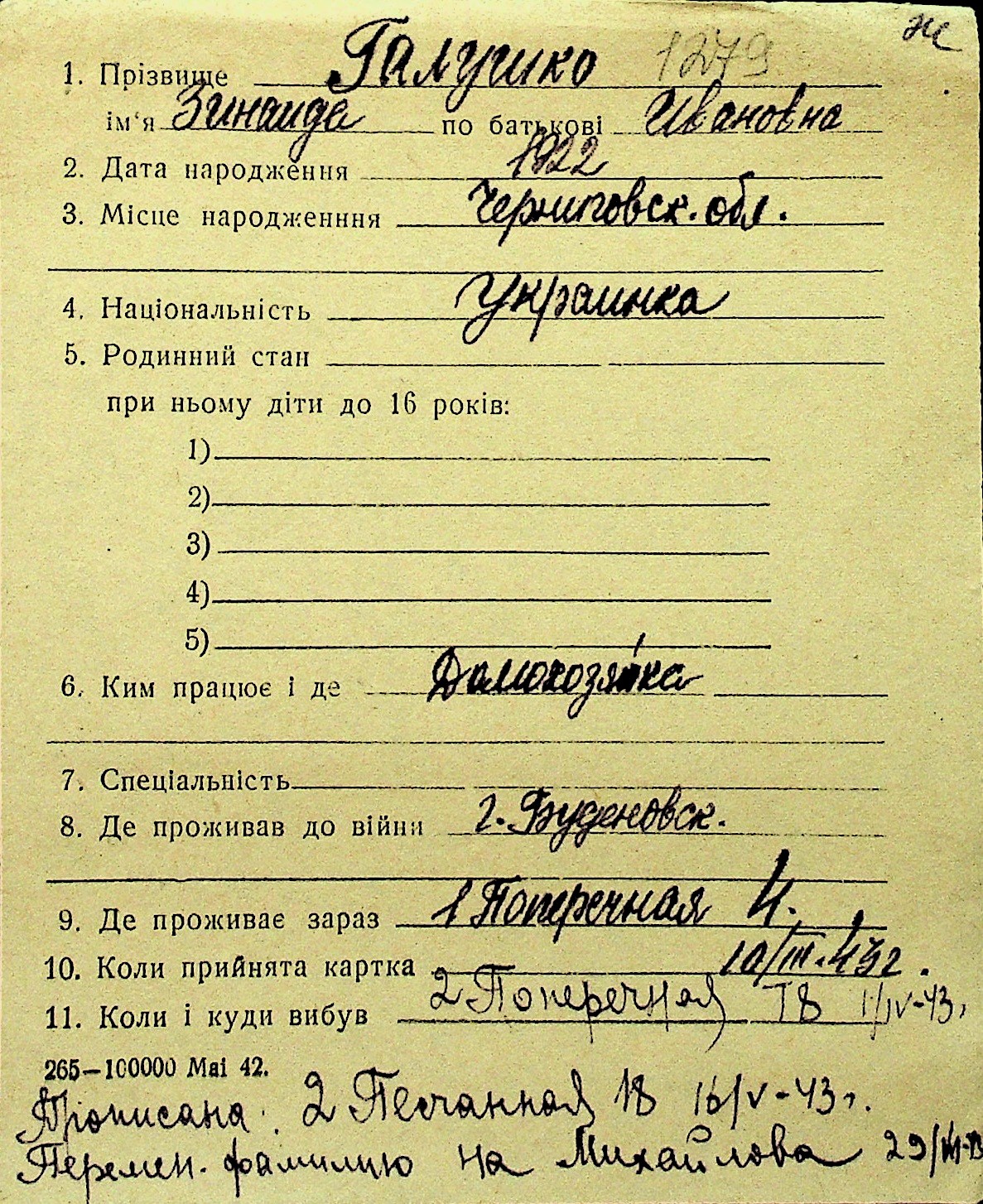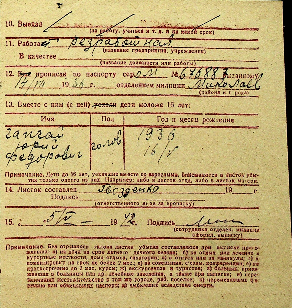 • • Перелік карток до фонду № Н-1016