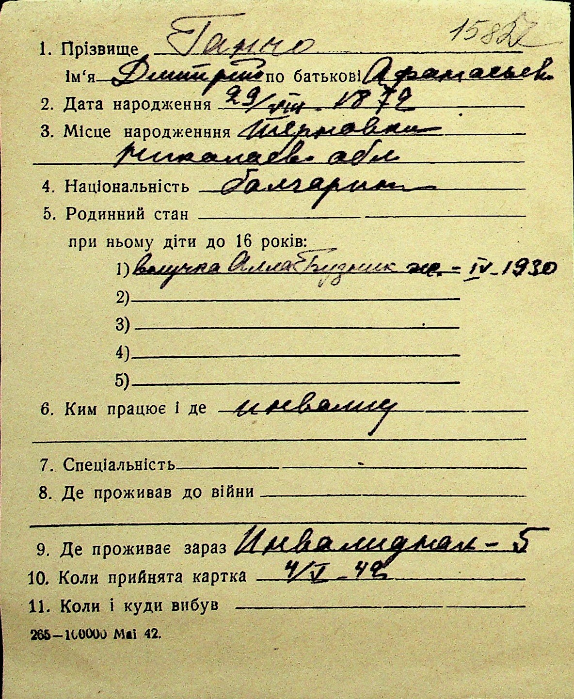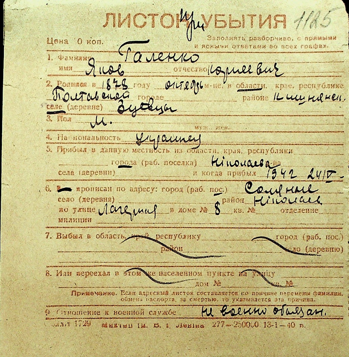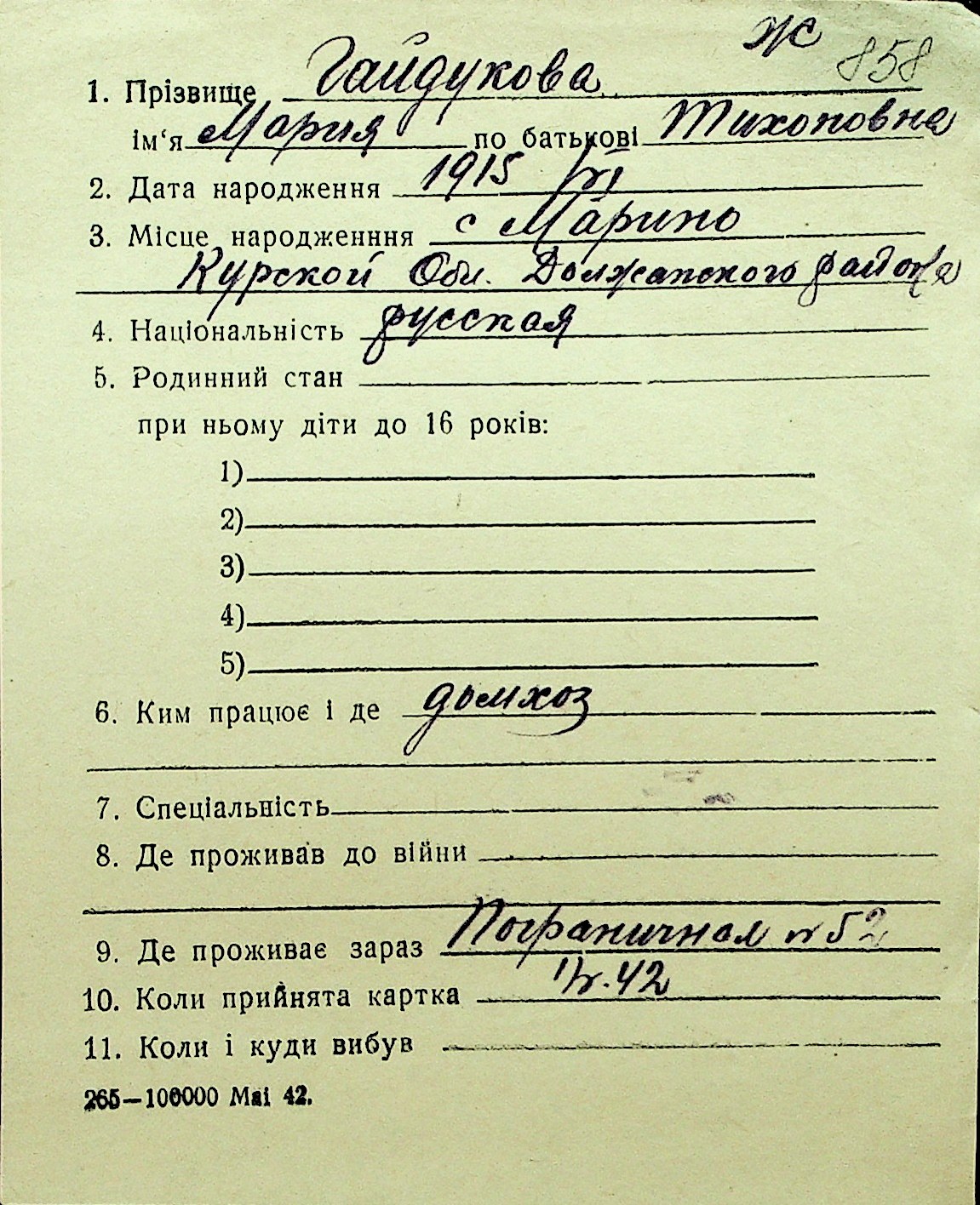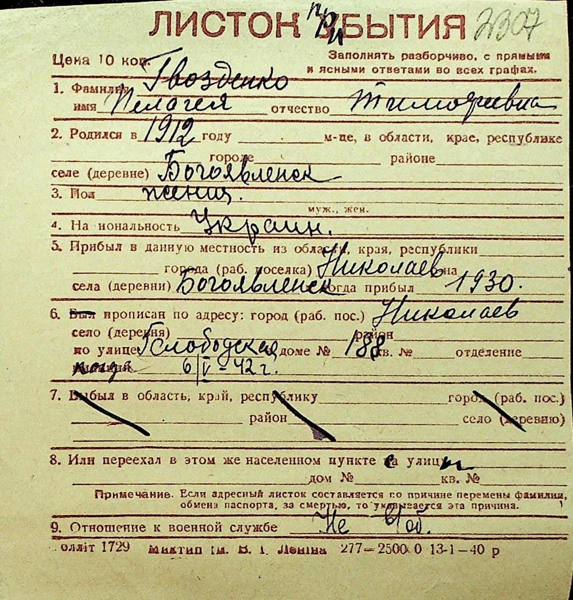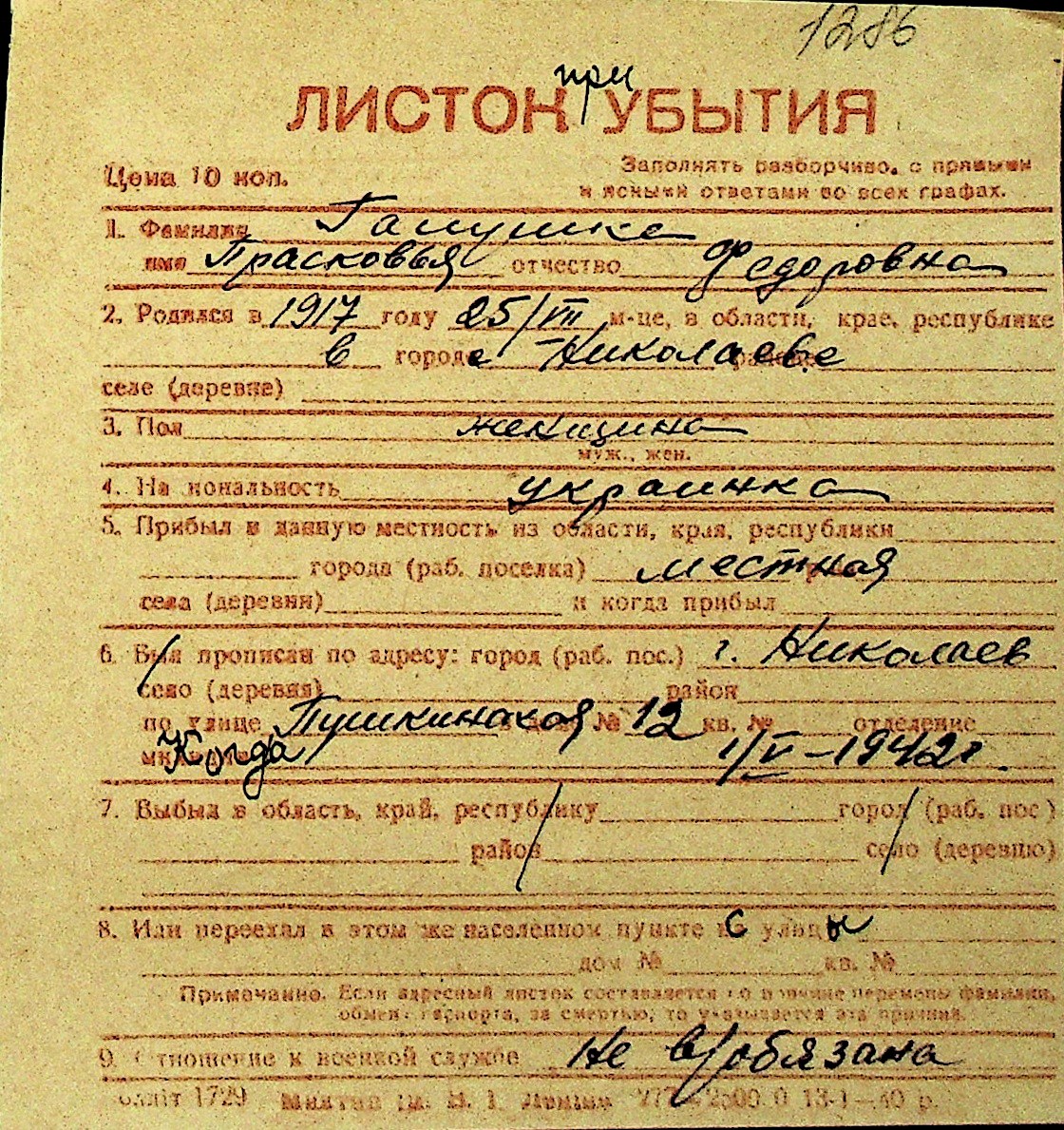 • • Перелік карток до фонду № Н-1016
