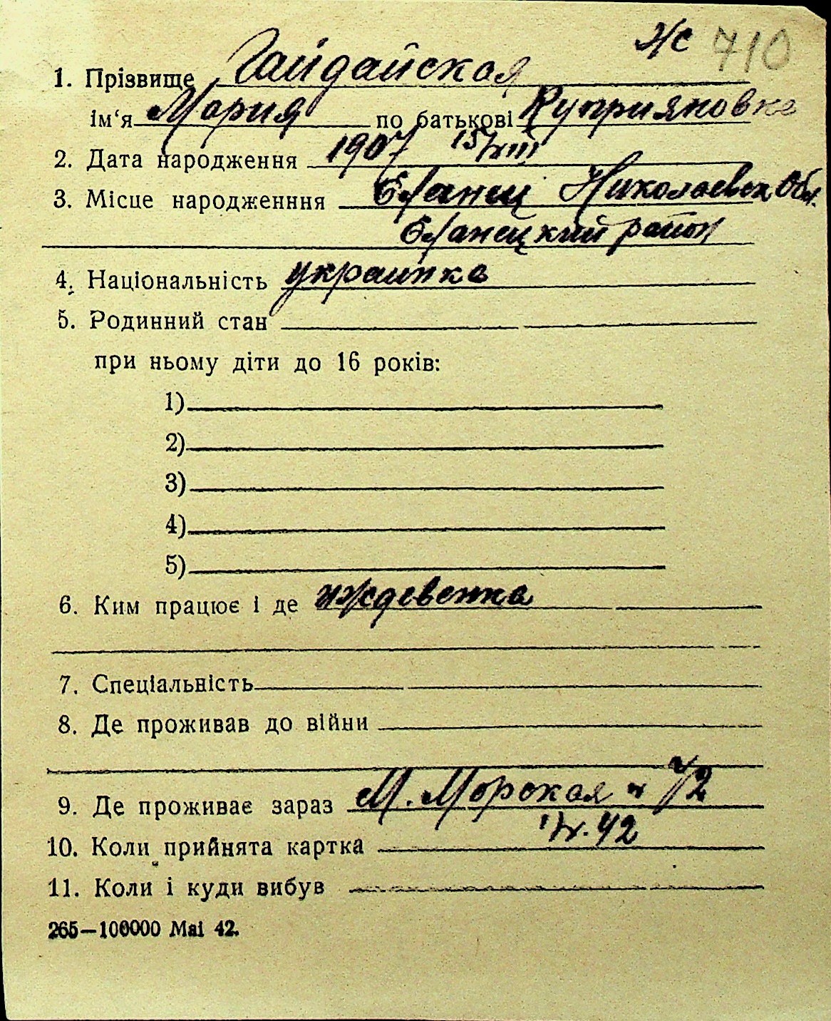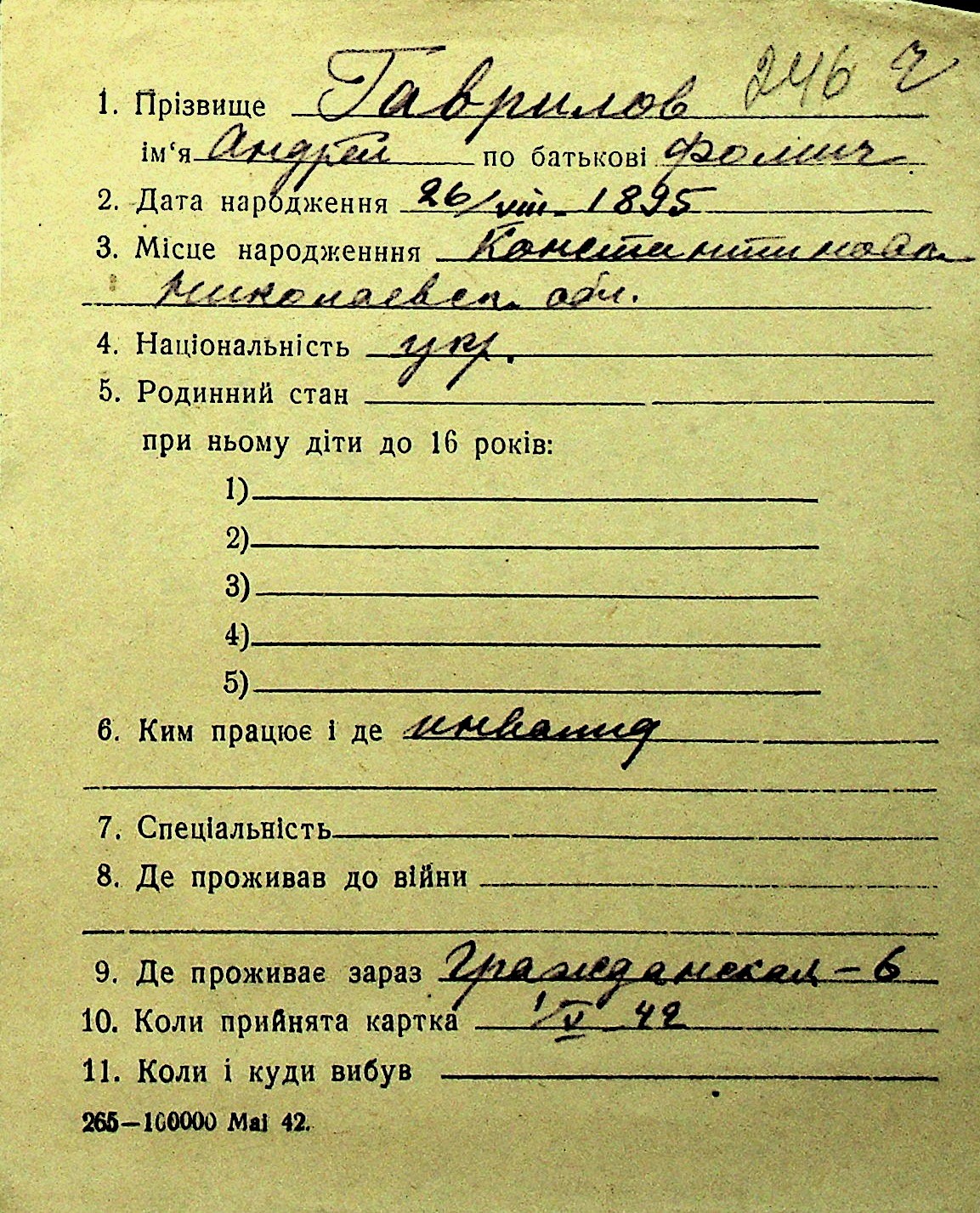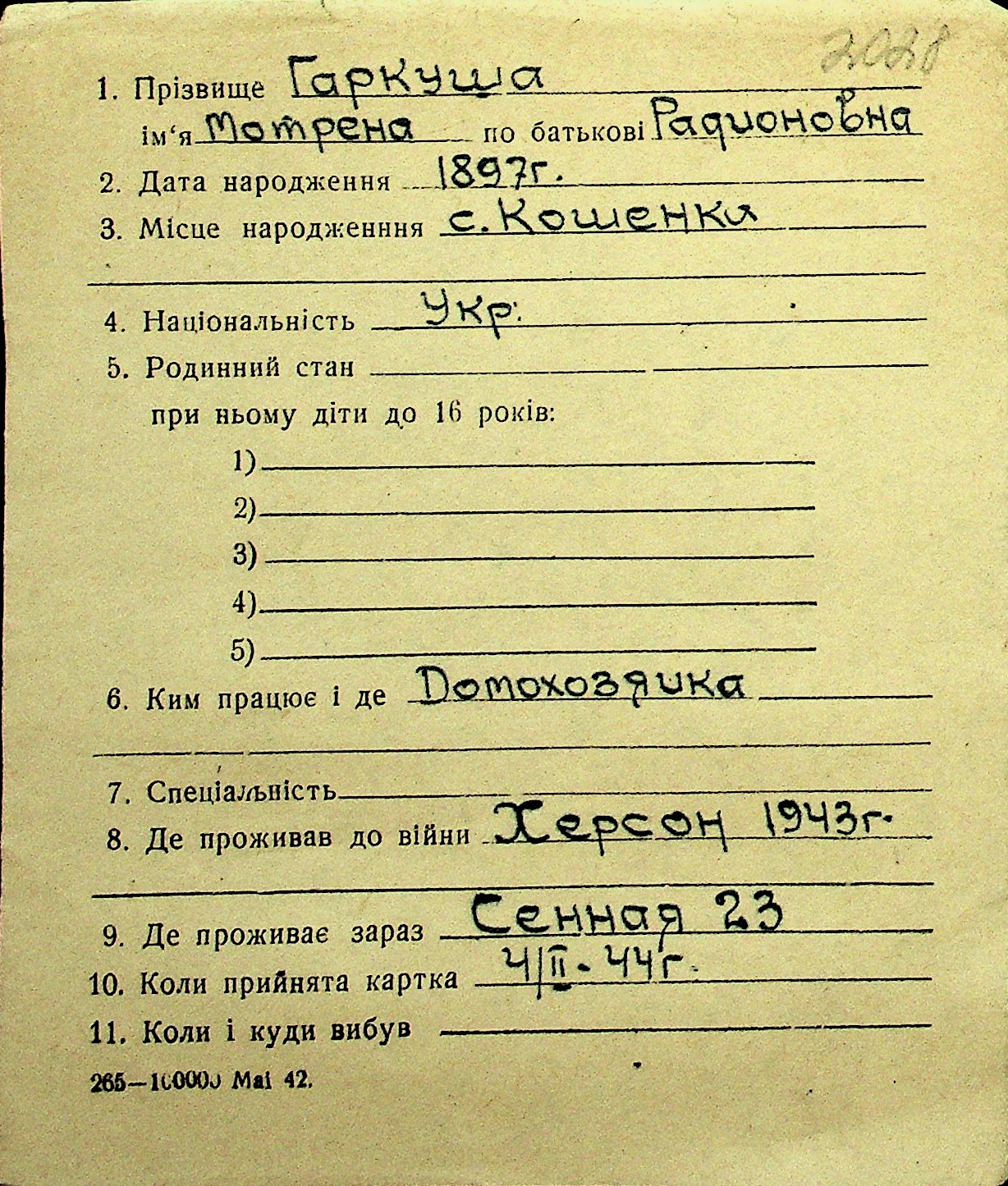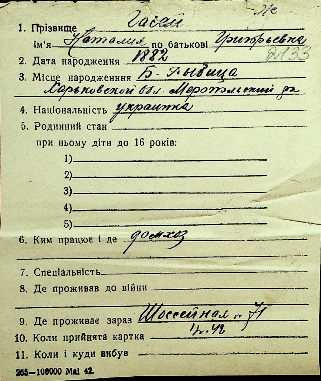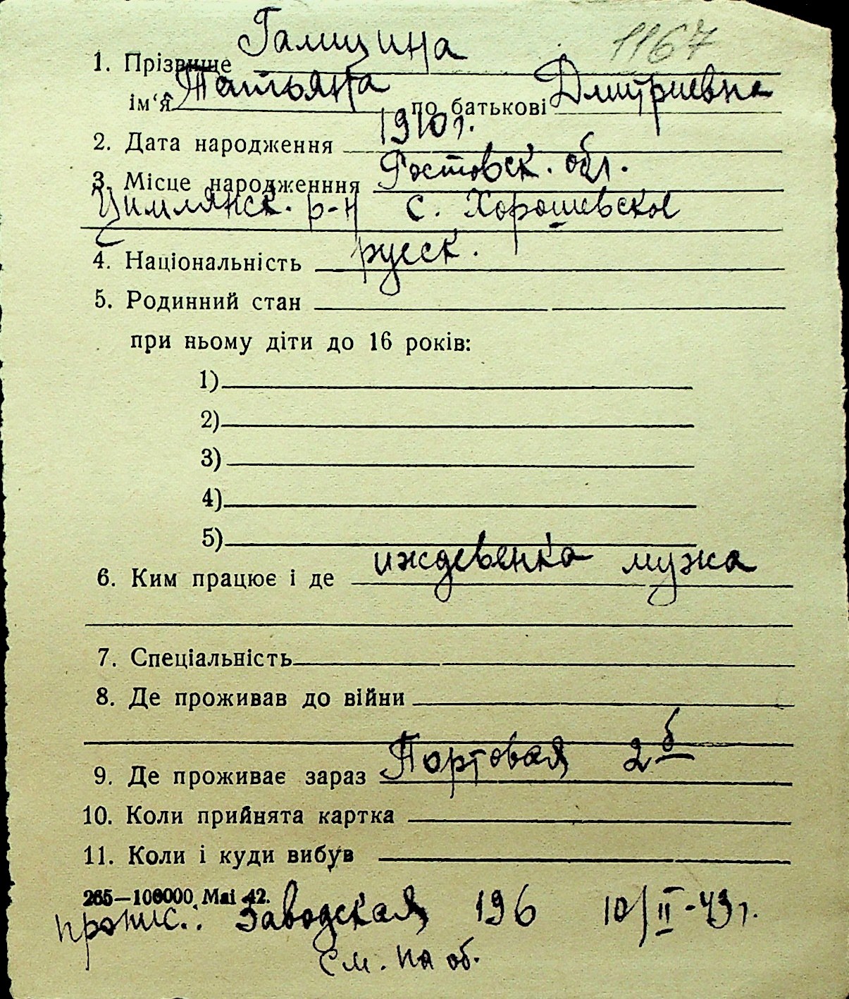 • • Перелік карток до фонду № Н-1016