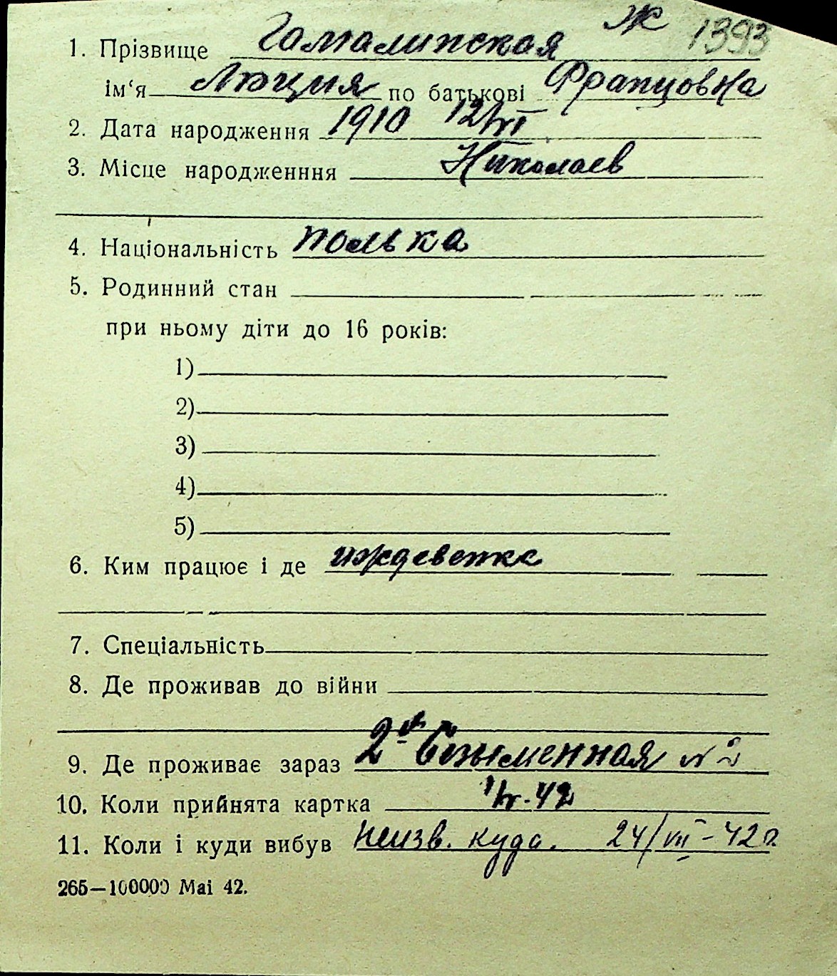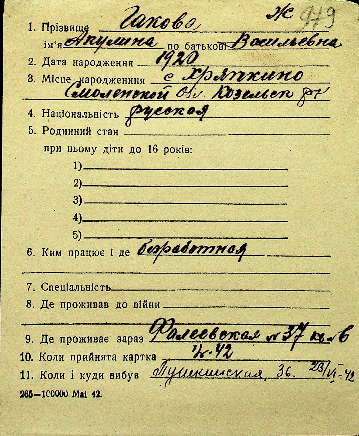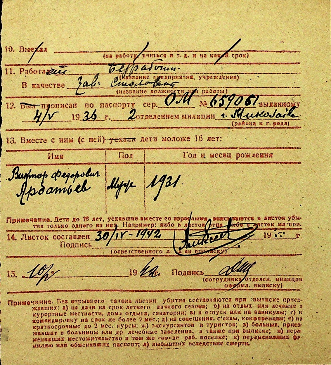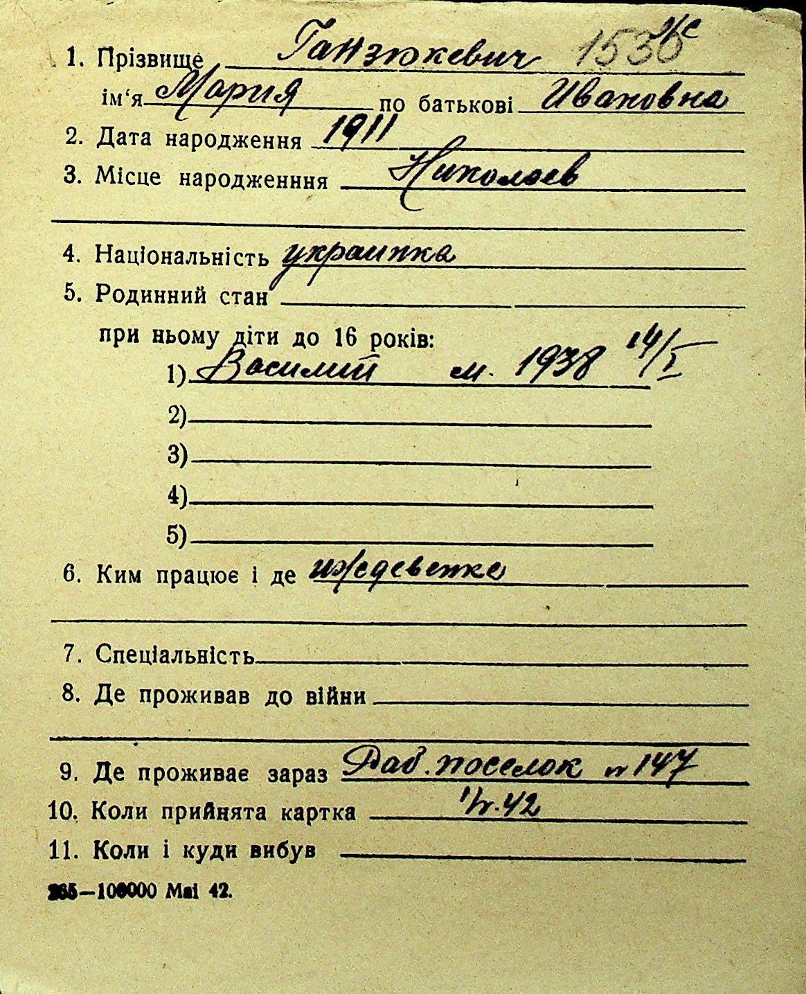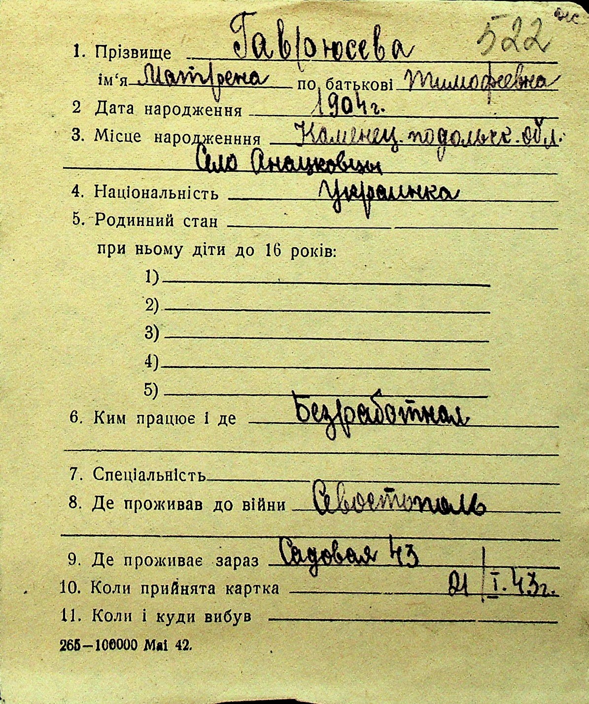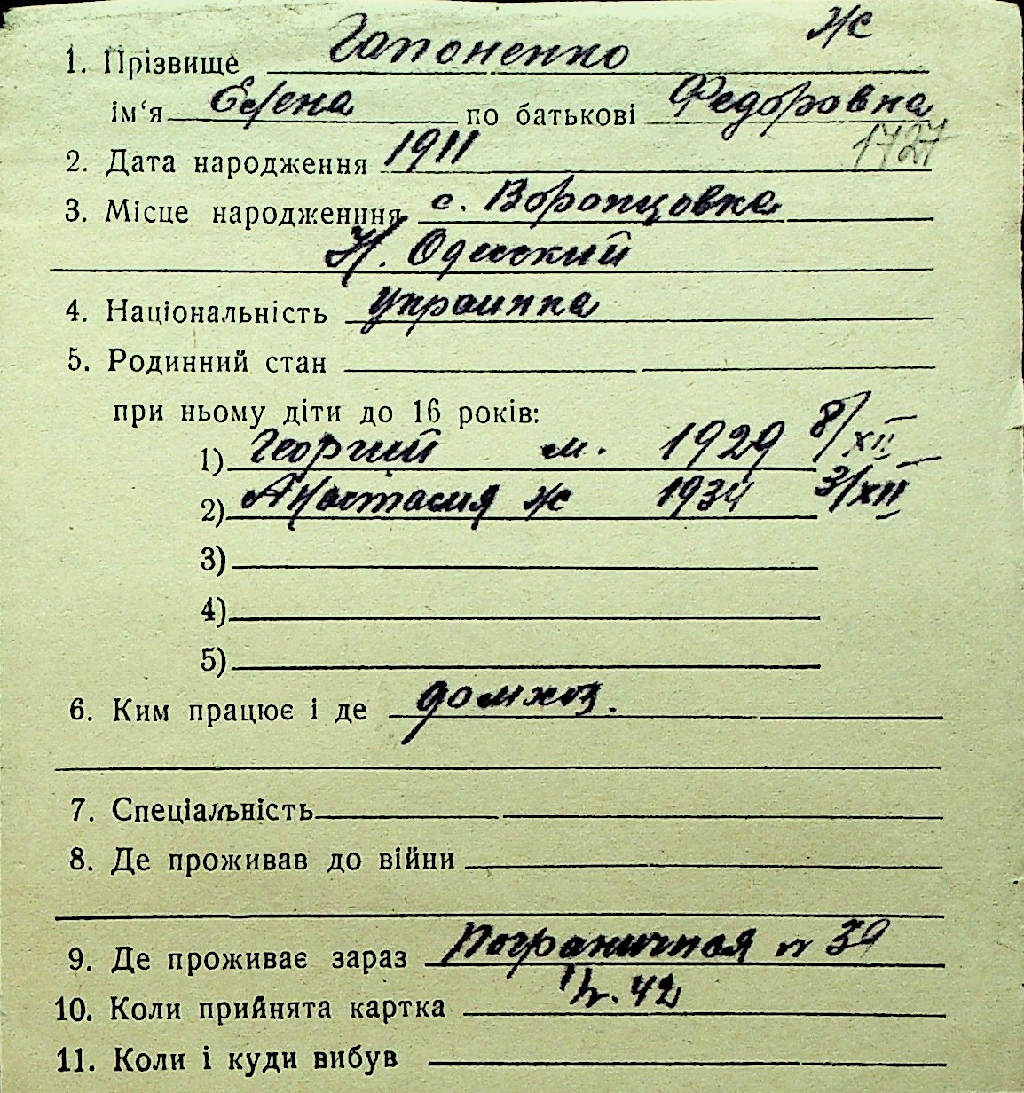 • • Перелік карток до фонду № Н-1016