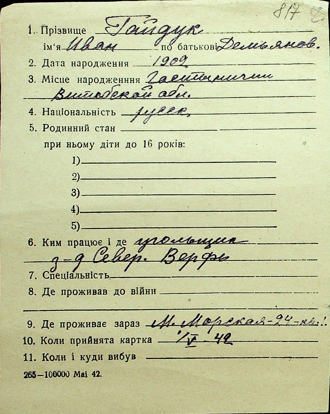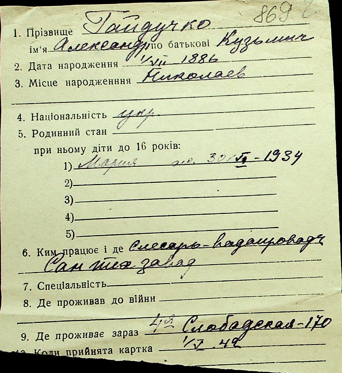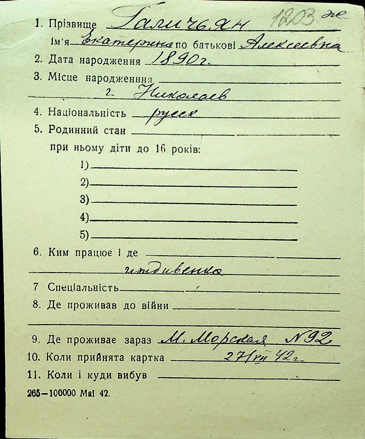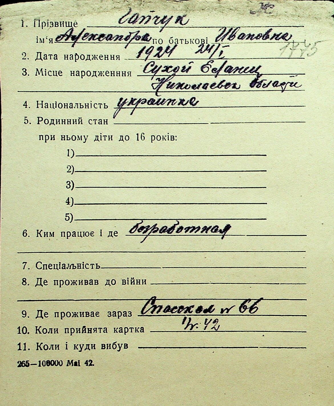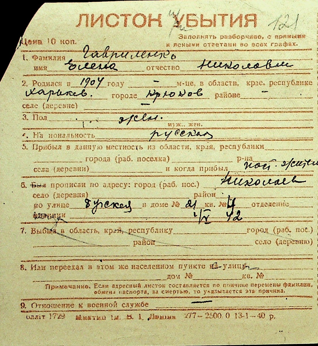 • • Перелік карток до фонду № Н-1016
