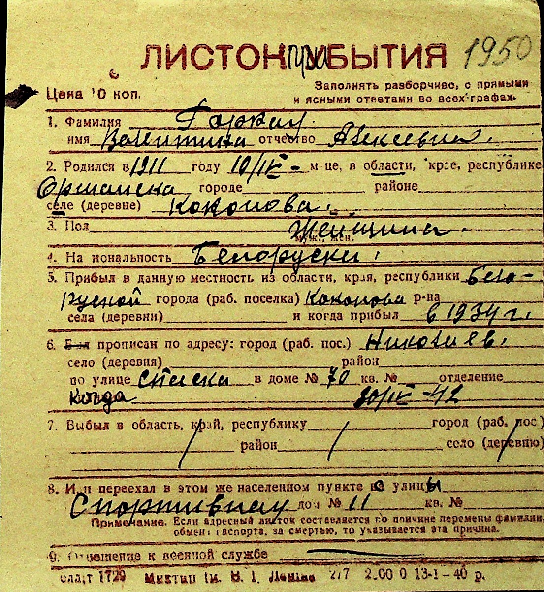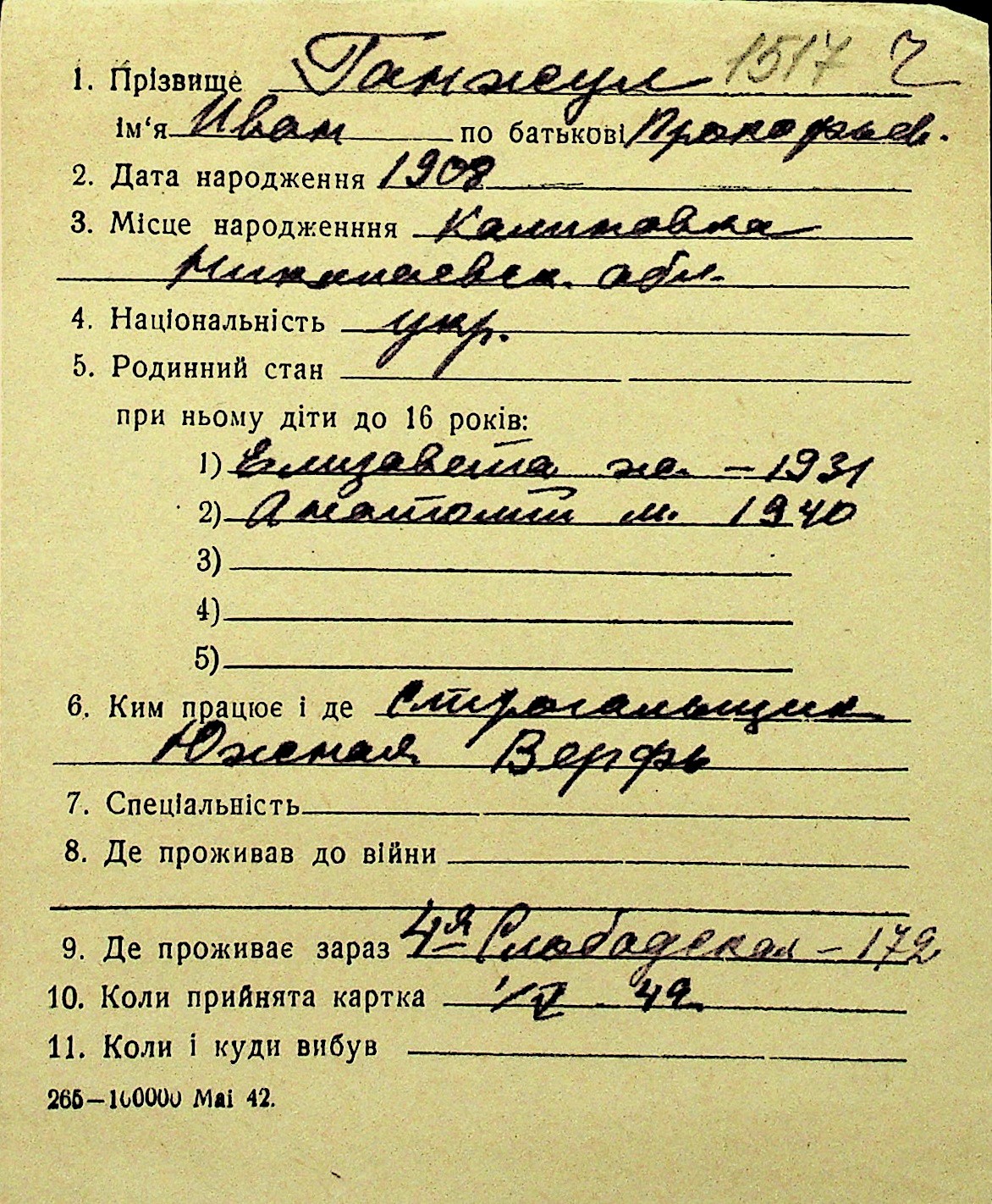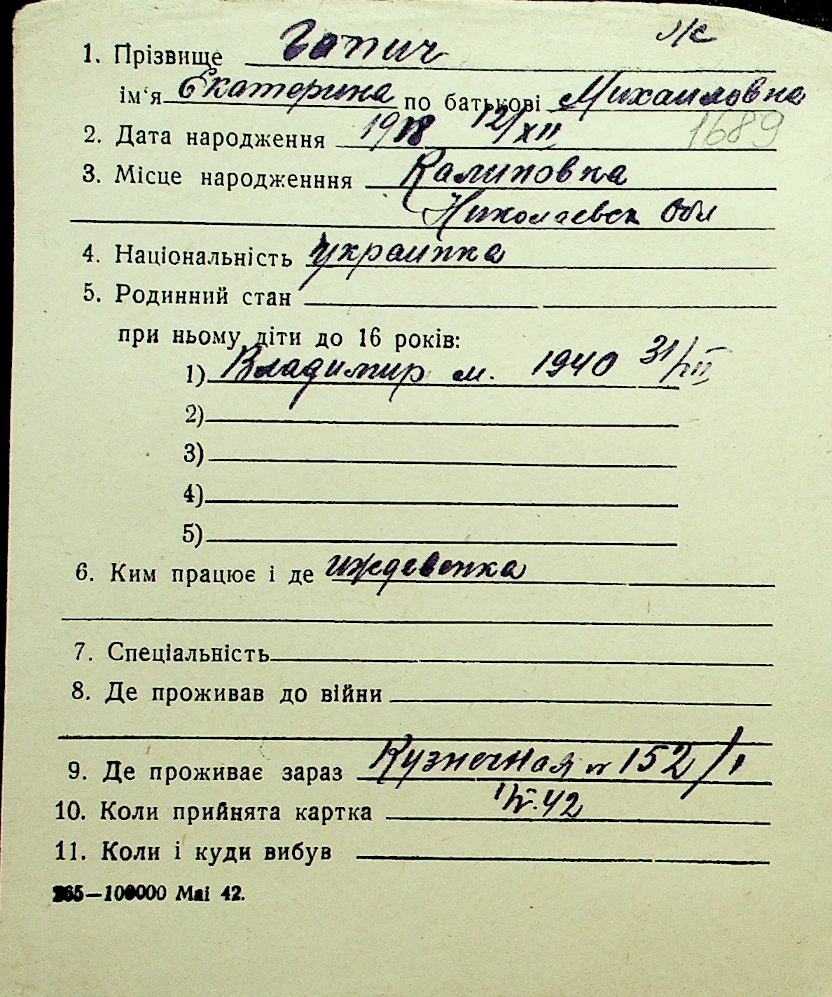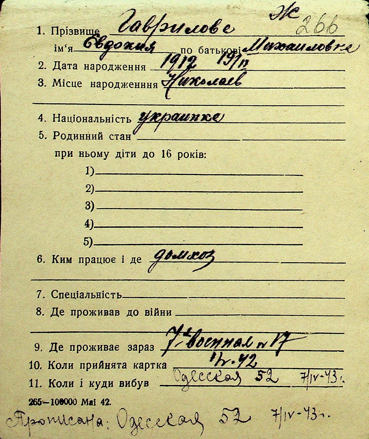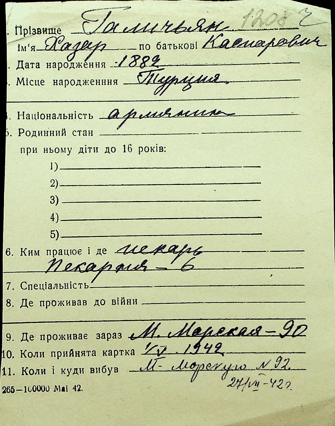 • • Перелік карток до фонду № Н-1016