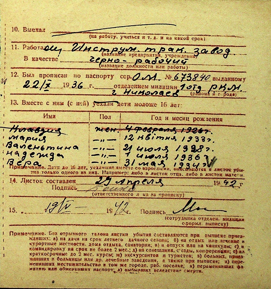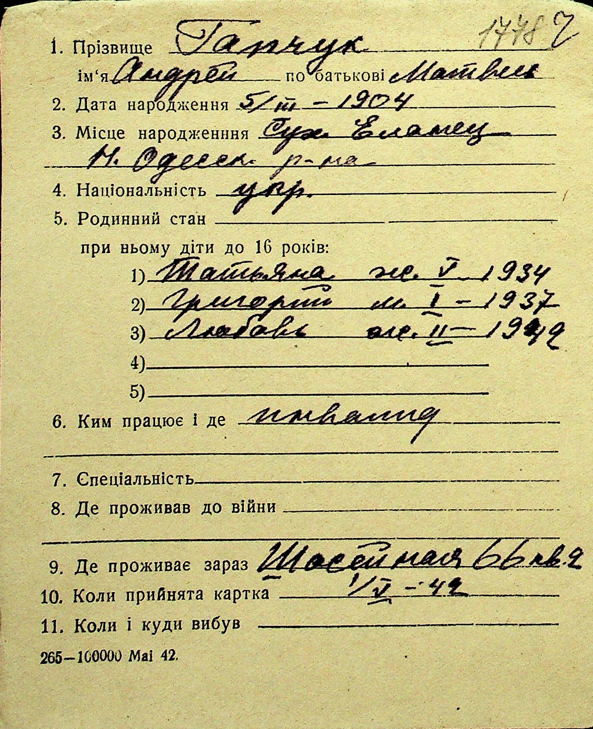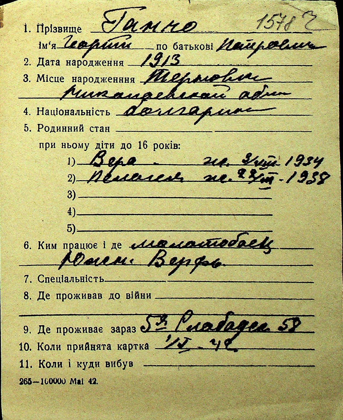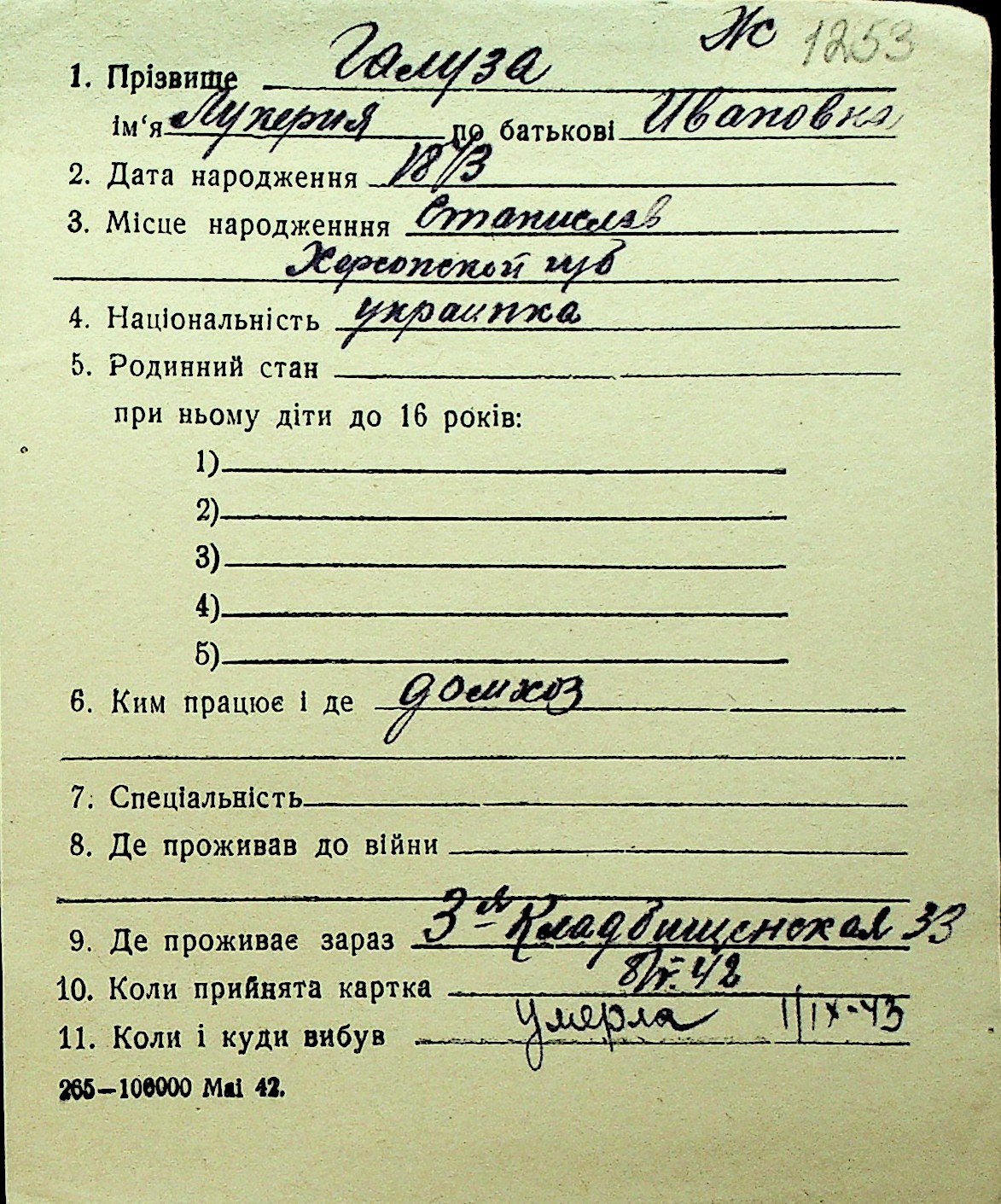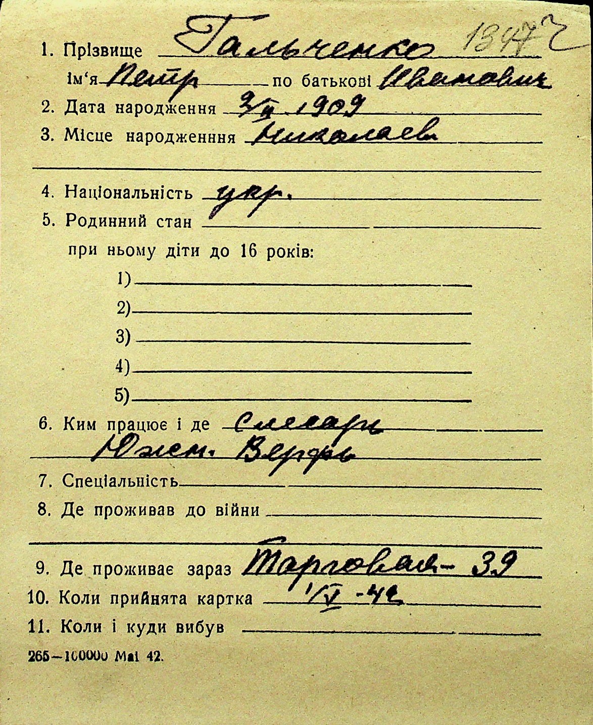 • • Перелік карток до фонду № Н-1016