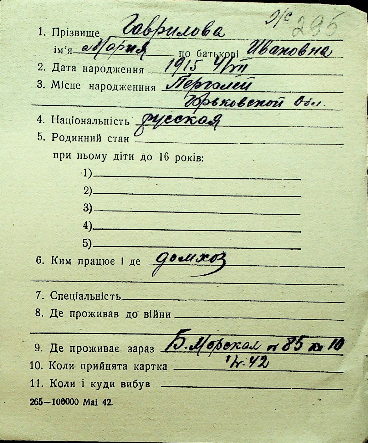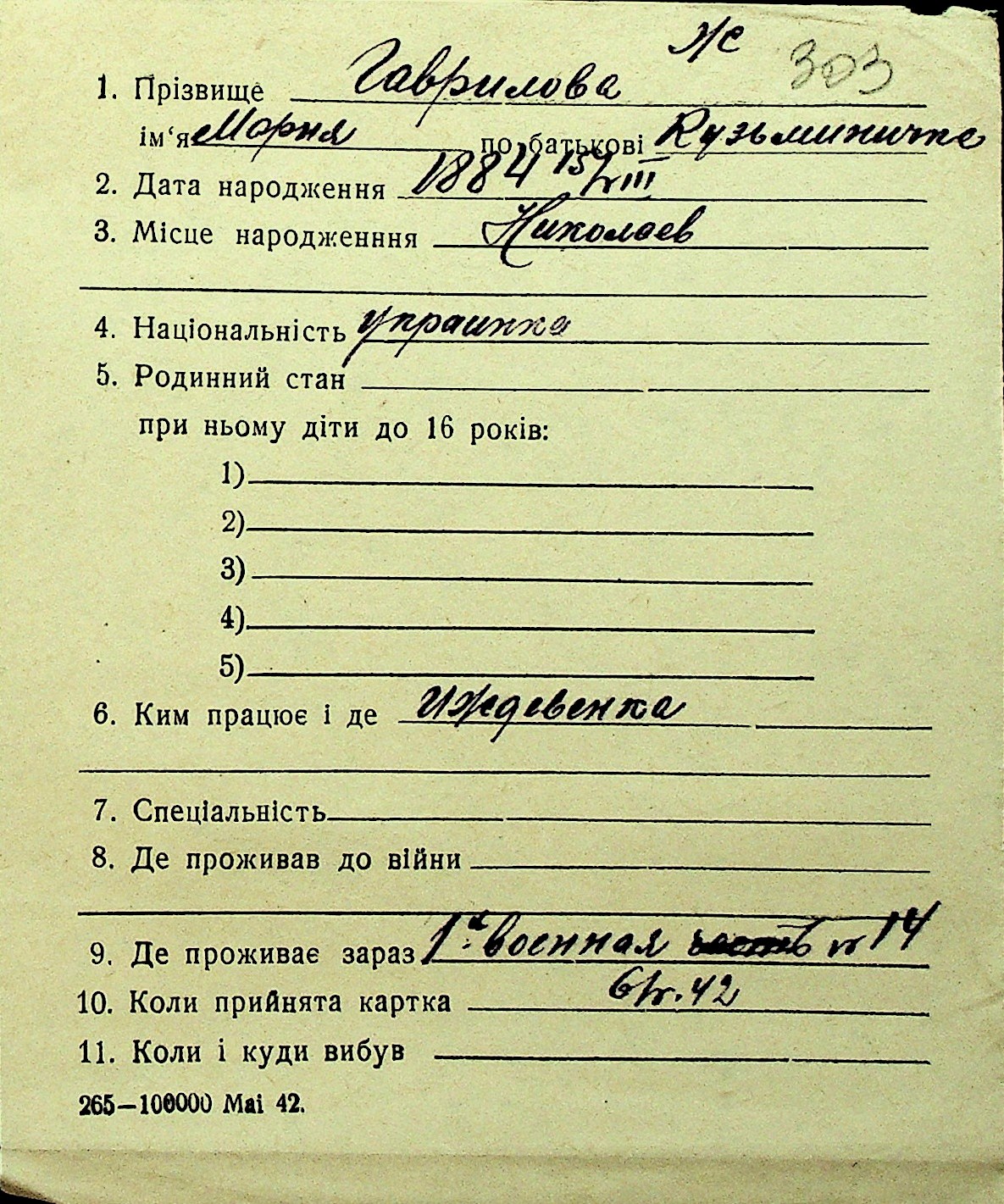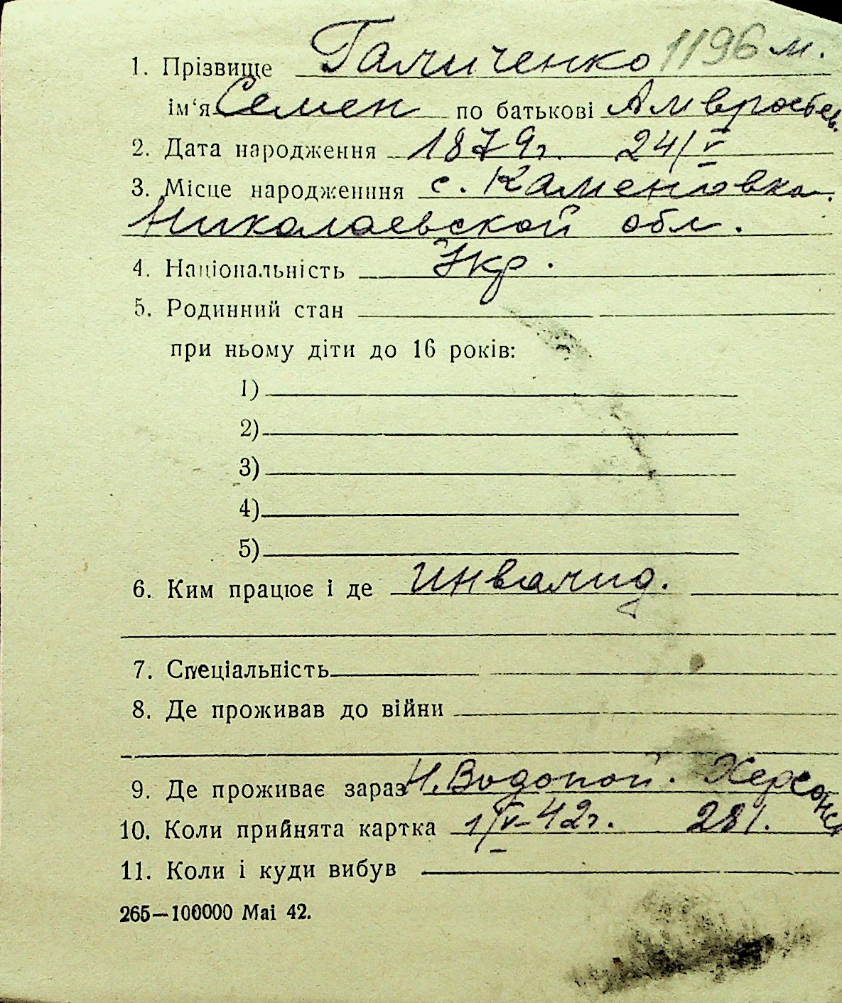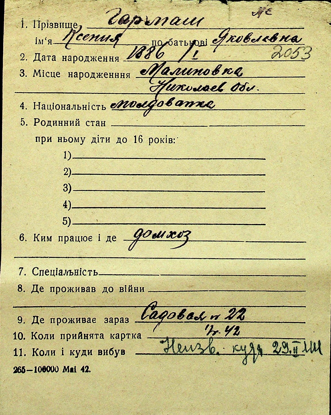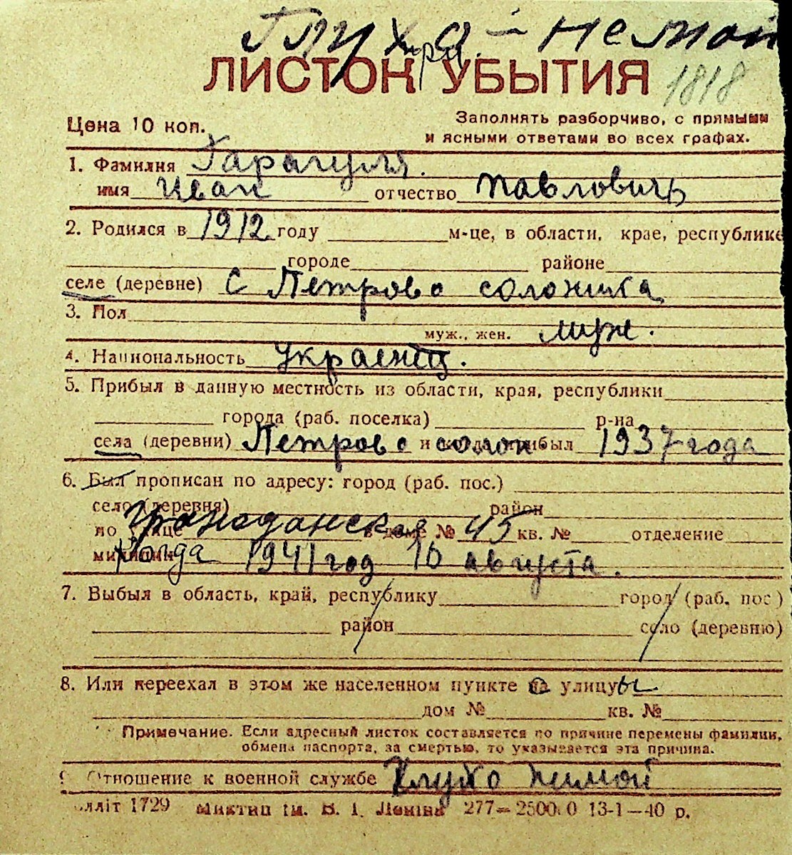 • • Перелік карток до фонду № Н-1016